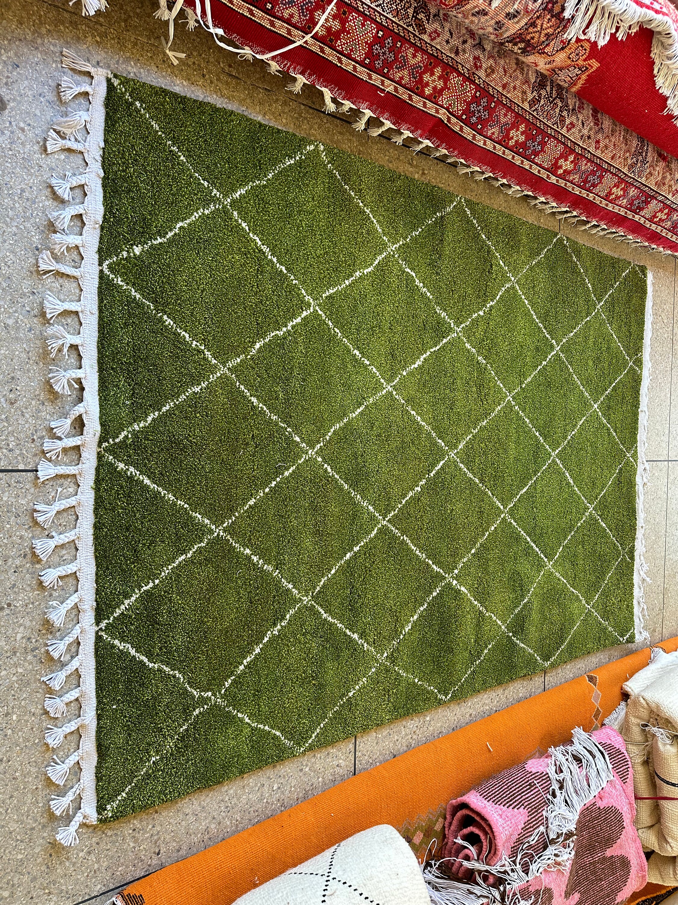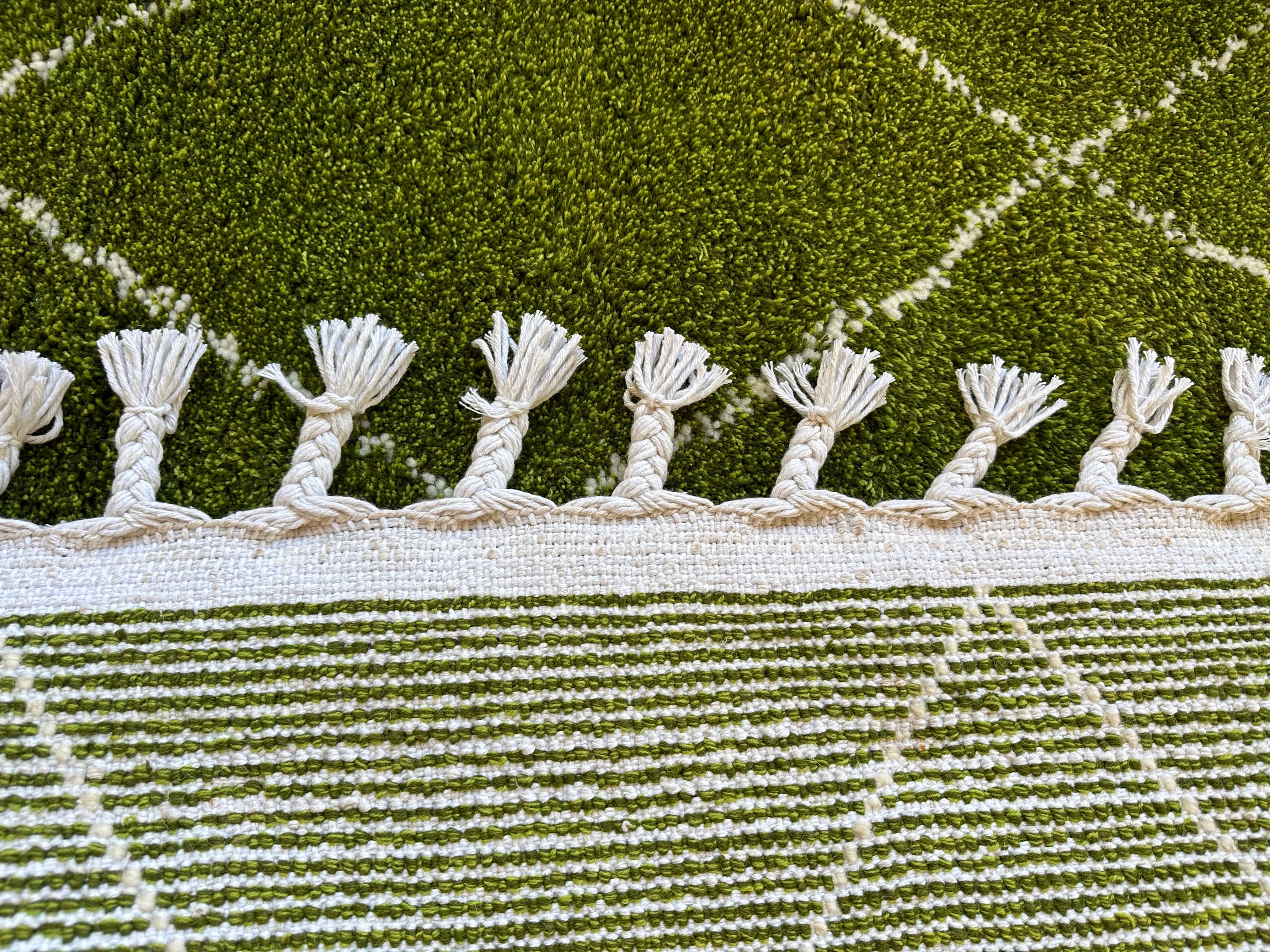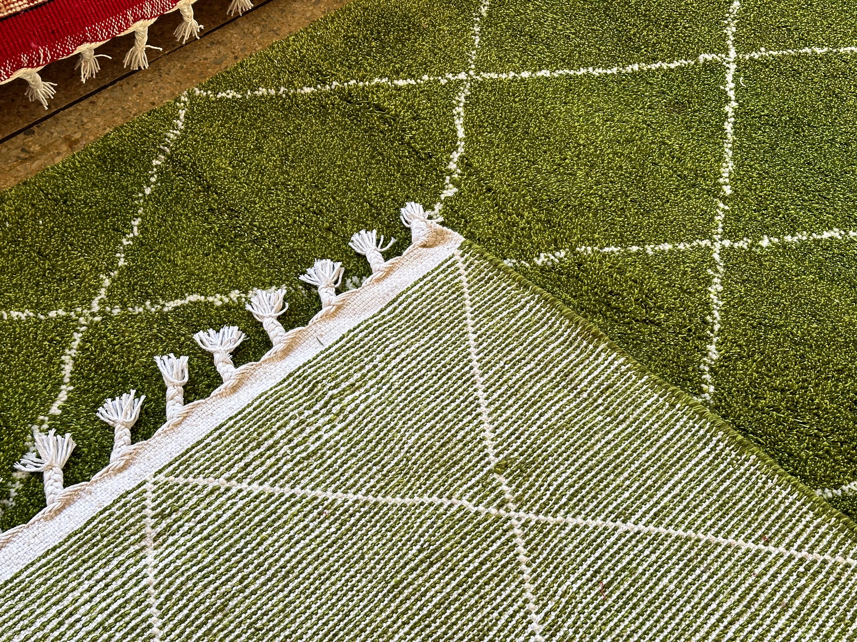 Handmade Moroccan Rug, 8x5 Beni Ourain Rug, Berber Carpet, Green And White Rug, Handwoven Rug, Bohemian Rug, Tapis Marocain, Bohemian Rug