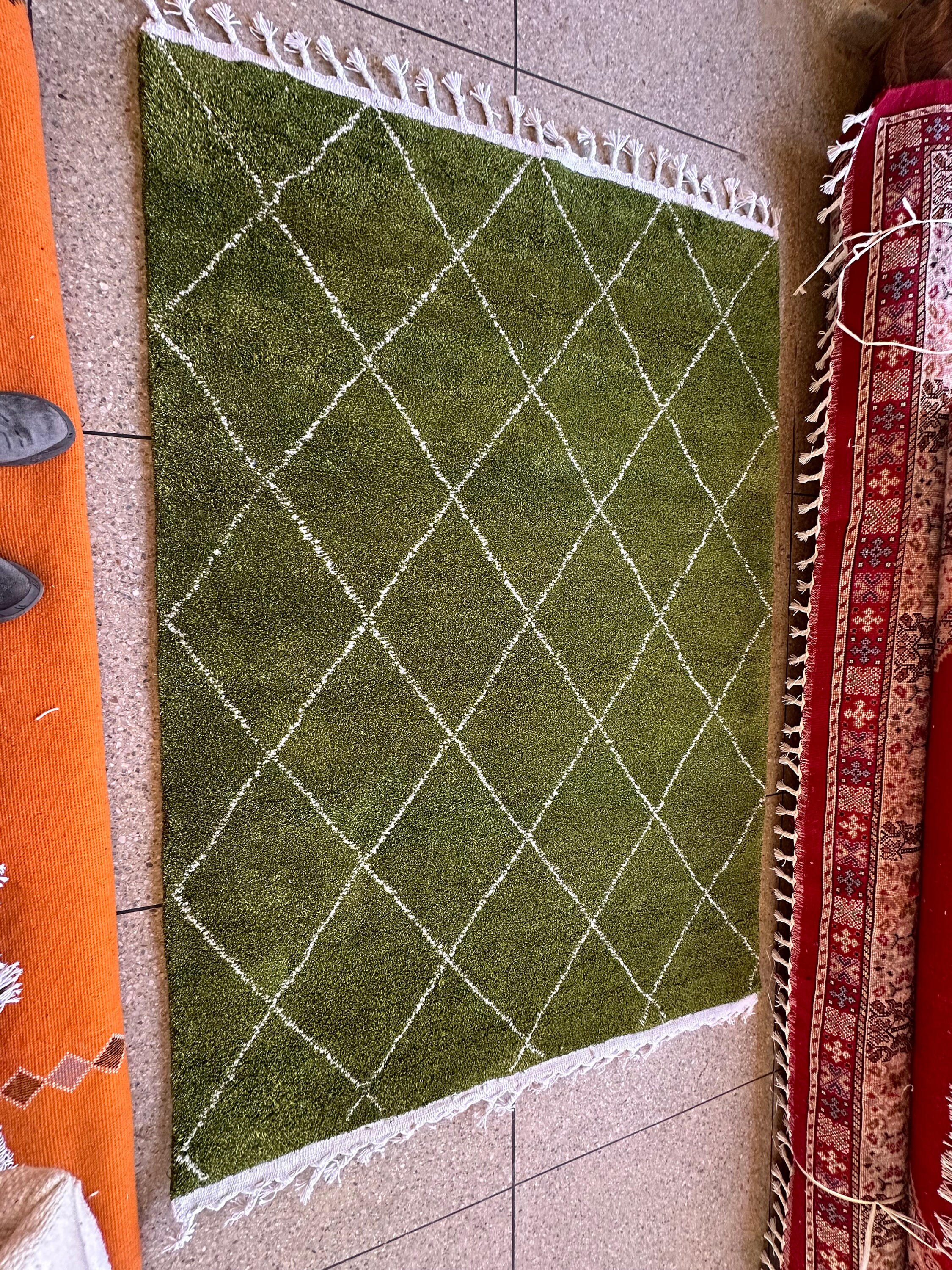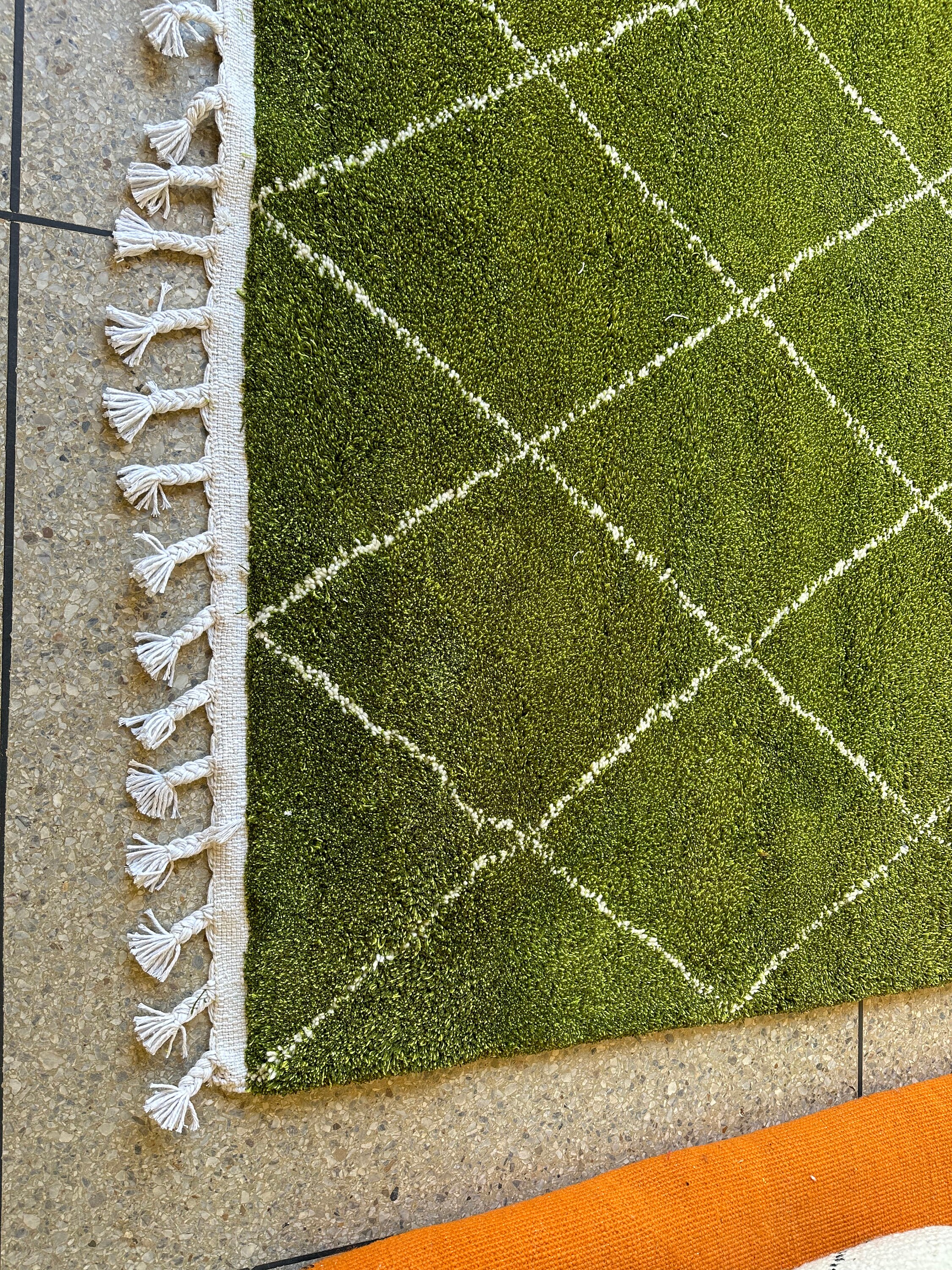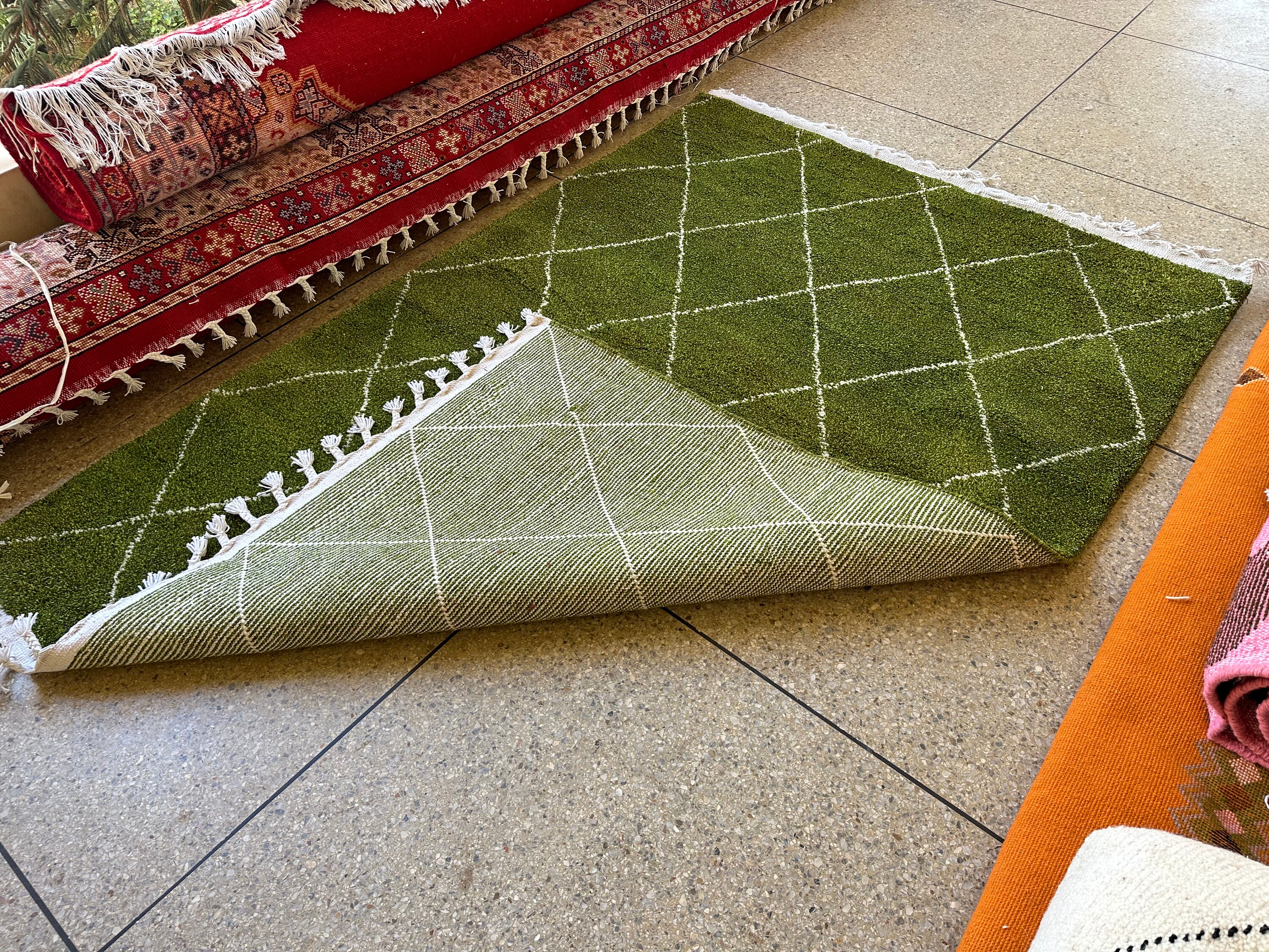 Handmade Moroccan Rug, 8x5 Beni Ourain Rug, Berber Carpet, Green And White Rug, Handwoven Rug, Bohemian Rug, Tapis Marocain, Bohemian Rug