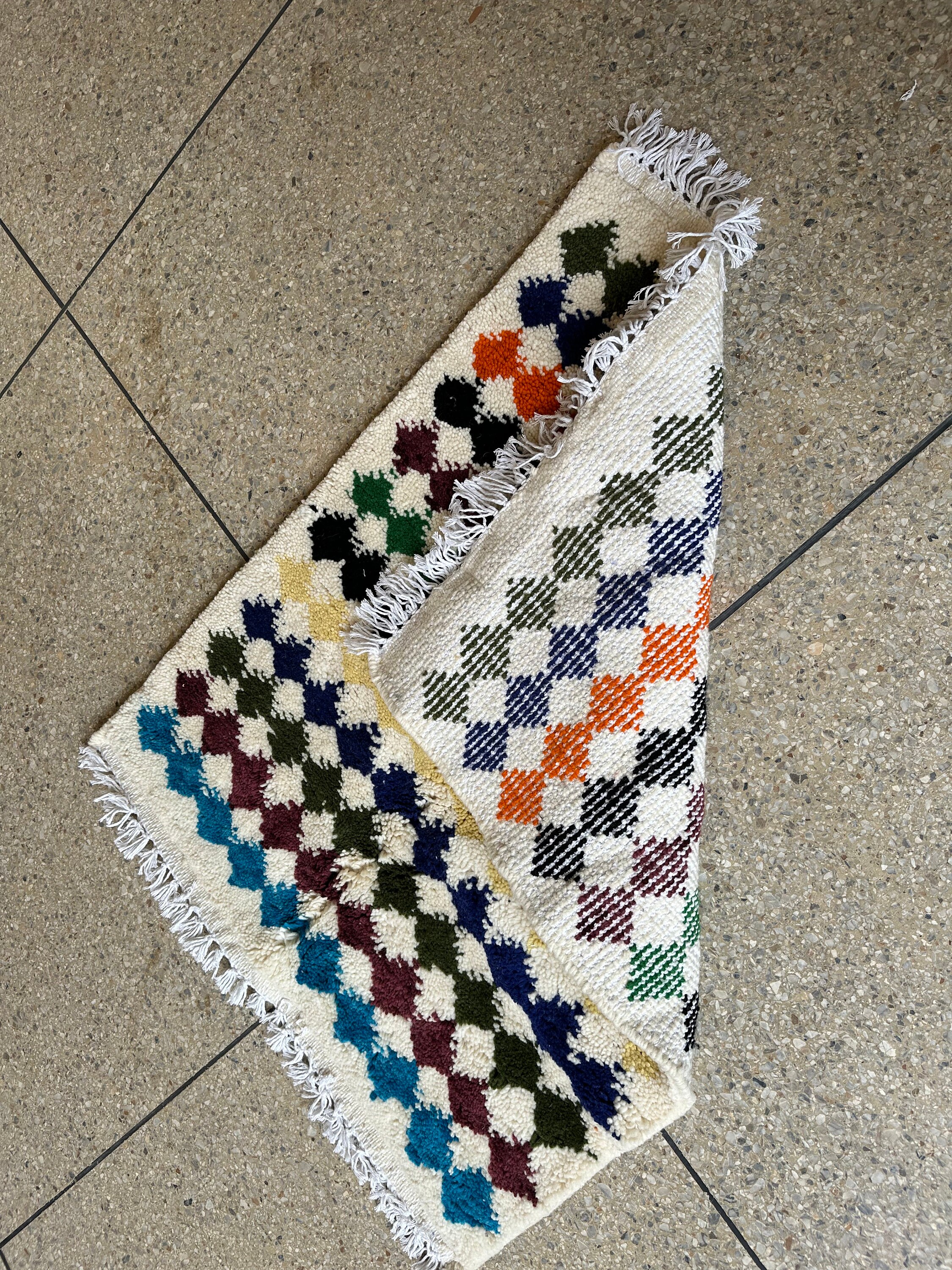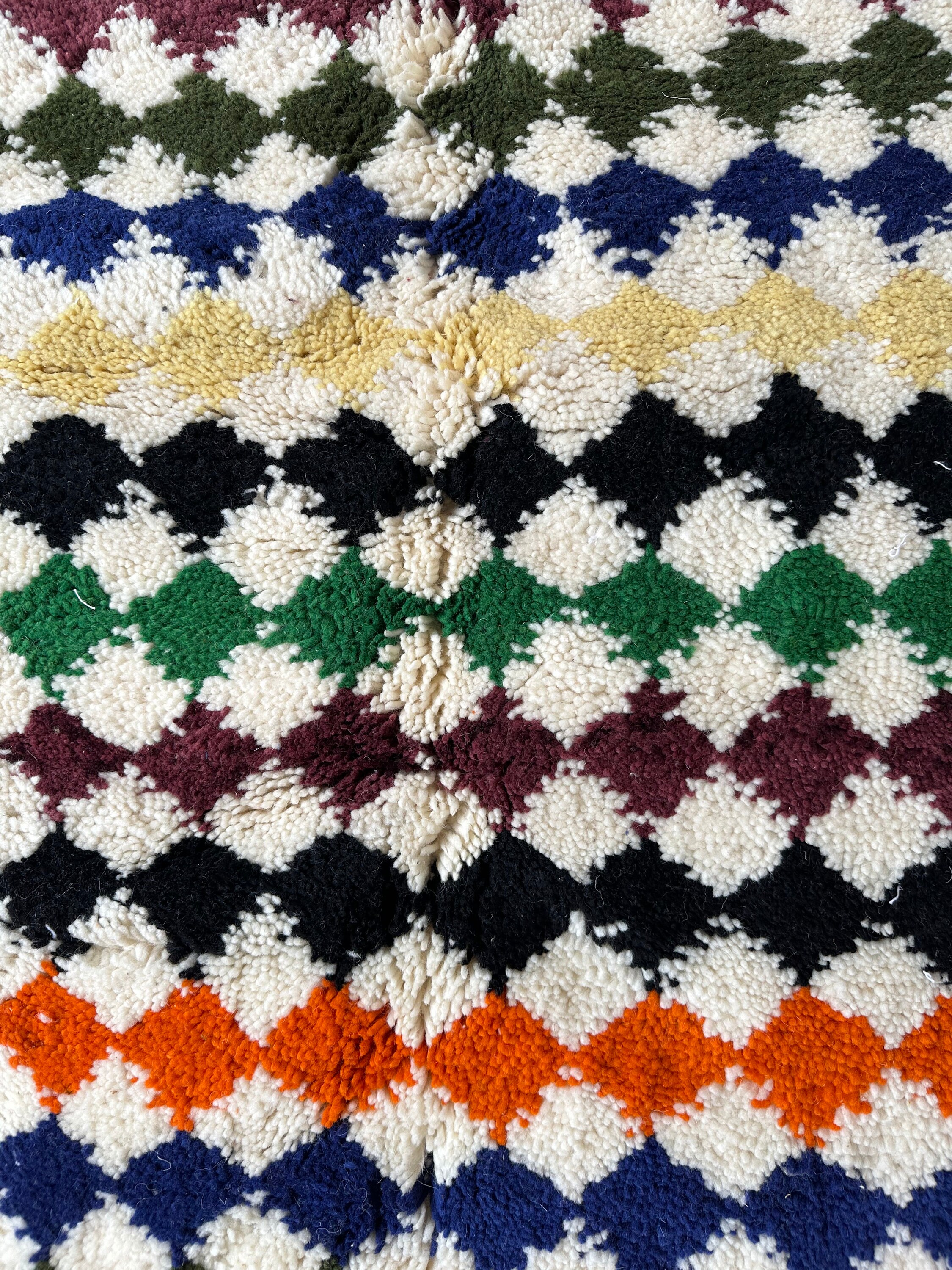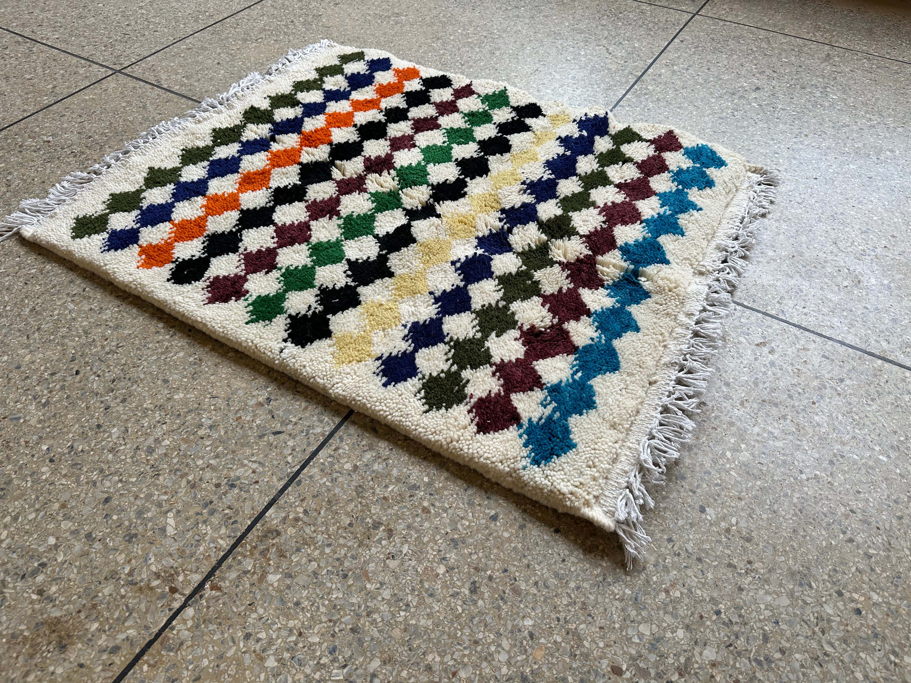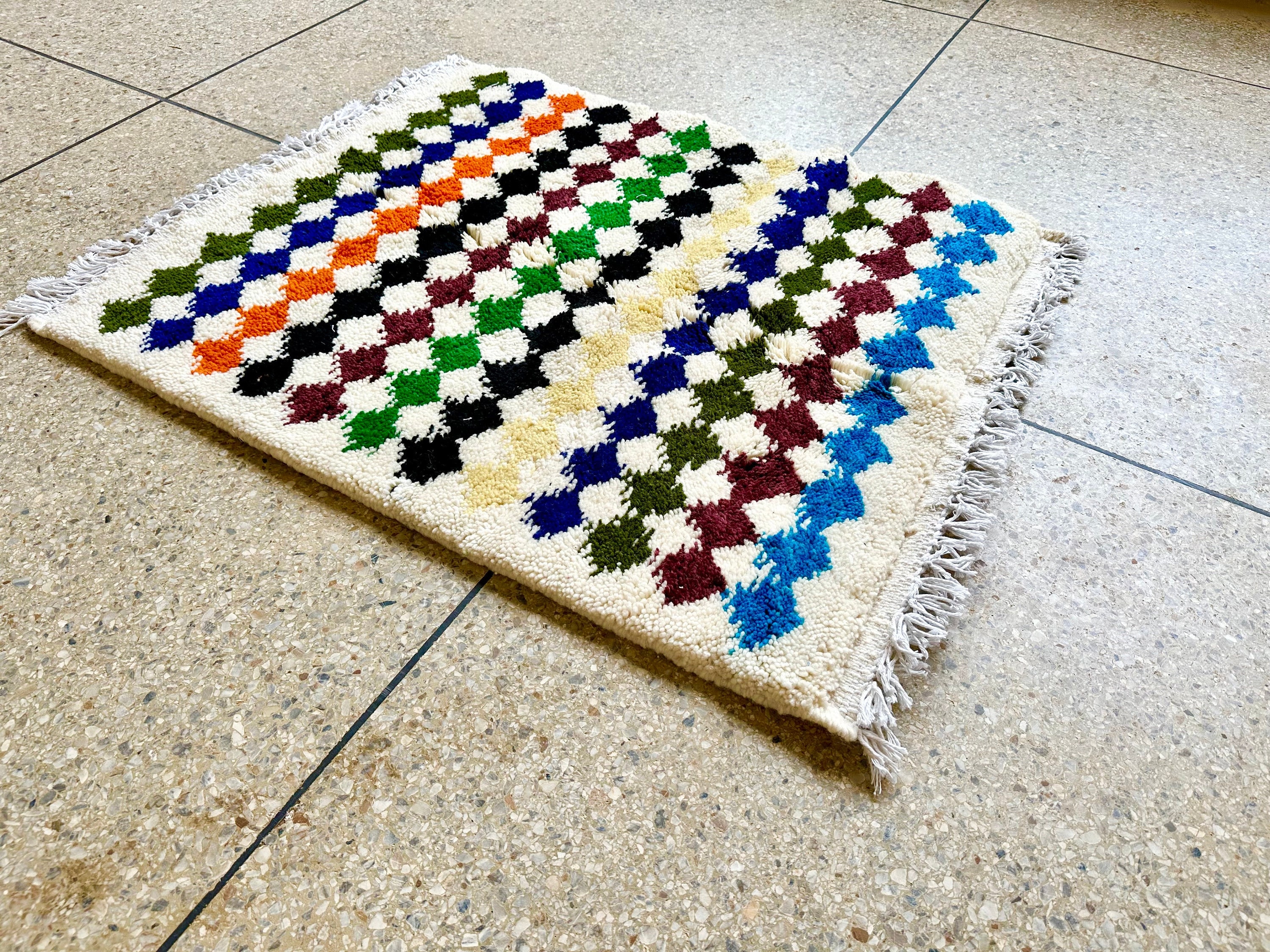 .NEW STYLE MOROCCO, Beni Ourain Rug,3.2x2.6FT Checkered Rug, Funky Berber Rug, Colorful Symbols Rug, Moroccan Area Rug, Handmade Rug