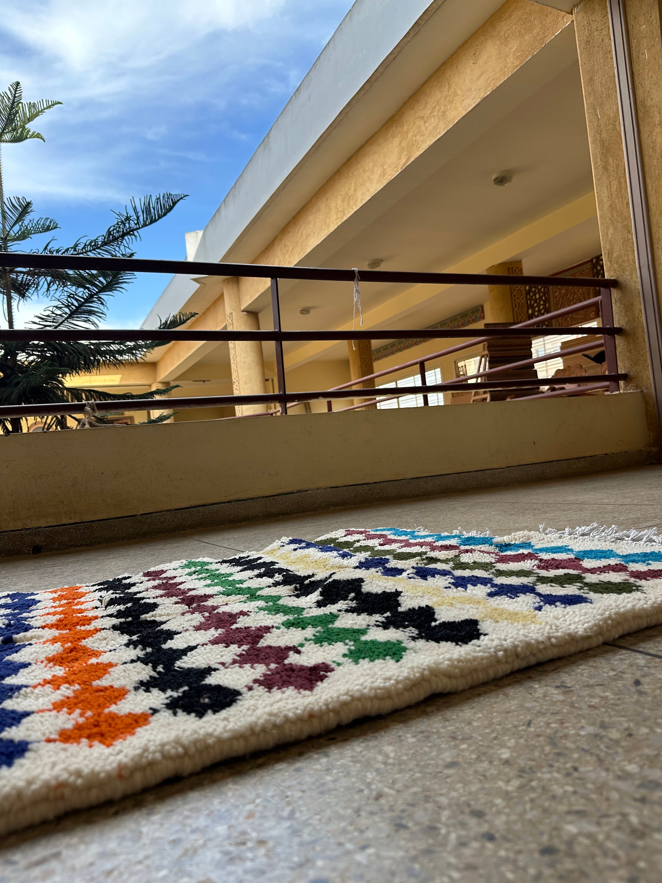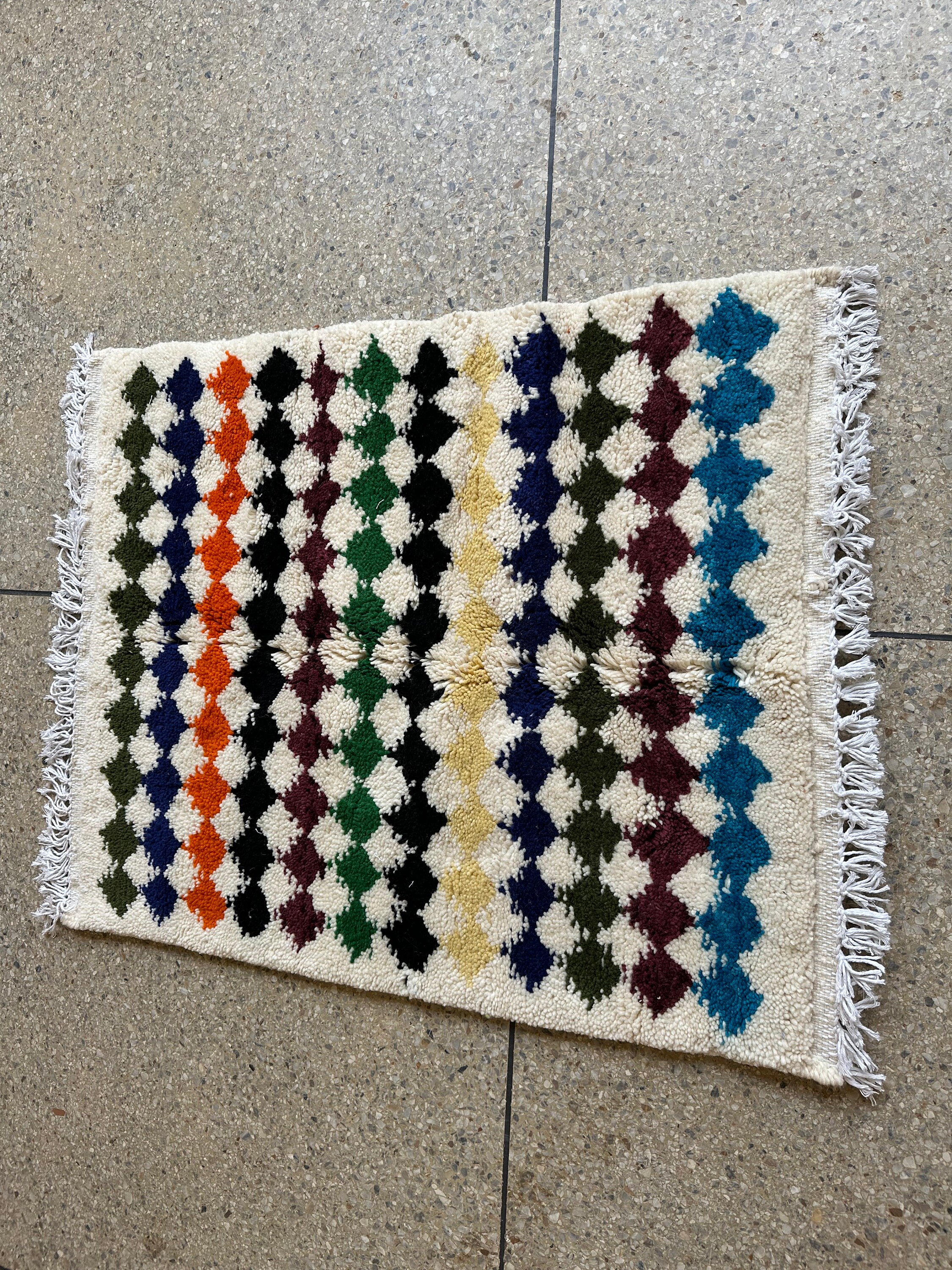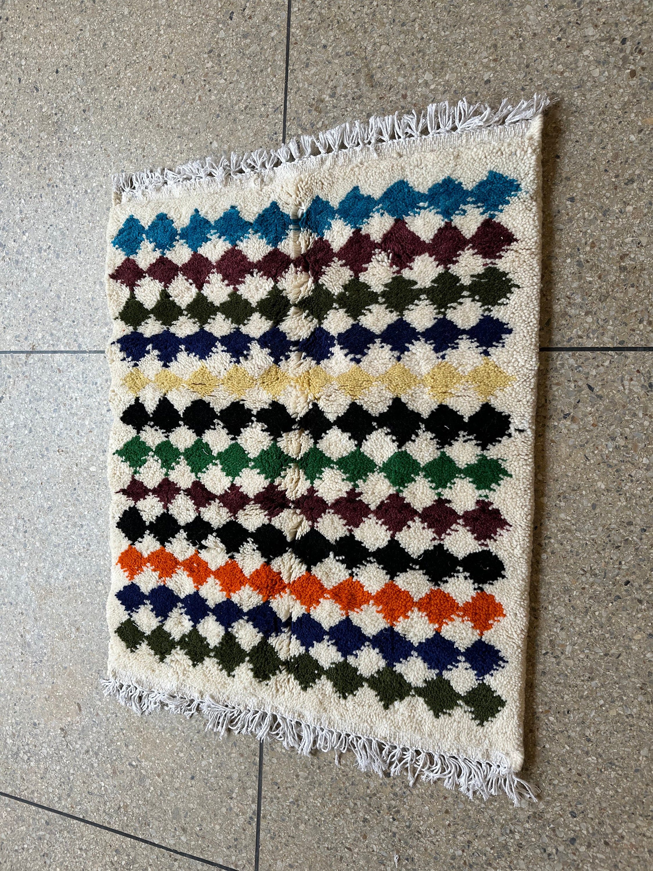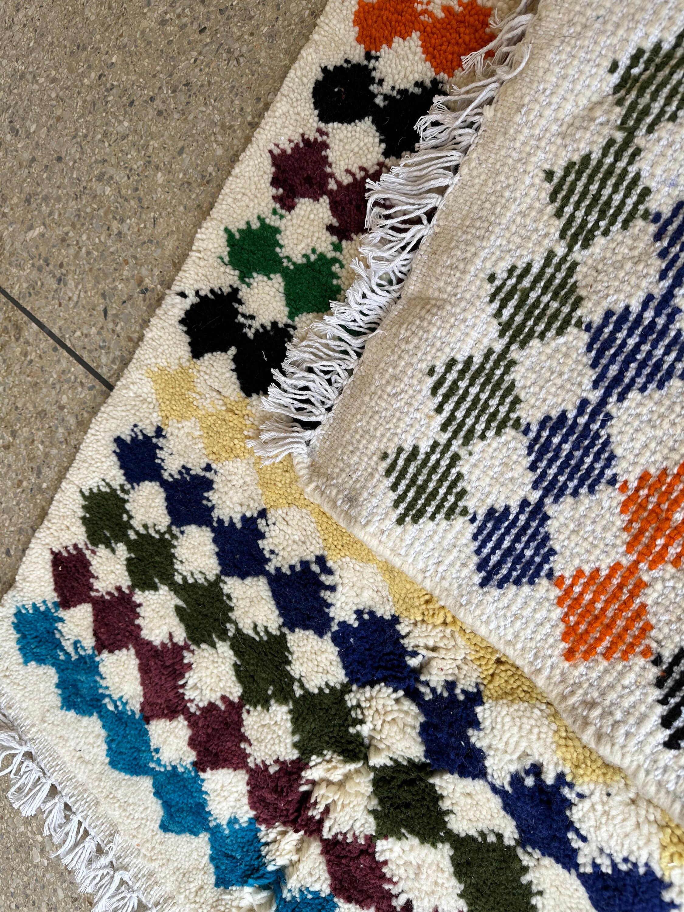 .NEW STYLE MOROCCO, Beni Ourain Rug,3.2x2.6FT Checkered Rug, Funky Berber Rug, Colorful Symbols Rug, Moroccan Area Rug, Handmade Rug