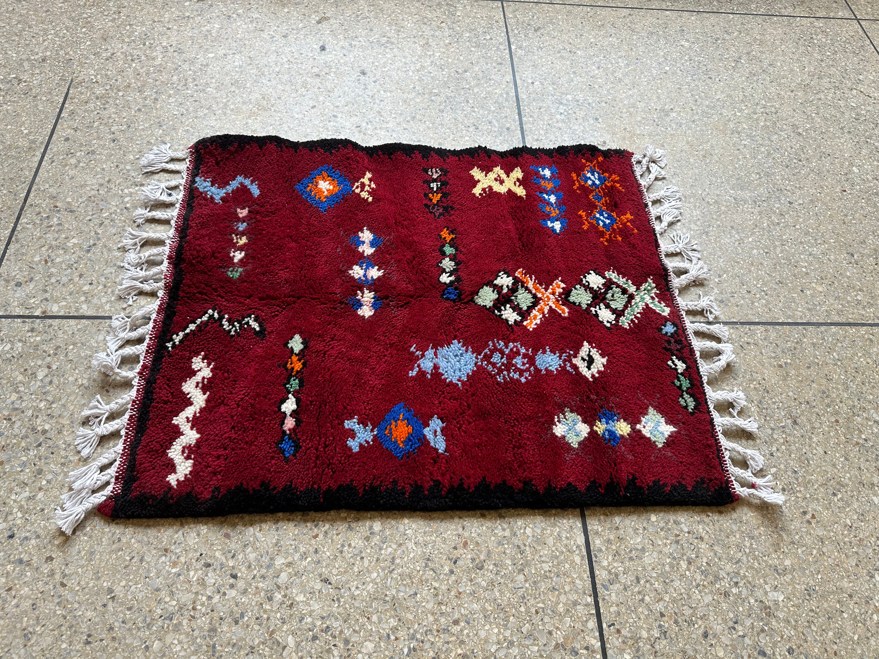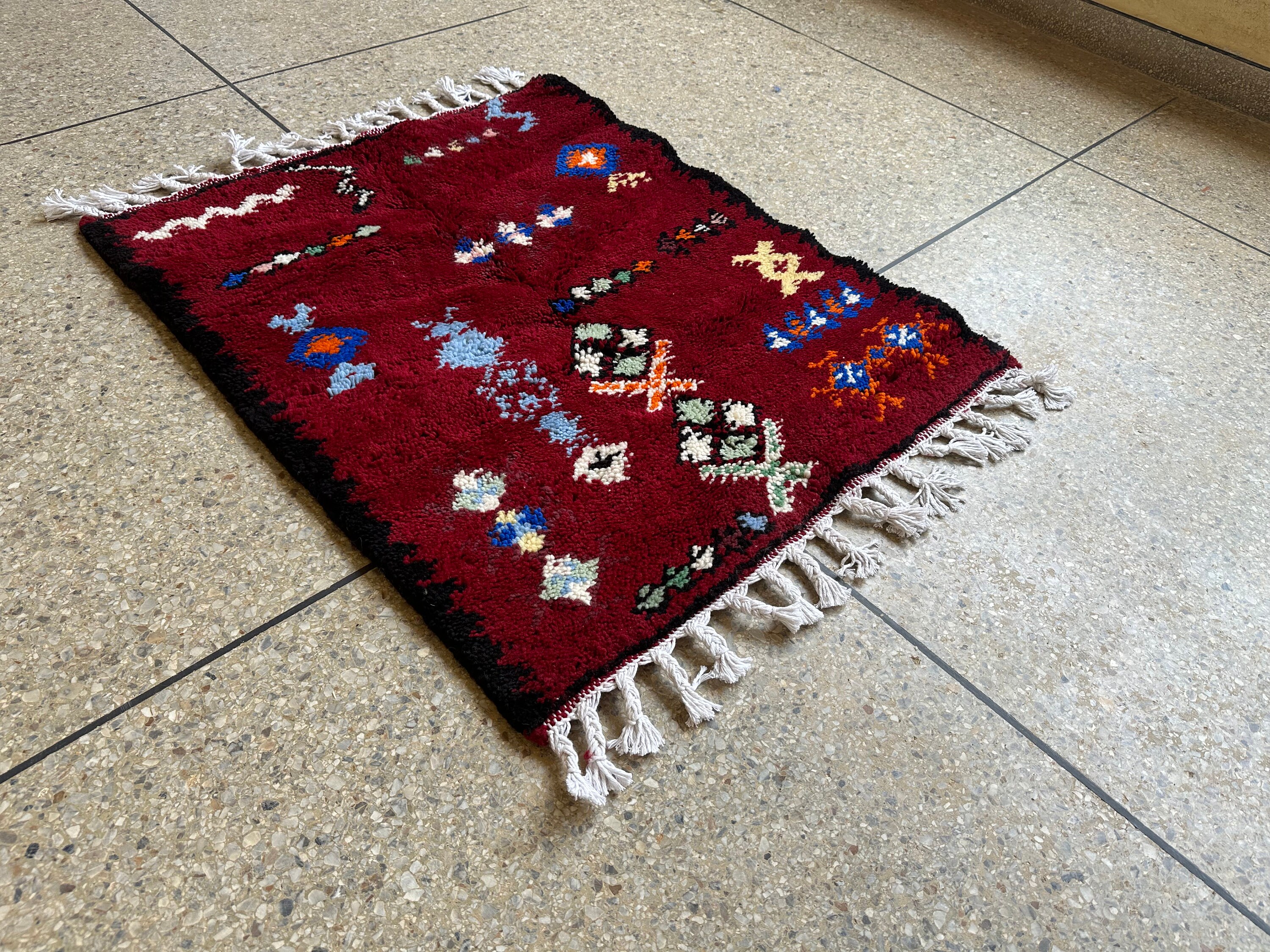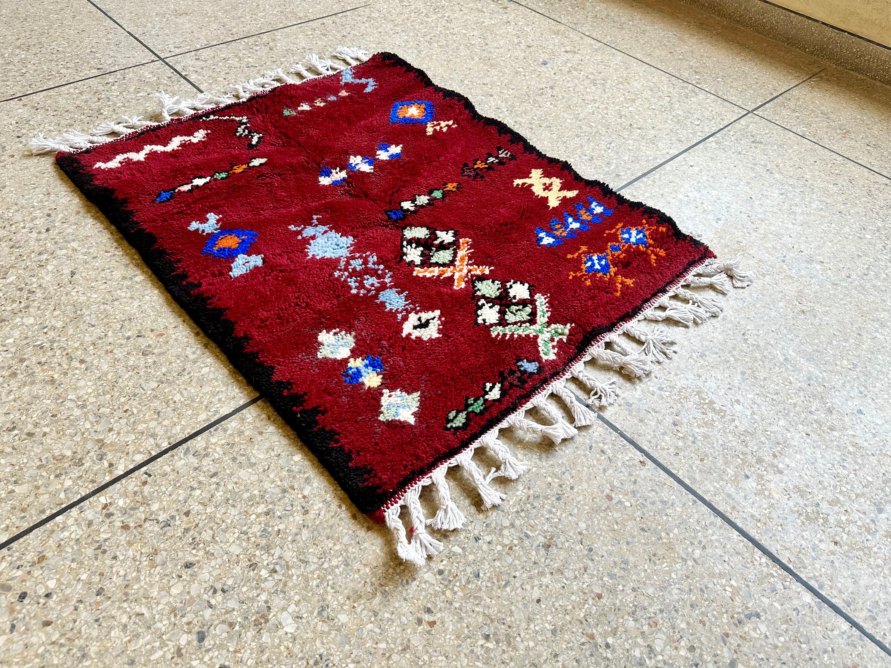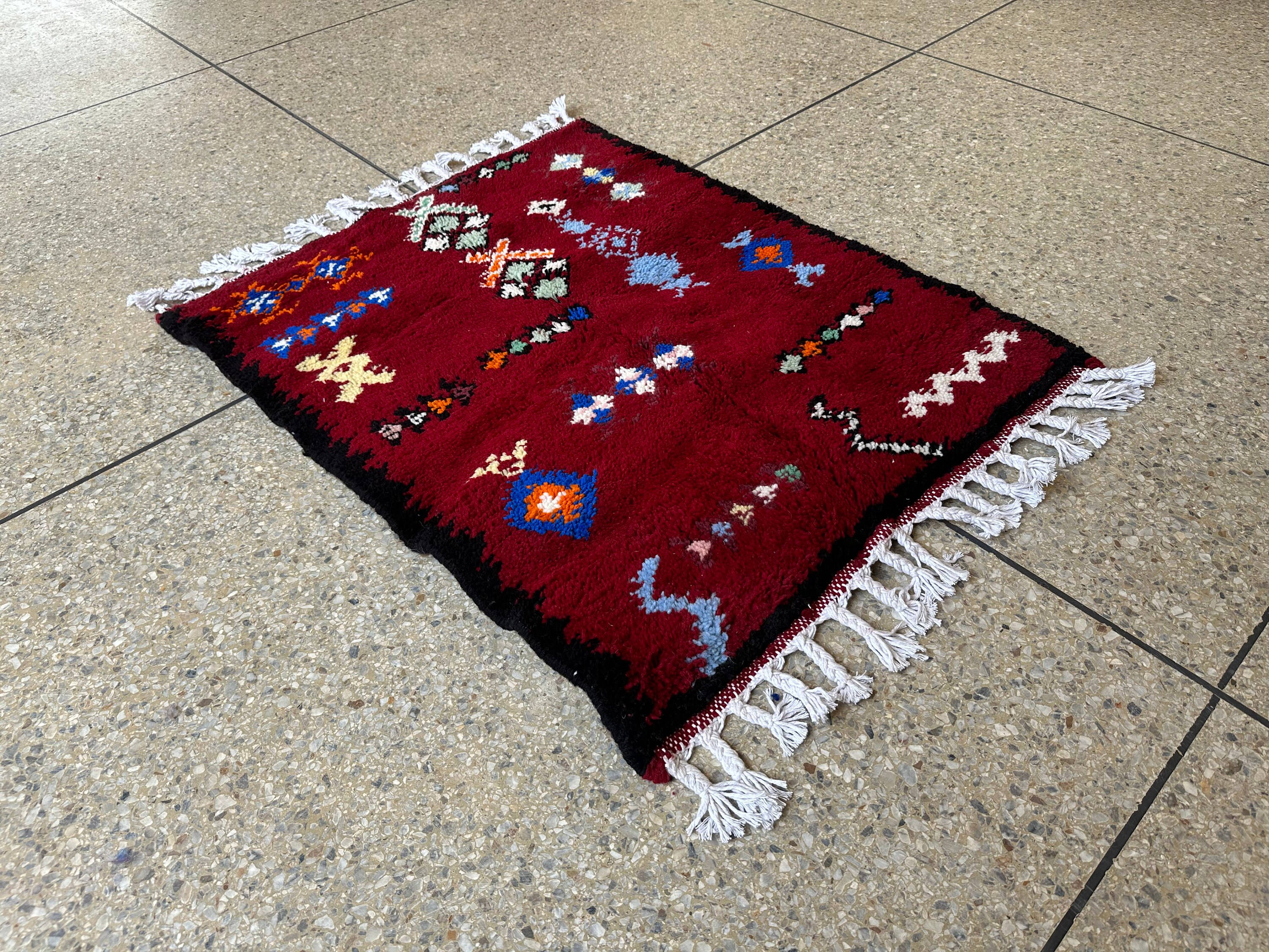Handmade Moroccan rug 3.1 x 2.5 Feet Morocco Red rug - berber rug - hand knotted rug - Beni ourain rug - Moroccan Red rug - Wool rug
