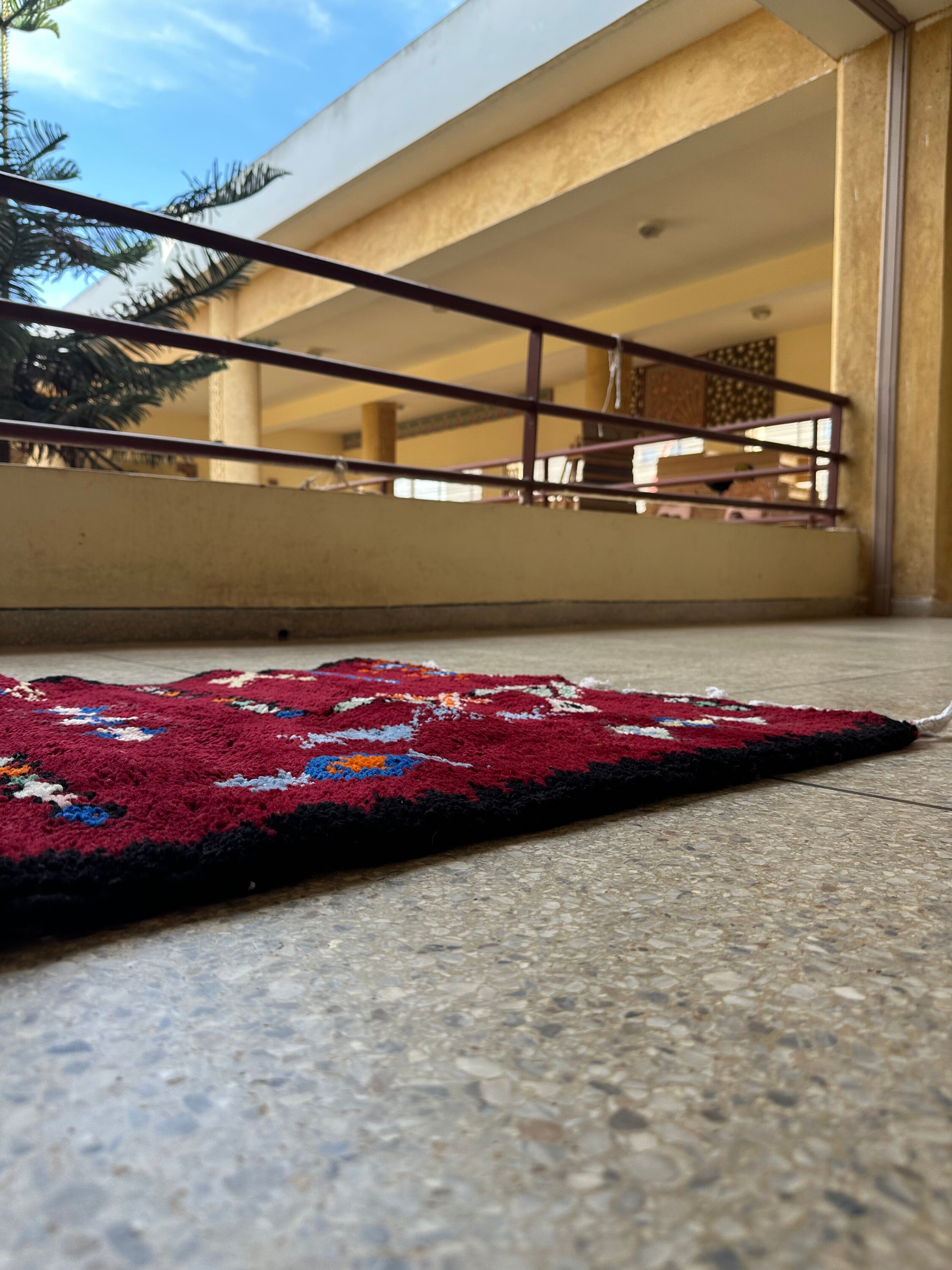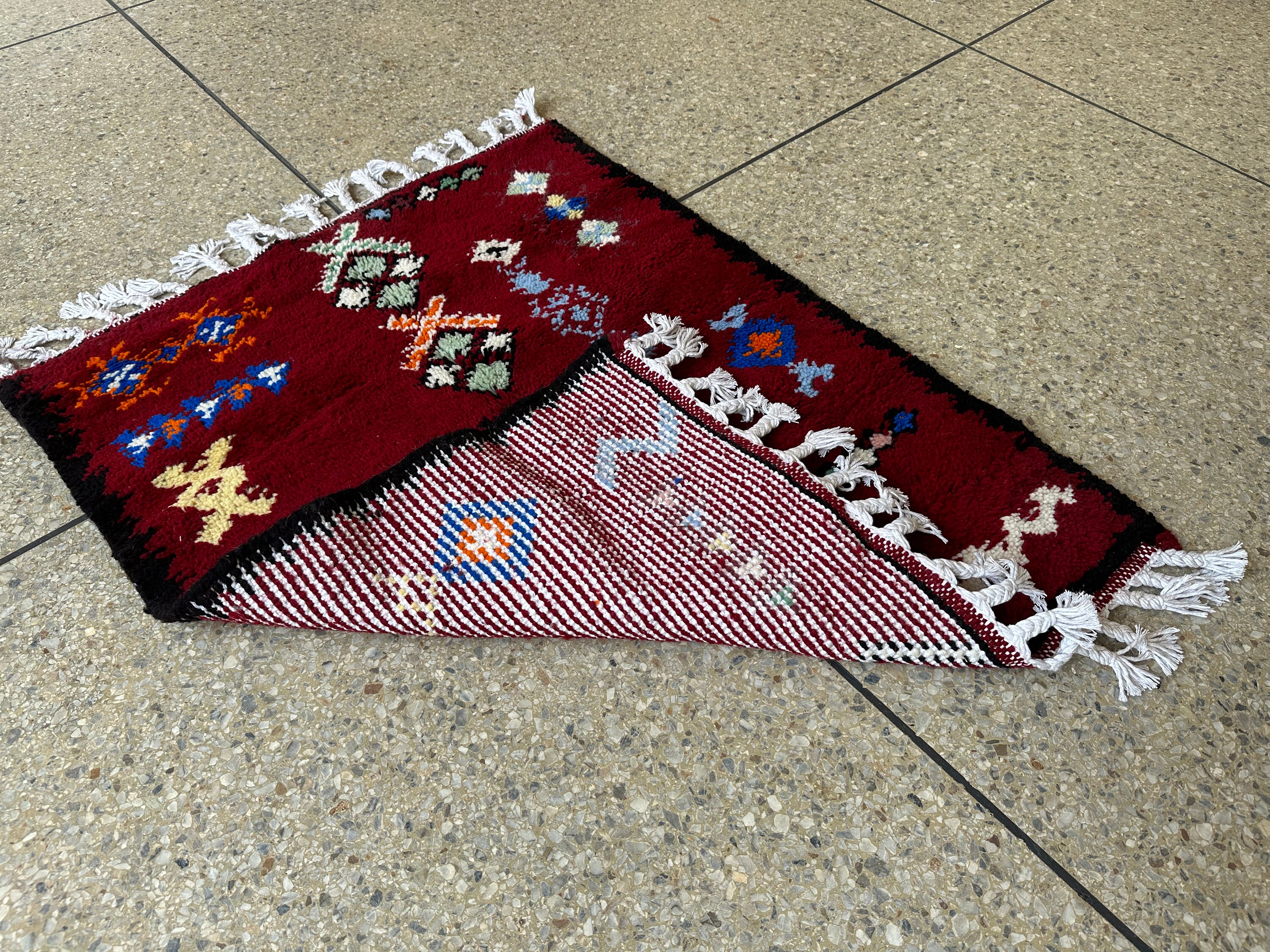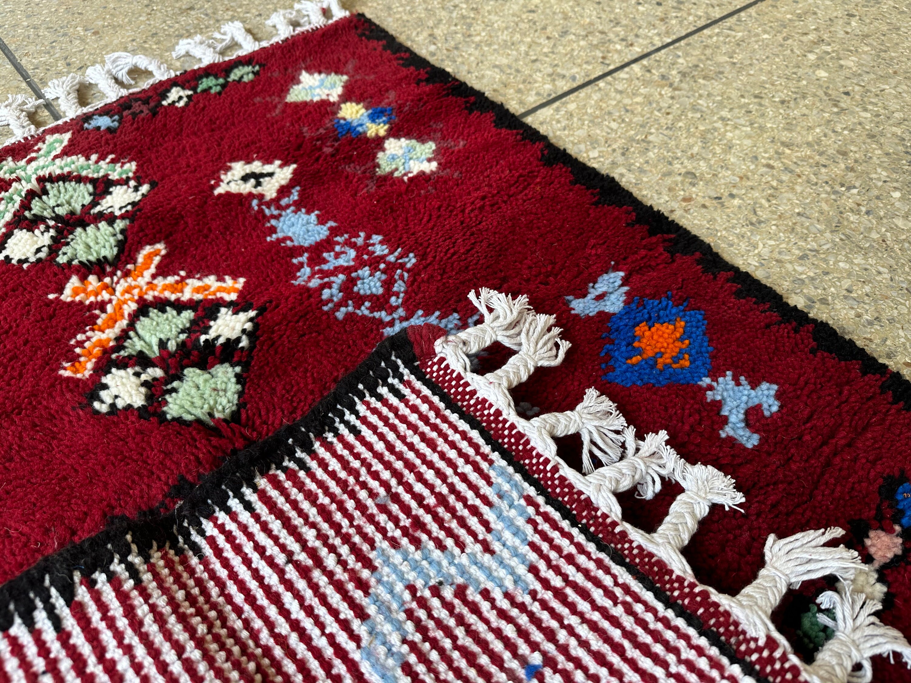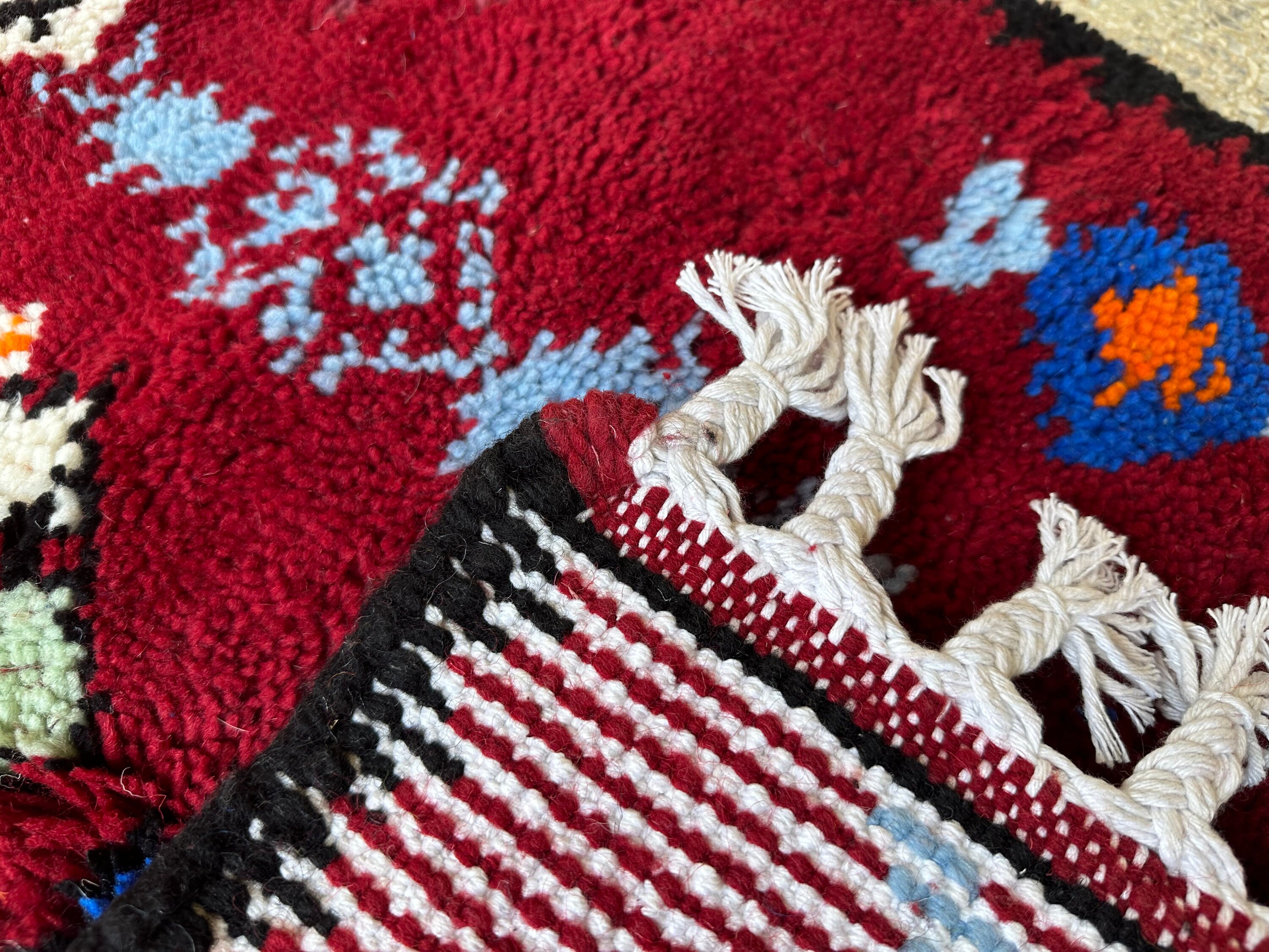 Handmade Moroccan rug 3.1 x 2.5 Feet Morocco Red rug - berber rug - hand knotted rug - Beni ourain rug - Moroccan Red rug - Wool rug