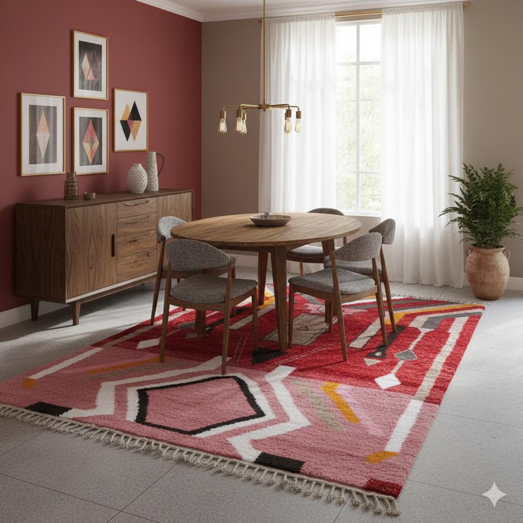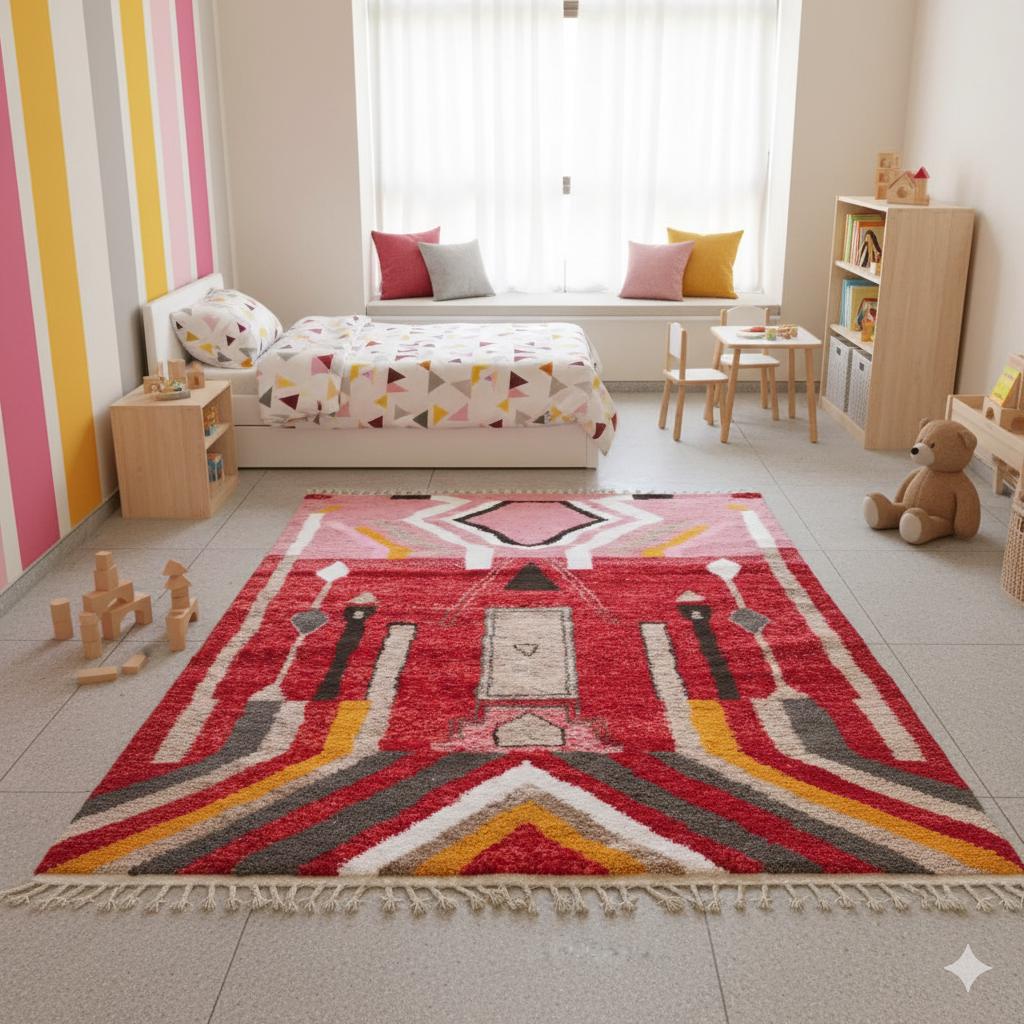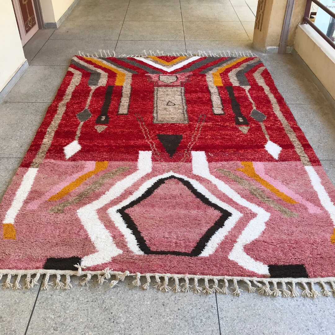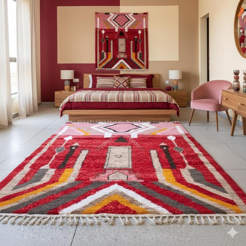 Transform your space with our Custom Moroccan Wool Rug, featuring a stunning Beni Ourain design in vibrant red and pink. Handwoven by skilled artisans, this Berber carpet showcases a unique geometric abstract pattern, adding warmth and sophistication to any room. Perfect for living rooms, bedrooms, or cozy nooks, our luxurious shag rug brings comfort underfoot with its high-quality wool. Elevate your decor today with this one-of-a-kind piece that reflects the beauty of Moroccan craftsmanship!