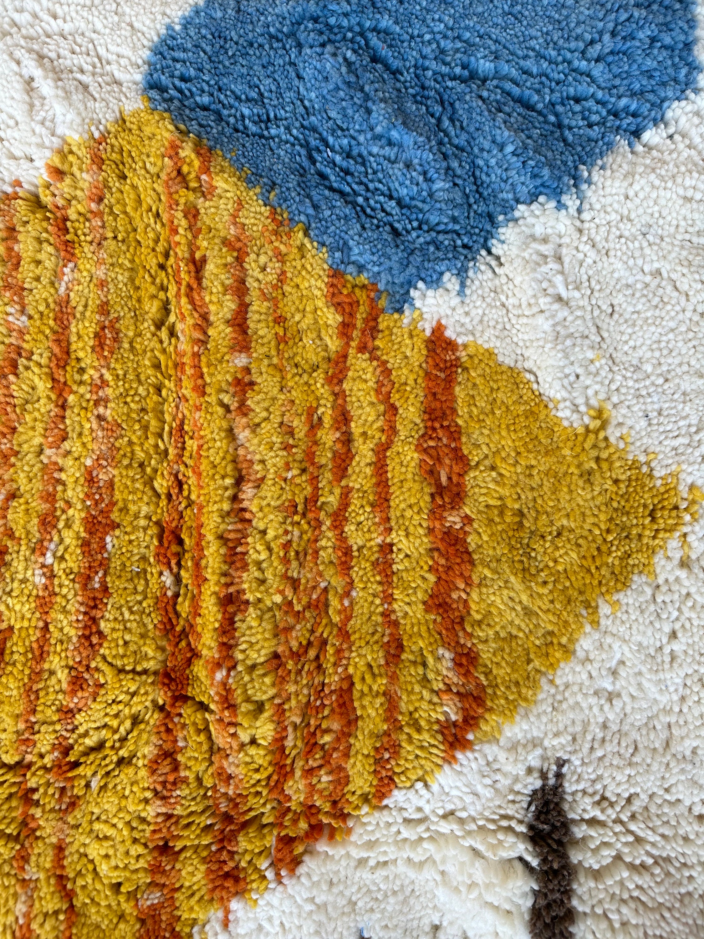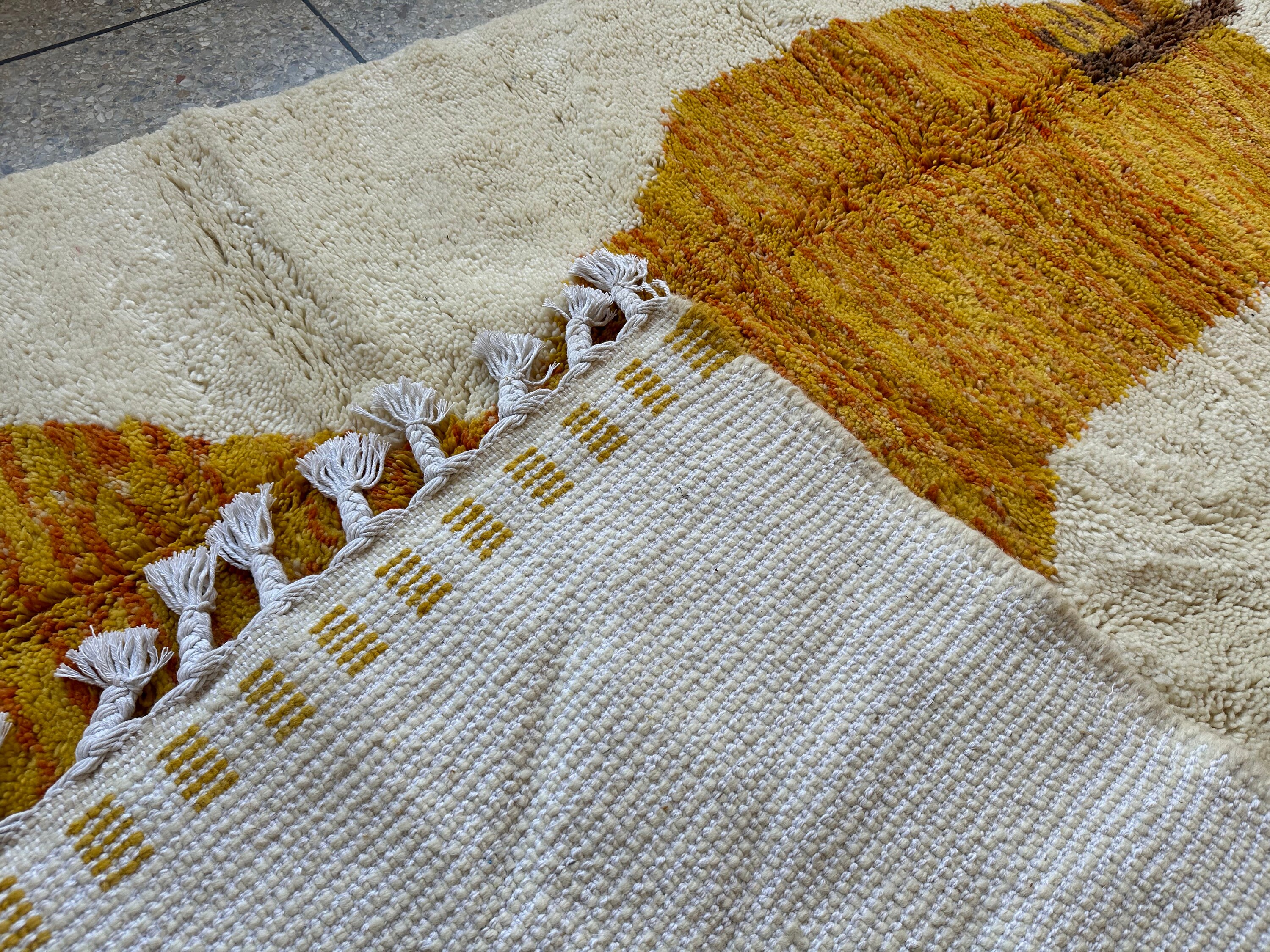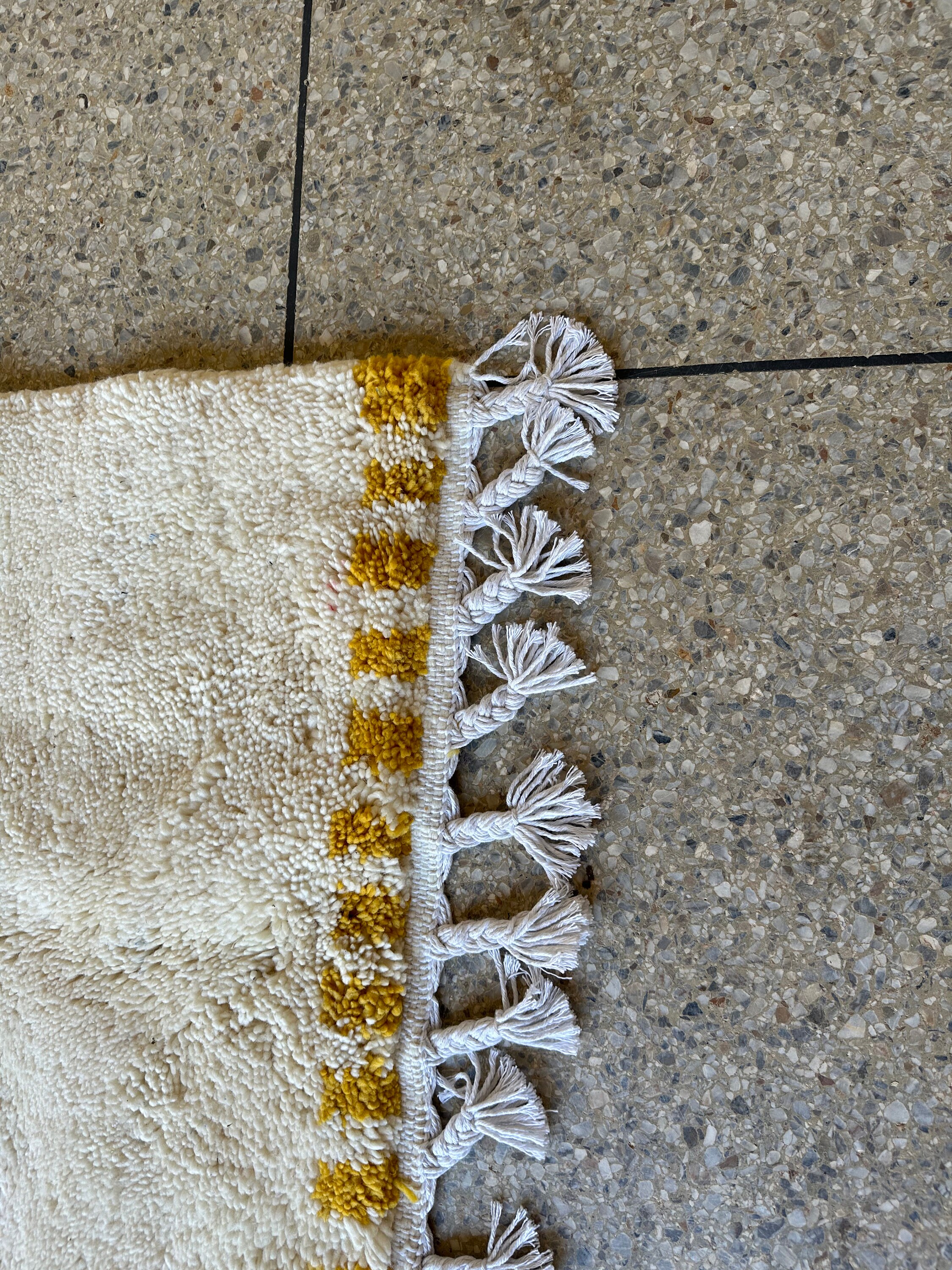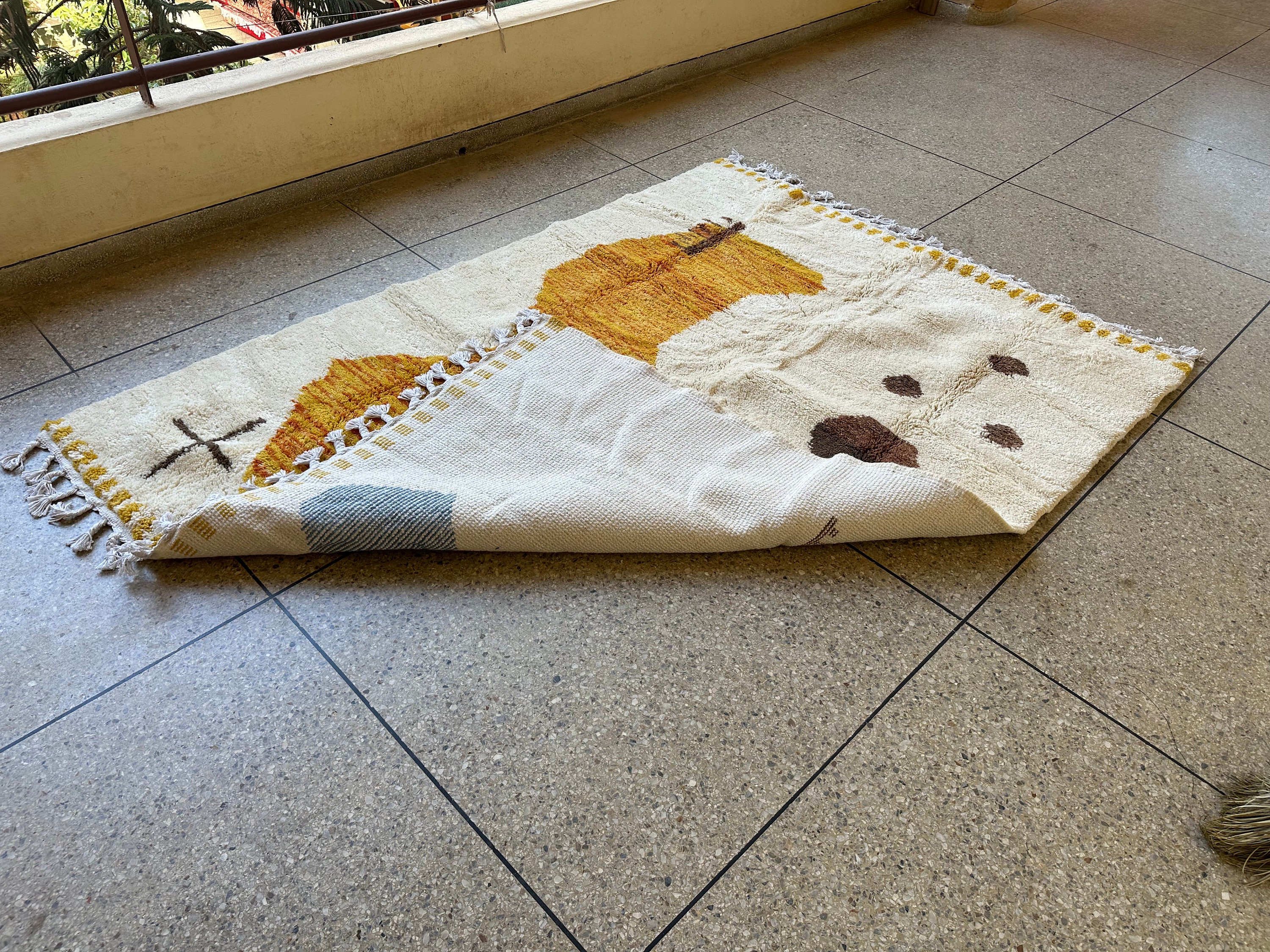 This fabulous Moroccan Rug that will give your room both a cozy feeling and stylish is made from 100% Natural sheep wool, It's Very plush and comfy to walk on, actually It's Heaven for your feet.