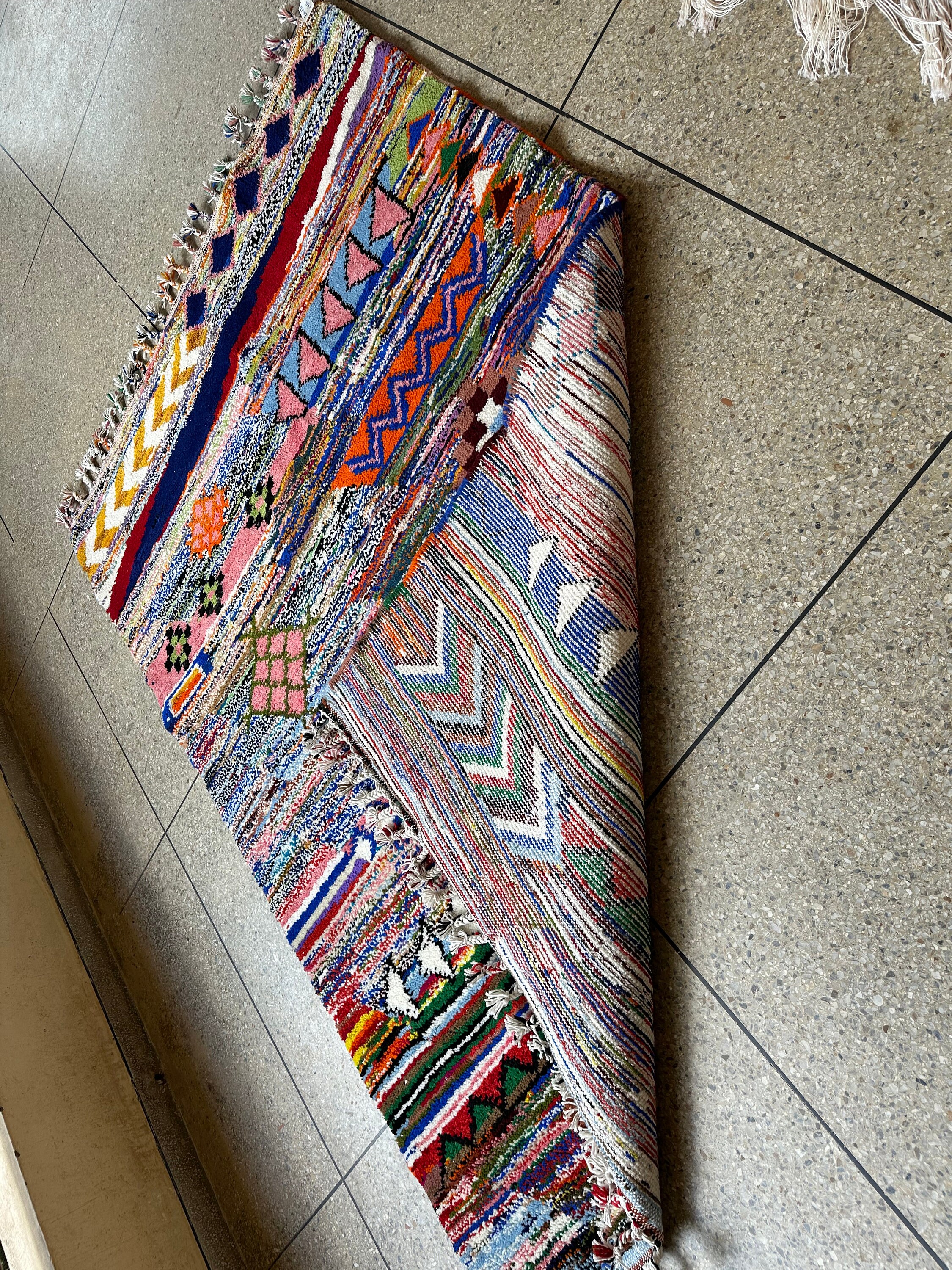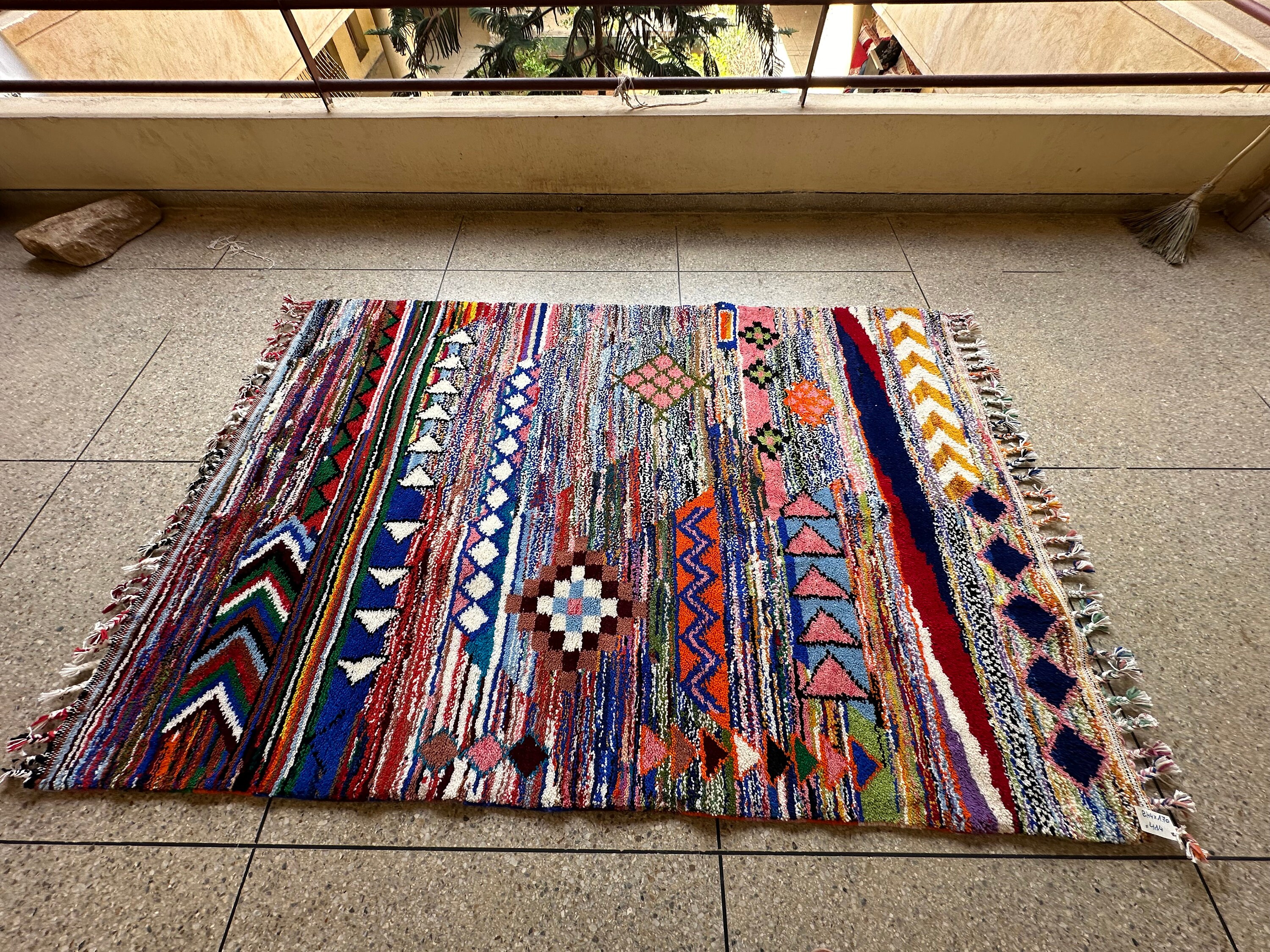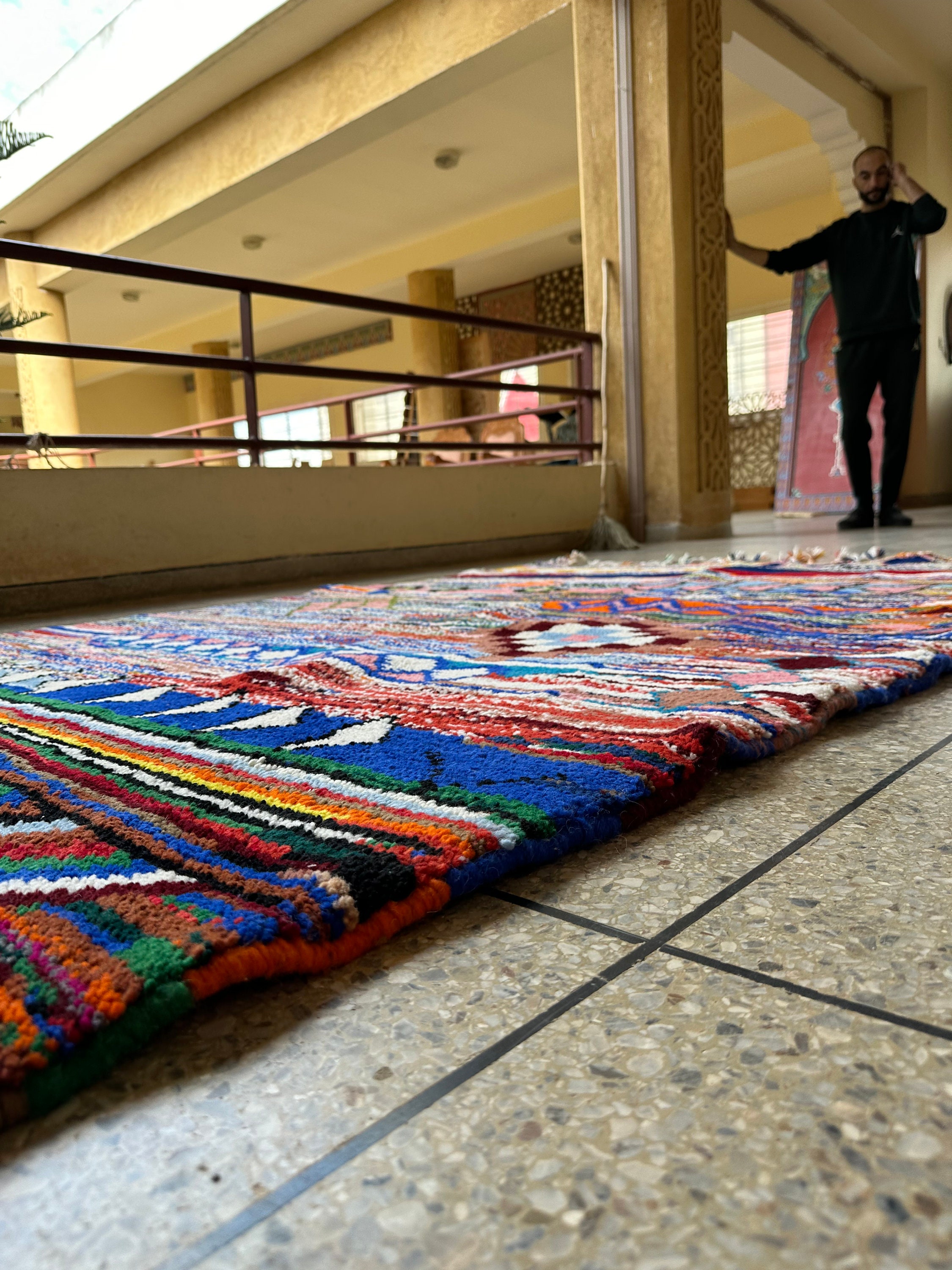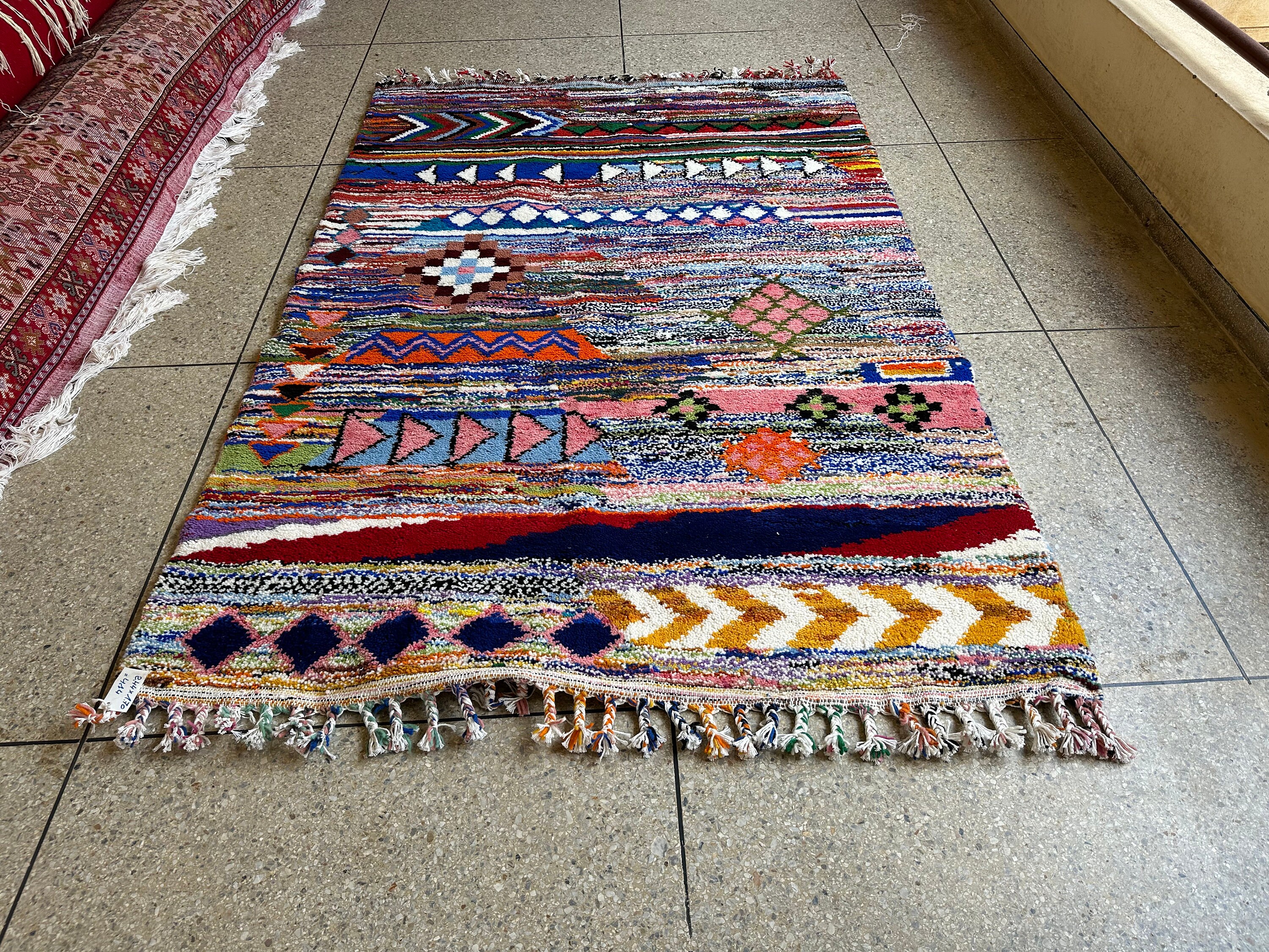 .Multi Color Wool Bougad Rug , Game Room Rug , Handmade Moroccan Rug, Colorful Hand Woven Wool Rug, Unique Geometric Rugs,8x5.5FT Wool Rug.