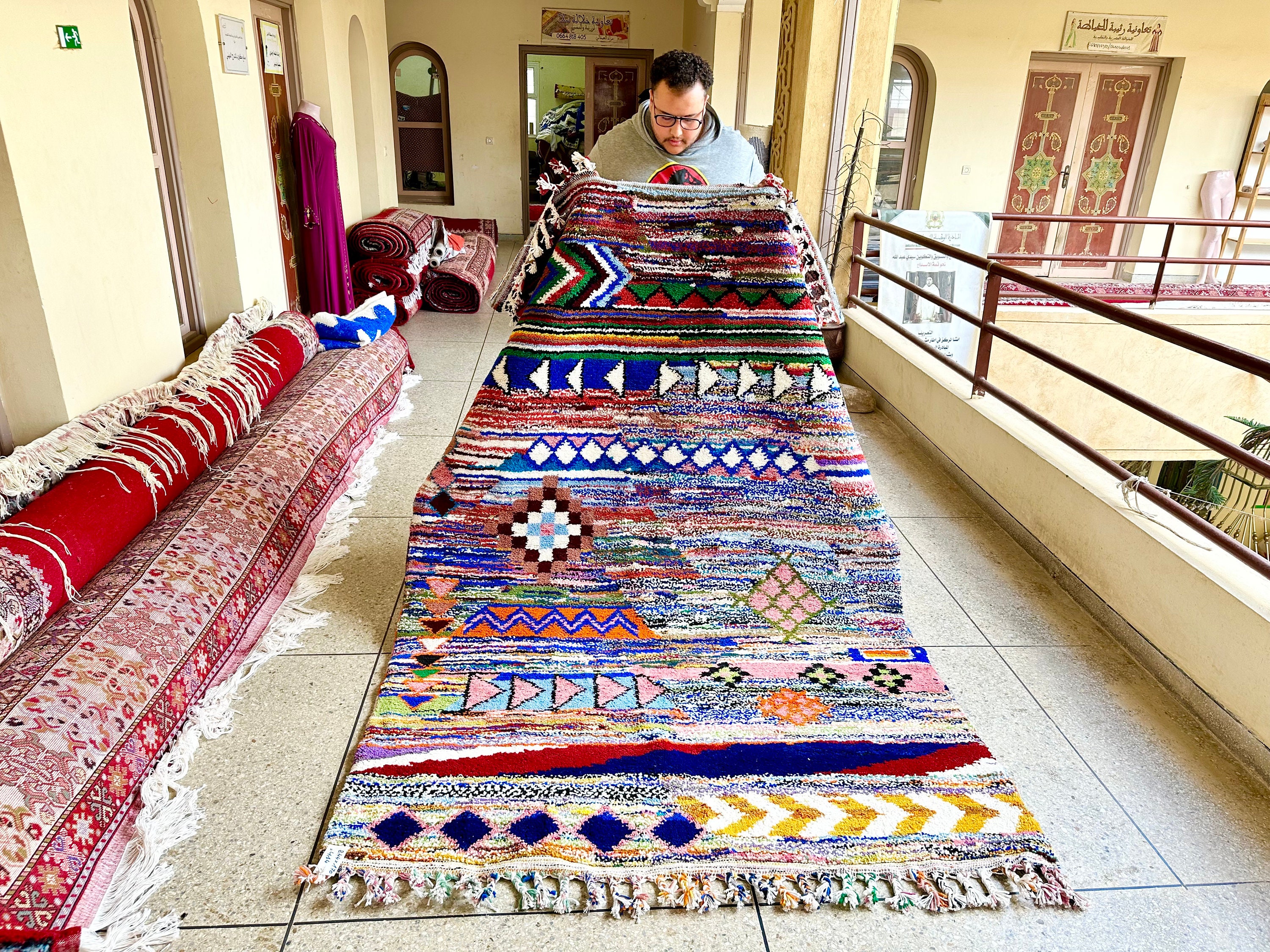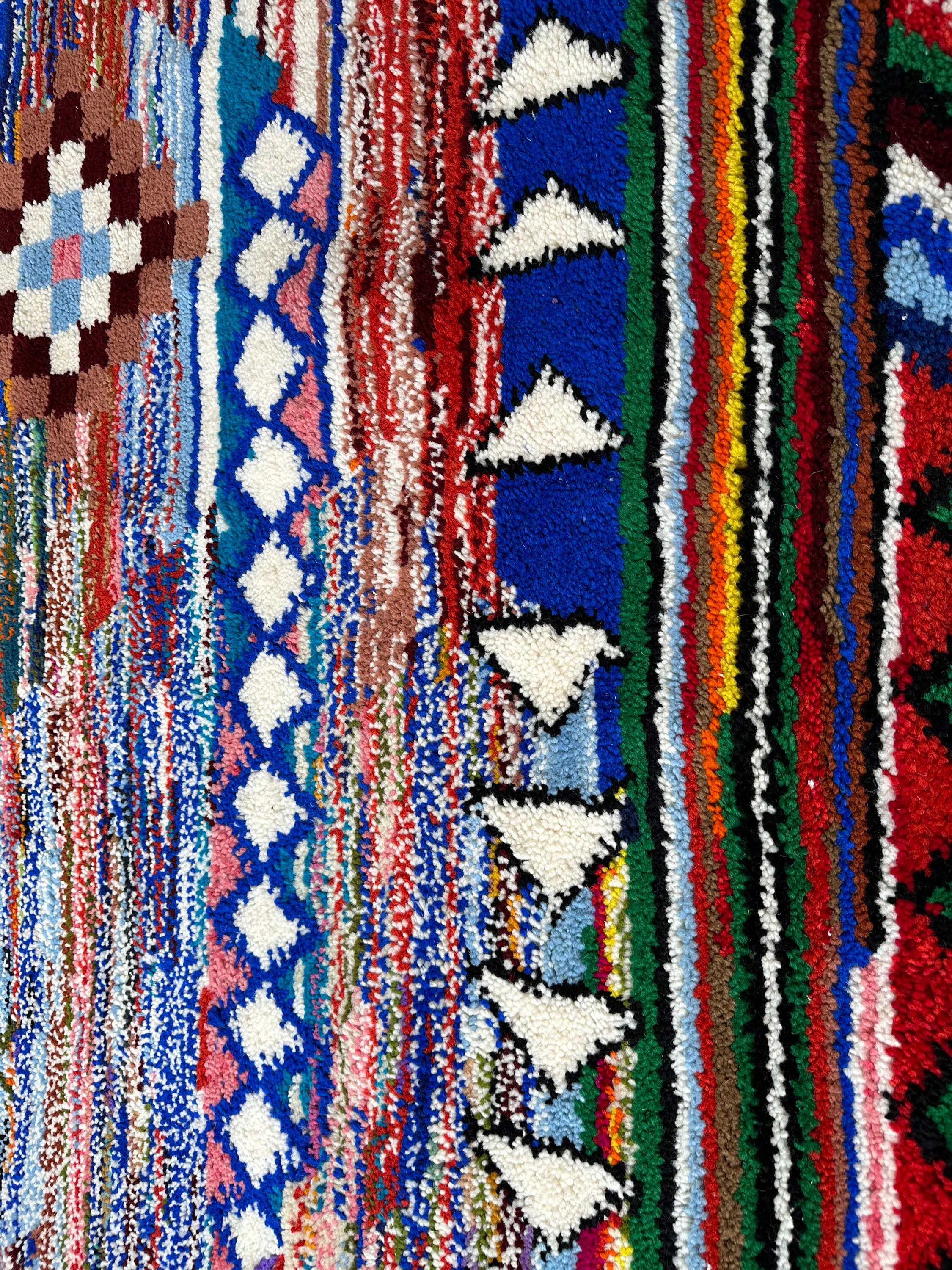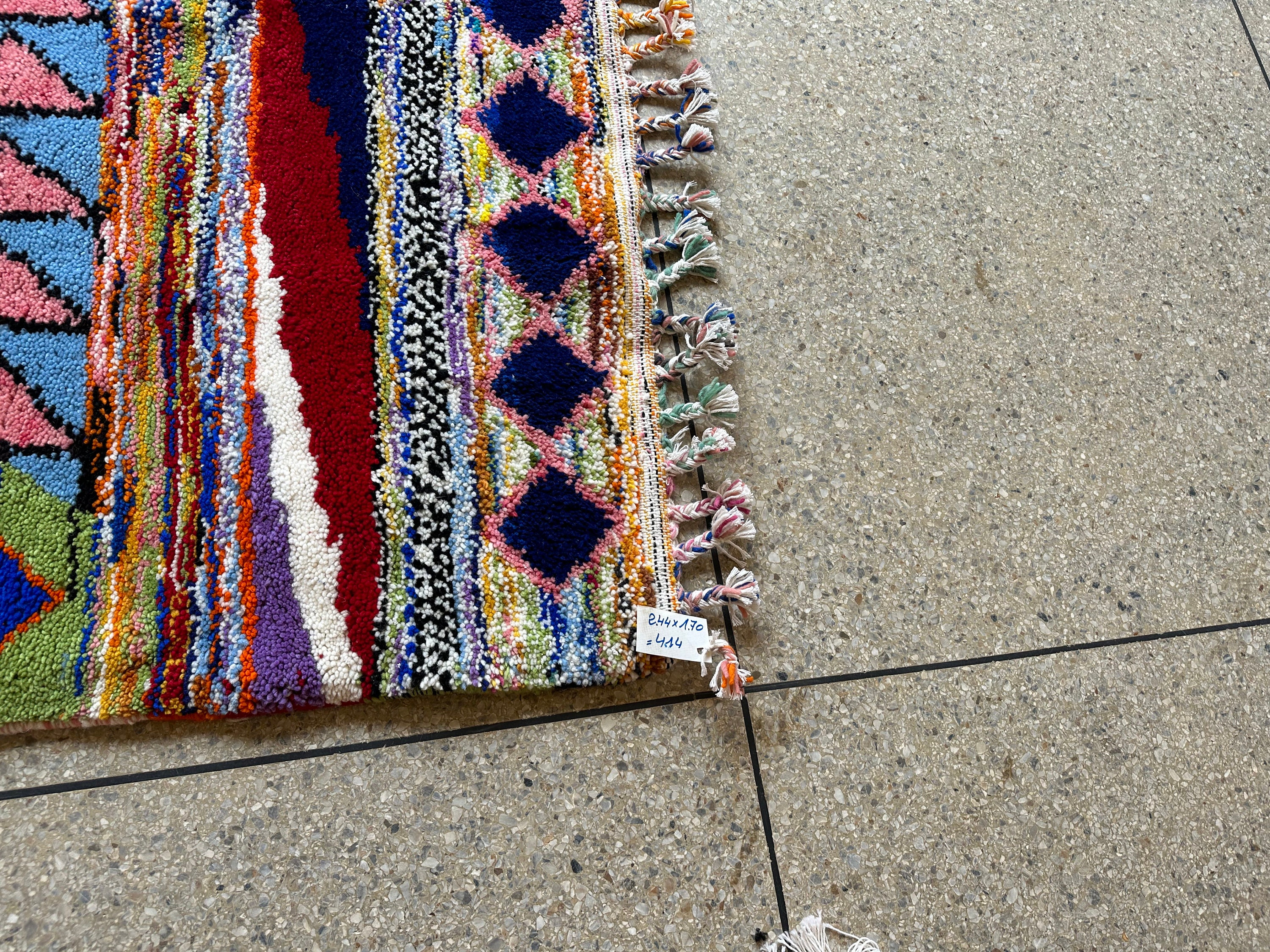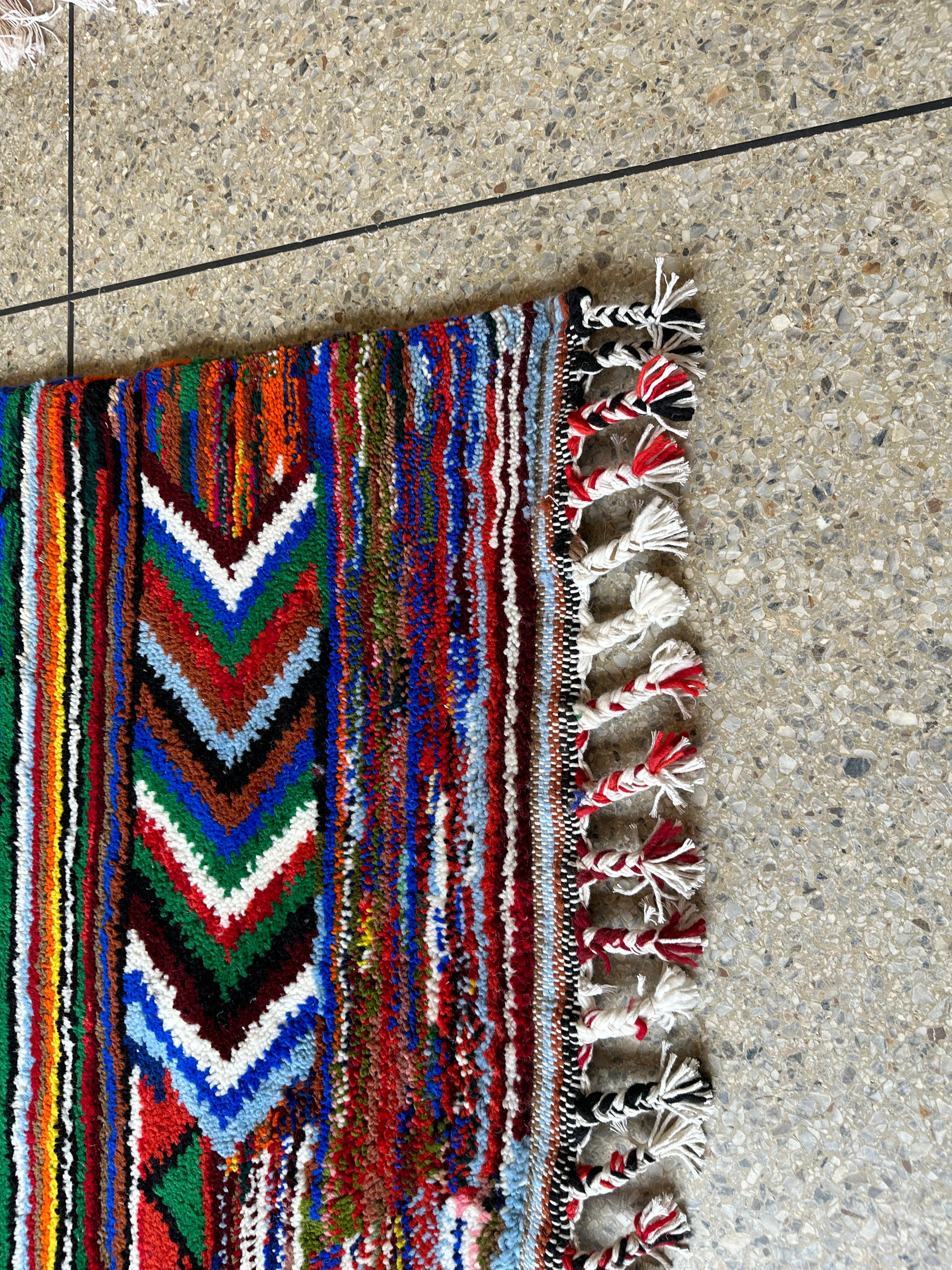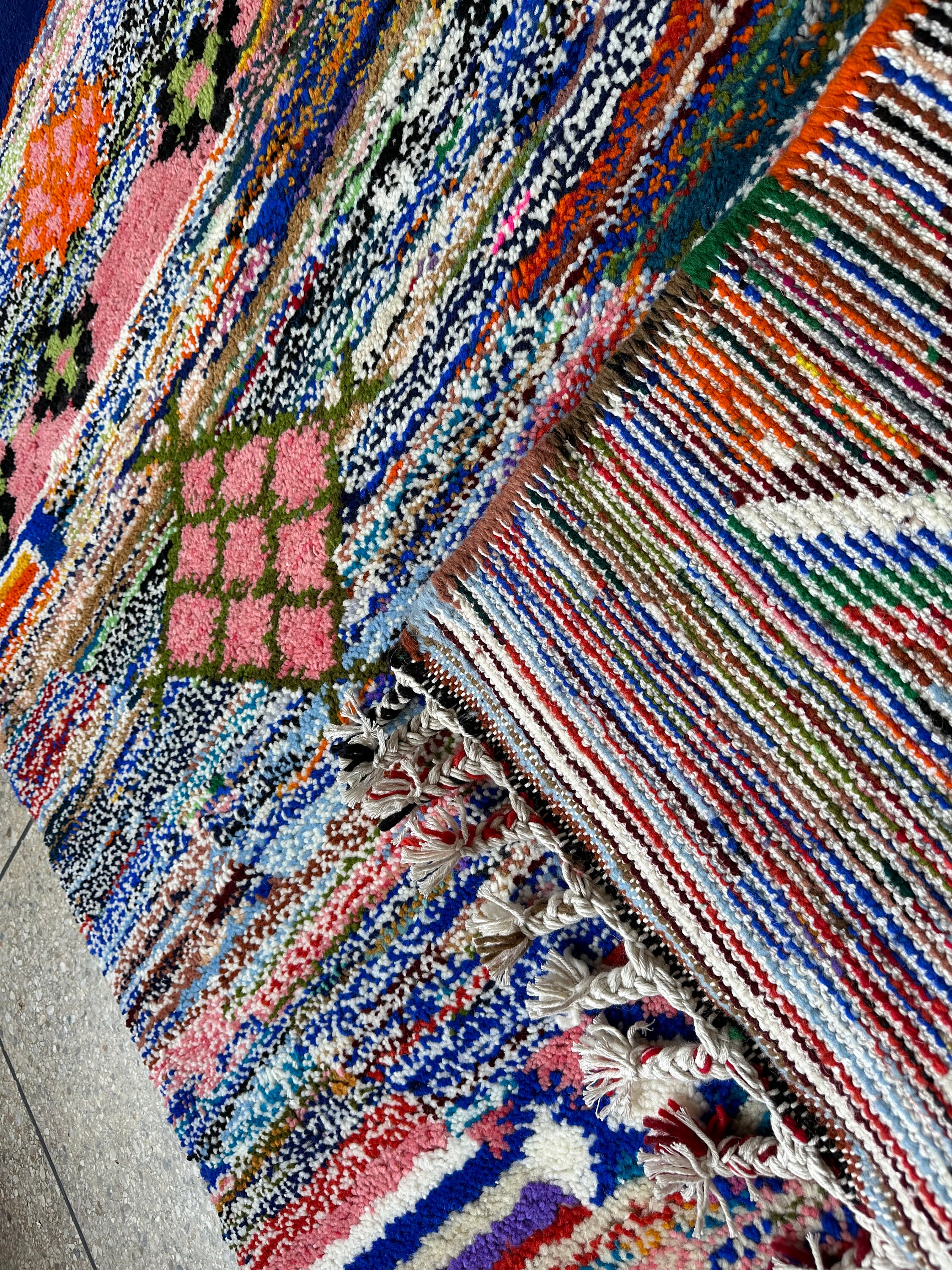 .Multi Color Wool Bougad Rug , Game Room Rug , Handmade Moroccan Rug, Colorful Hand Woven Wool Rug, Unique Geometric Rugs,8x5.5FT Wool Rug.