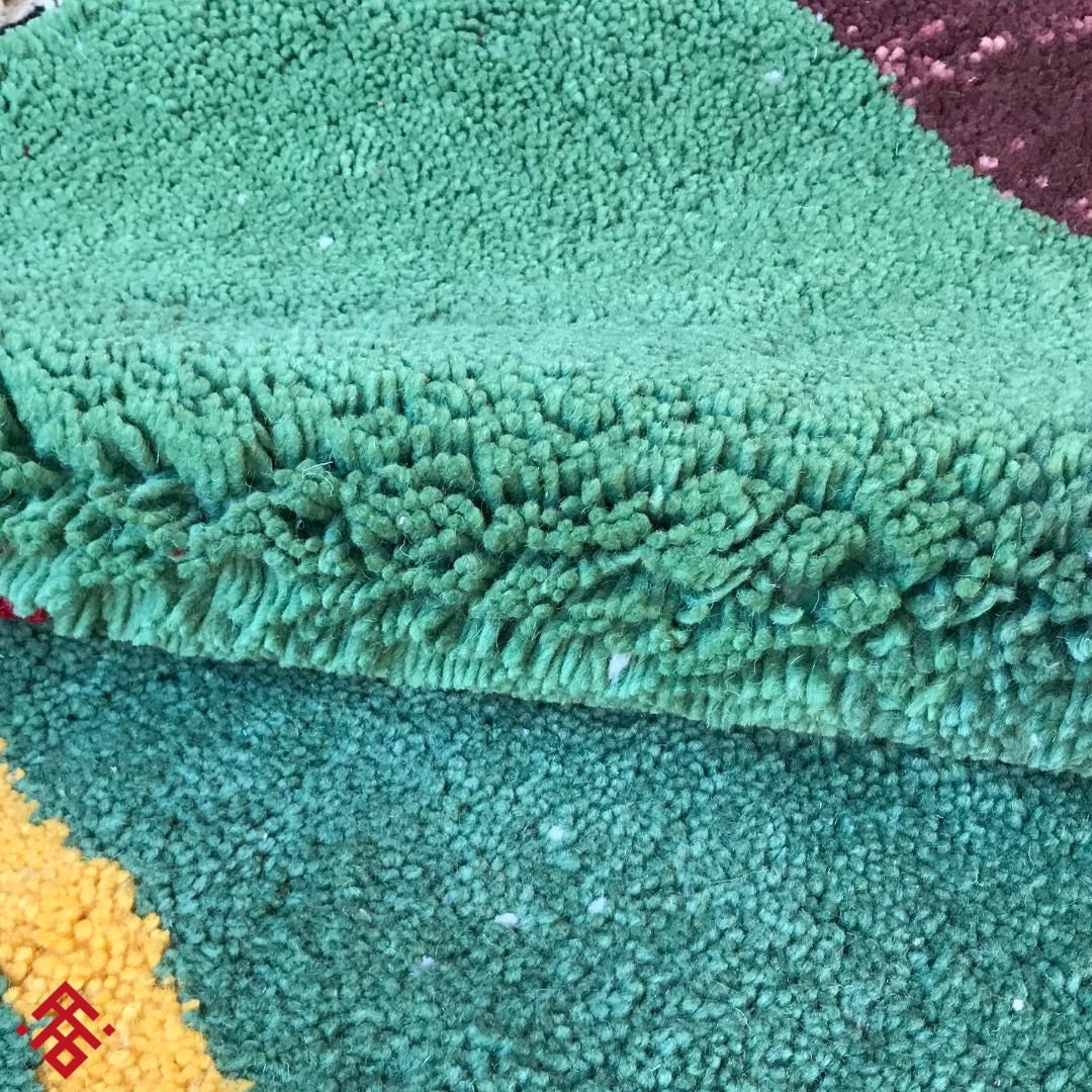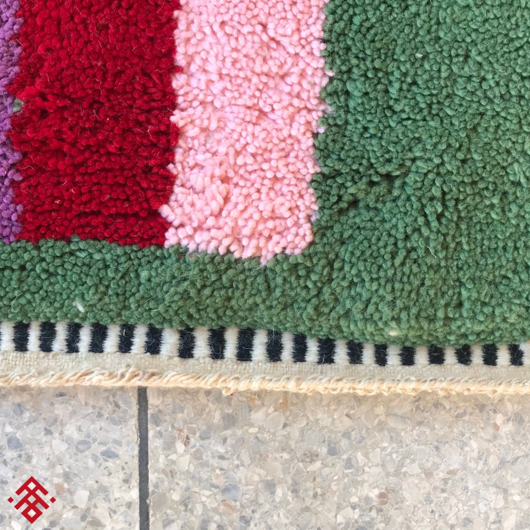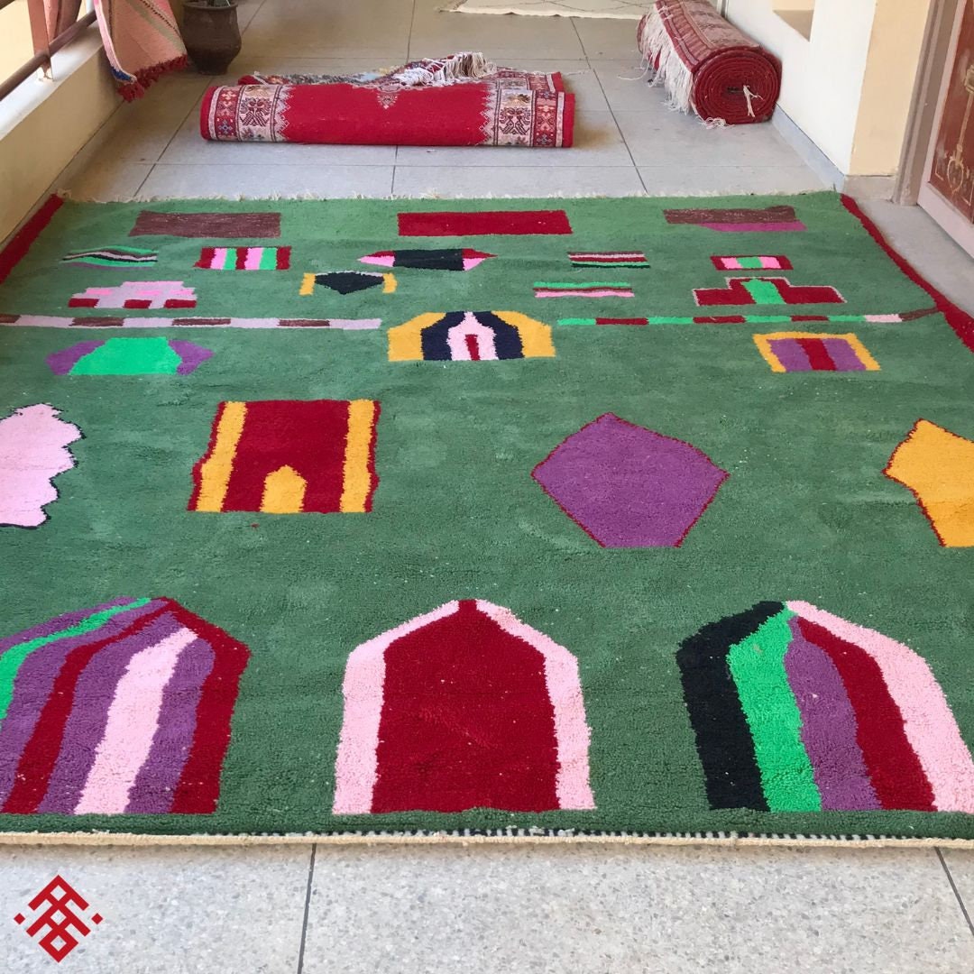 Bring boho charm to your home with this handmade green abstract Beni Ourain rug. Crafted from soft, natural wool, this cozy area rug adds warmth and style to your living room or bedroom. Its unique design and eco-friendly materials make it a perfect choice for modern bohemian decor. Handmade by skilled artisans, this rug is both durable and luxurious. Elevate your space with this timeless piece today!