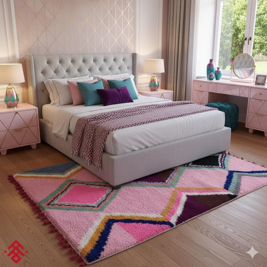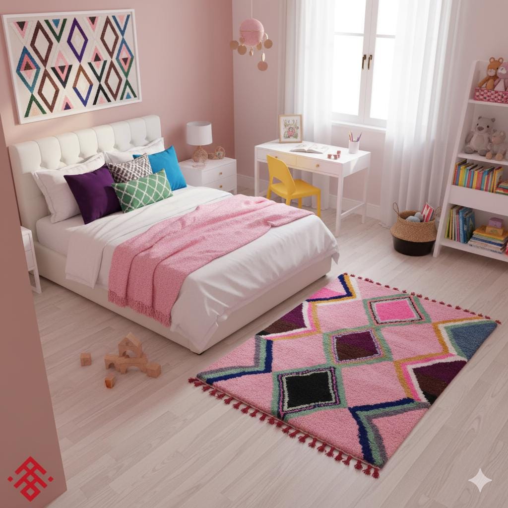 Transform your space with our stunning Pink Moroccan Rug, a delightful blend of tradition and style. This Geometric Beni Ourain Rug, crafted from high-quality wool, offers durability and comfort as a custom shag rug tailor-made for your home. Perfect as a Berber carpet, it adds a touch of elegance and warmth to any room. Elevate your decor with this exceptional handmade wool rug that embodies artisan craftsmanship and timeless design. Experience luxury with our unique area rugs today!