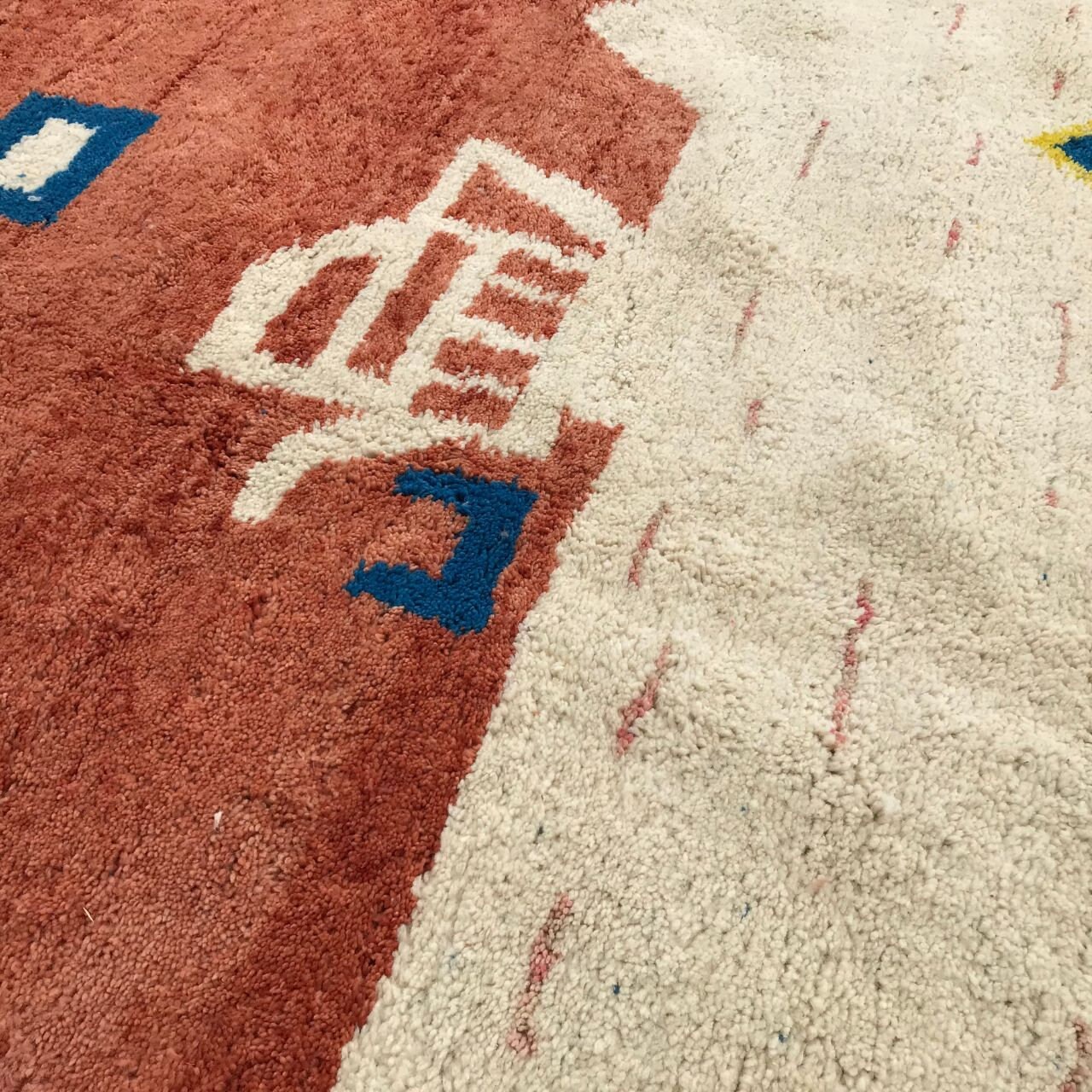 📌 Handwoven Moroccan wool rug featuring a unique abstract design. Soft, cozy, and perfect for boho, modern, or minimalist home decor.