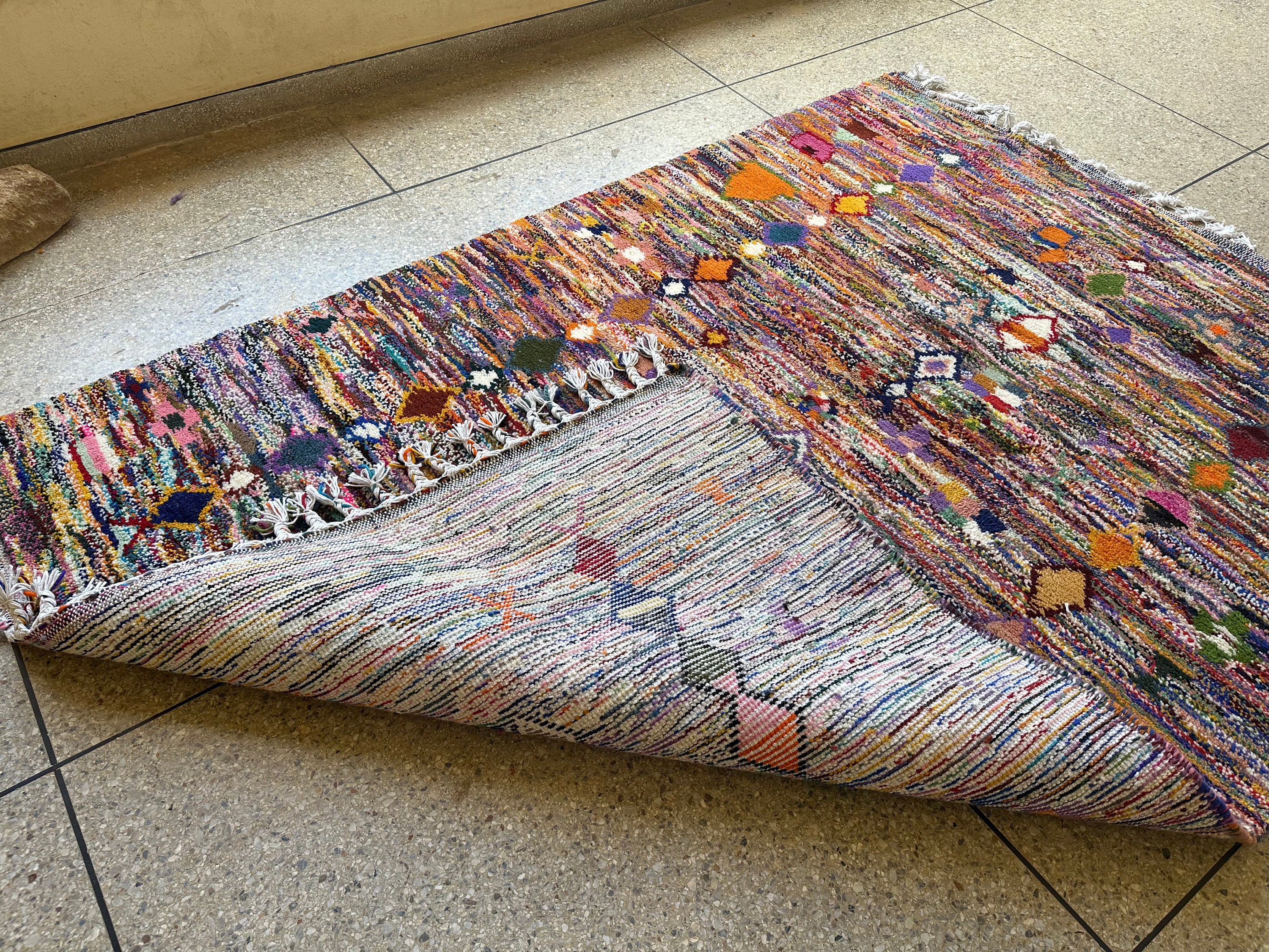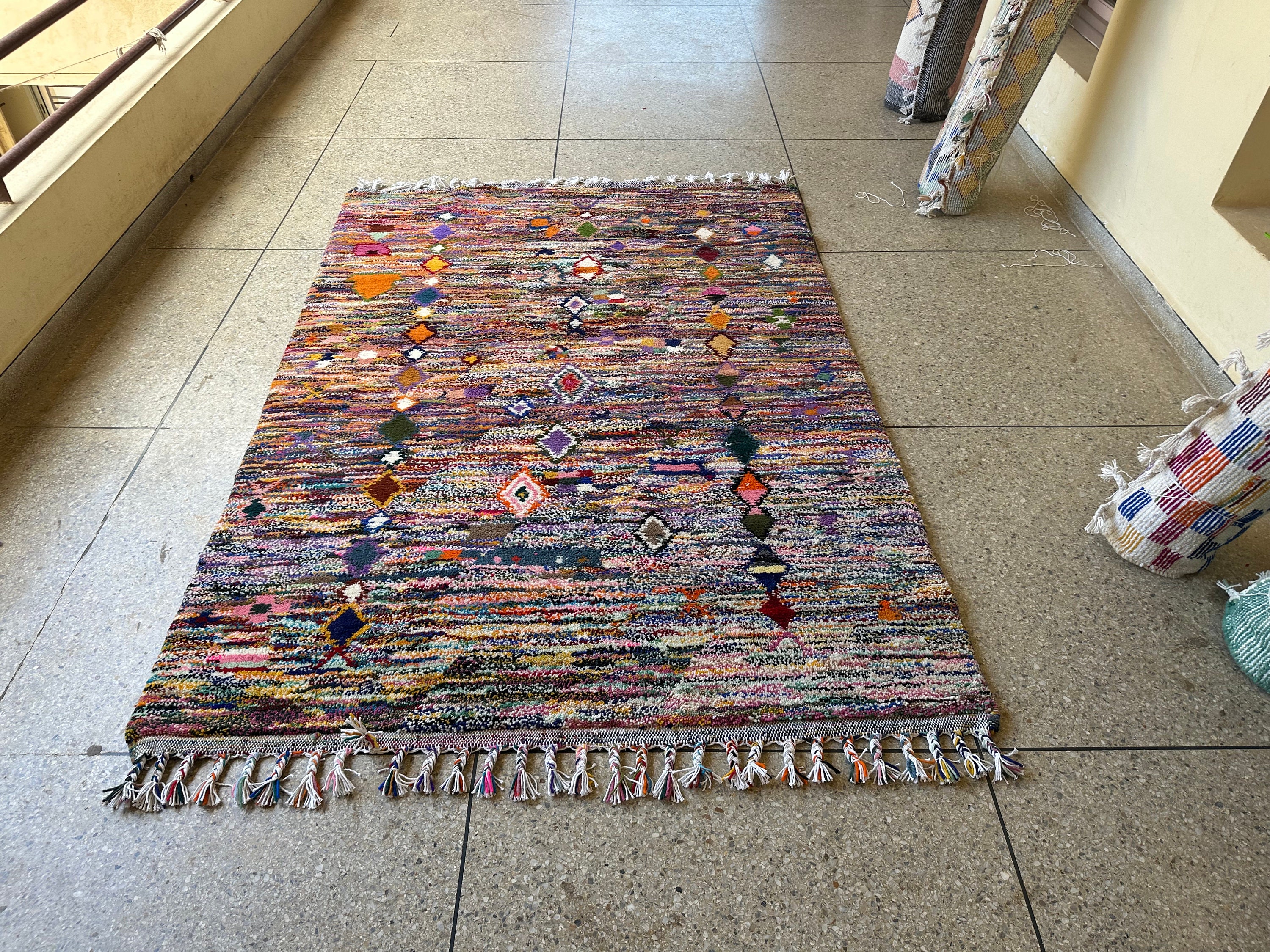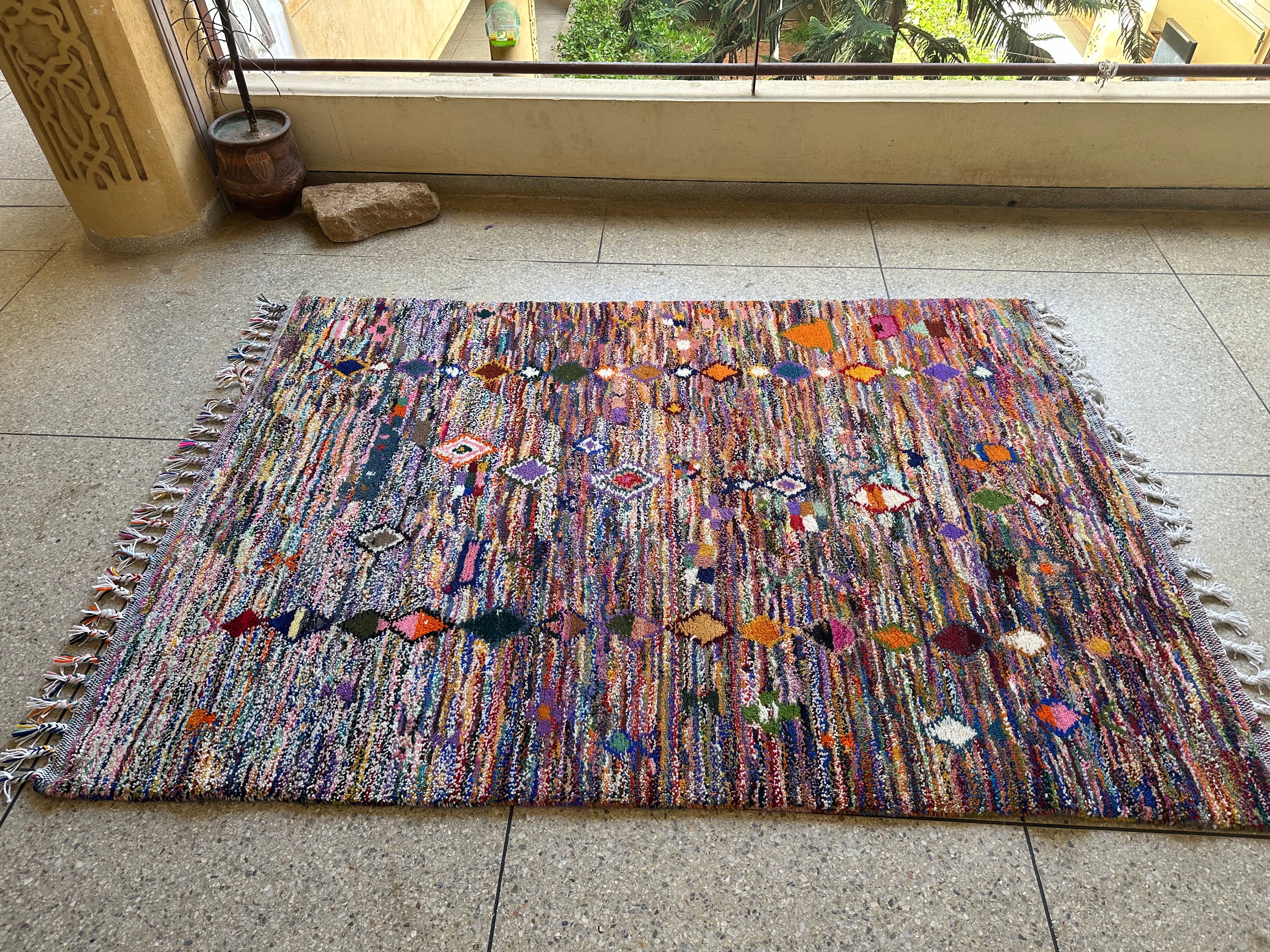 .8.2x5.7FT Moroccan Beni Ourain Rugs, Berber Carpet, Abstract colorful Boujaad Rug, Handmade Rug, Genuine Wool Rug, Rug Azilal, Amazing Rug.