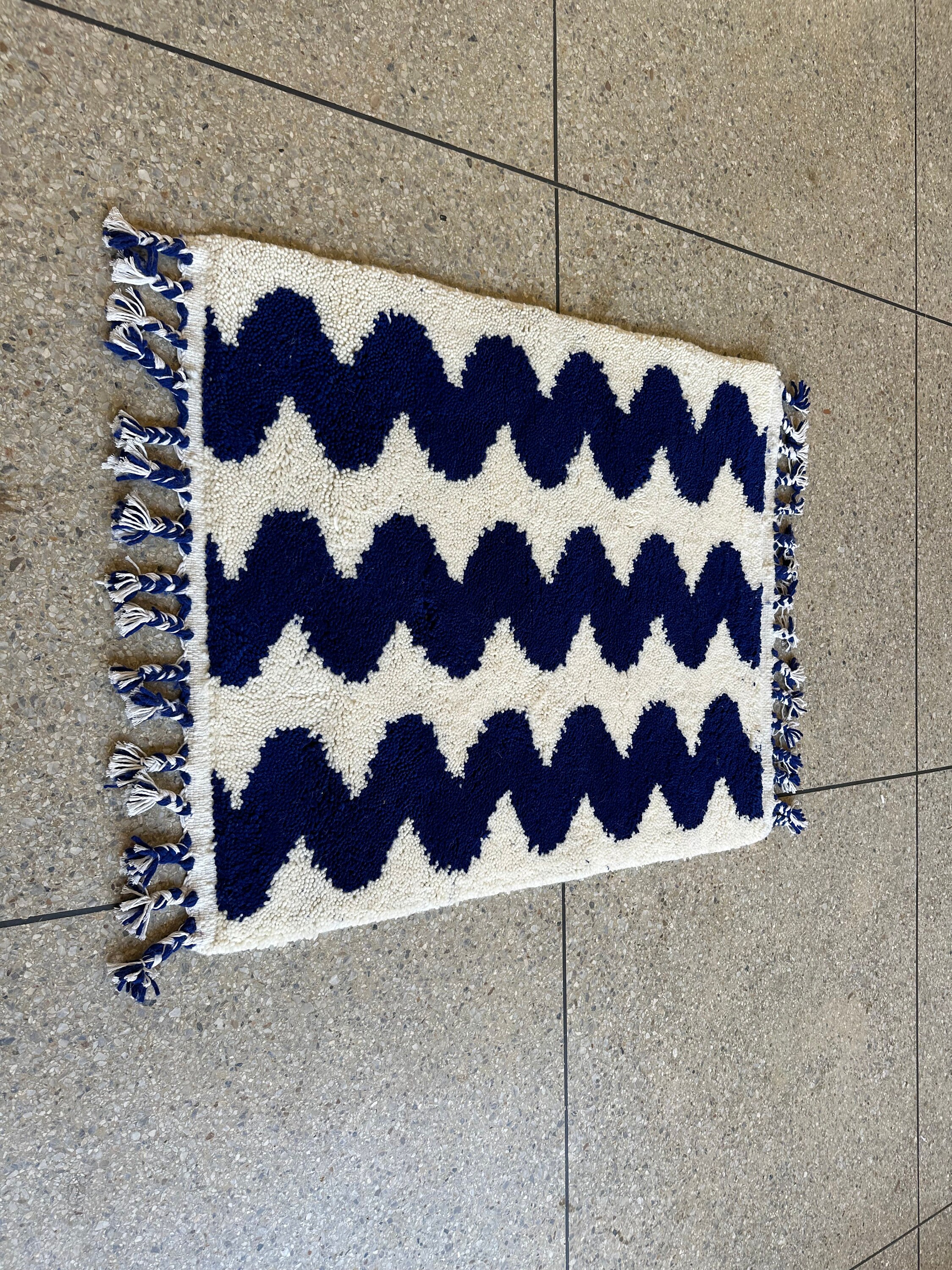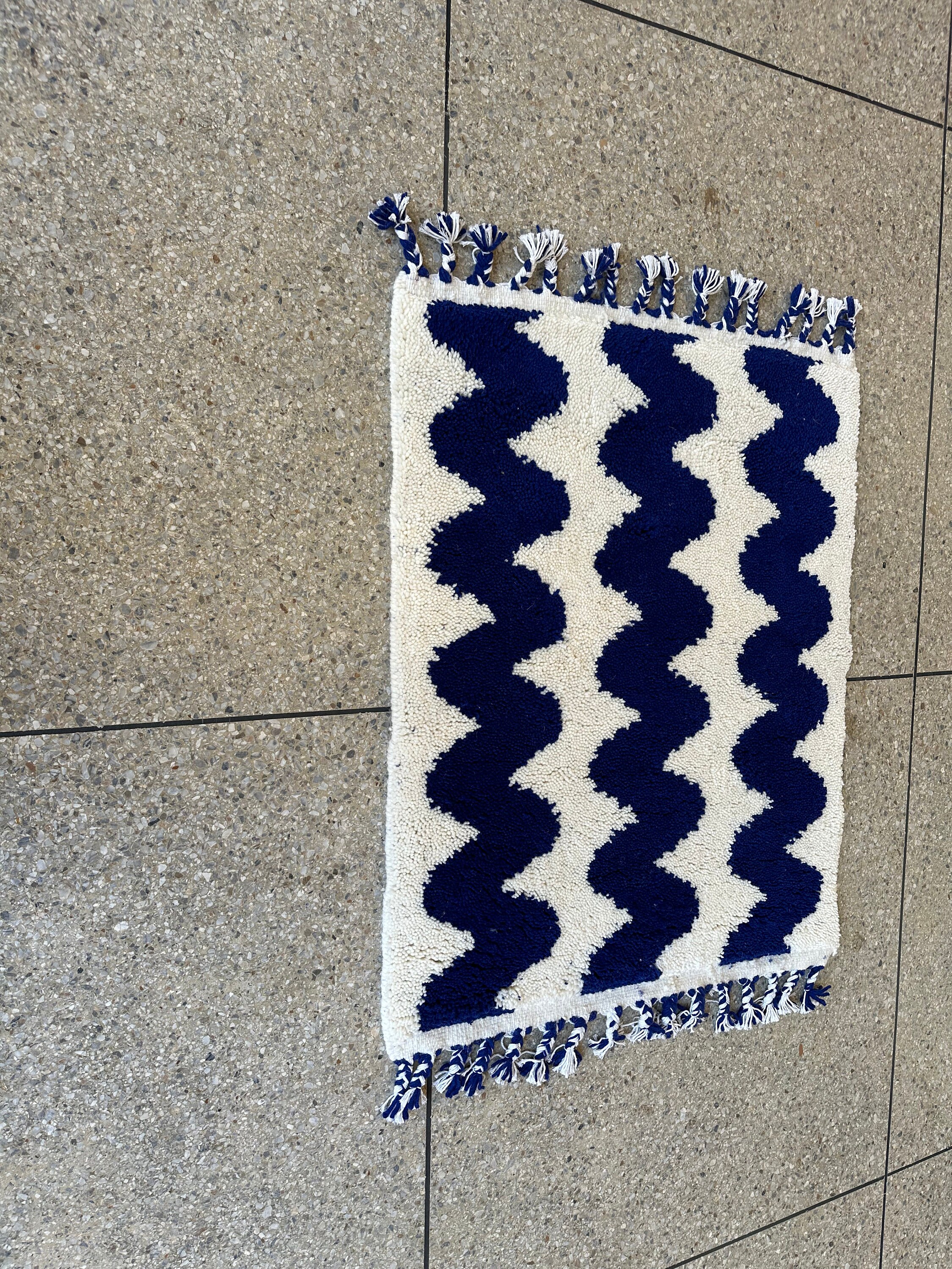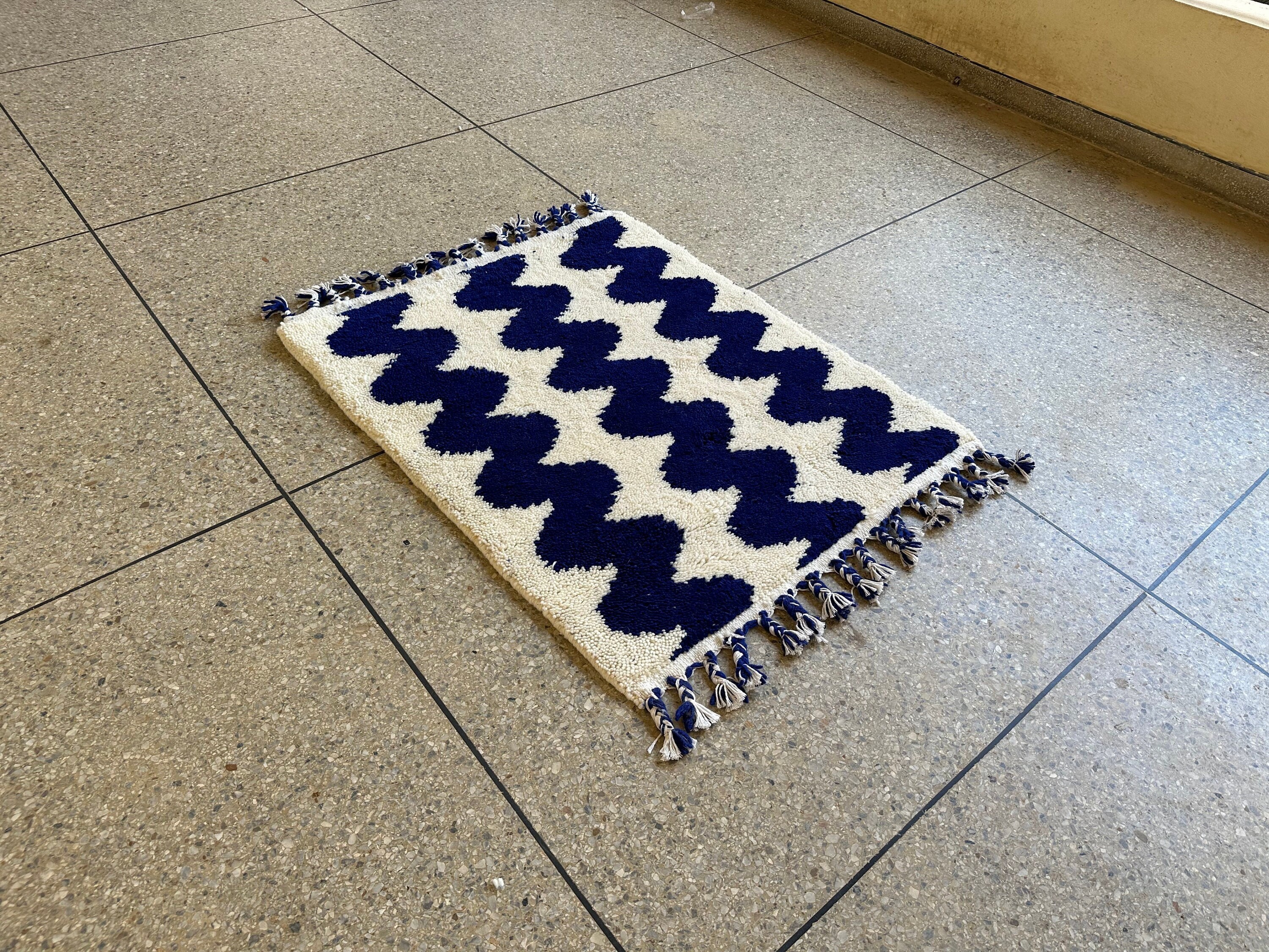 .Moroccan Area Rug, Moroccan Rug, Moroccan Blue Rug, Striped Beni Ourain Rug - Royal Blue and White Minimalist Boho Rug