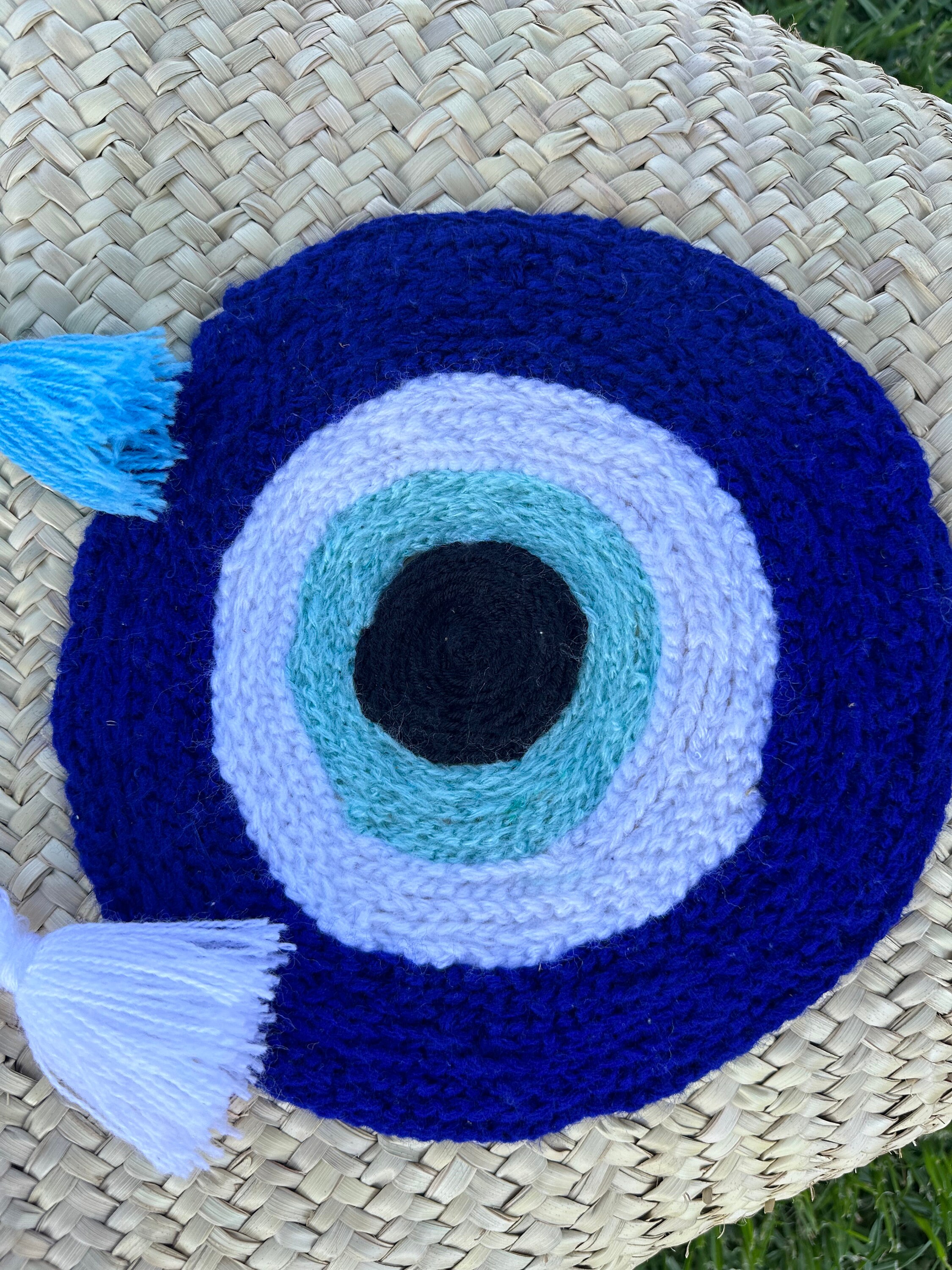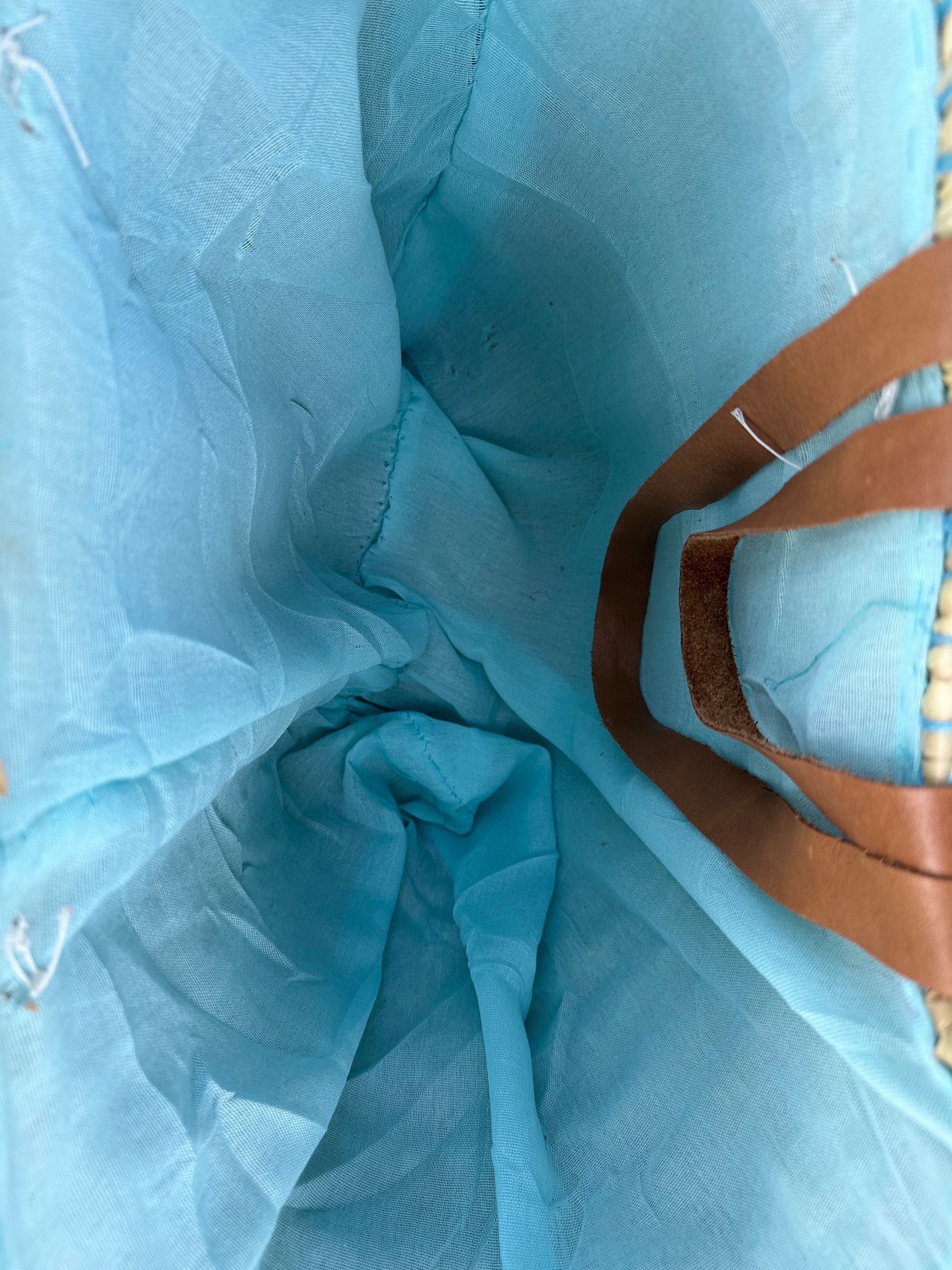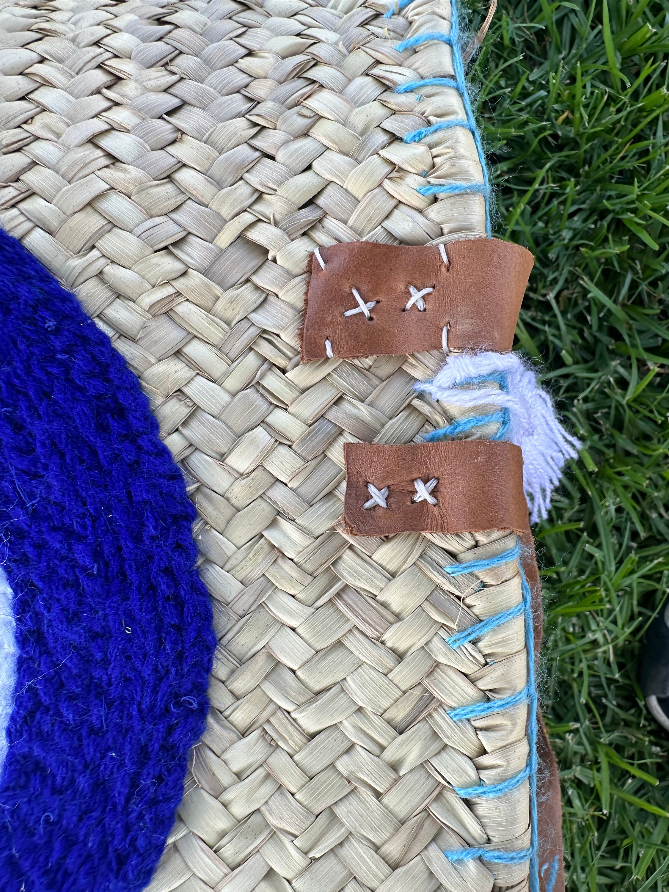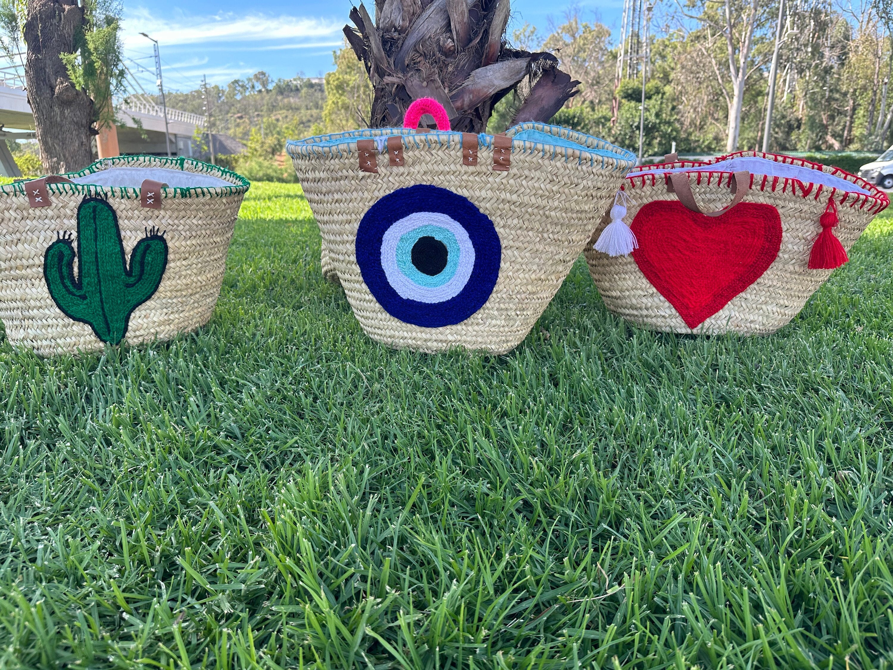 .Moroccan Straw Bag, Straw Beach Bag - Blue eye Shopping Basket - French Basket With Double Leather Handles - grocery market bag