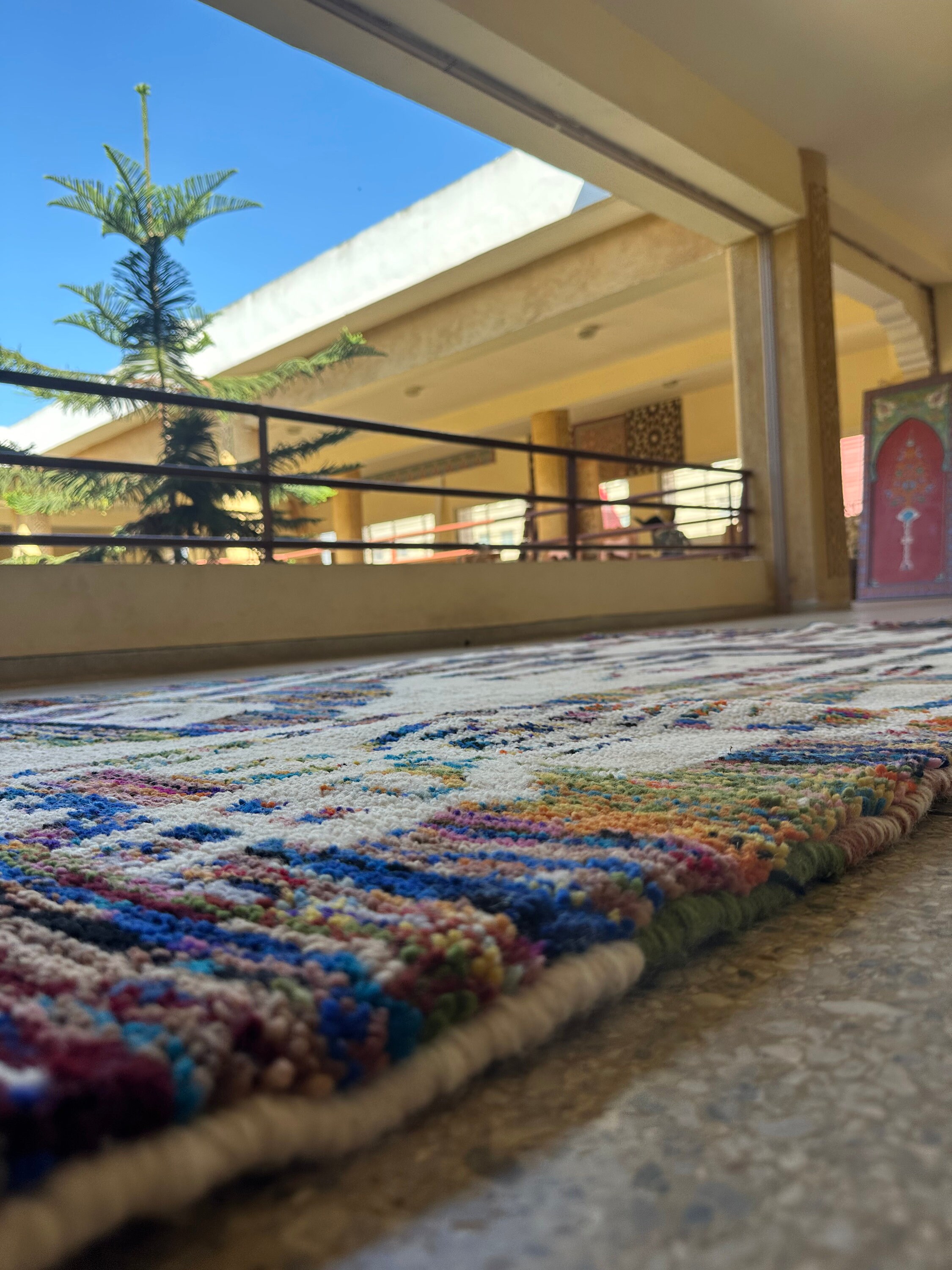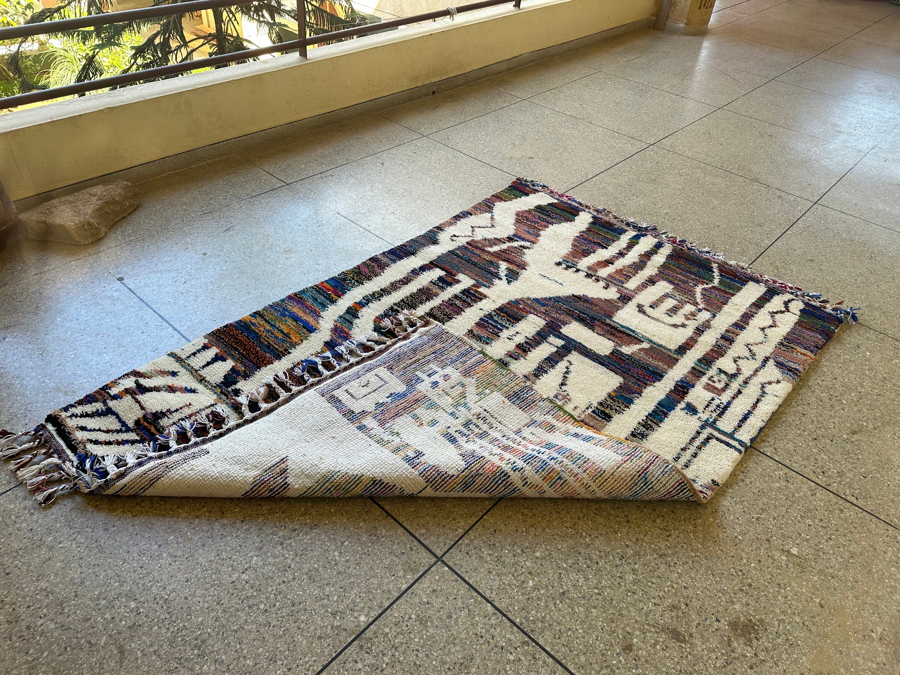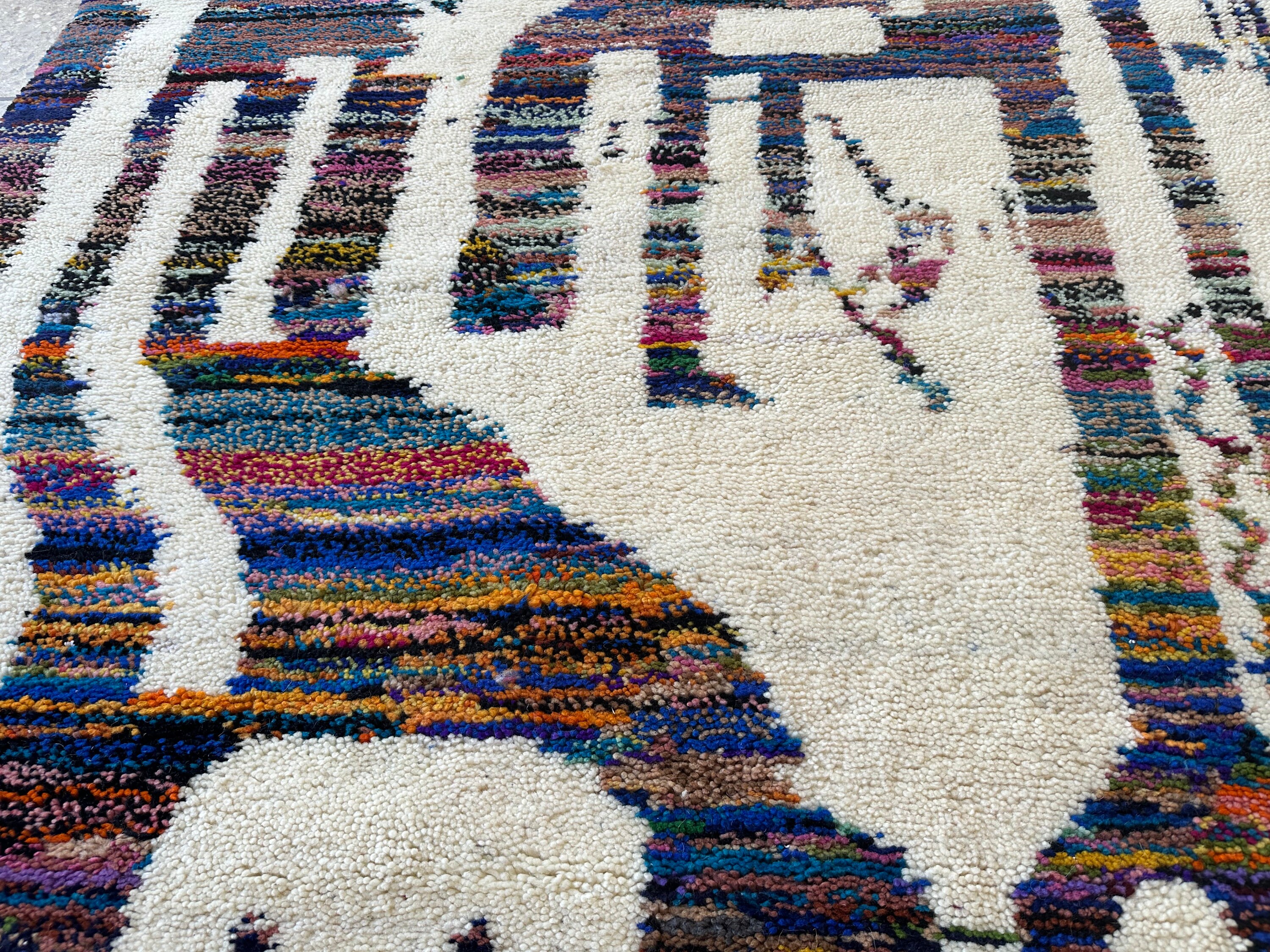 Add a vibrant touch to your home with this stunning white and multicolor abstract Moroccan rug! Handwoven from premium sheep wool by skilled Berber artisans, this unique Beni Ourain rug blends tradition with modern style. Its soft texture and playful multicolor patterns make it a perfect choice for a cozy living room, stylish bedroom, or cheerful kids’ room. Durable, authentic, and made with love, this custom area rug brings warmth and charm to any space. Order now to experience Moroccan craftsmanship at its finest!