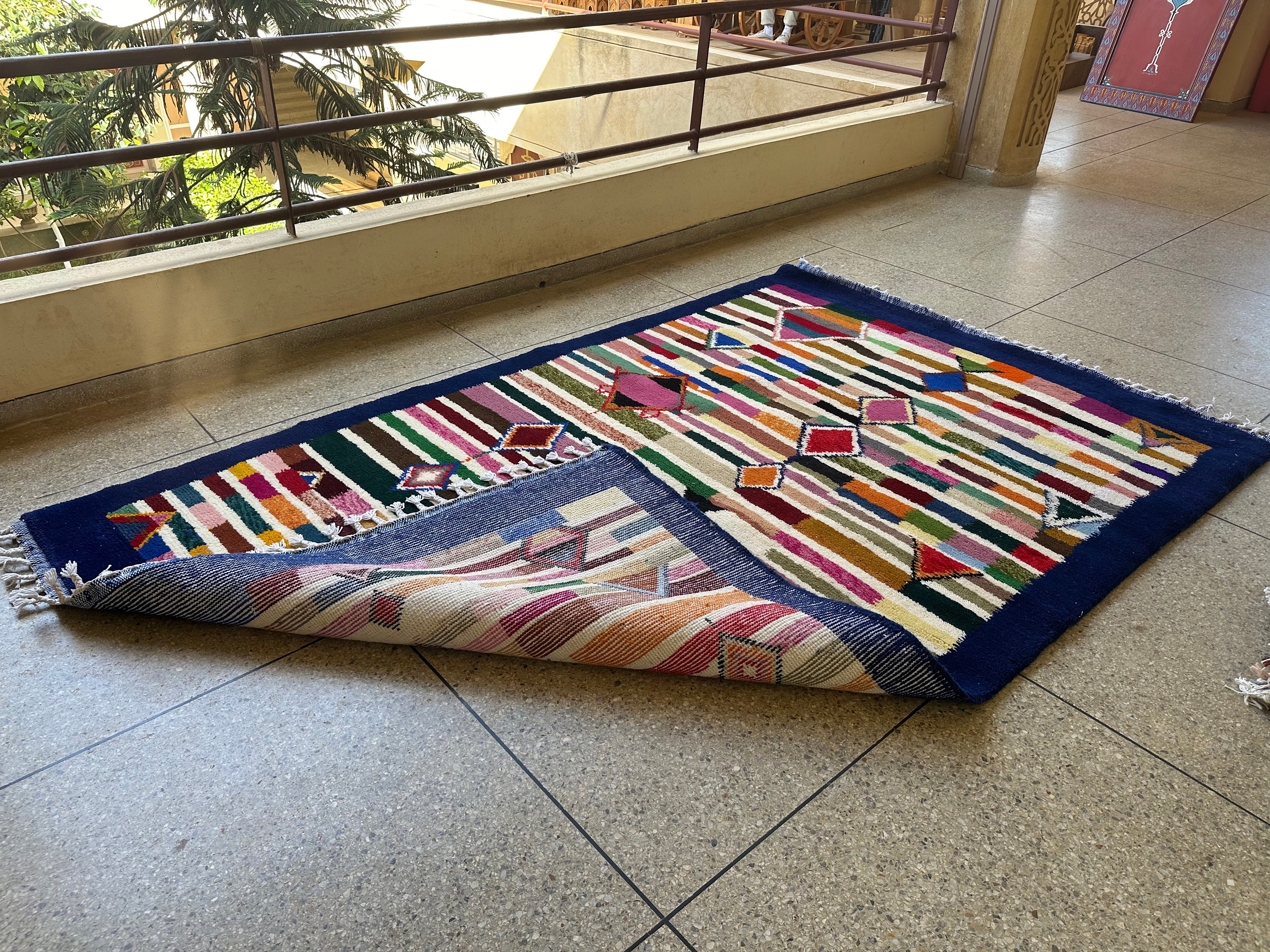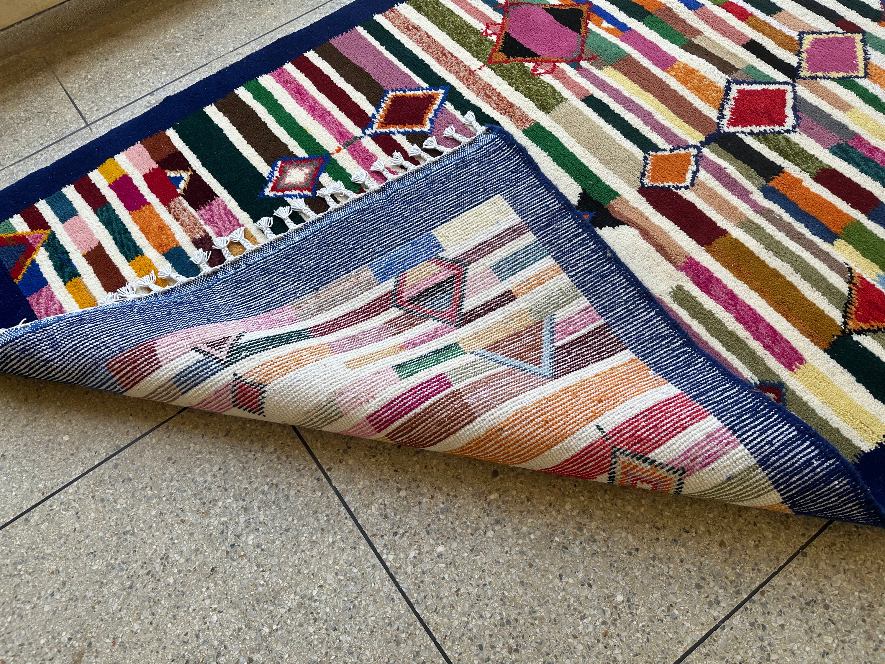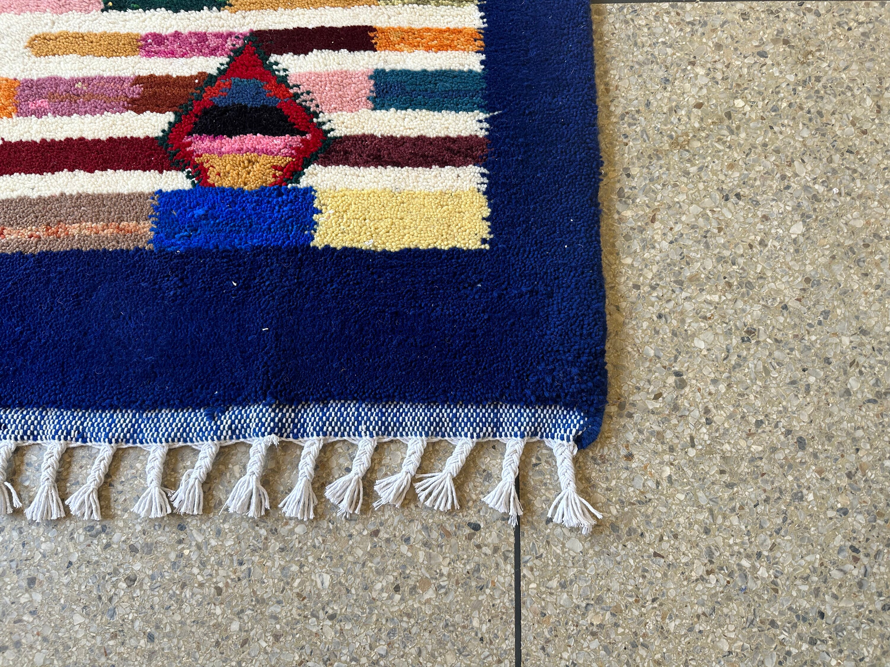.Authentic Moroccan rug, Berber Carpet, Genuine Wool rug, Handmade rug, Blue Custom Moroccan Rug, Colorful Wool Rug, New DESIGN MOROCCO