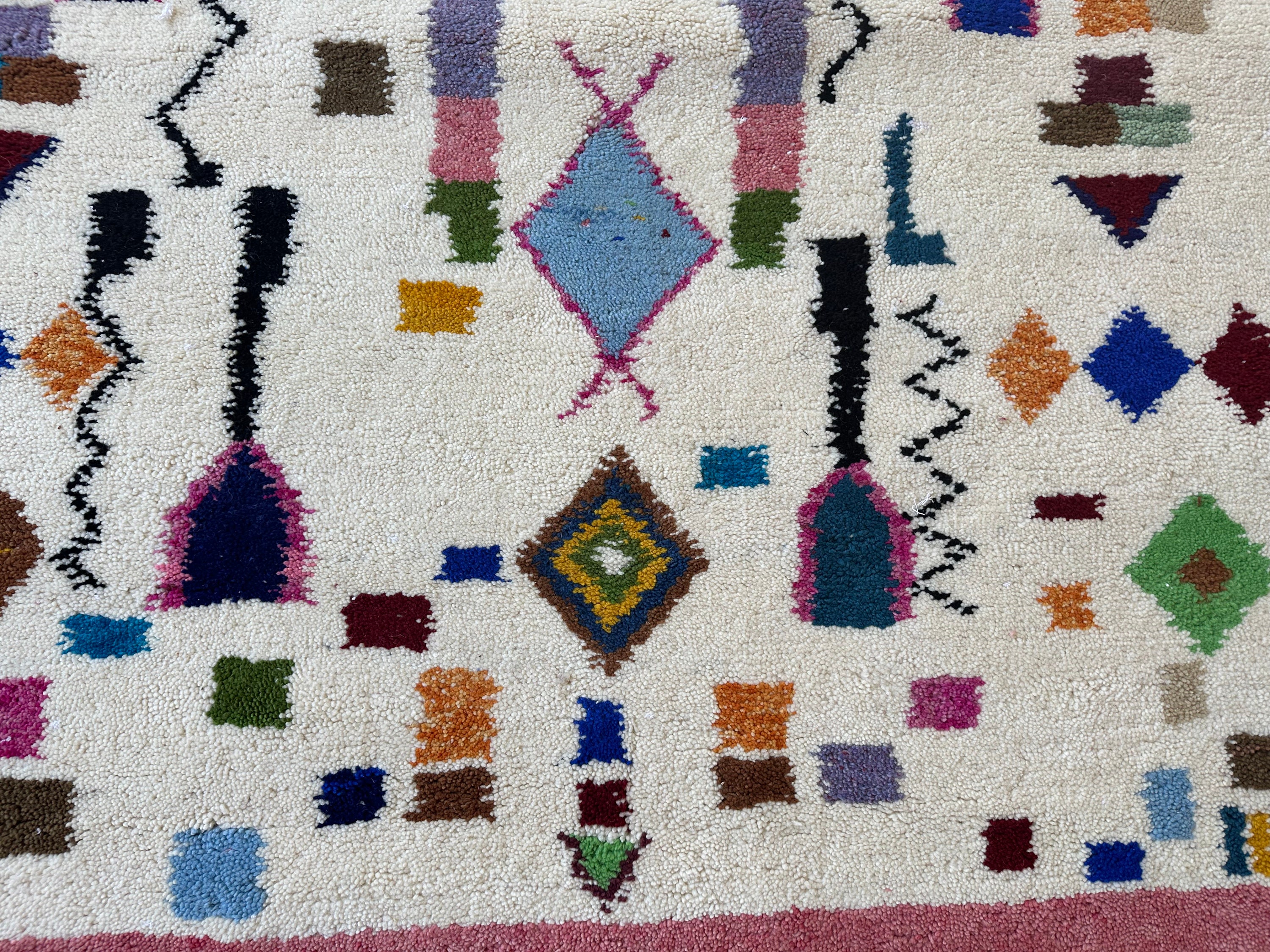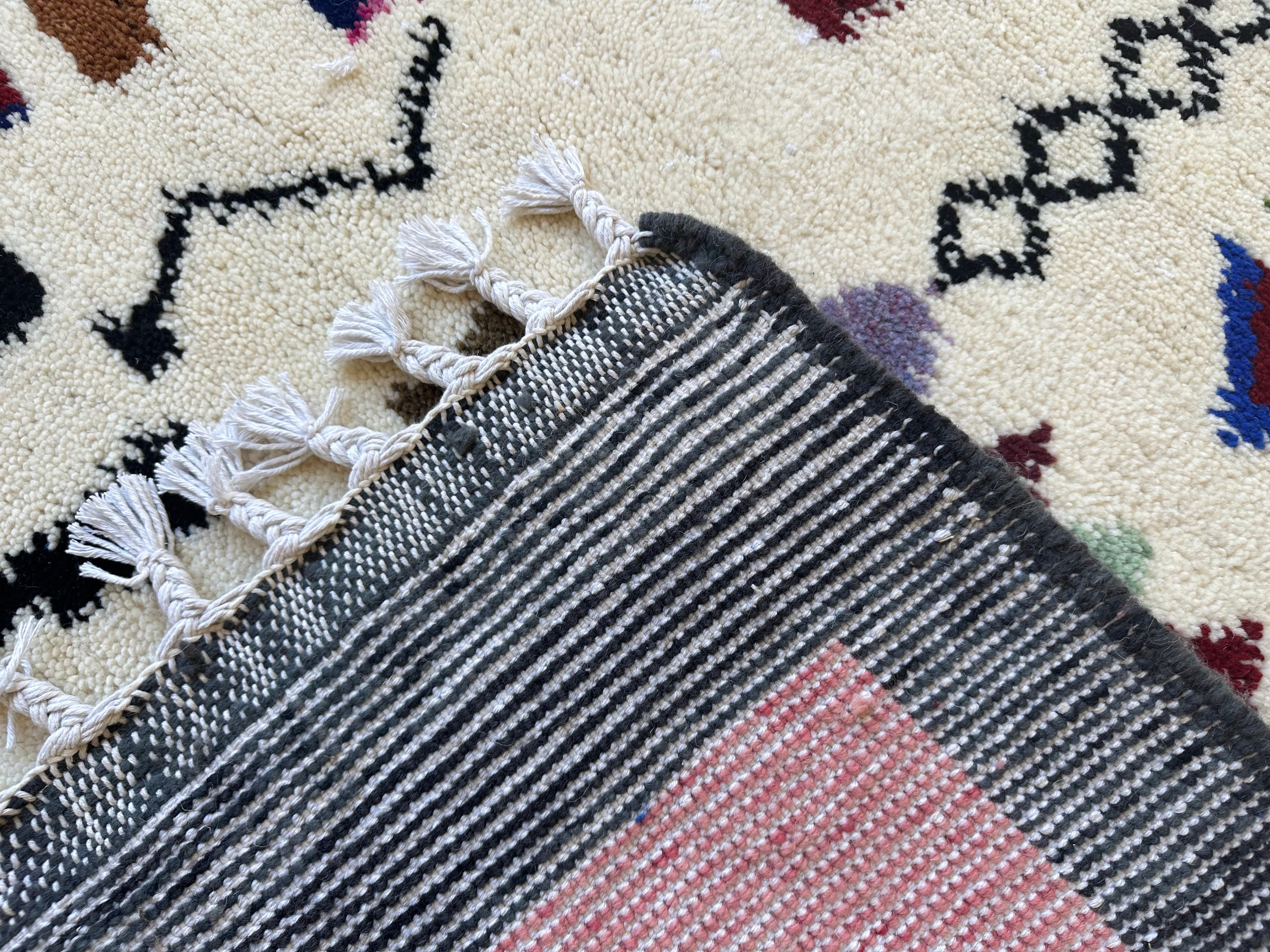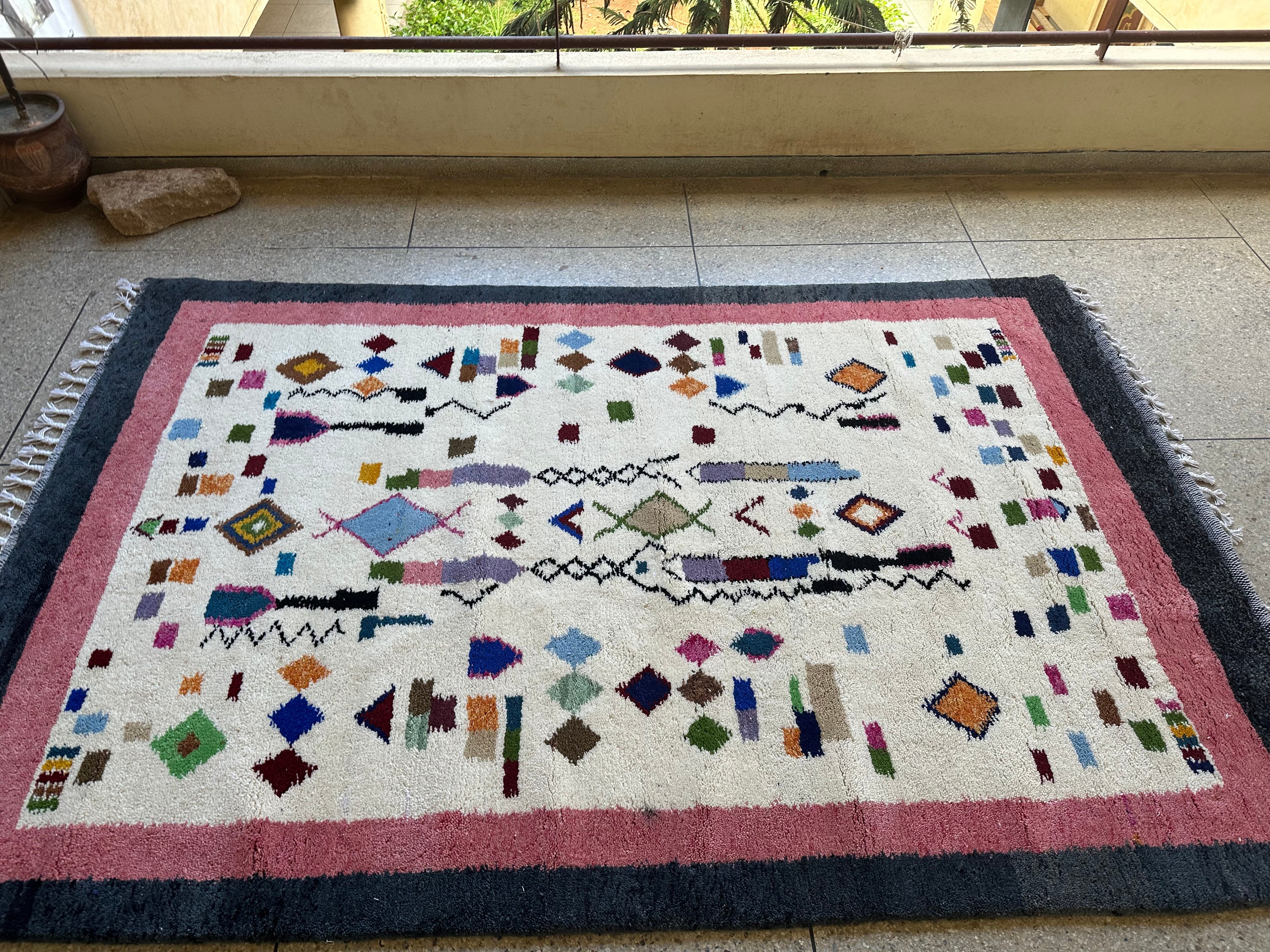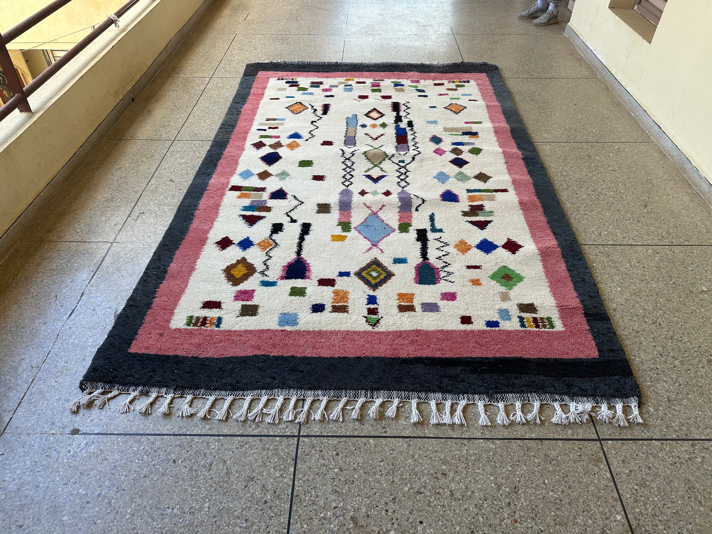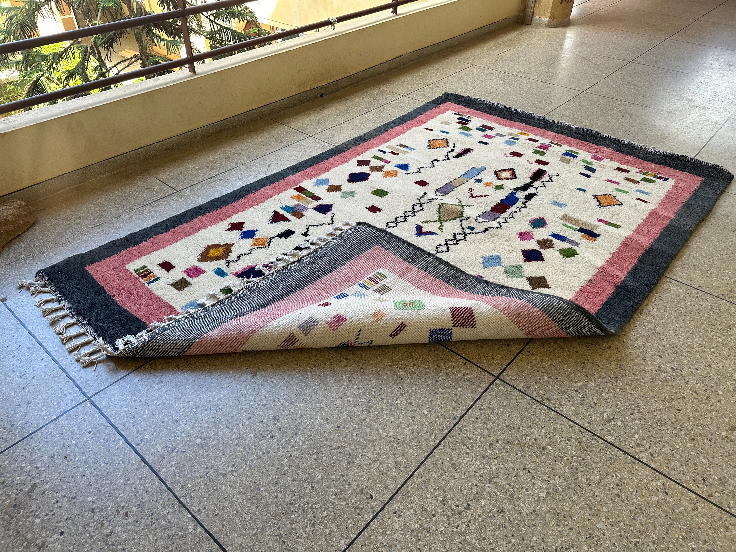 This fabulous Moroccan Rug that will give your room both a cozy feeling and stylish is made from 100% Natural sheep wool, It's Very plush and comfy to walk on, actually It's Heaven for your feet.