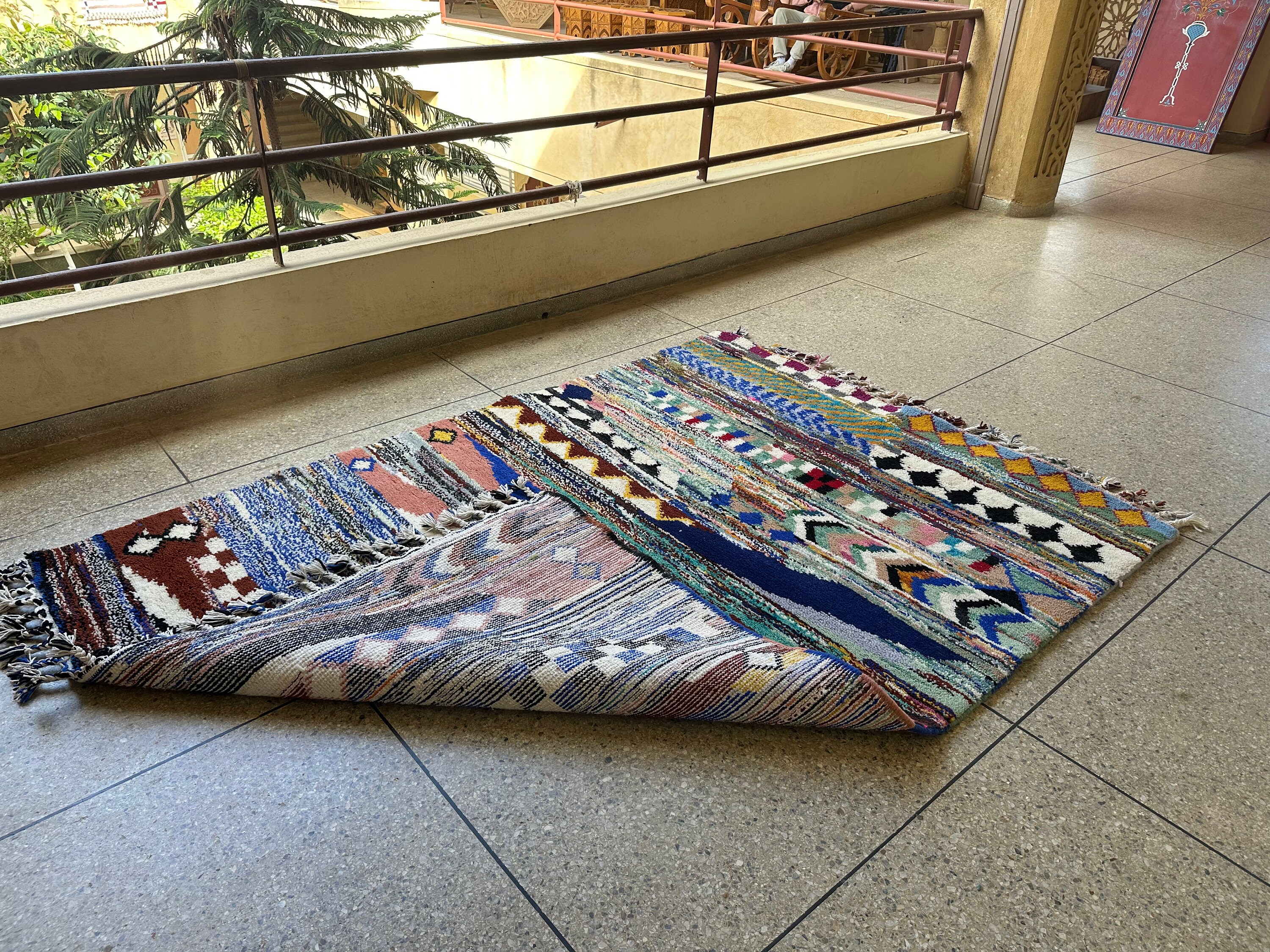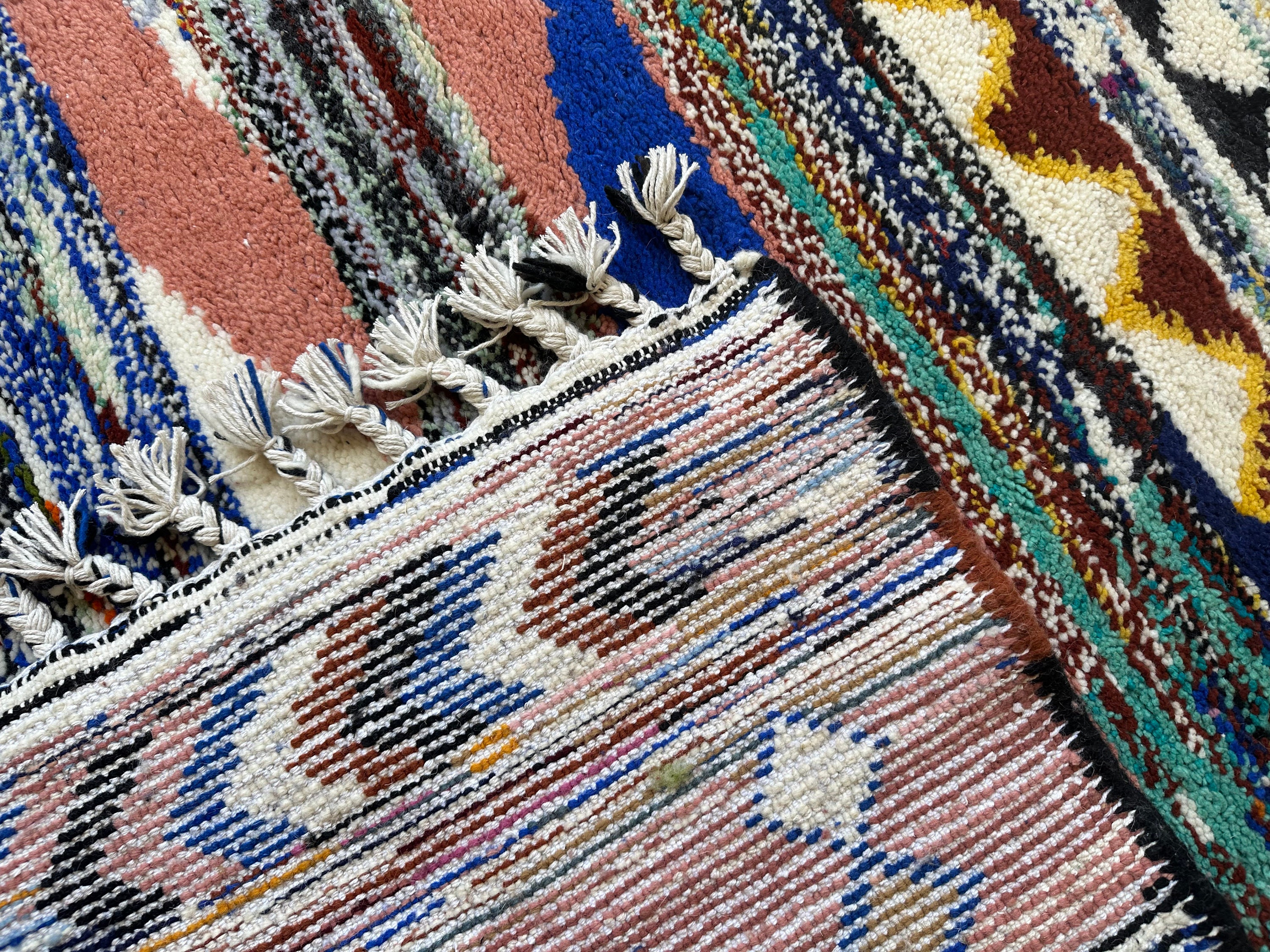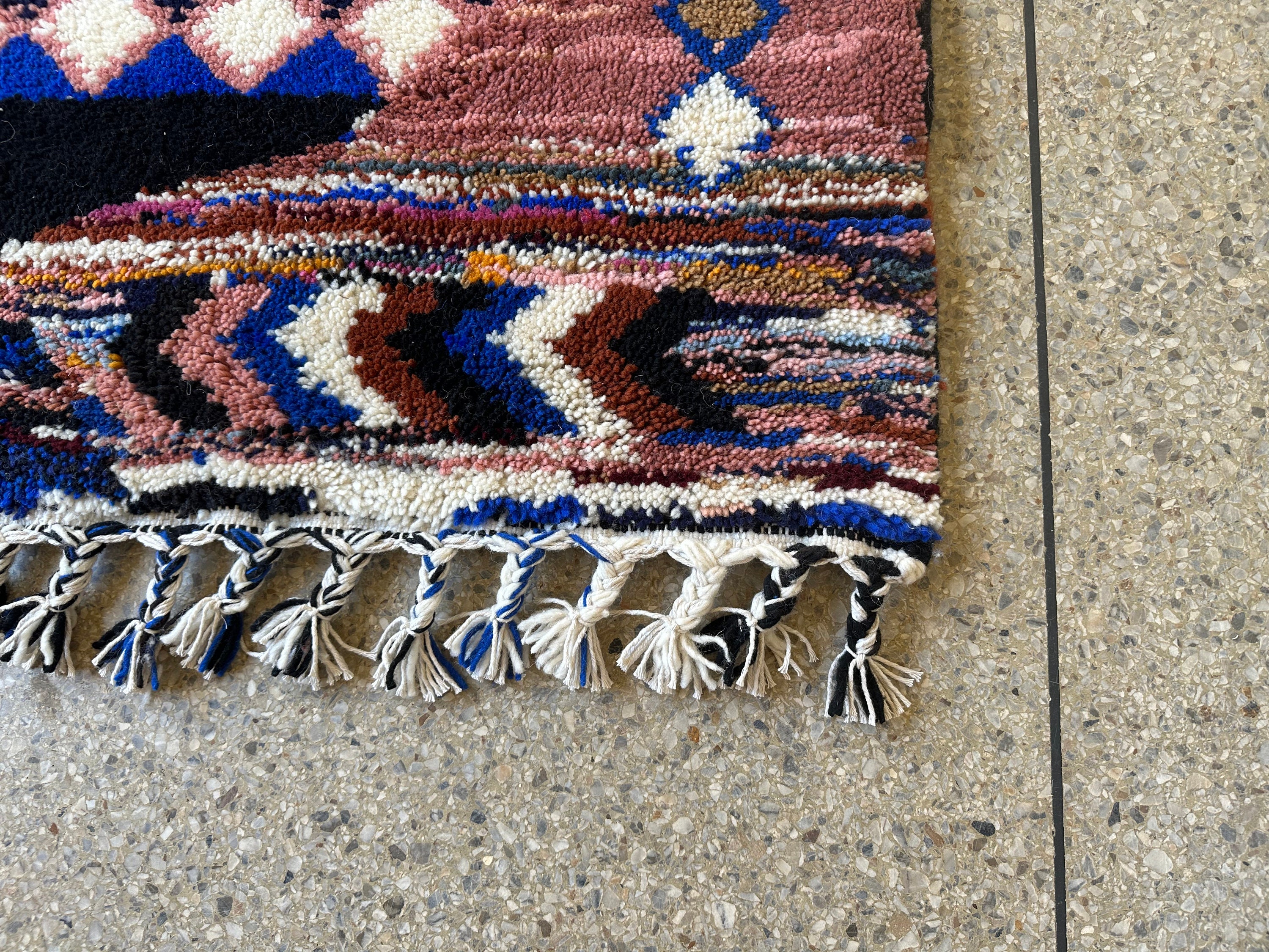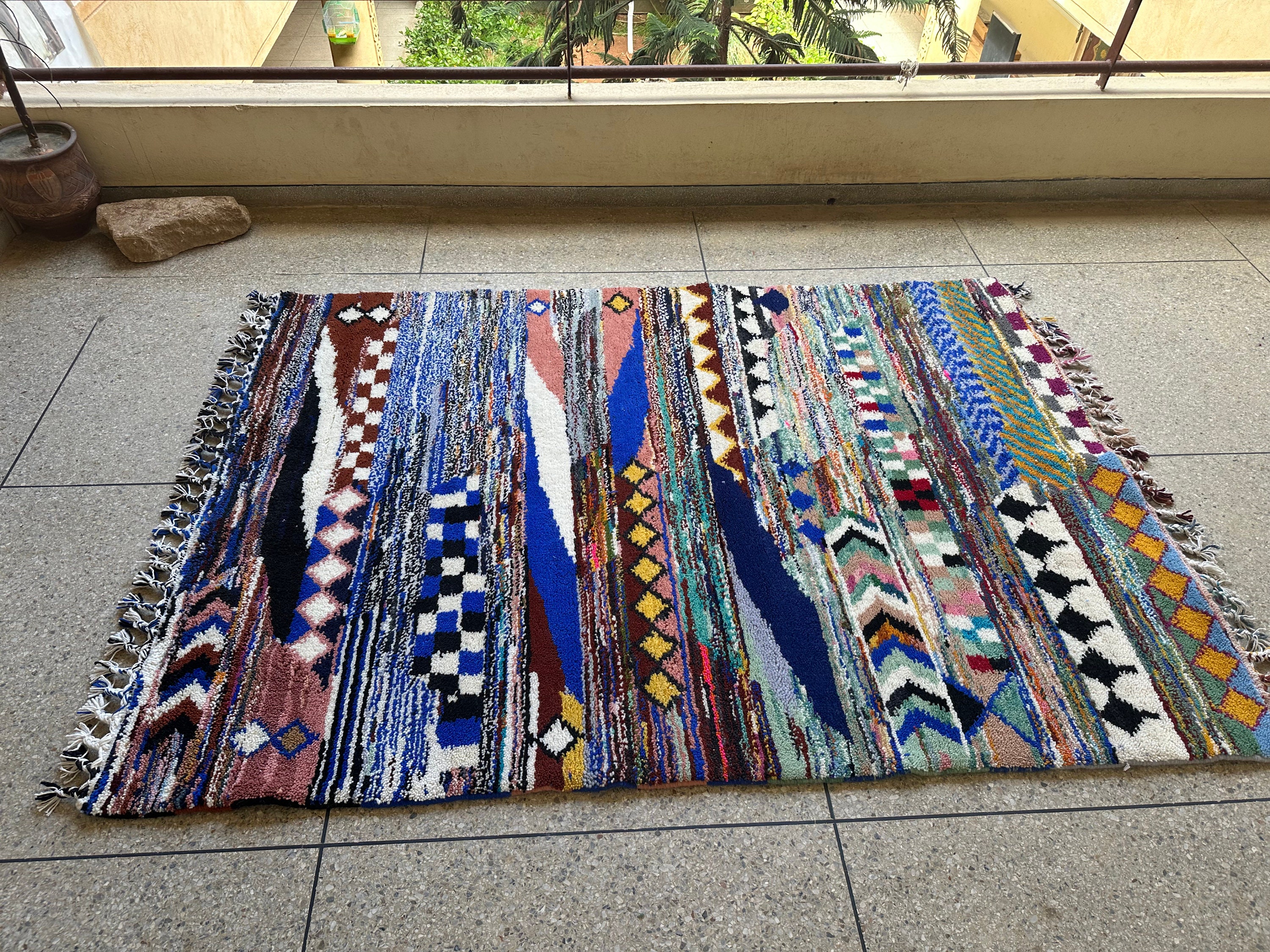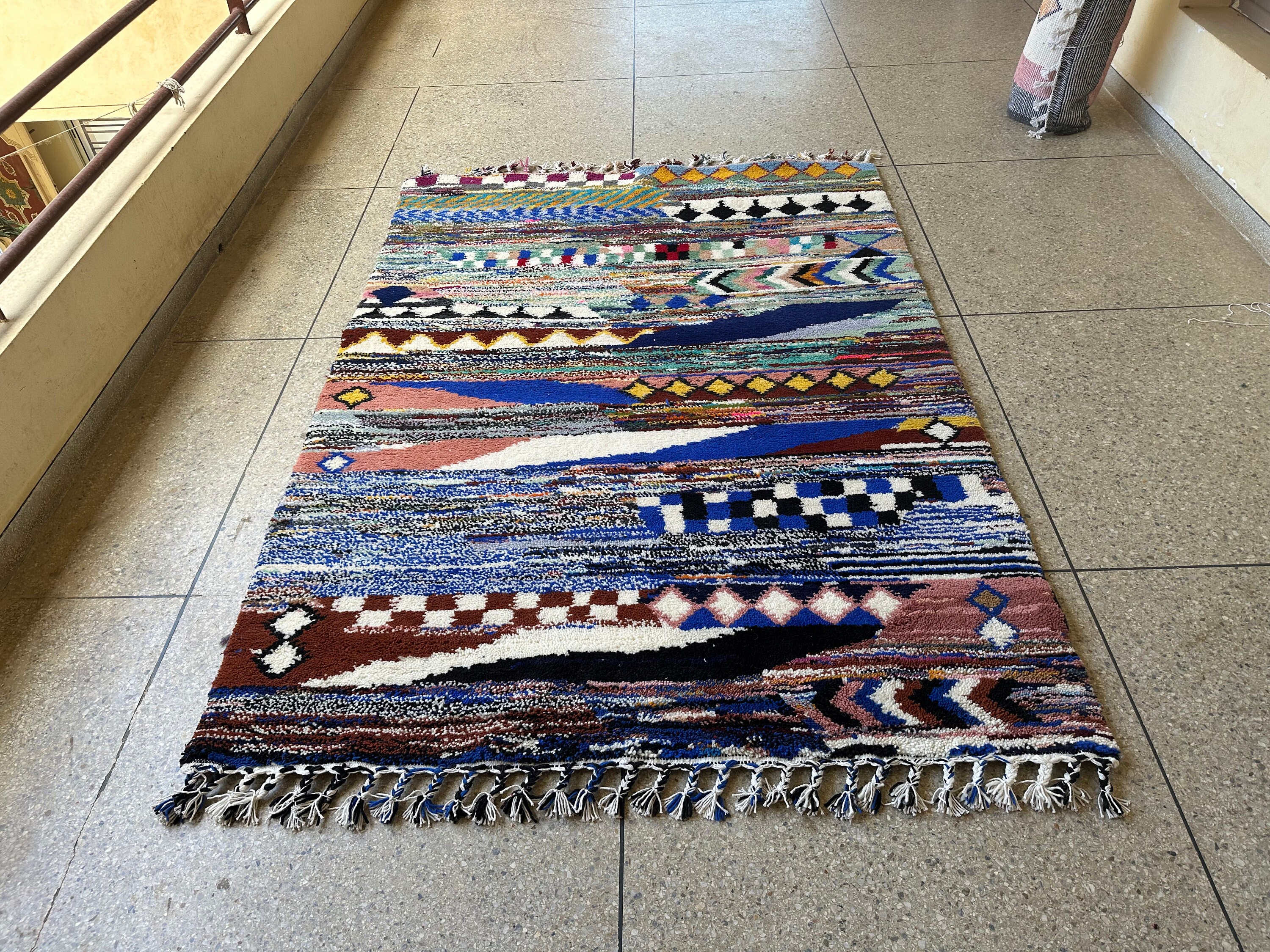 This fabulous Moroccan Rug that will give your room both a cozy feeling and stylish is made from 100% Natural sheep wool, It's Very plush and comfy to walk on, actually It's Heaven for your feet.