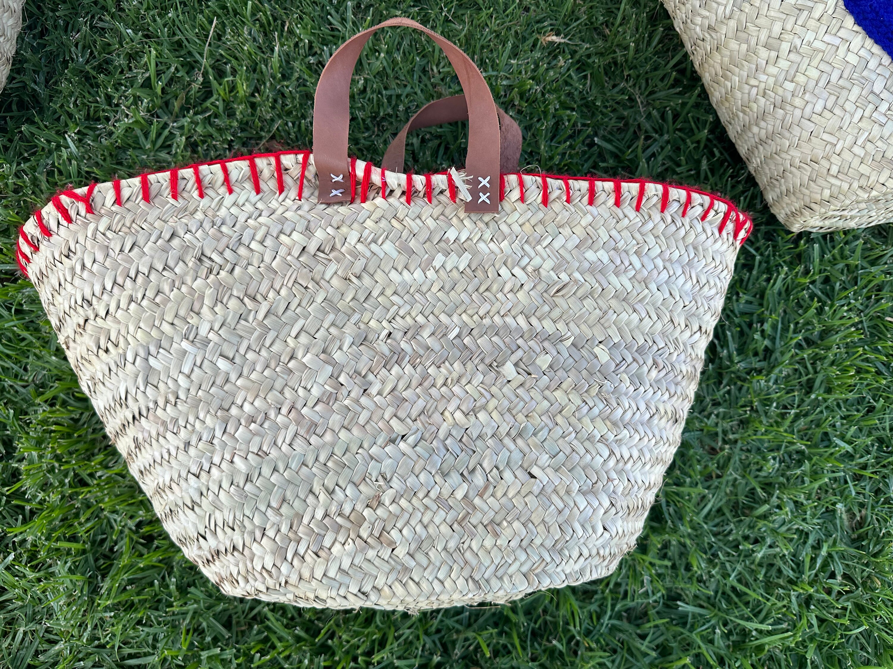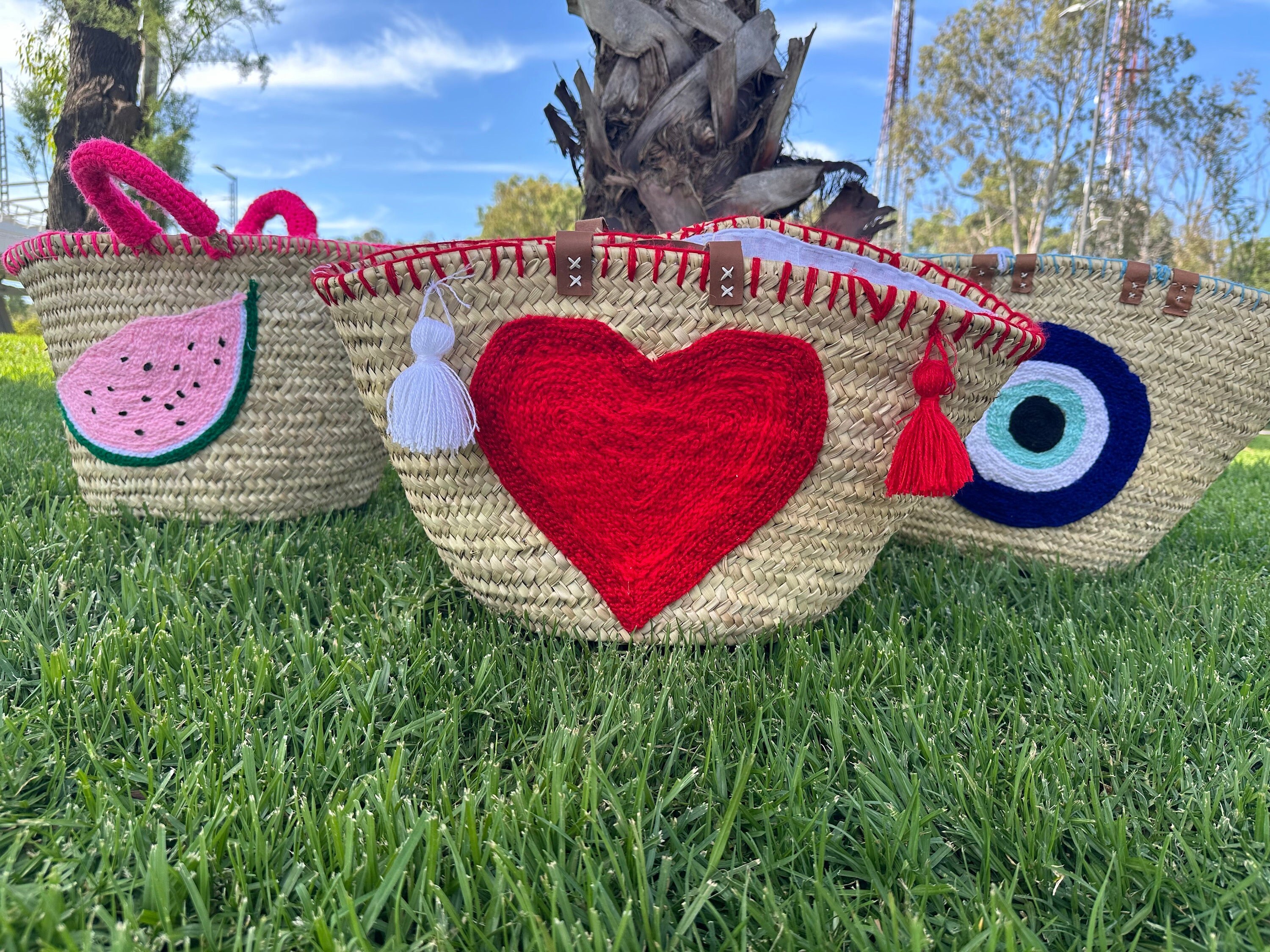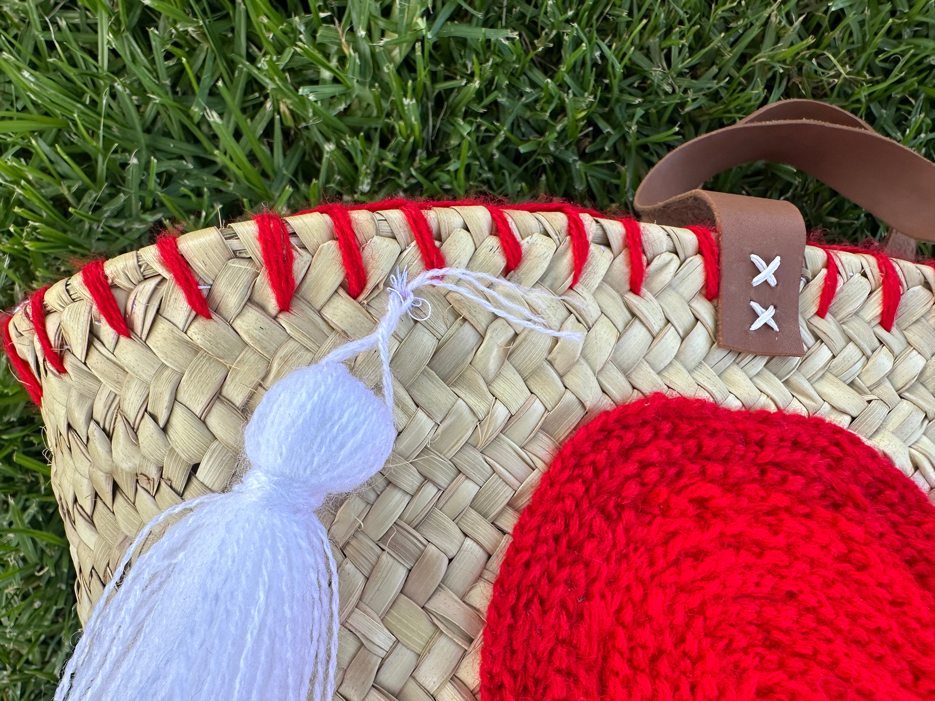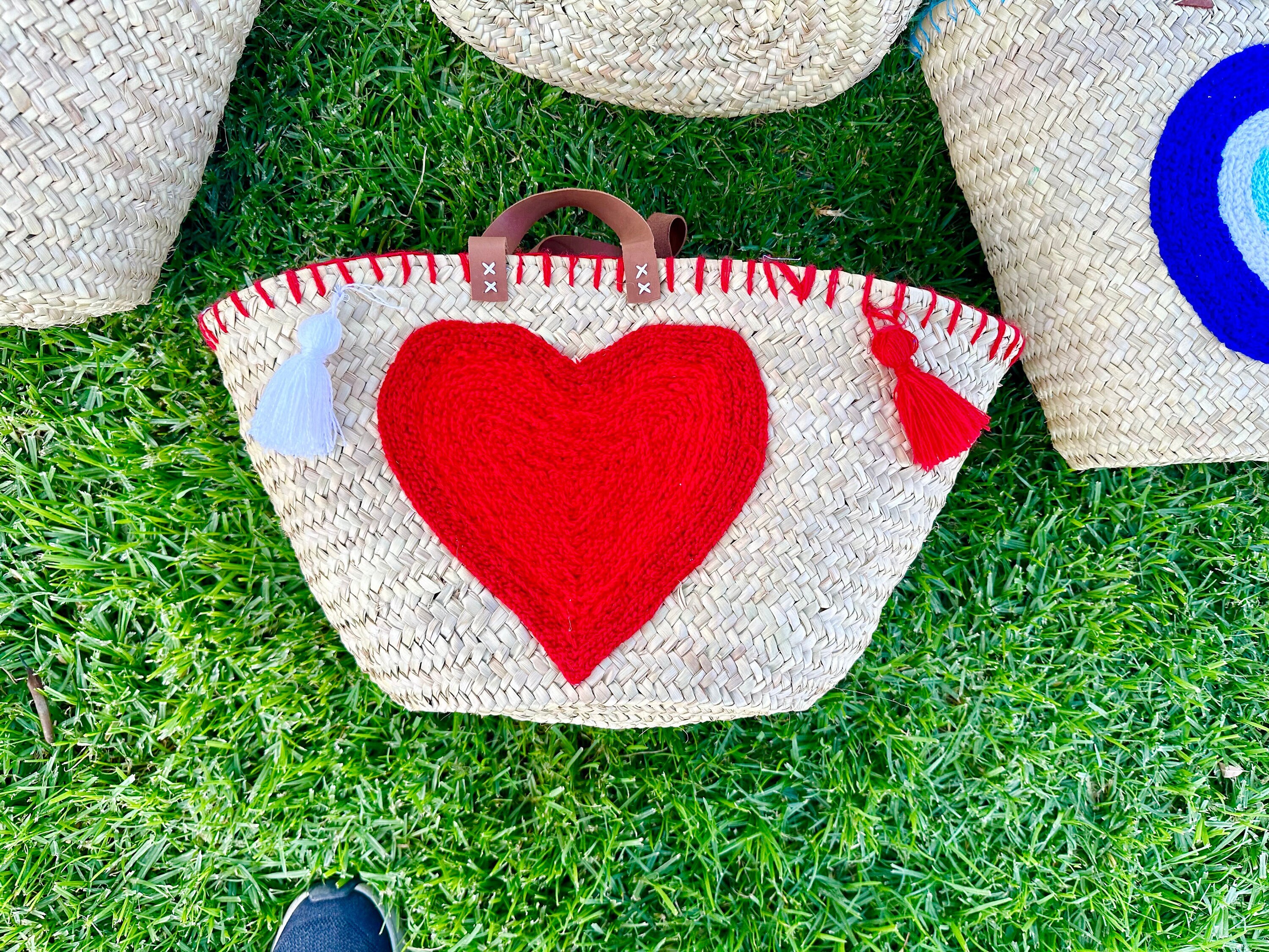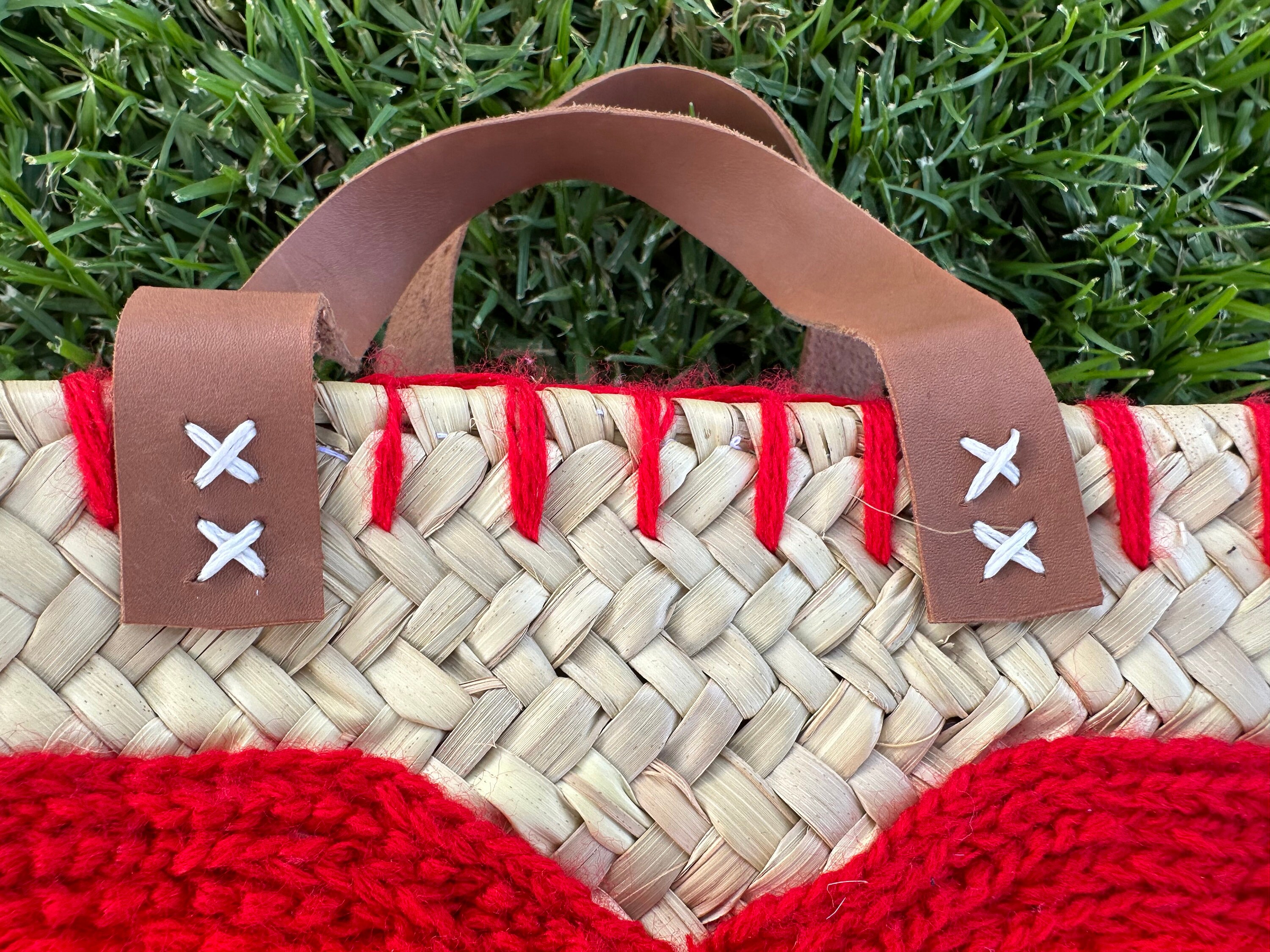 .Straw Bag With Leather Handle - Shopping Basket - French BASKET - Market Basket - Handmade Moroccan Basket - Moroccan Straw Bag - Red Heart Bag