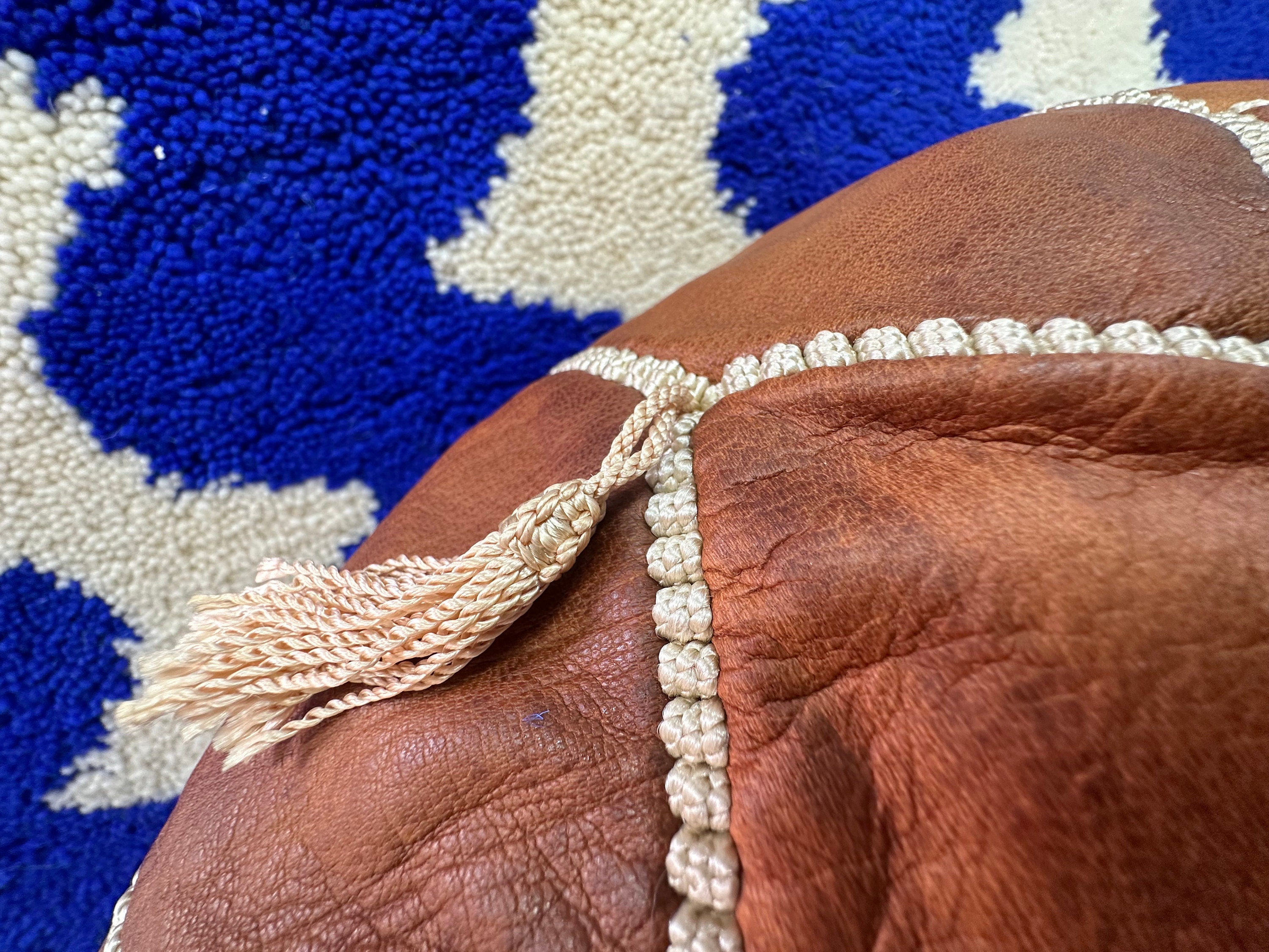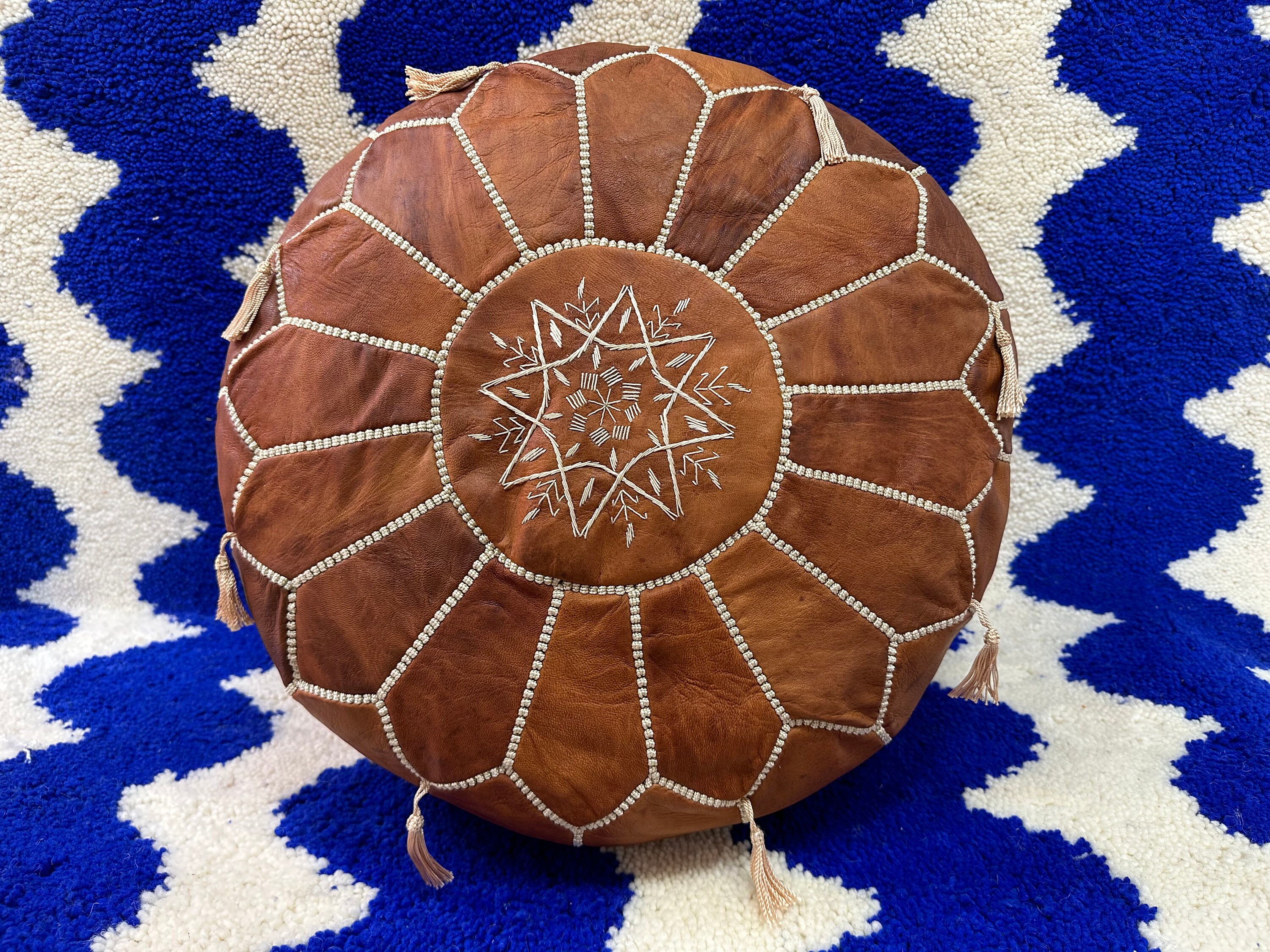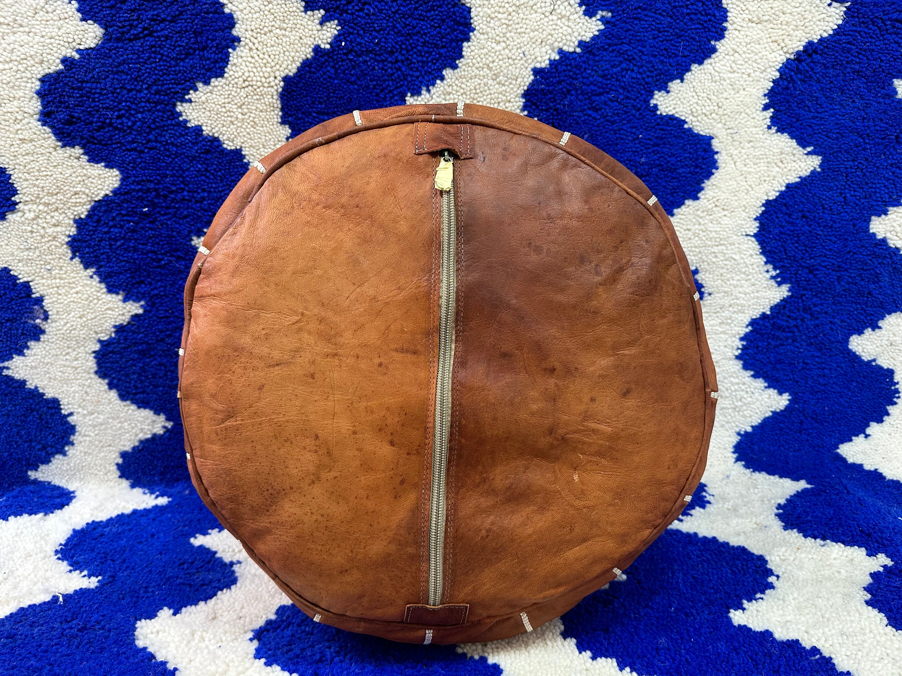 .Moroccan Handcrafted Leather Pouf, handmade leather pouf, brown pouf, Moroccan ottoman pouf, Moroccan vintage genuine leather pouf, UNSTUFFED