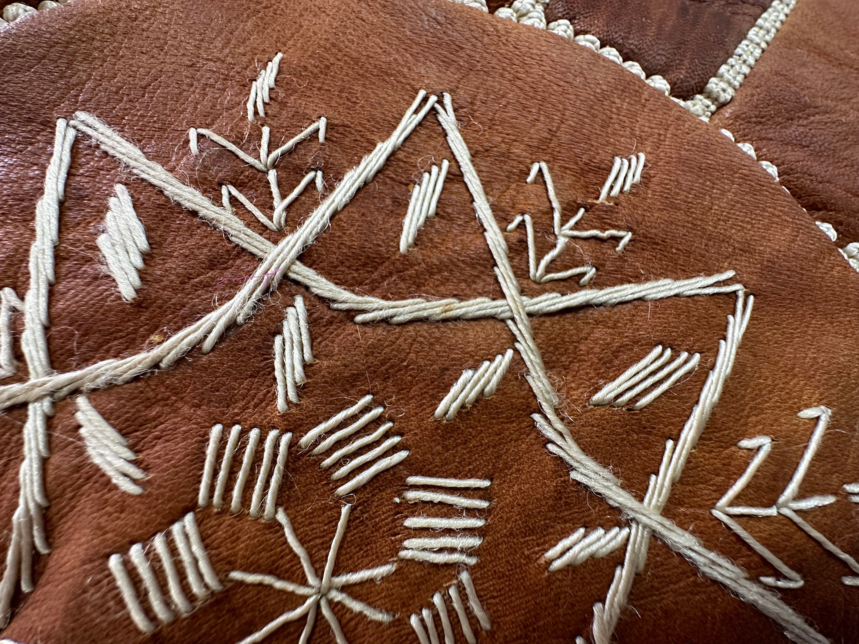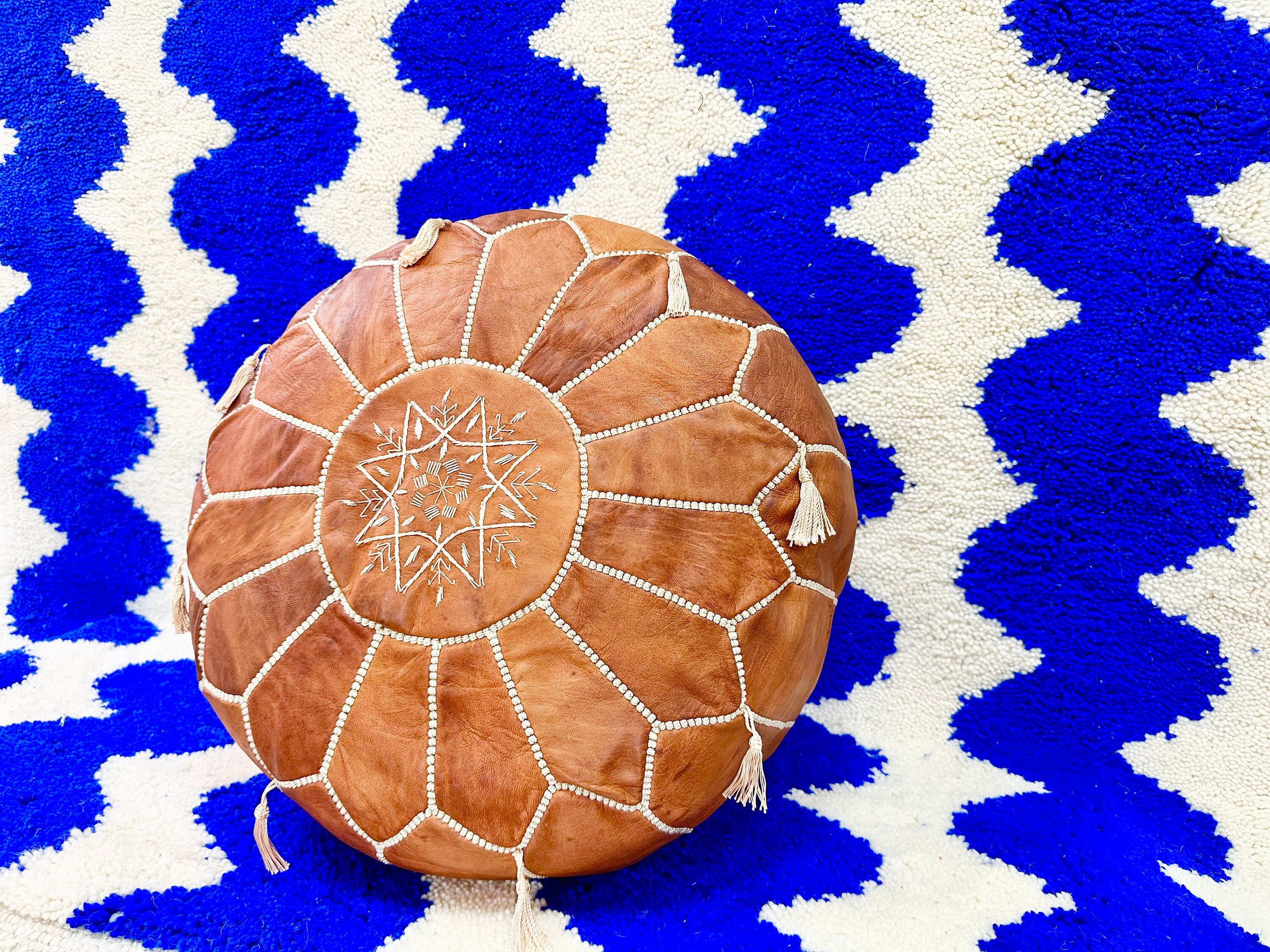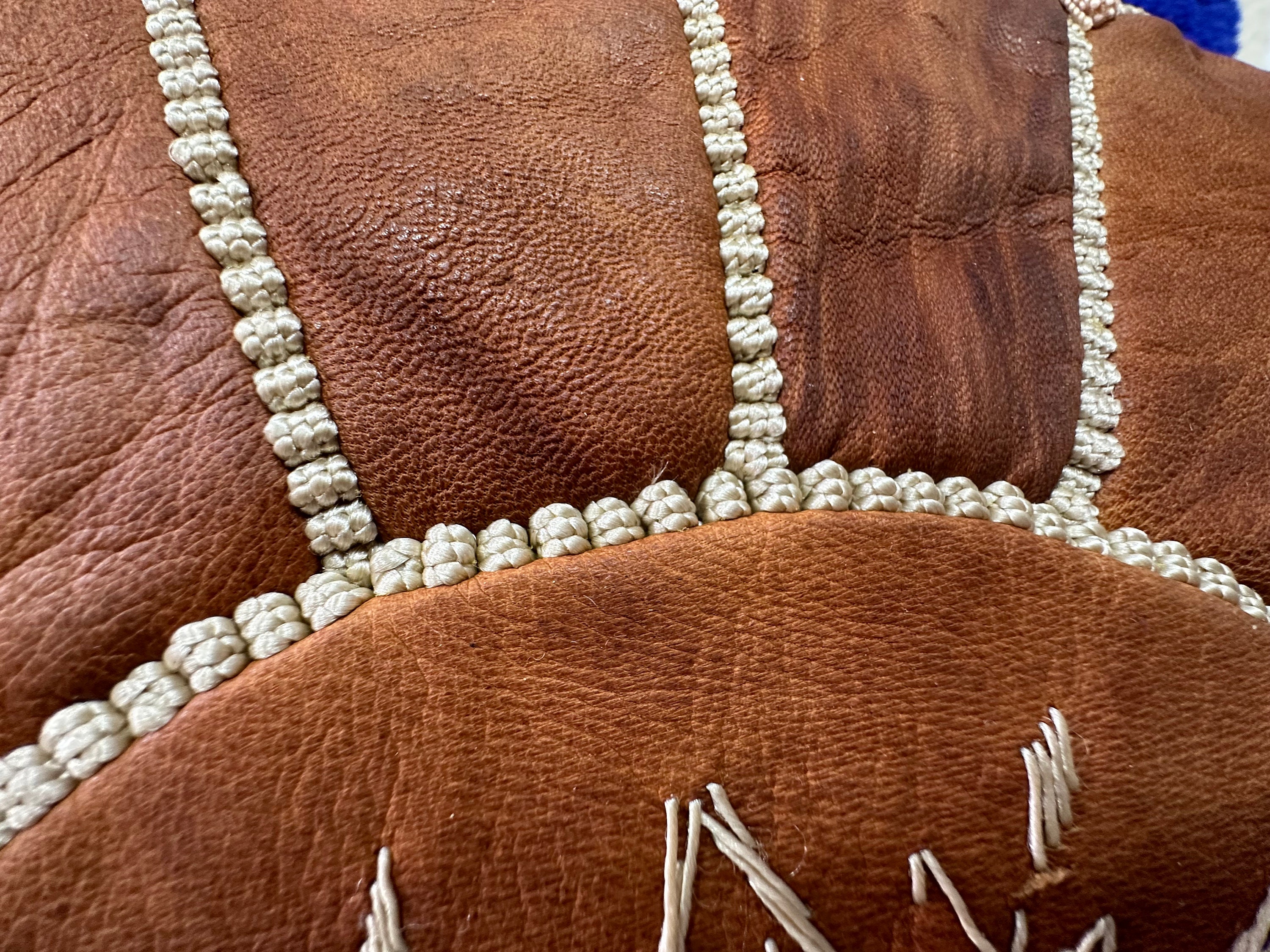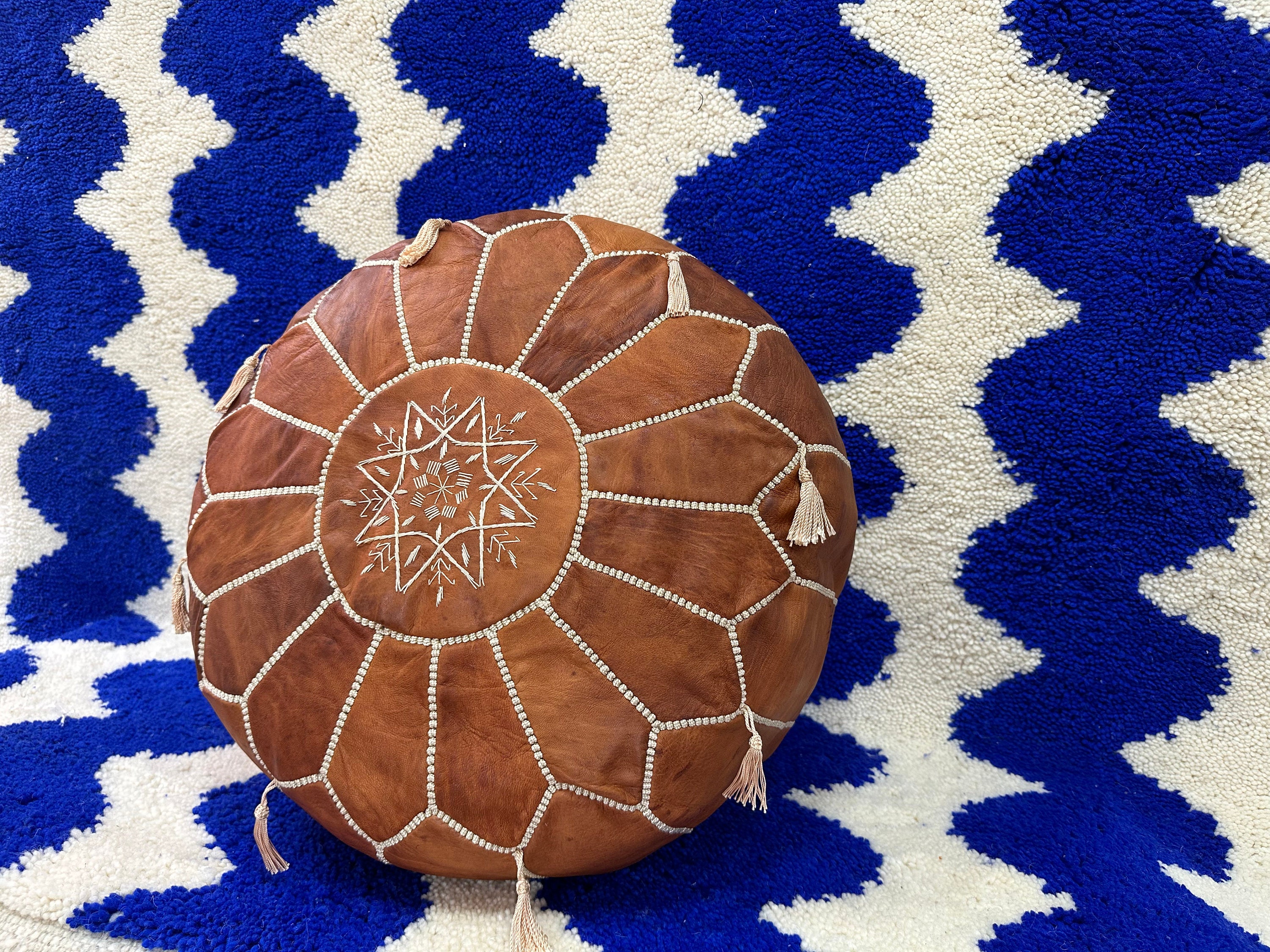 .Moroccan Handcrafted Leather Pouf, handmade leather pouf, brown pouf, Moroccan ottoman pouf, Moroccan vintage genuine leather pouf, UNSTUFFED