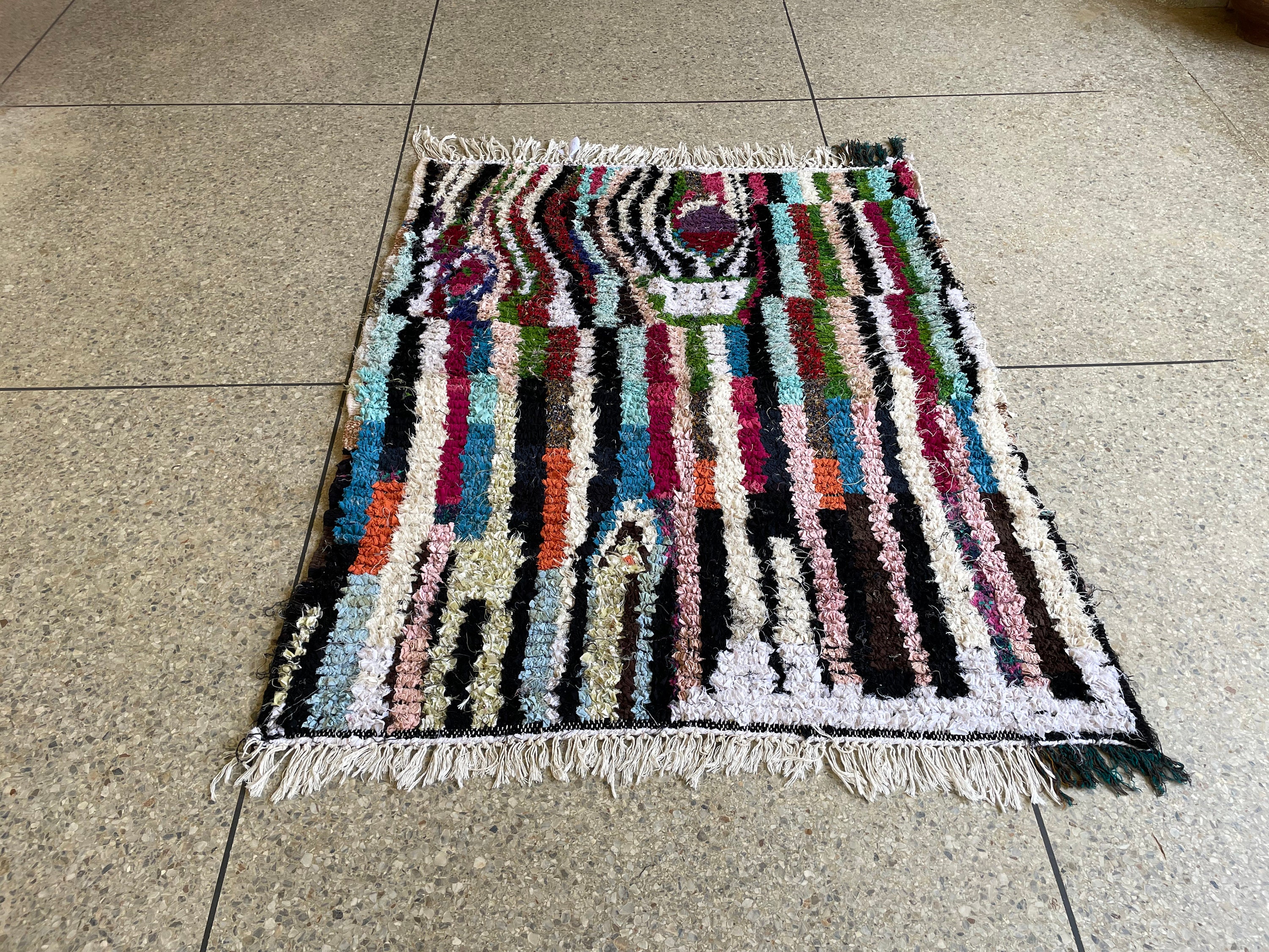 .ARTISTIC MOROCCAN RUG, Berber Rug 4.5x3.7FT, Berber Handmade, Colorful Rug, Black Rug, Bouchrouite Rug, Striped Wool Rug, Handwoven Wool Rug