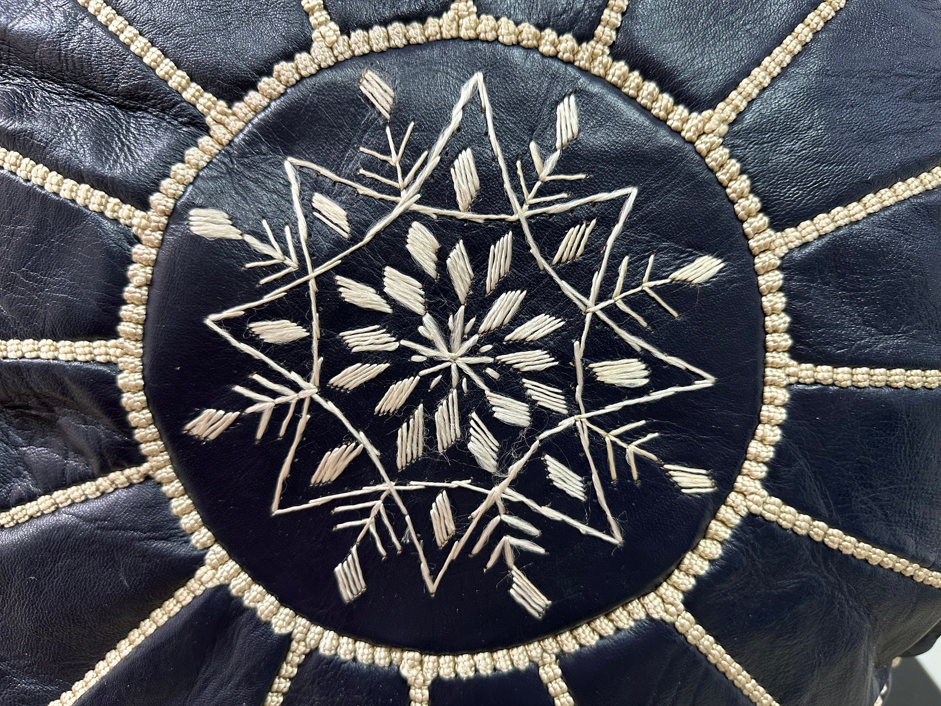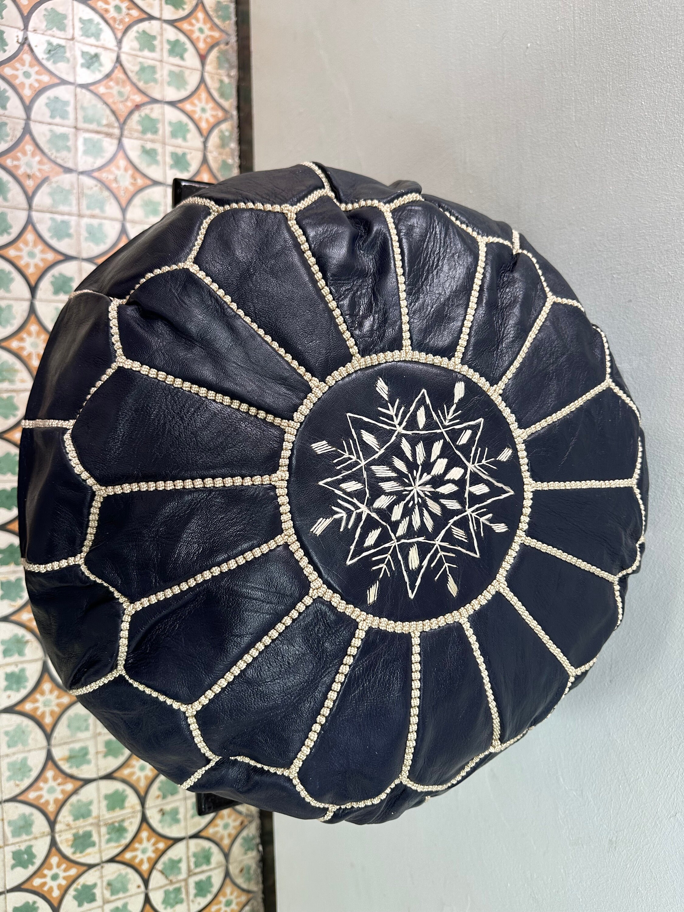 leather pouf Moroccan Handmade Ottoman with Stitching Leather Handmade Footstool Floor Cushion Unstuffed Cover poufs