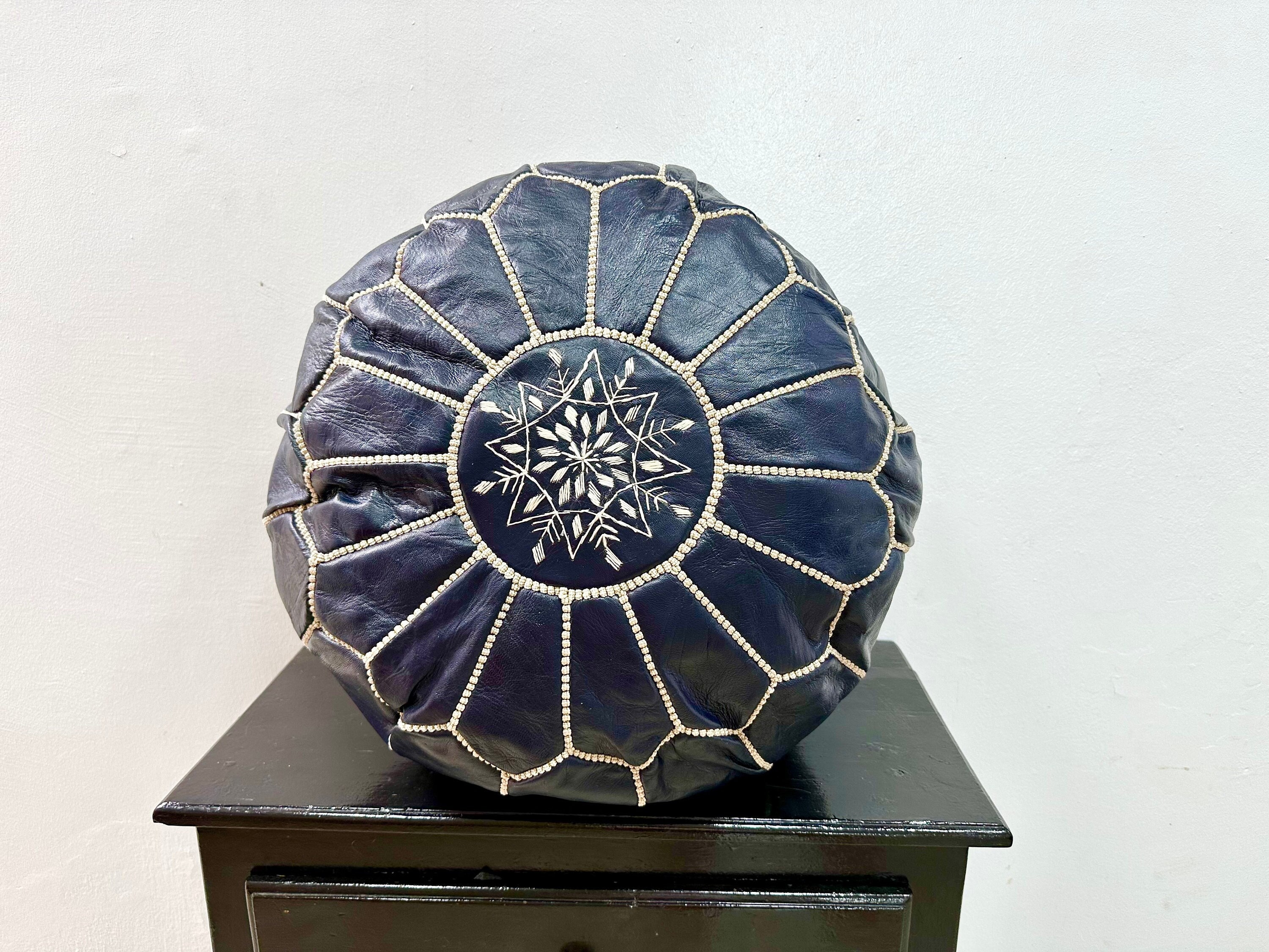 .leather pouf Moroccan Handmade Ottoman with Stitching Leather Handmade Footstool Floor Cushion Unstuffed Cover poufs