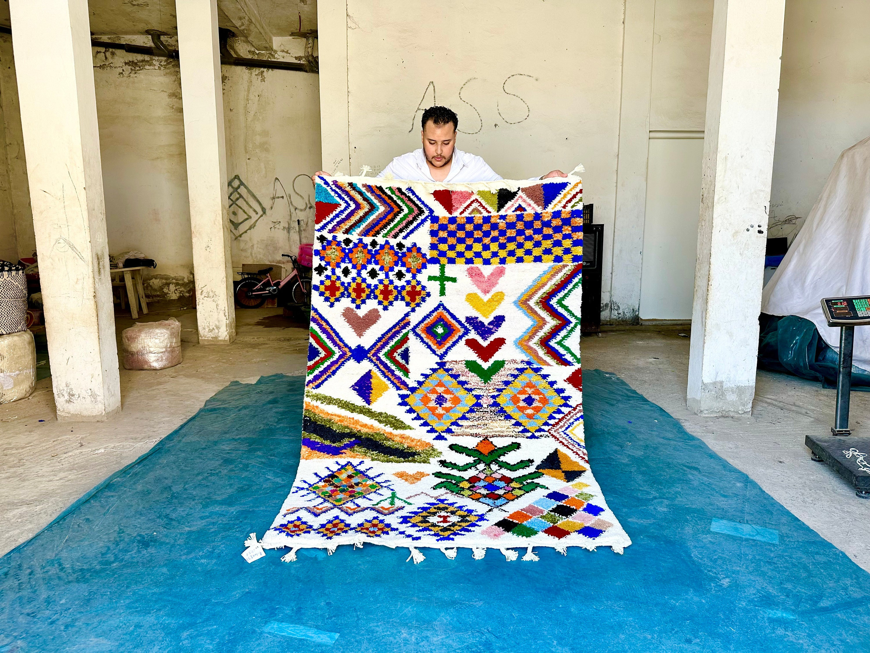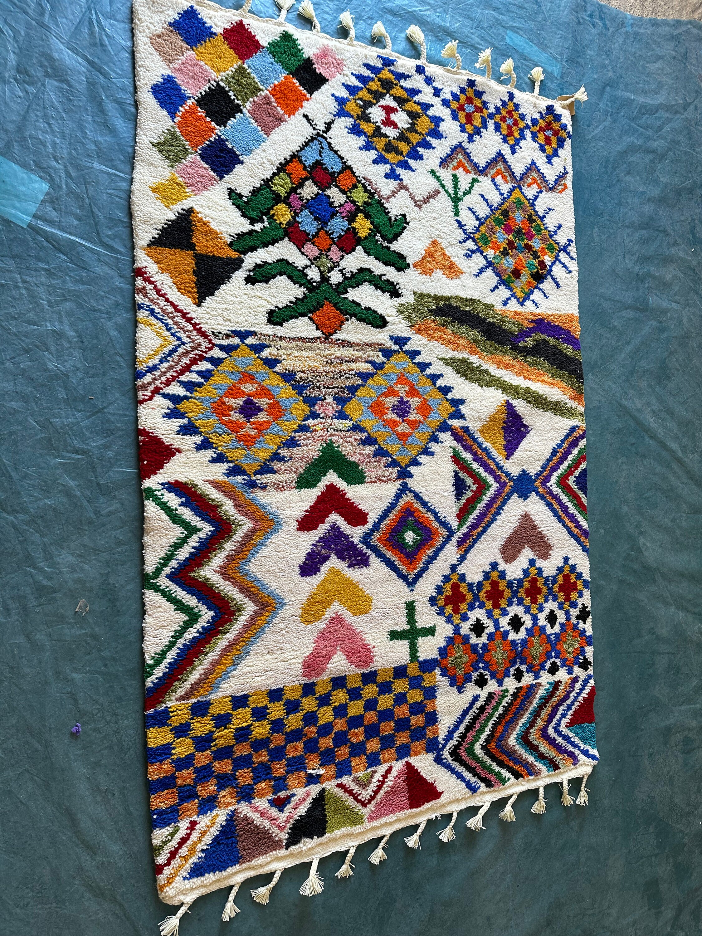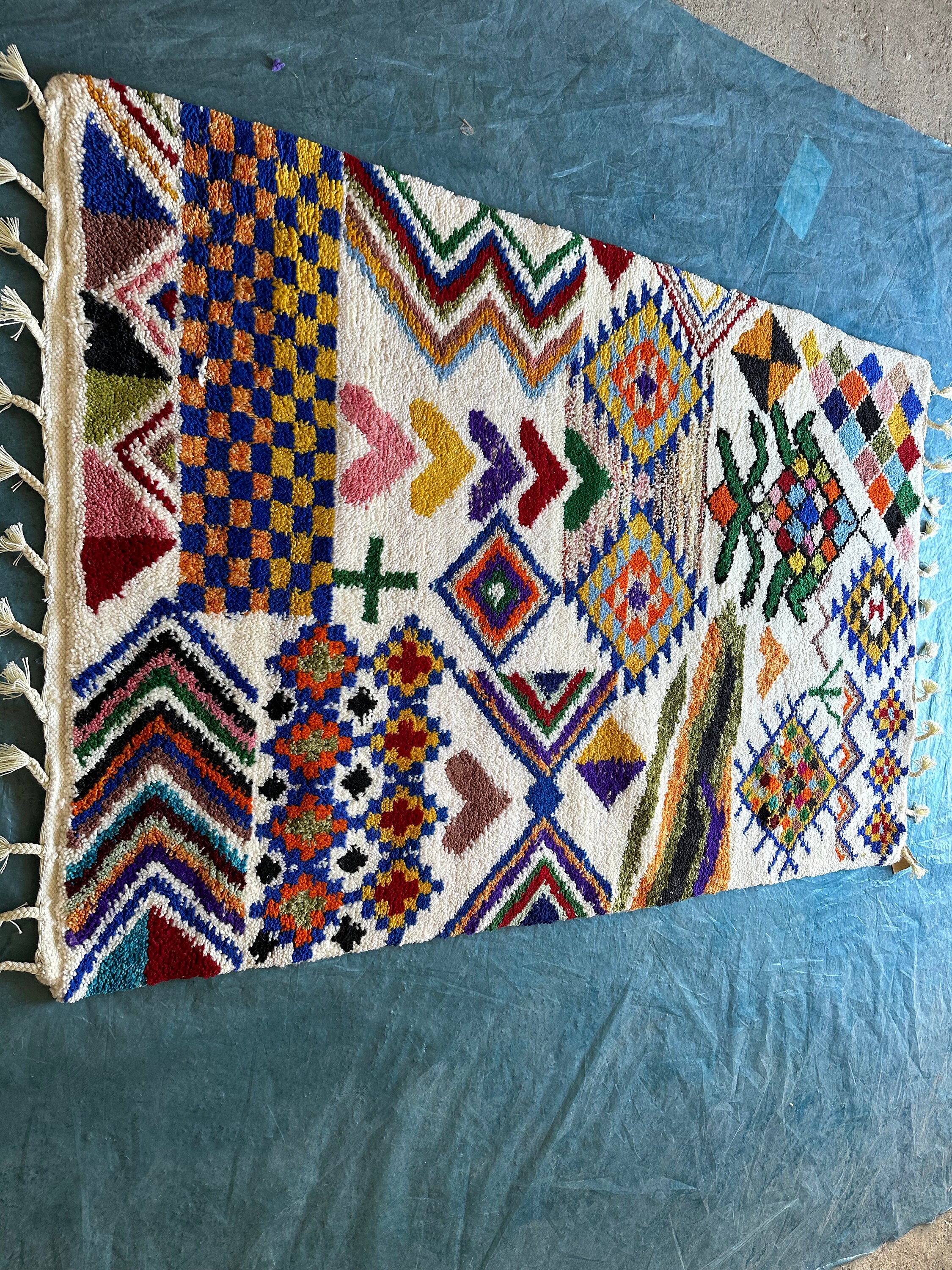 .Colorful Moroccan Rug, 6x4FT Fabulous Boujad Rug, Abstract Multicolored Carpet, Handmade Moroccan Rug, Bohemian rug