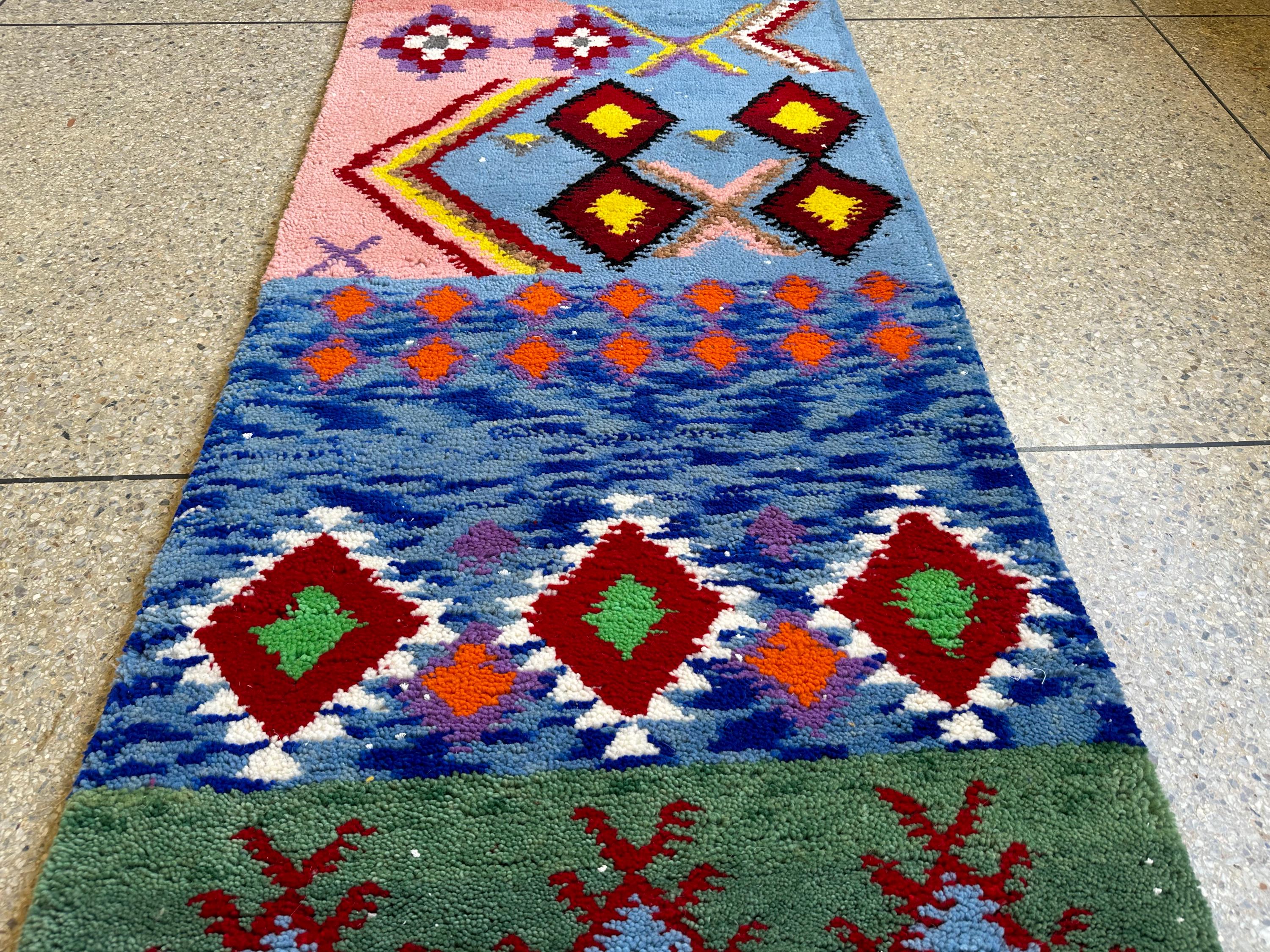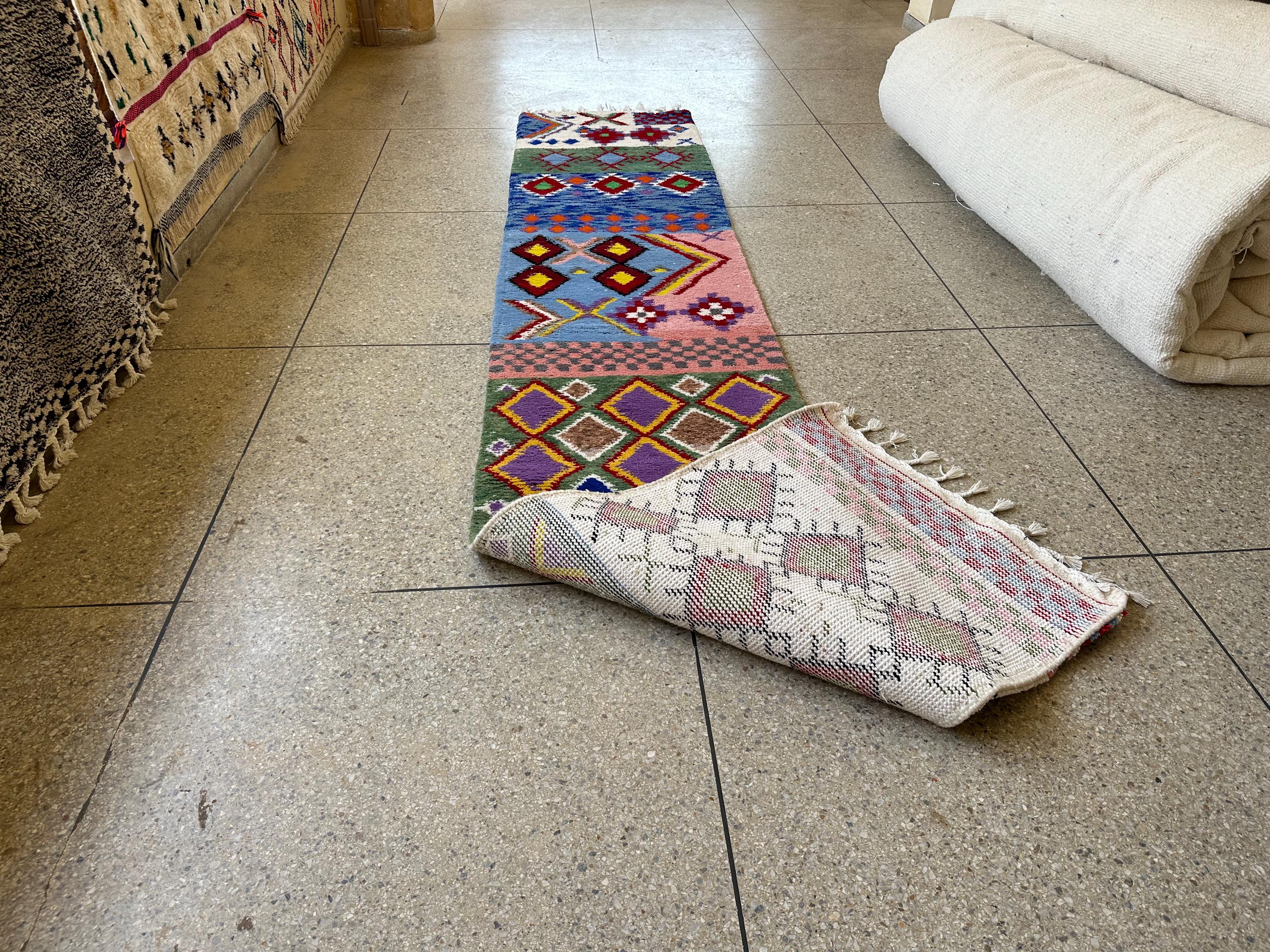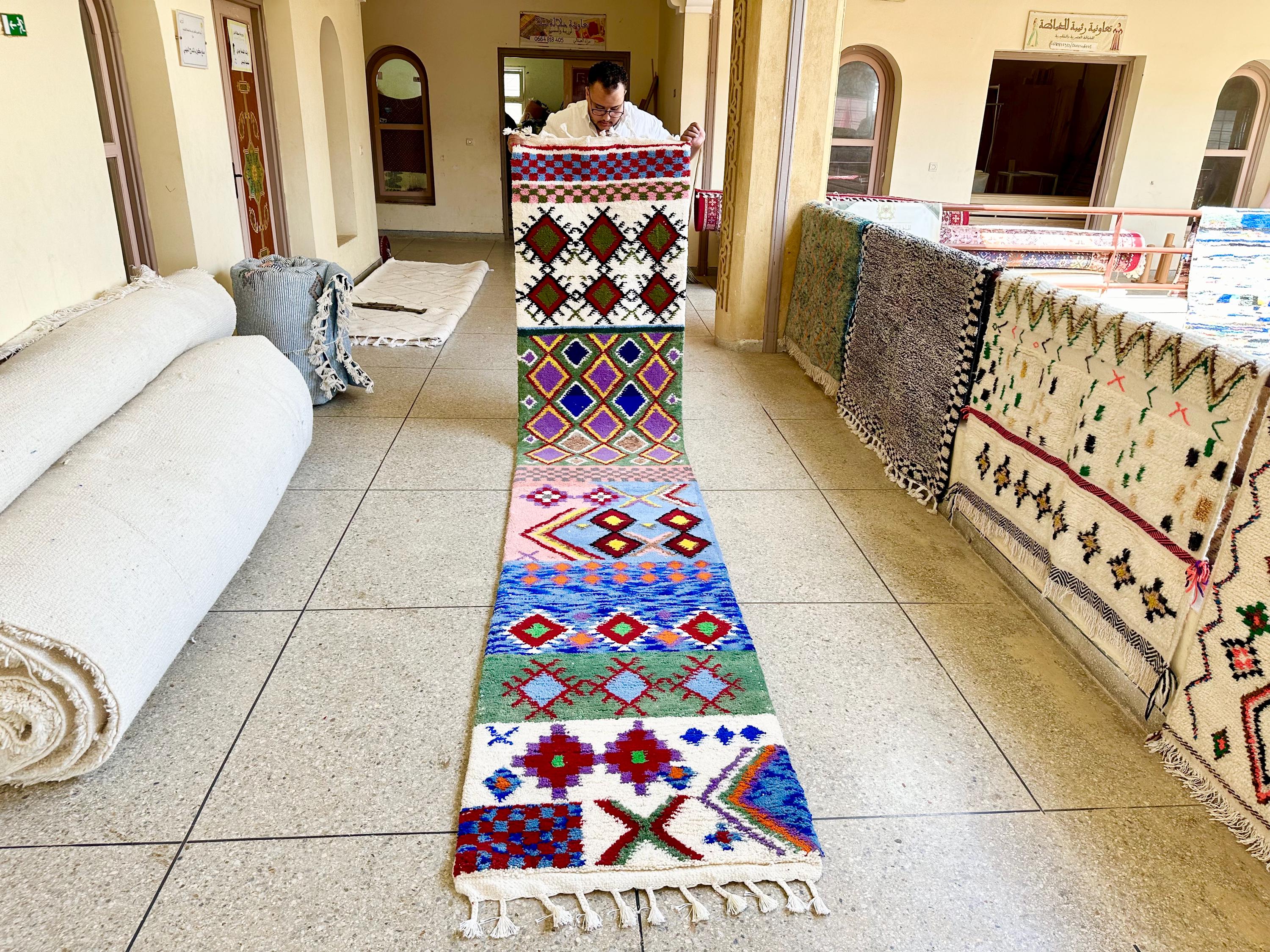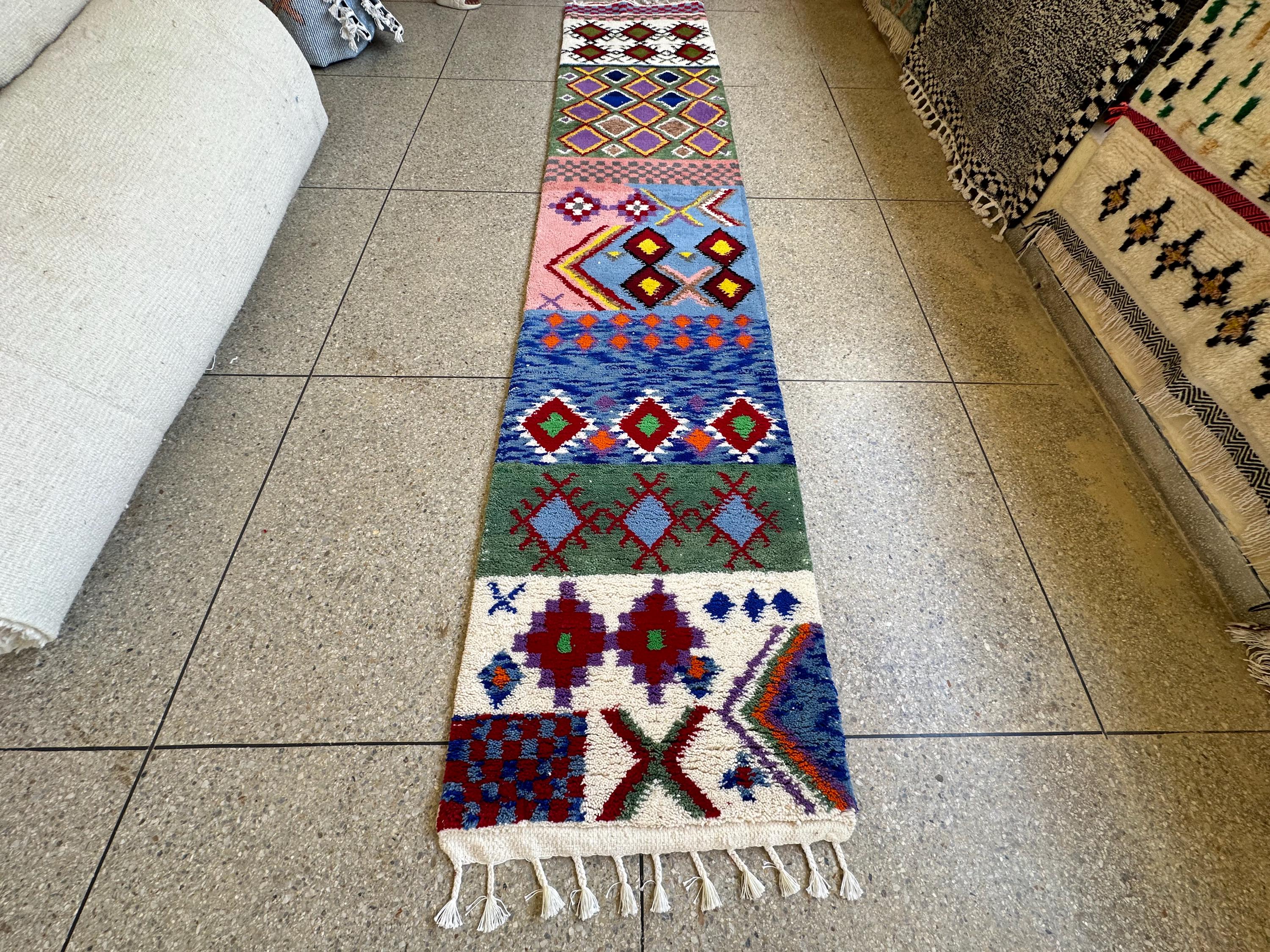 .STUNNING BOUJAAD RUG, Moroccan Runner 2x13, Large Abstract Rug, Berber Rug, Red and Yellow Runner, Sheep Wool Rug, Handwoven Rug.