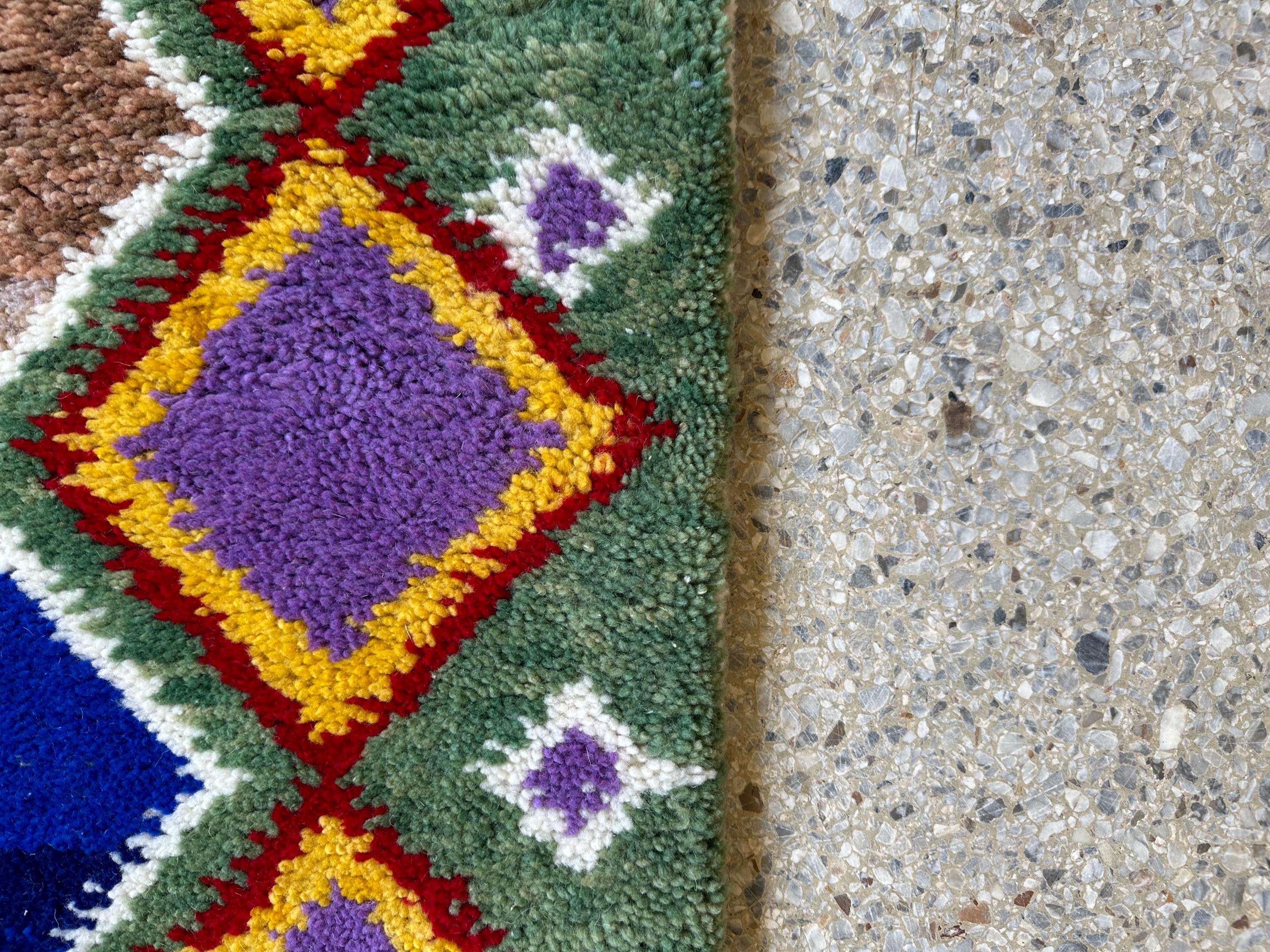 This fabulous Moroccan Rug that will give your room both a cozy feeling and stylish is made from 100% Natural sheep wool, It's Very plush and comfy to walk on, actually It's Heaven for your feet.