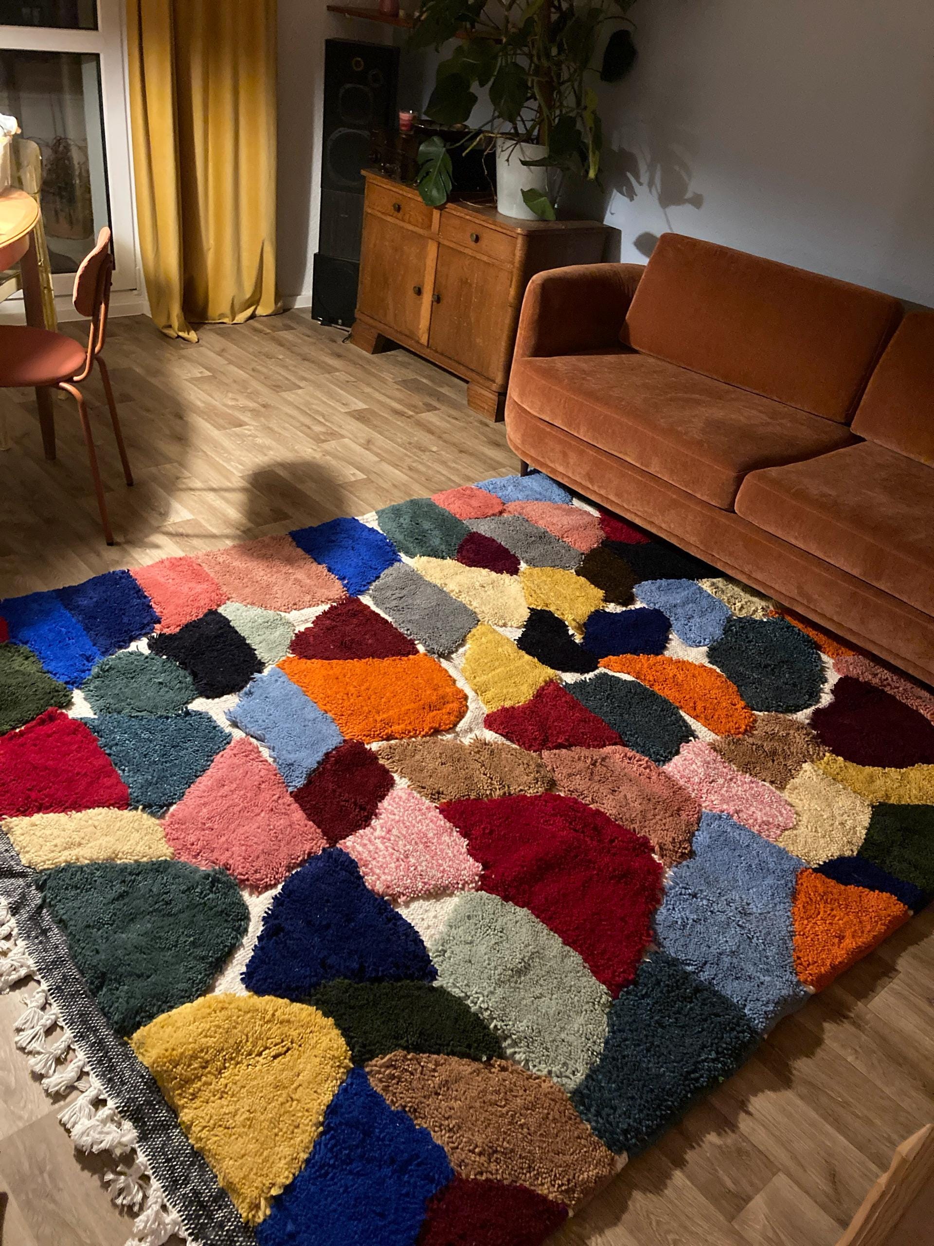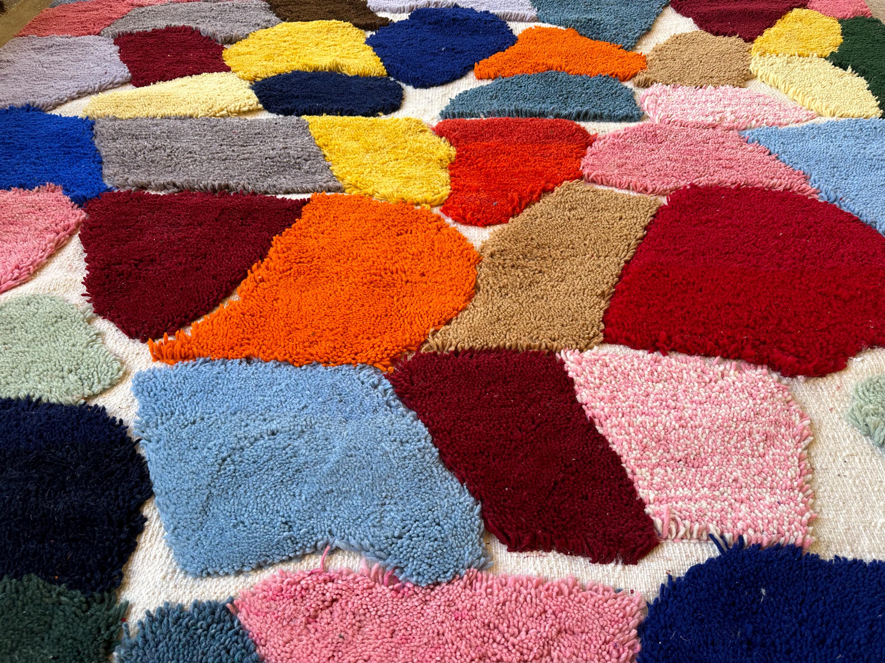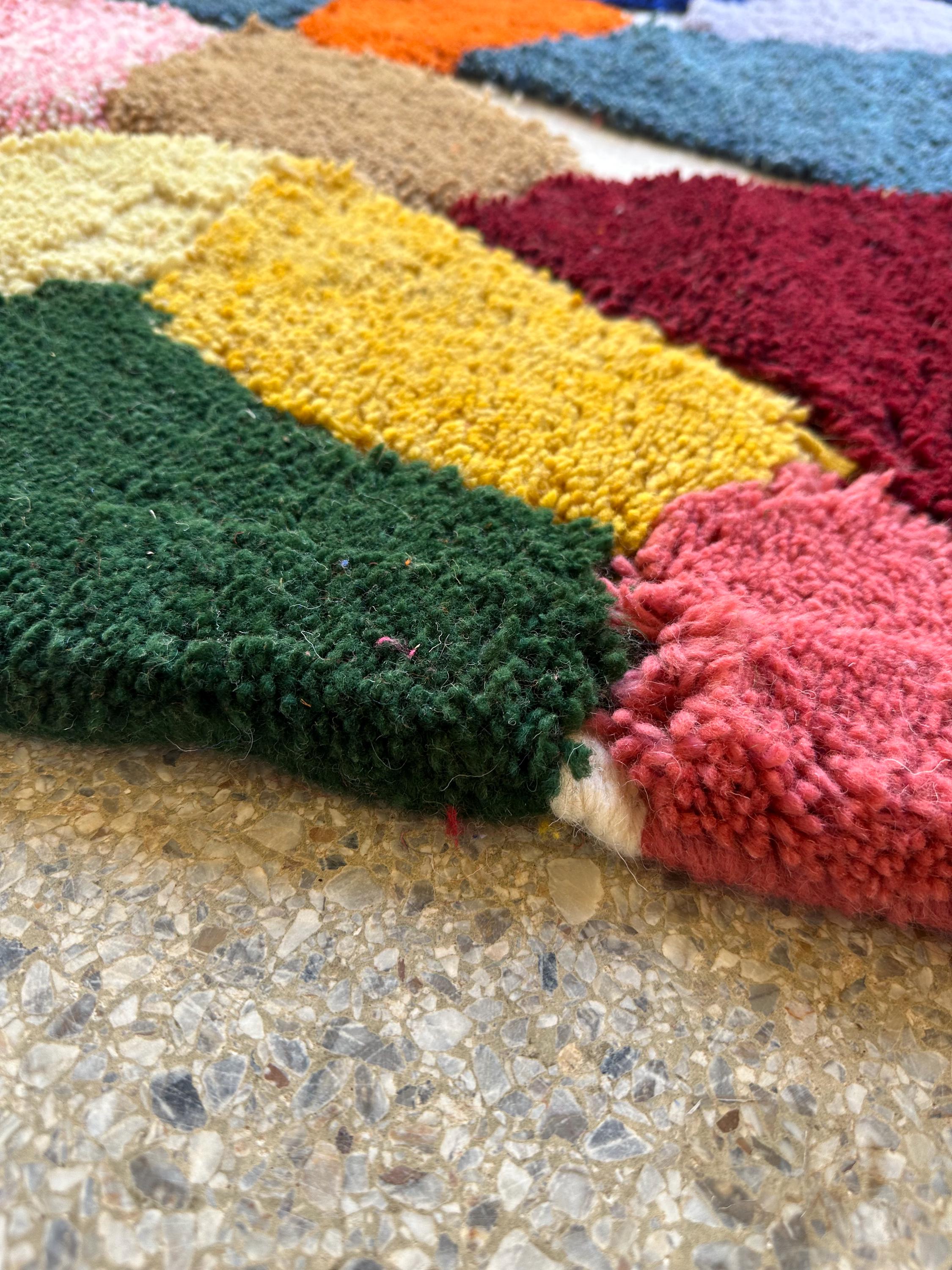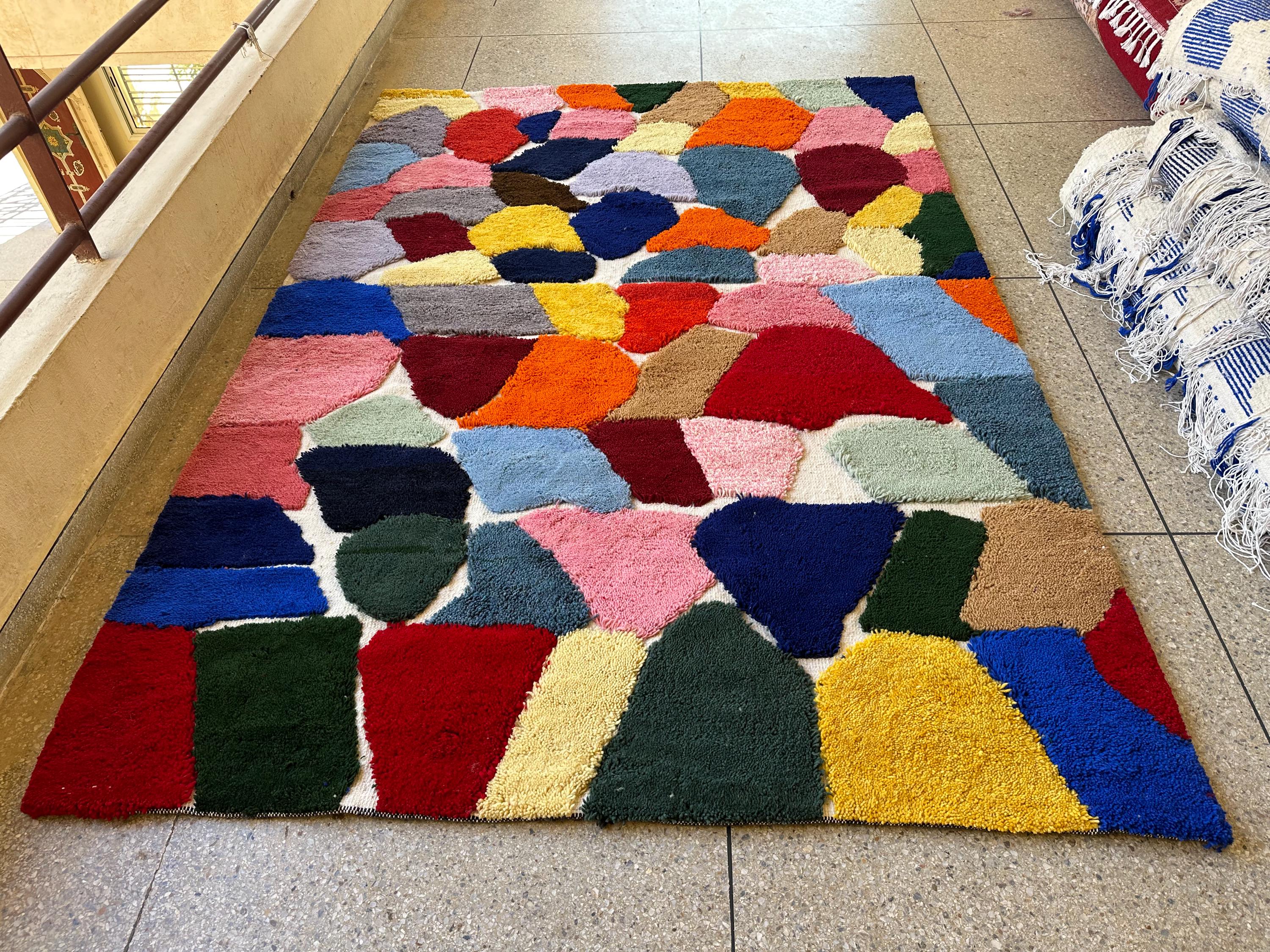 Elevate your space with our stunning Moroccan wool carpet! This custom Beni Ourain rug features a vibrant multicolor geometric design, perfect for adding a touch of bohemian flair to your home. Hand-tufted for ultimate comfort with a stylish twist, this Berber area rug is a must-have statement piece for any room.