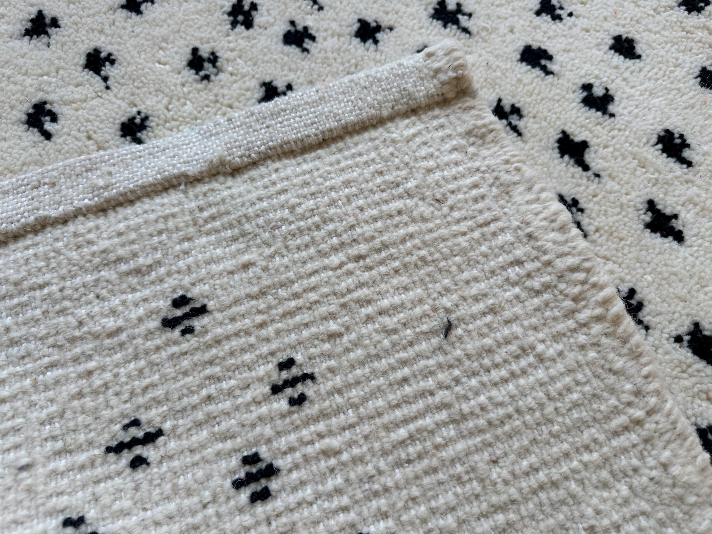 This fabulous Moroccan Rug that will give your room both a cozy feeling and stylish is made from 100% Natural sheep wool, It's Very plush and comfy to walk on, actually It's Heaven for your feet.