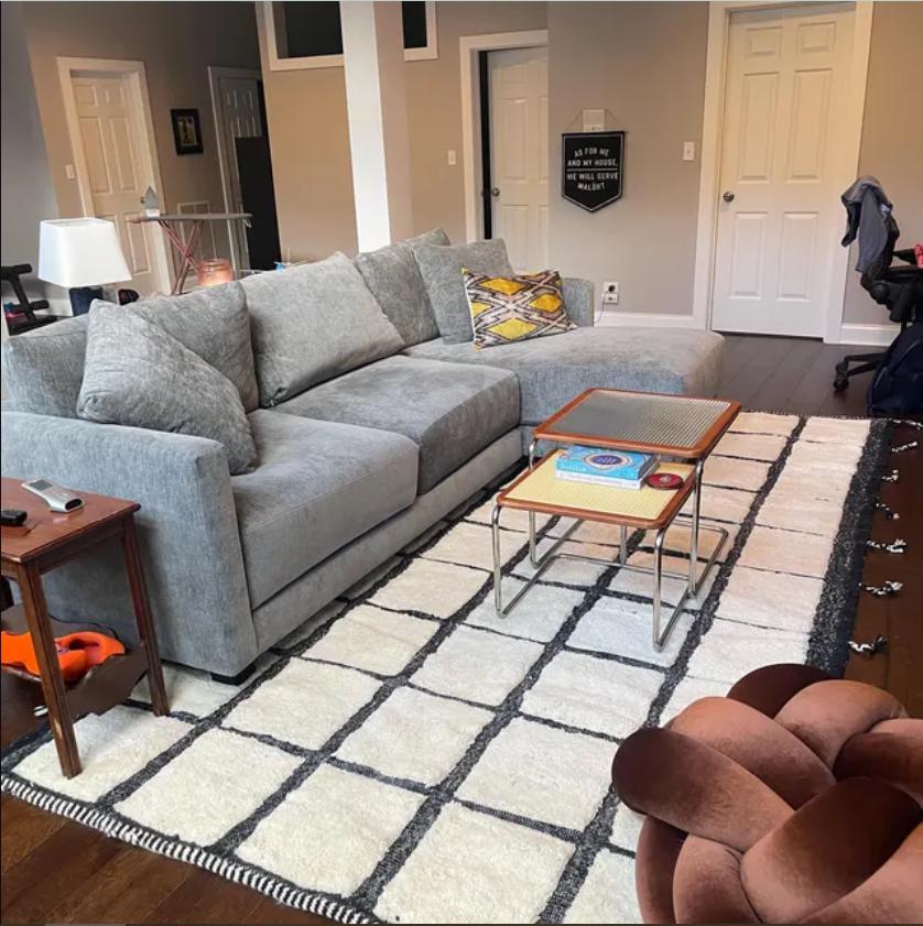 This fabulous Moroccan Rug that will give your room both a cozy feeling and stylish is made from 100% Natural sheep wool, It's Very plush and comfy to walk on, actually It's Heaven for your feet.