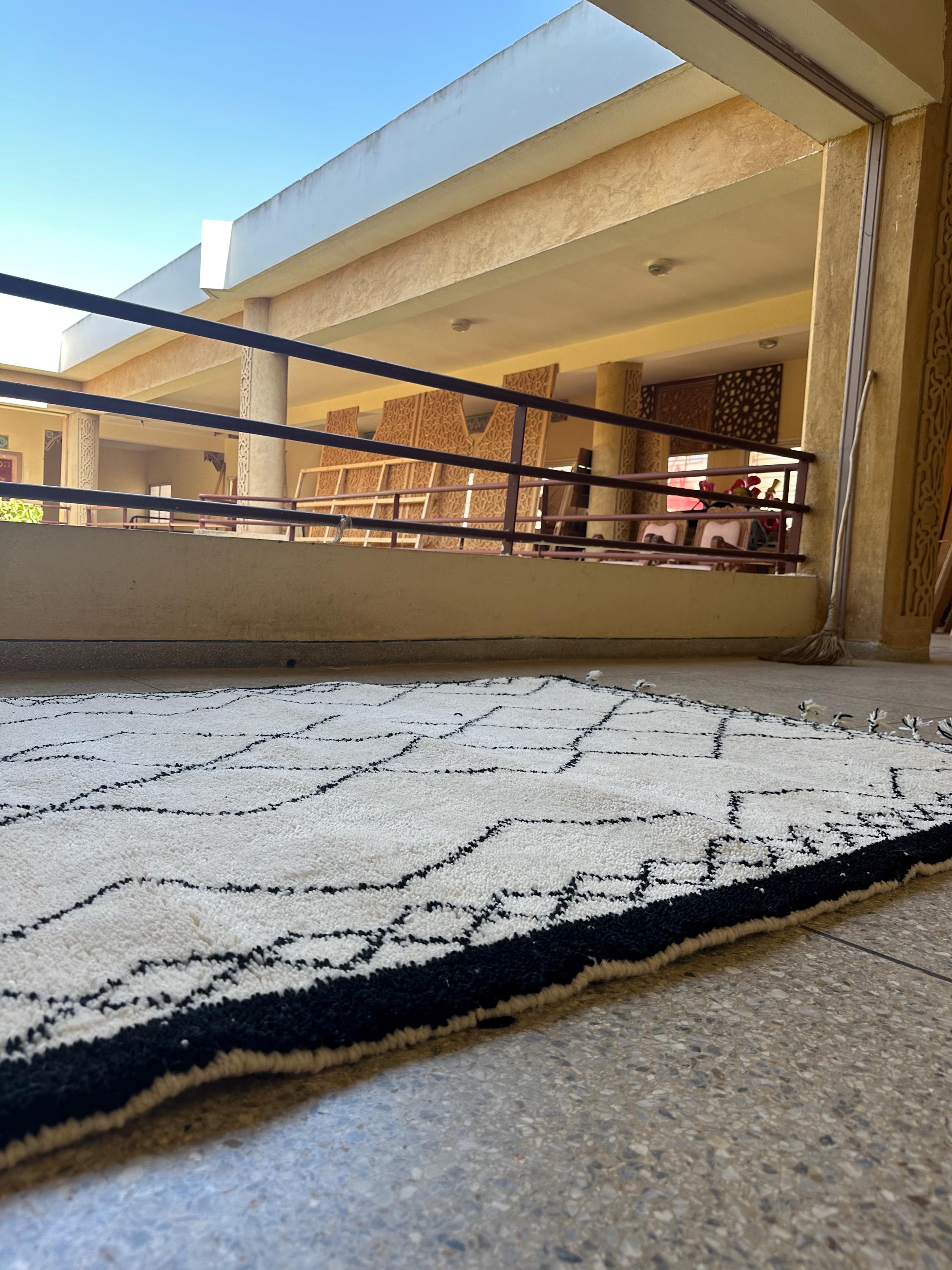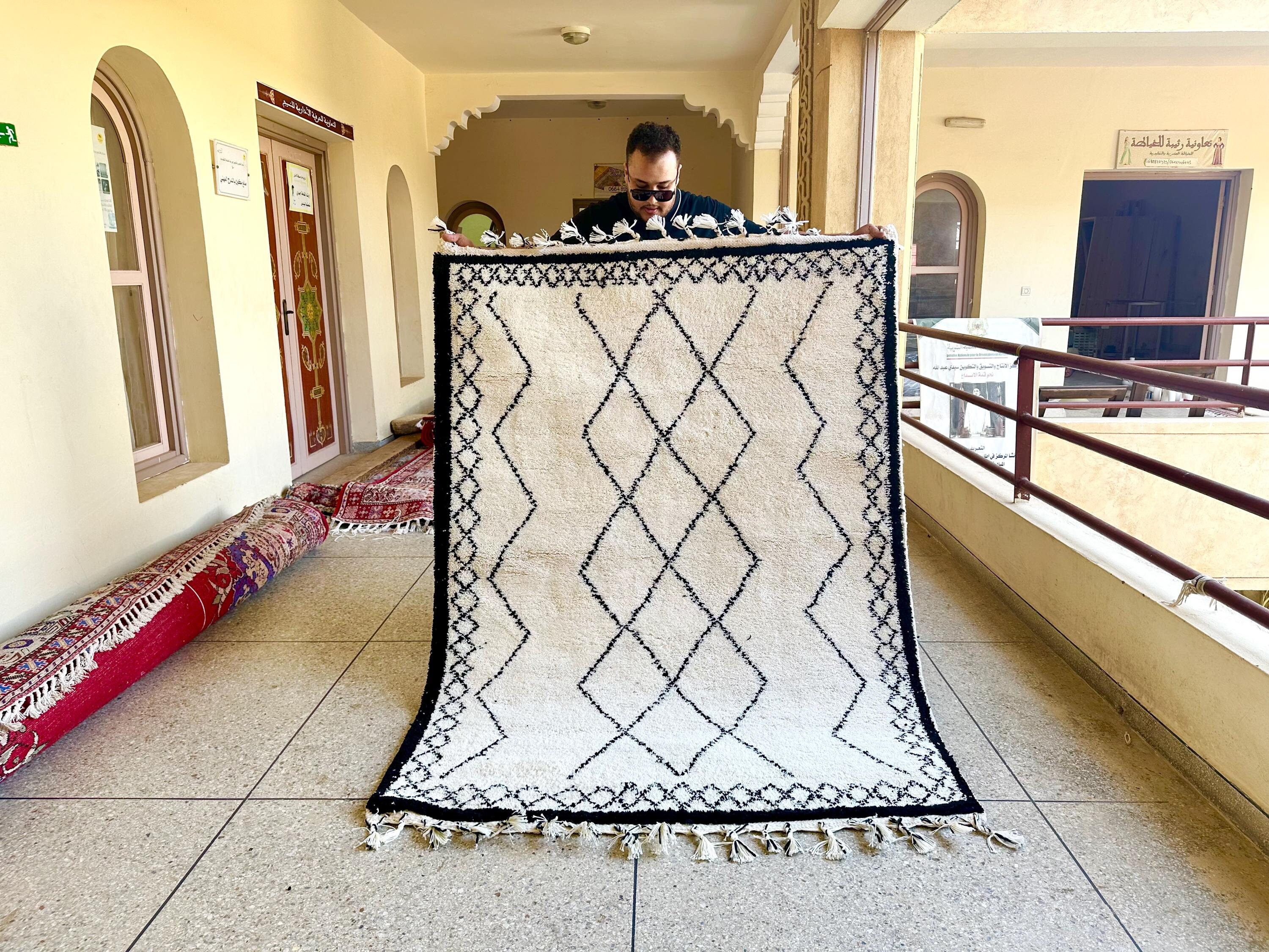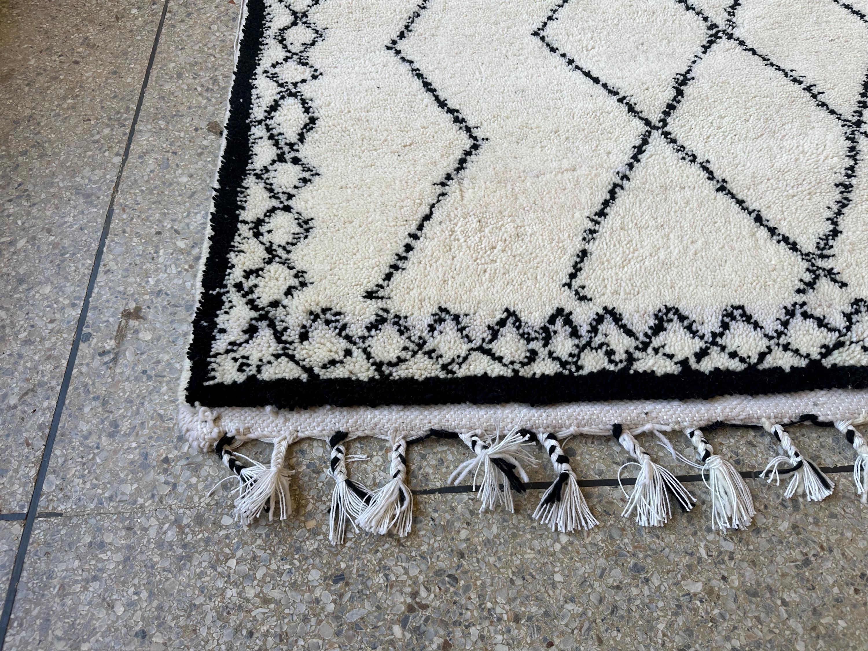 Upgrade your space with this Geometric Black and White Beni Ourain Rug, a handmade Moroccan wool rug designed for contemporary and modern interiors. Crafted from soft, high-quality wool, this custom area rug brings a stylish and cozy touch to living rooms, bedrooms, and minimalist home decor.