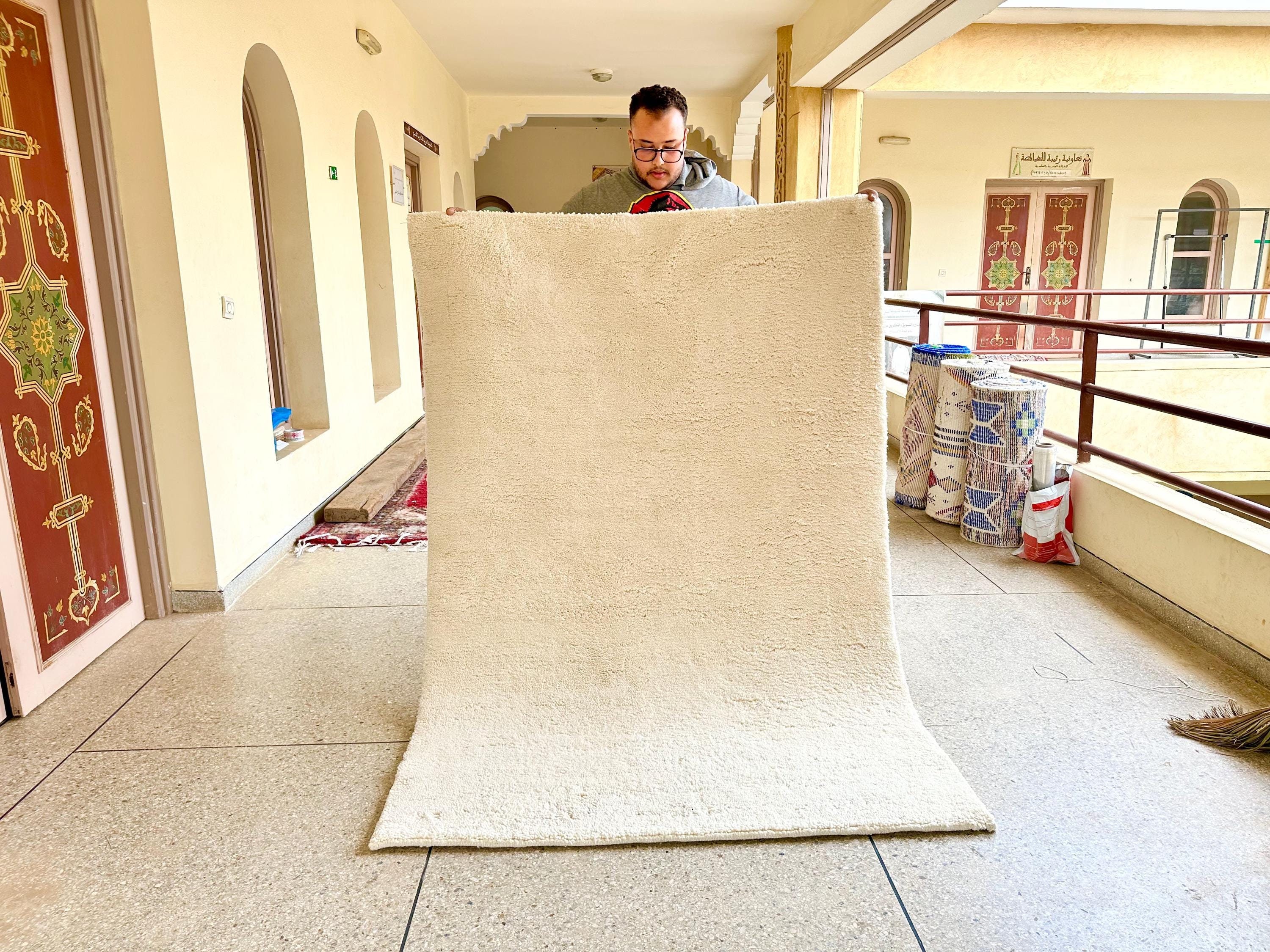 Elevate your space with the timeless elegance of this White Solid Beni Ourain Rug! Handwoven from 100% natural sheep wool, this minimalist Moroccan carpet brings warmth and coziness to any living room, bedroom, or workspace. Its soft texture and neutral tones make it a perfect fit for Scandinavian, modern, and bohemian interiors. Experience luxury, comfort, and authentic craftsmanship in every fiber of this handmade masterpiece.
