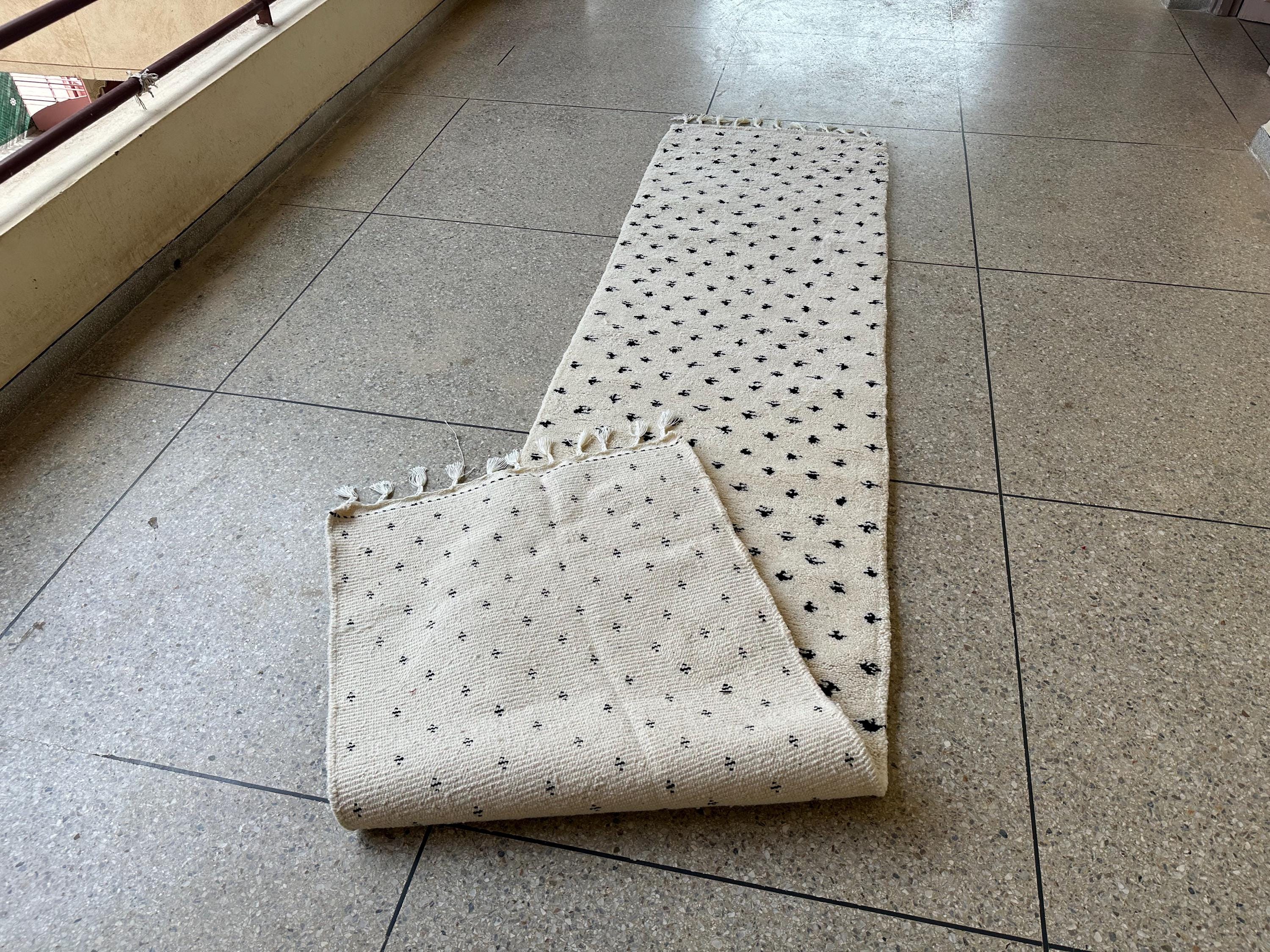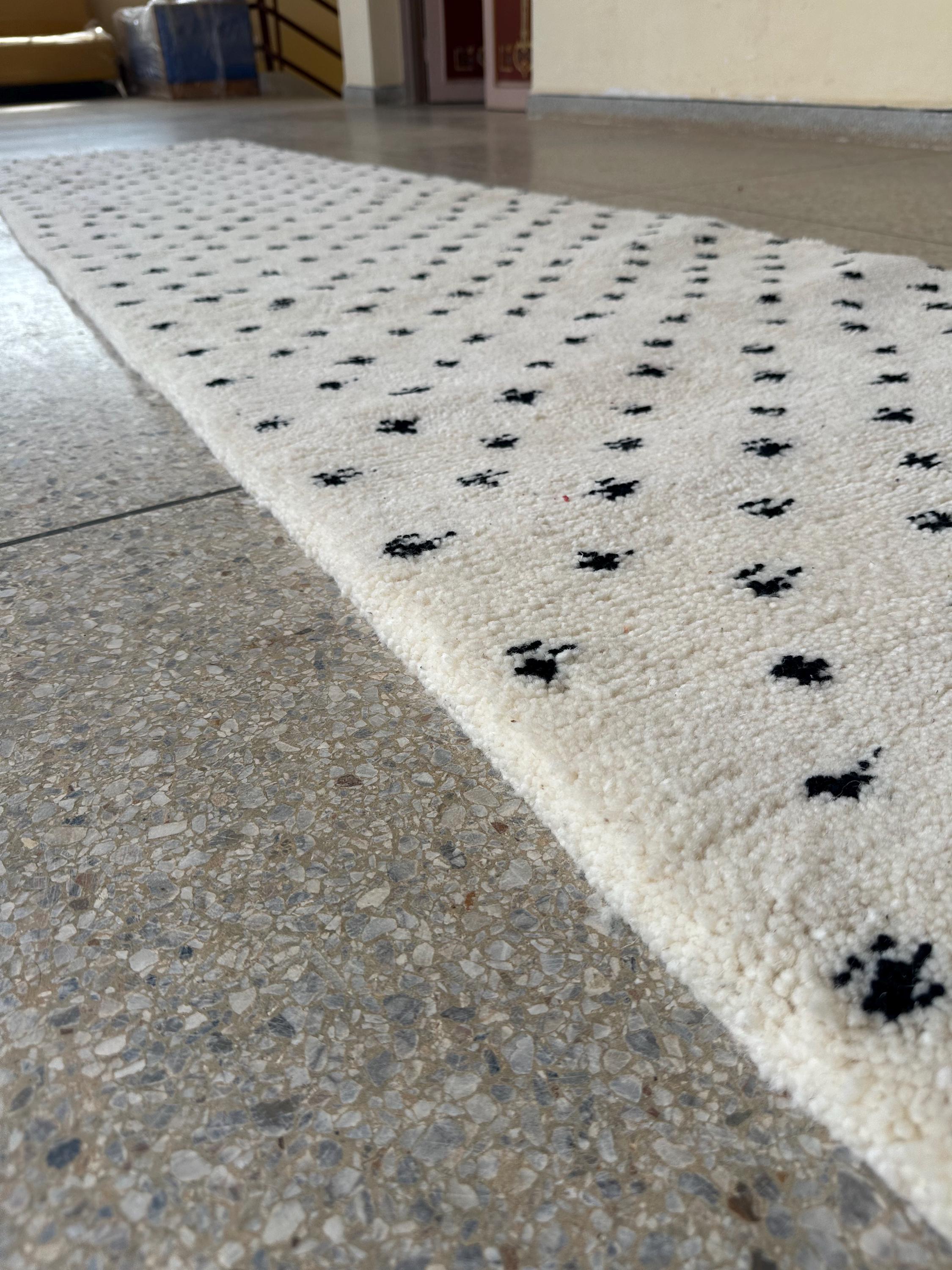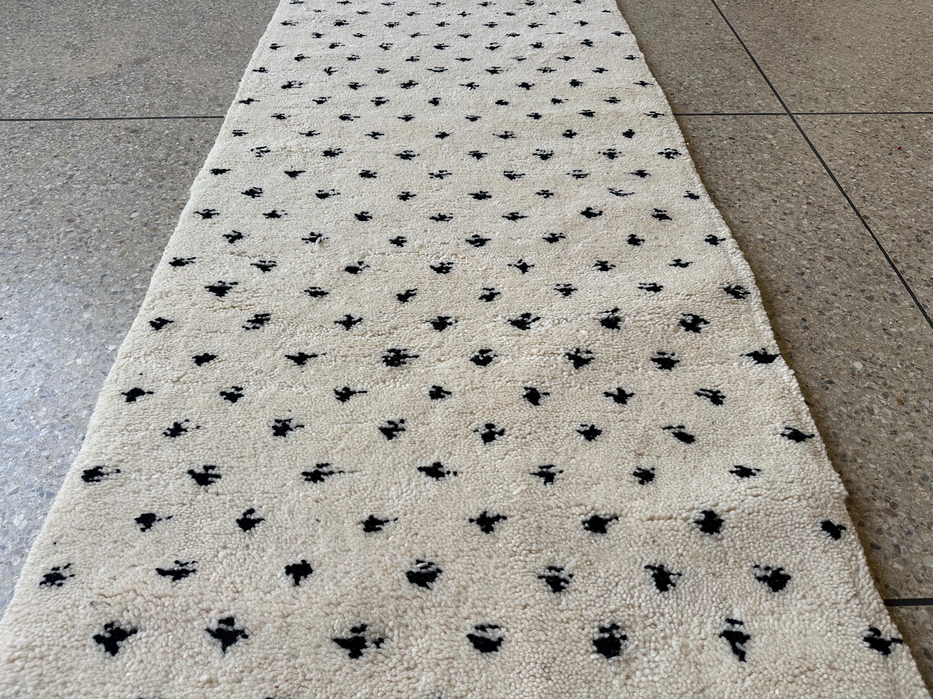 Bring timeless elegance to your home with this stunning black and white dotted Moroccan runner! Handwoven from soft, natural sheep wool, this Beni Ourain rug is the perfect blend of tradition and modern design. Its minimalist yet artistic dotted pattern makes it a versatile piece for hallways, entryways, or even as a stylish accent in your living room. Designed for Scandinavian and contemporary home styles, this luxurious runner adds warmth, texture, and authenticity to your space. Upgrade your decor with this handcrafted masterpiece today!