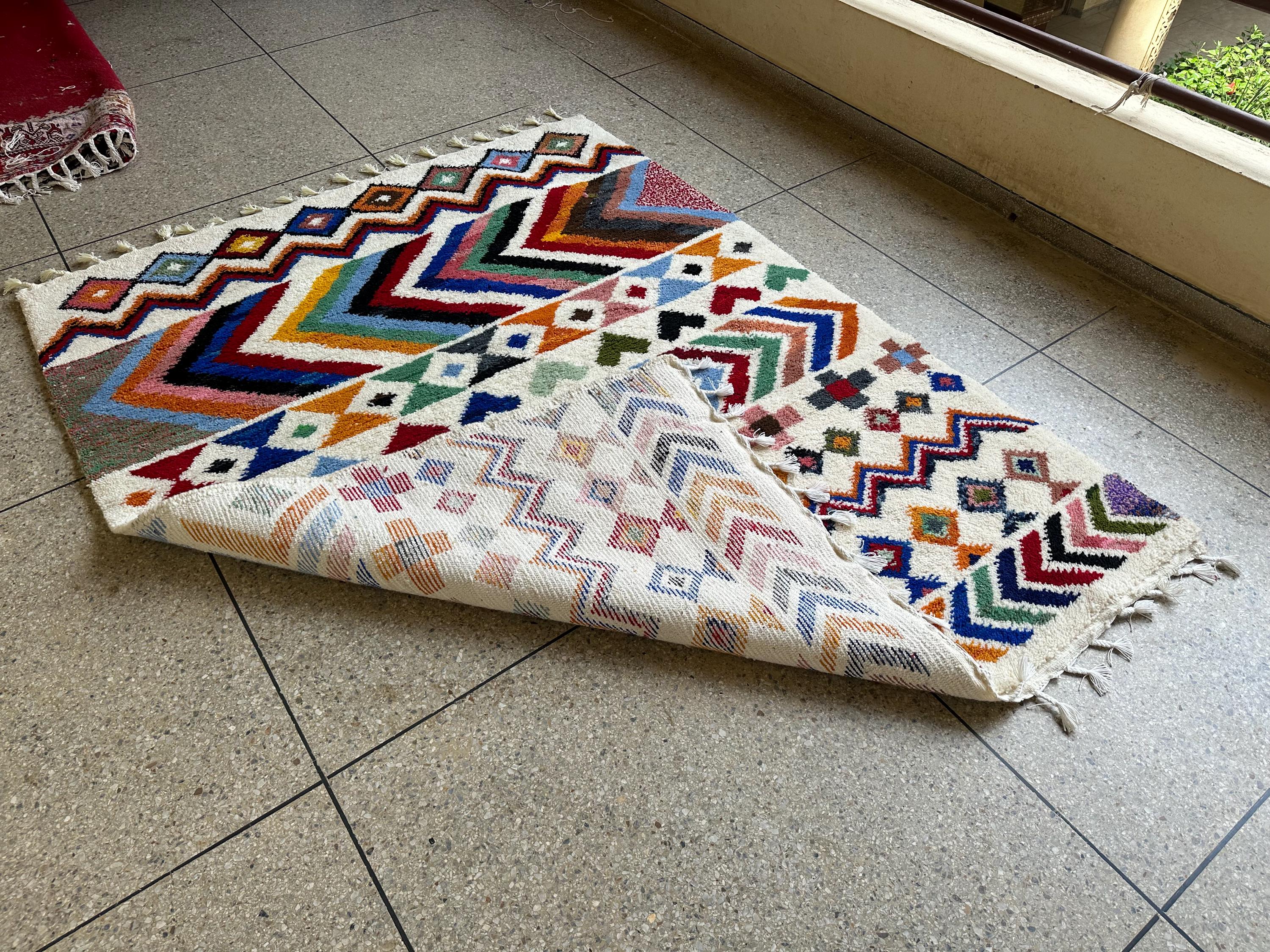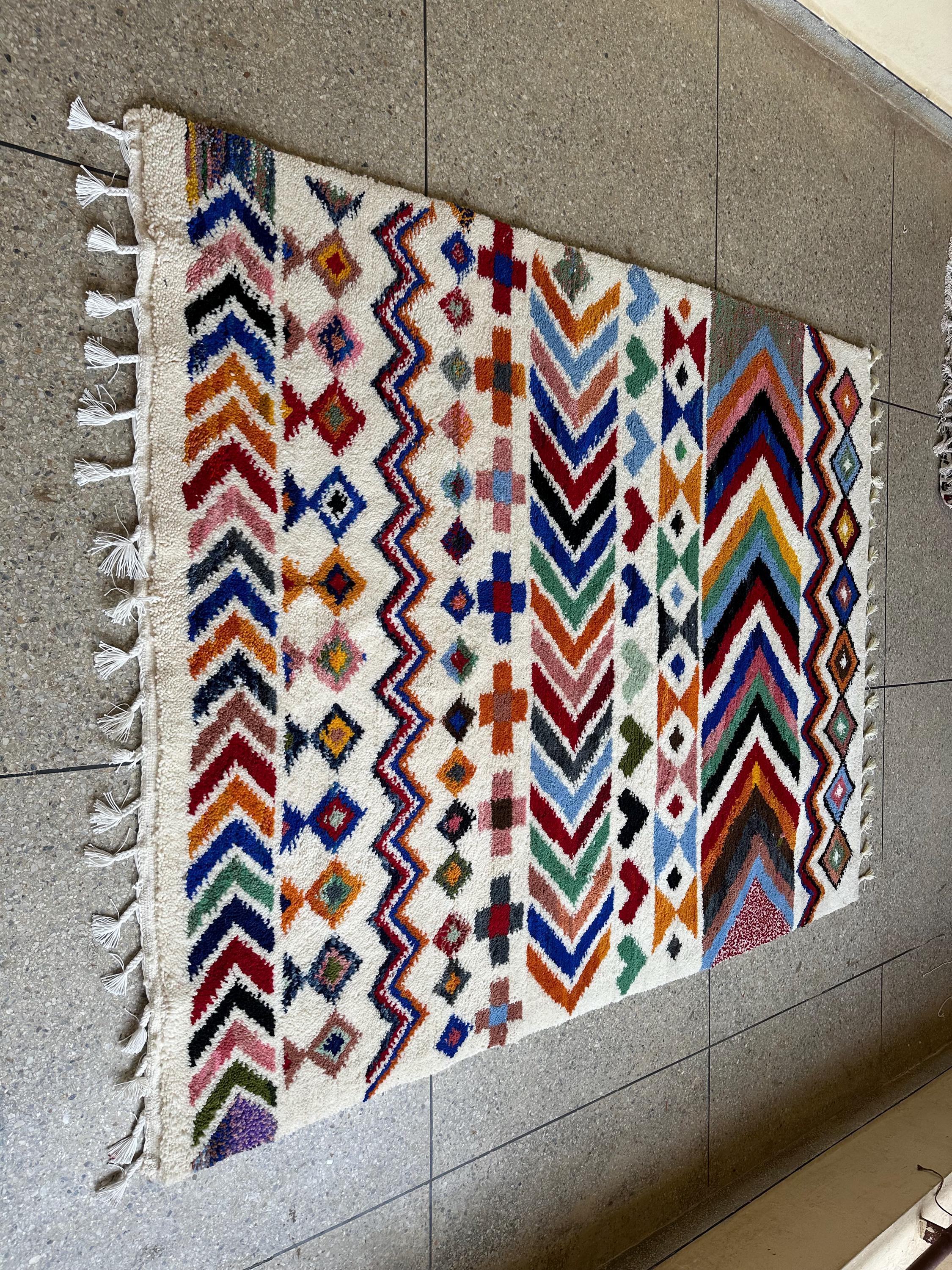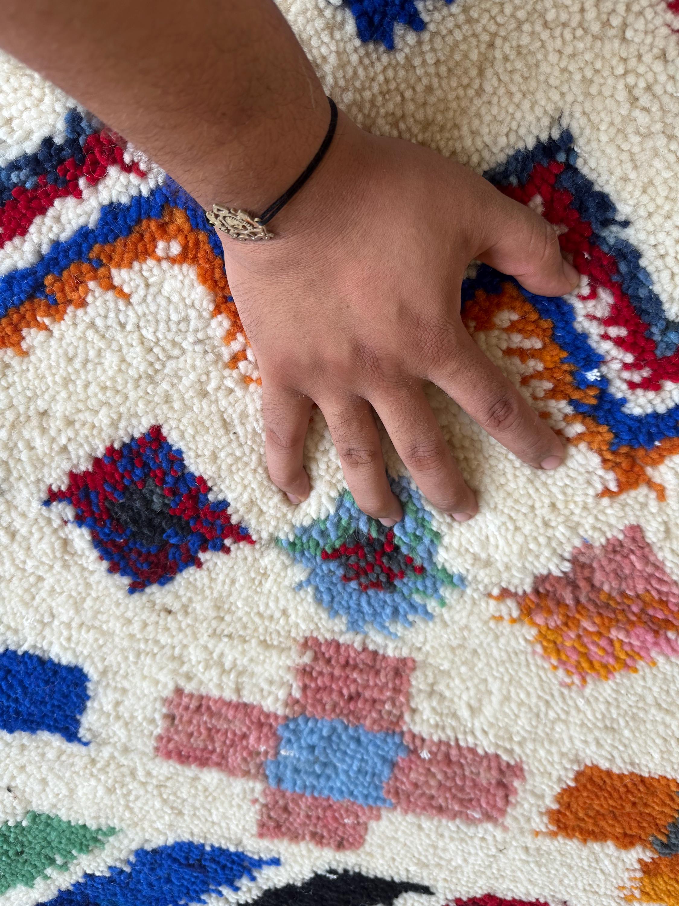 This fabulous Moroccan Rug that will give your room both a cozy feeling and stylish is made from 100% Natural sheep wool, It's Very plush and comfy to walk on, actually It's Heaven for your feet.
