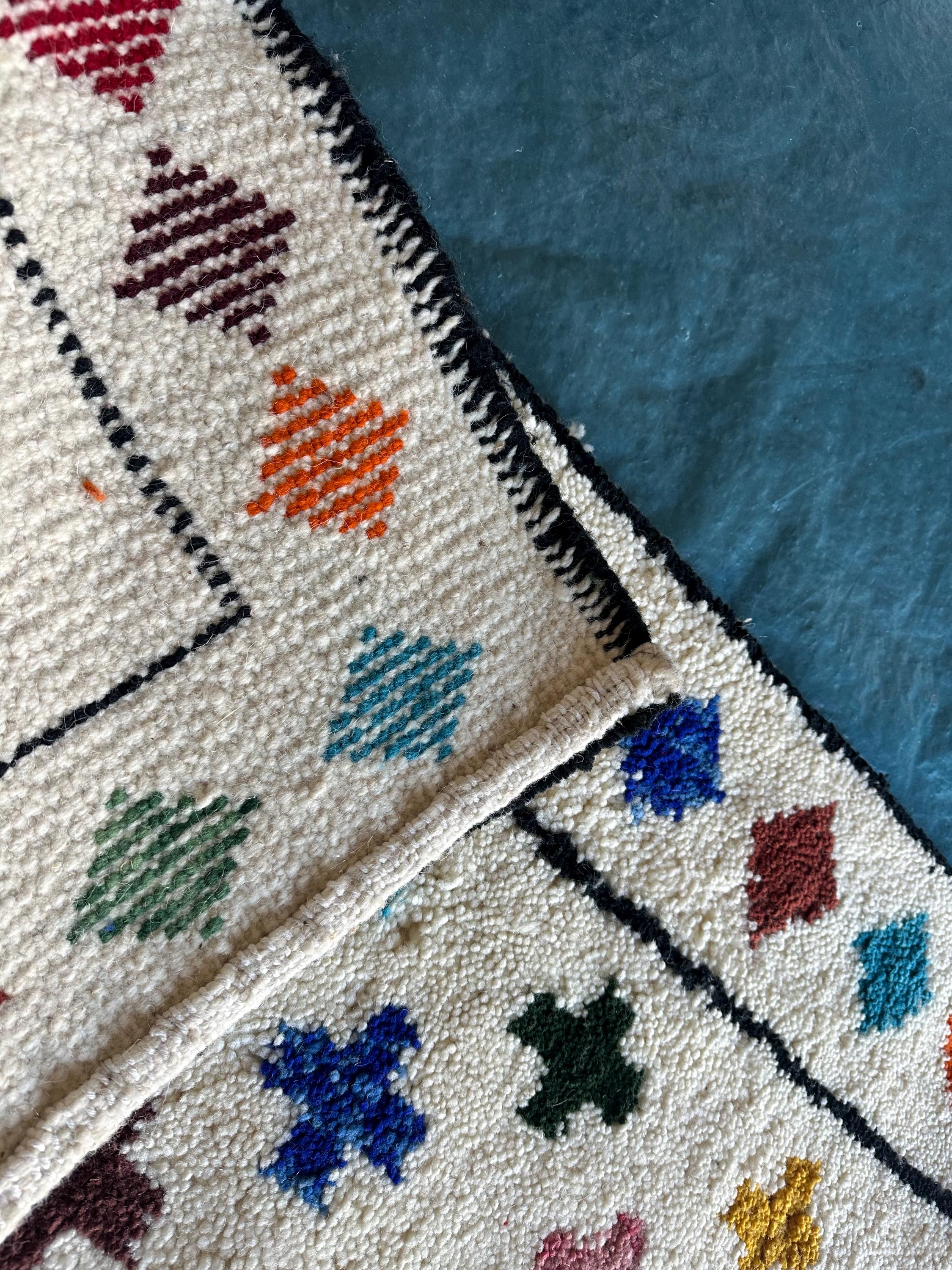 Cultural Significance: A tribute to Berber tradition, these rugs not only enhance your decor but also carry a story of Moroccan heritage, weaving symbols of happiness, protection, and unity.