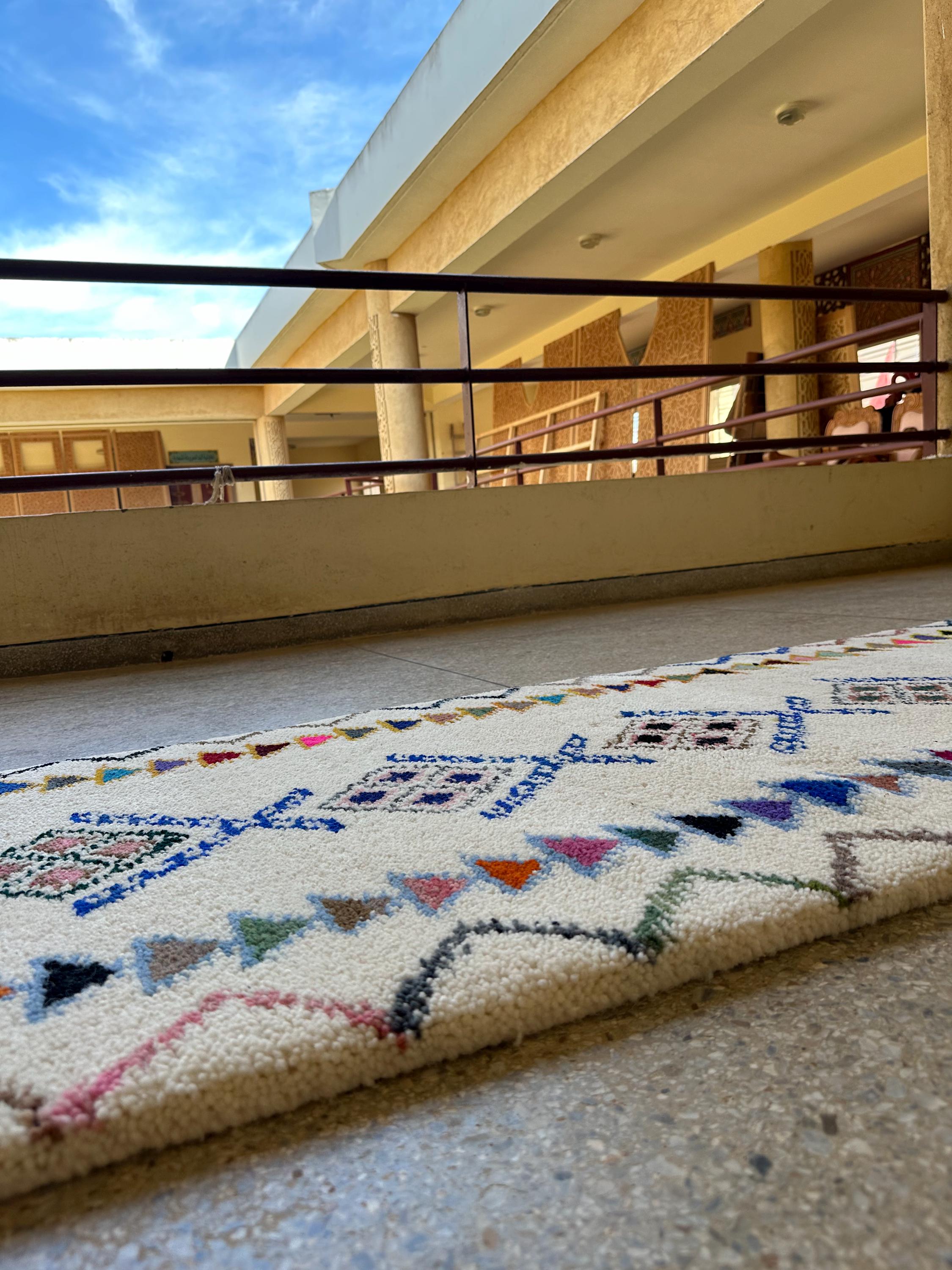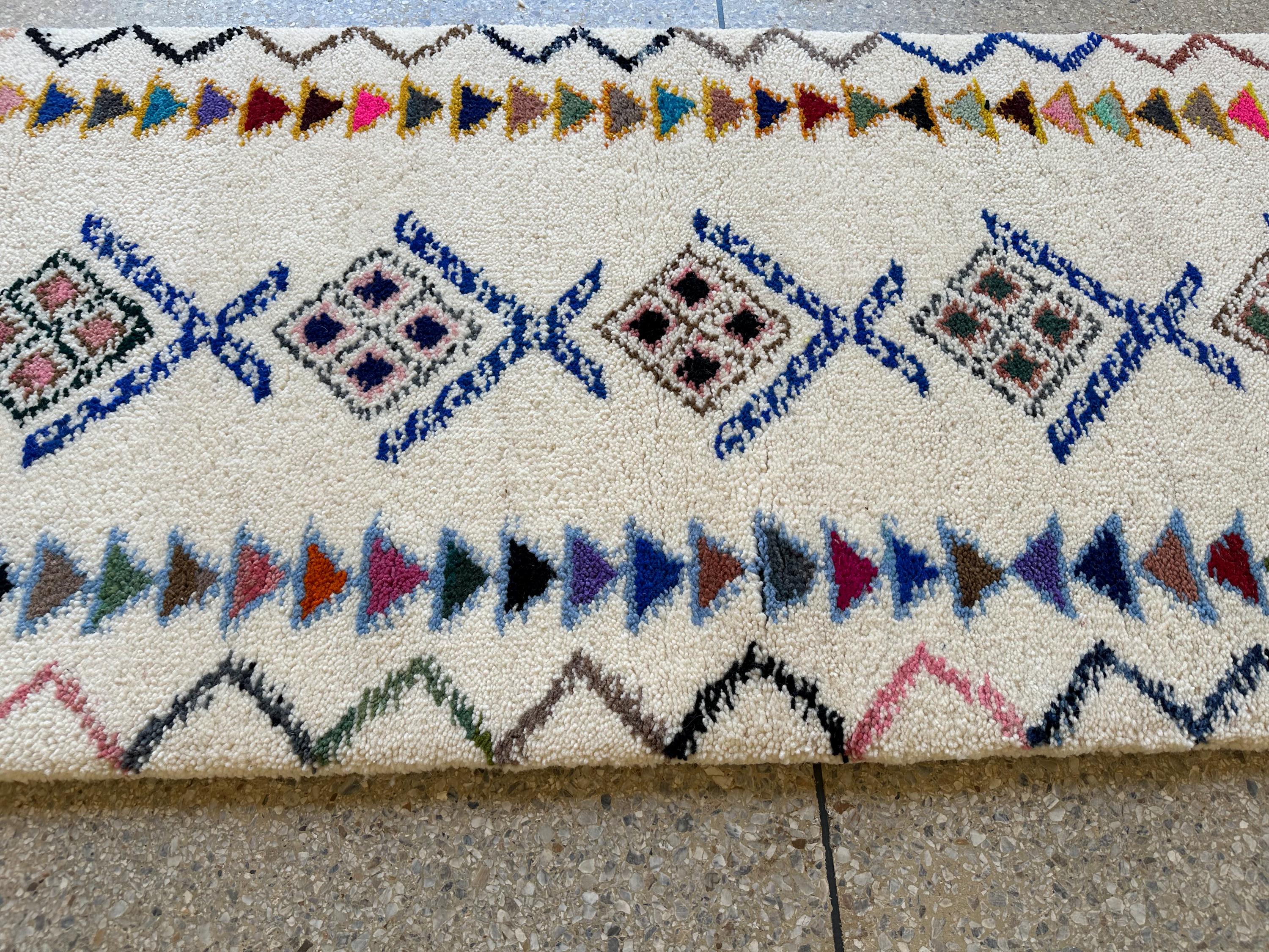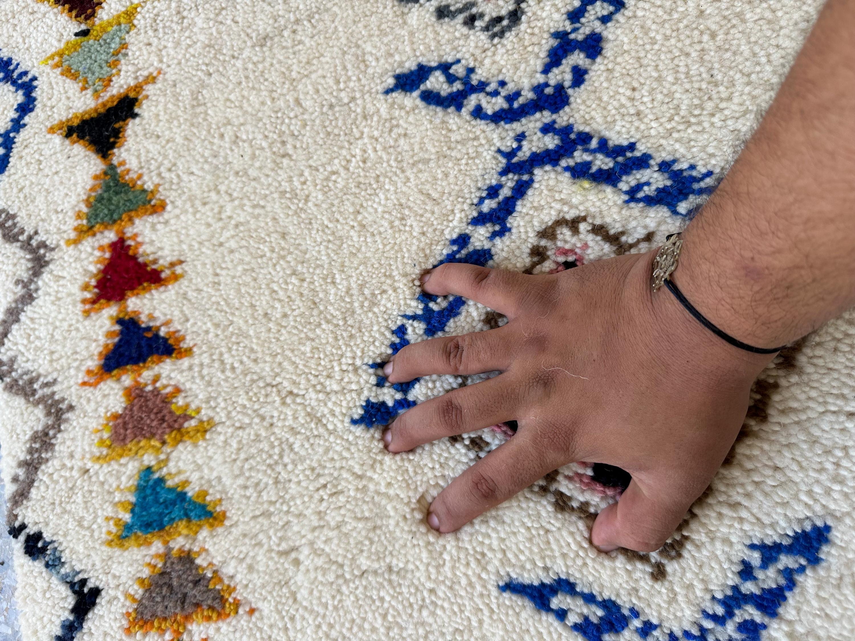 This fabulous Moroccan Rug that will give your room both a cozy feeling and stylish is made from 100% Natural sheep wool, It's Very plush and comfy to walk on, actually It's Heaven for your feet.