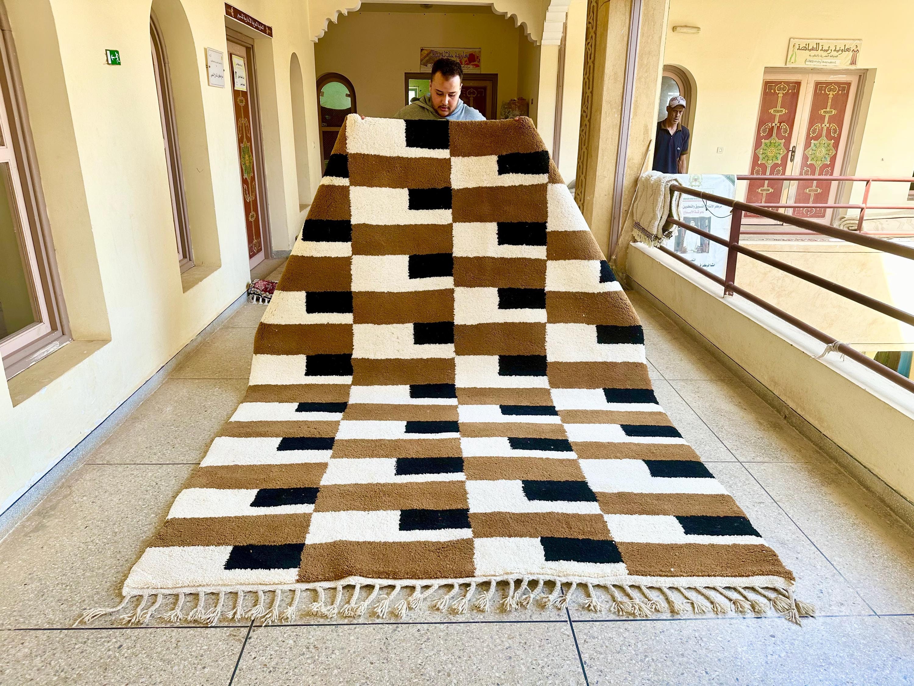Transform your space with our stunning Custom Moroccan Wool Rug! Featuring a beautiful Beni Ourain brown and white geometric design, this handwoven Berber carpet offers both style and comfort. Perfect as a chic square shag rug, it adds warmth and texture to any room. Each piece is crafted with care, showcasing the artistry of Moroccan weaving traditions. Elevate your home décor with this unique, artisanal addition that reflects both elegance and coziness. Order yours today and experience the charm of authentic Moroccan craftsmanship!