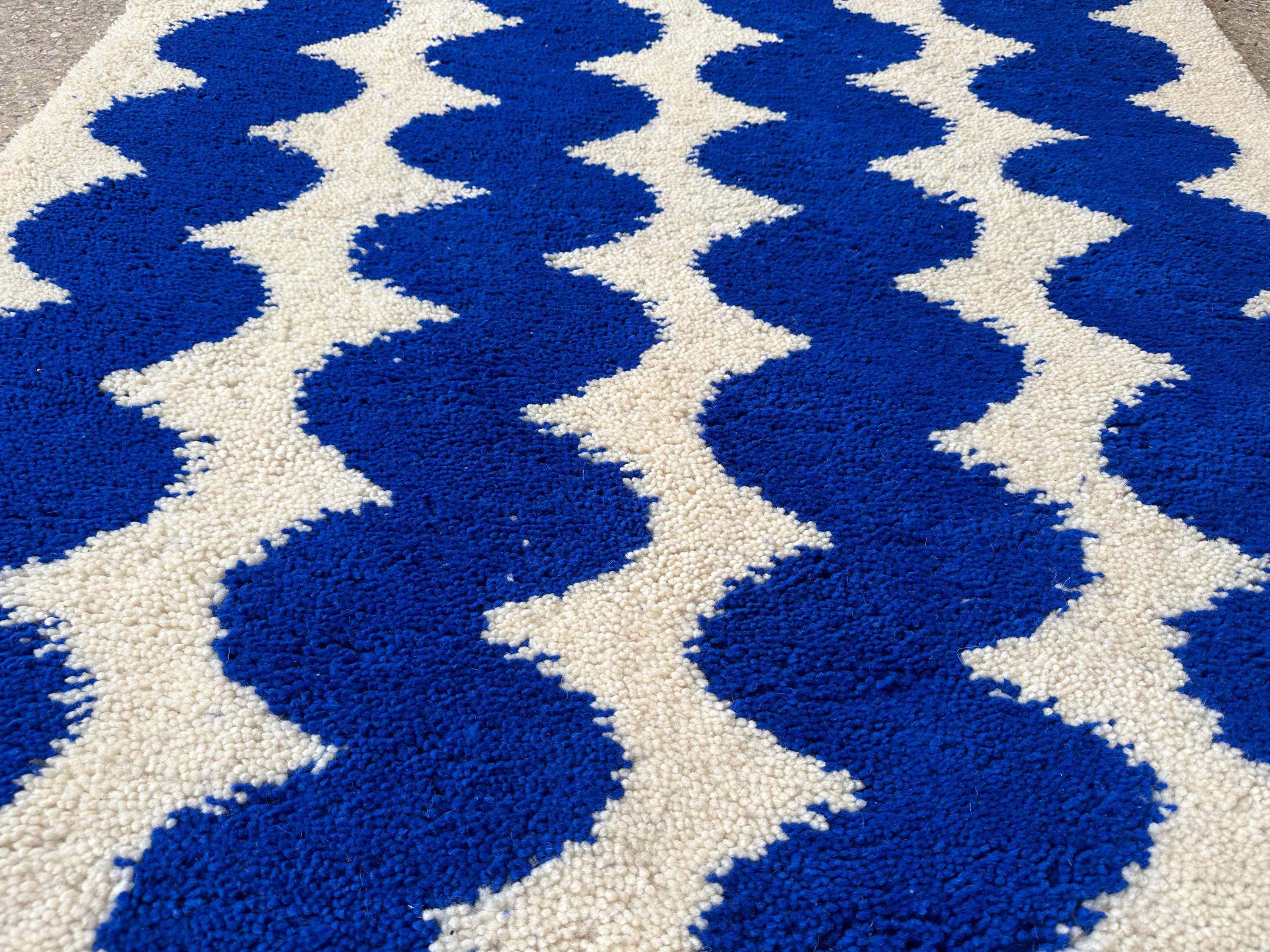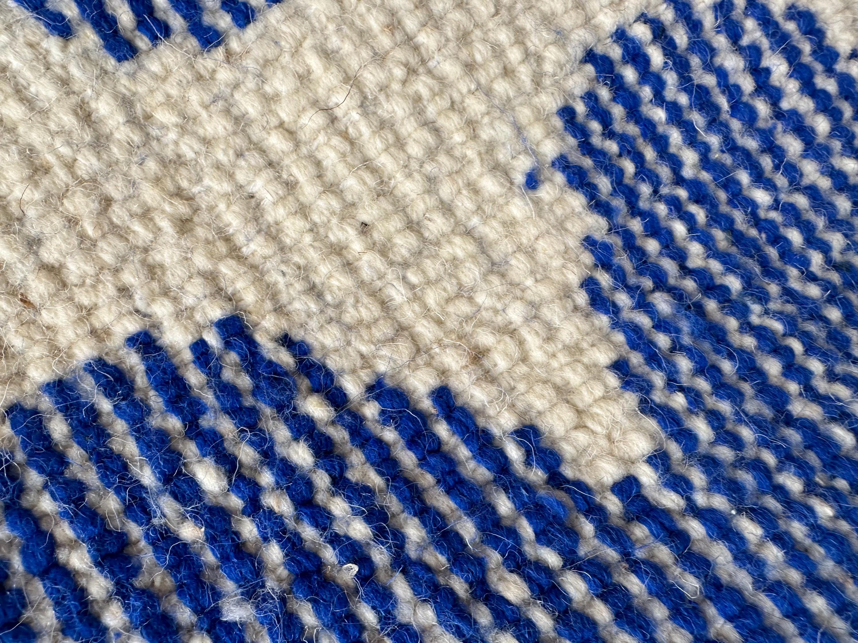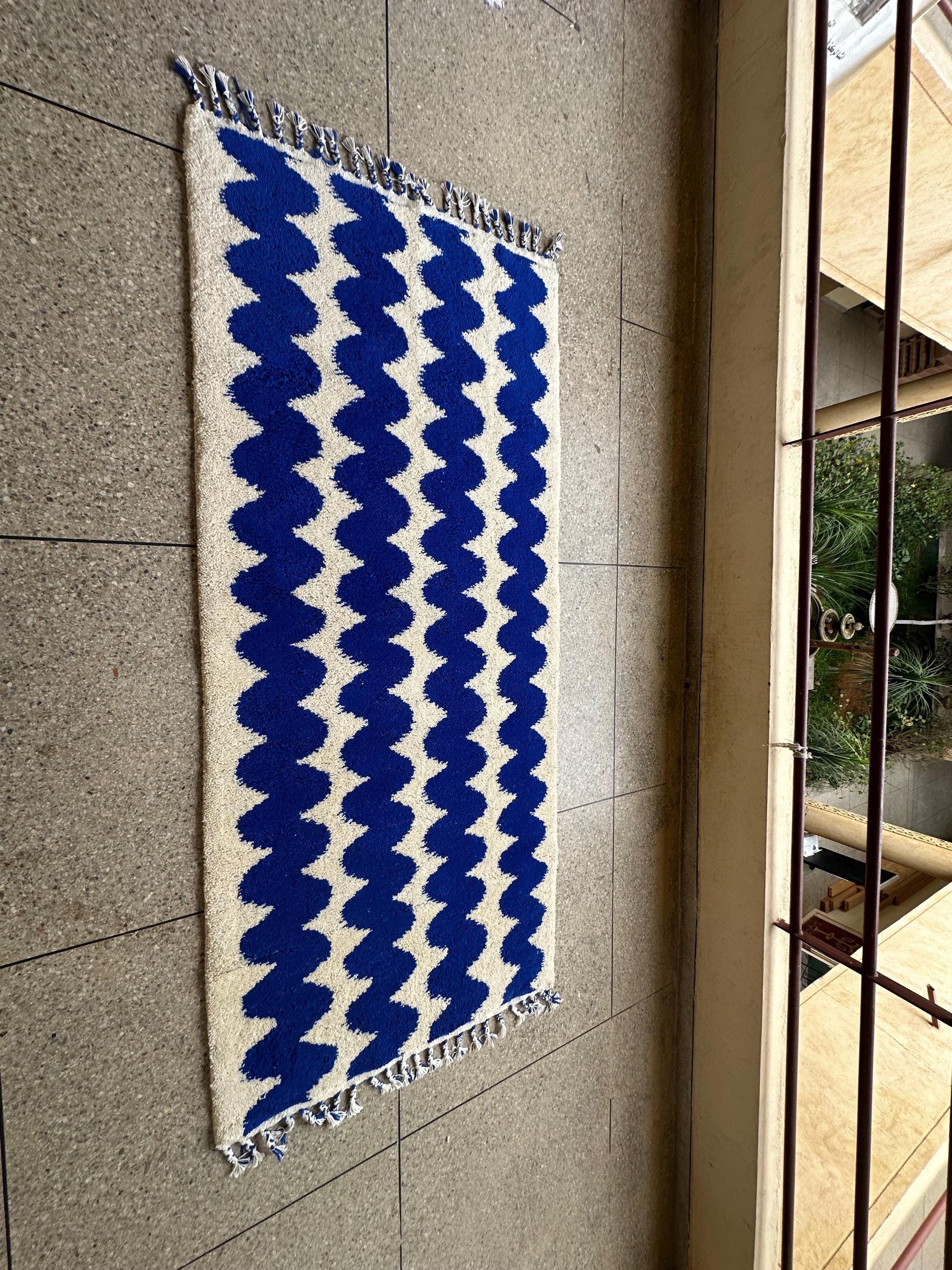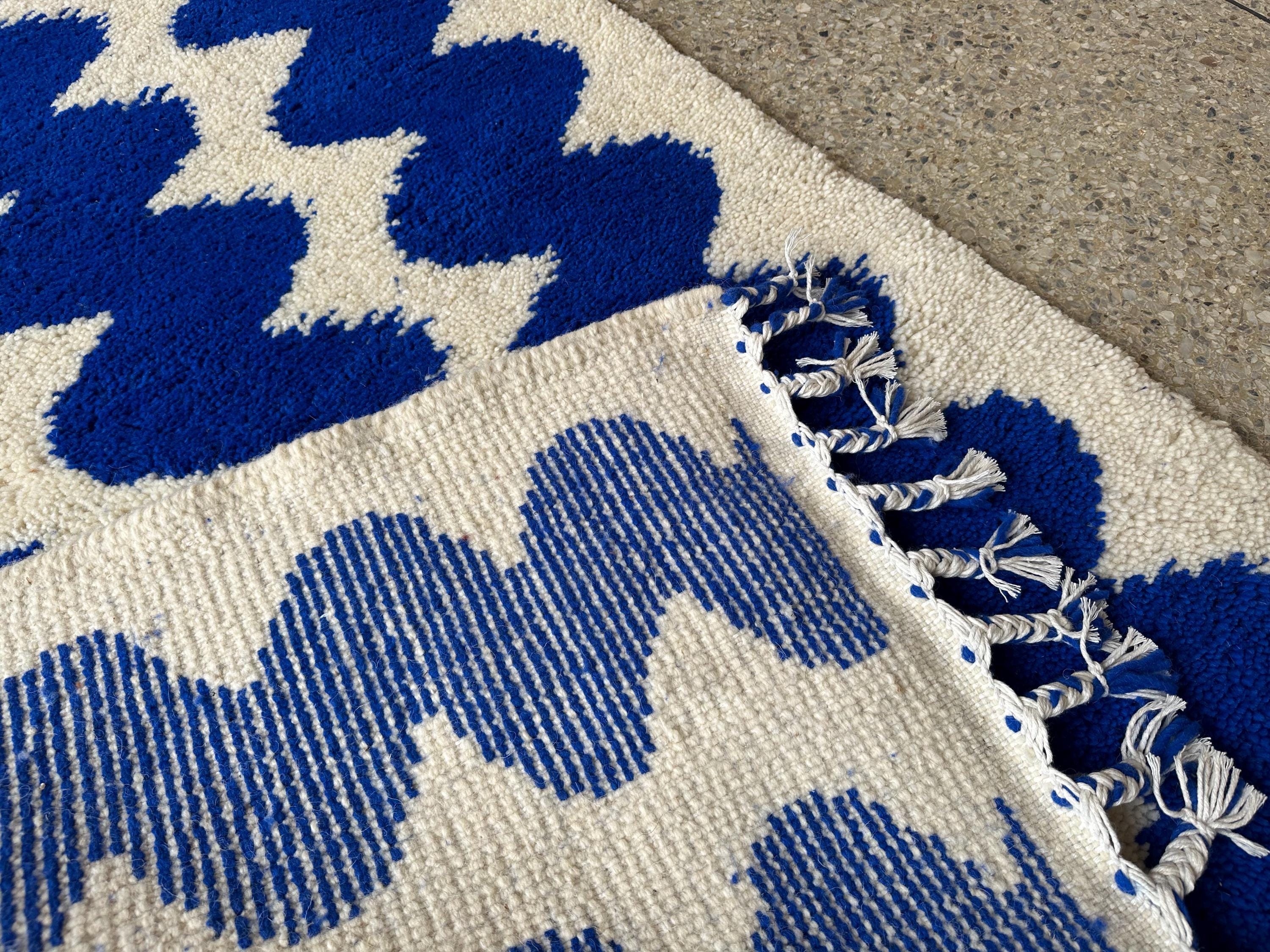 Elevate your space with our stunning BENI OURAIN RUNNER, a custom Moroccan blue and white rug that brings a touch of elegance to any entryway. This striped handmade wool rug is both perfect for hallways, offering style and coziness. Crafted with care, each Berber area rug showcases unique patterns that add character to your home. Whether you're redesigning your living space or enhancing your decor, this versatile rug is the ideal choice for making a statement. Transform your hallway today!
