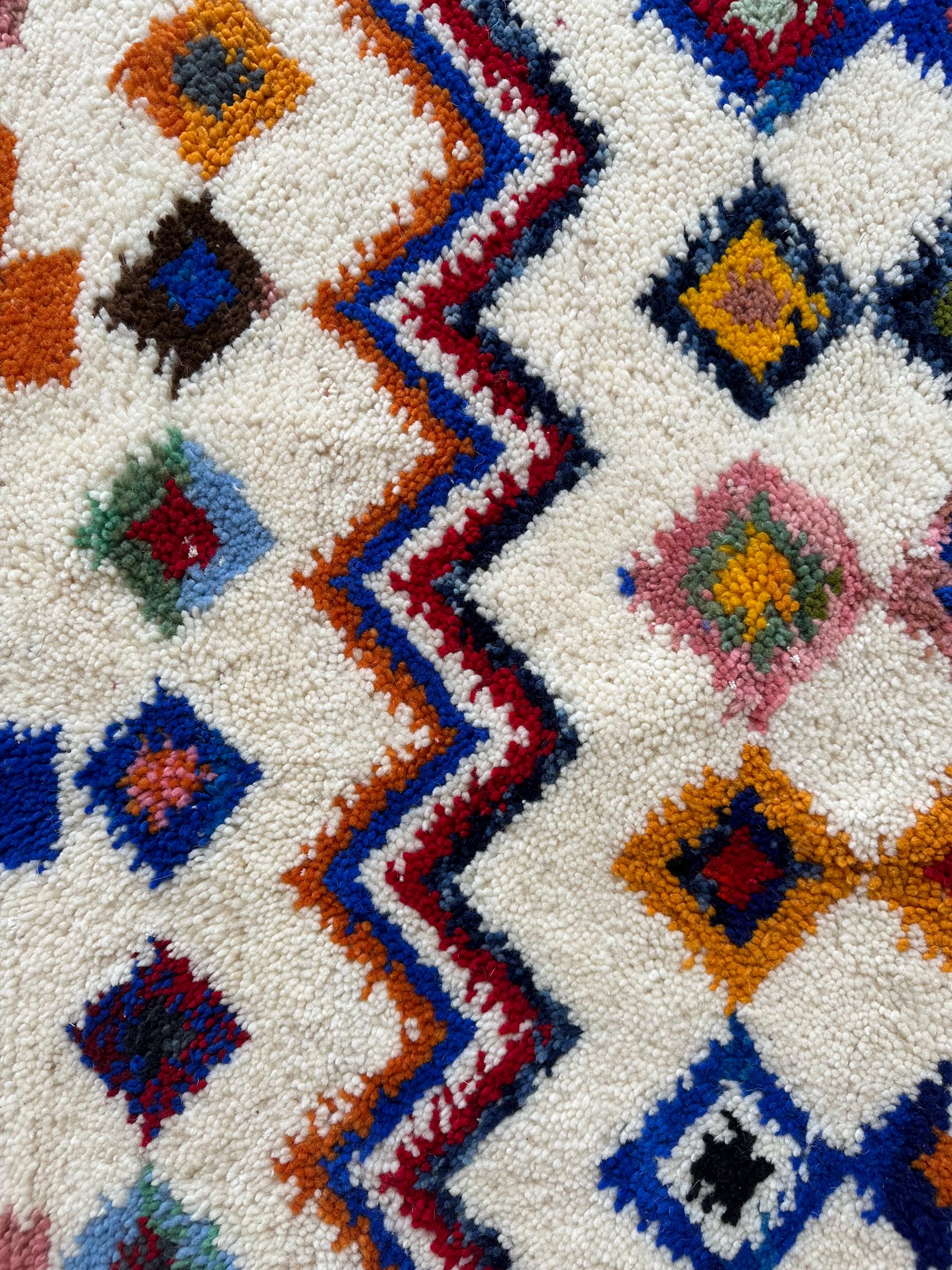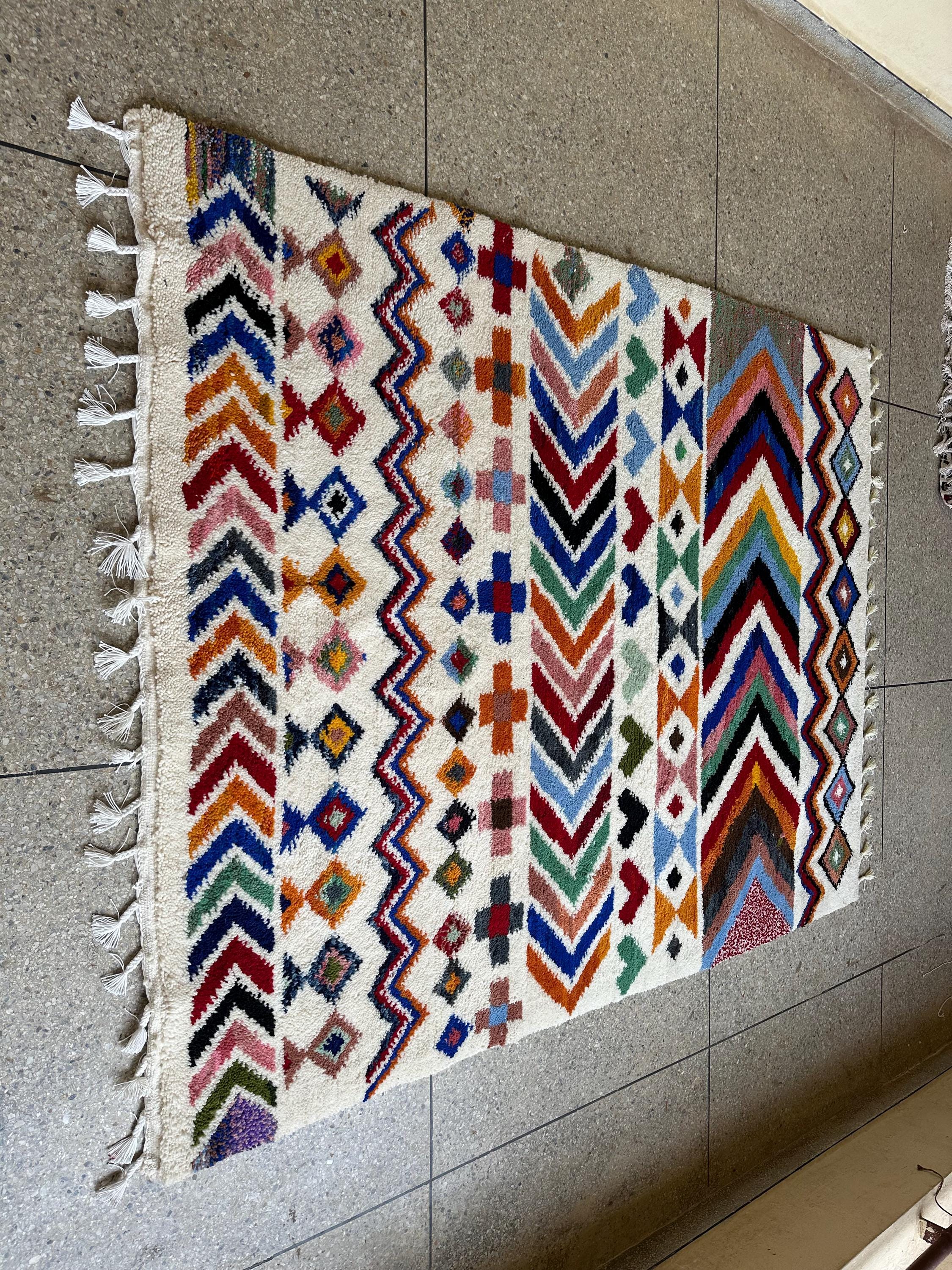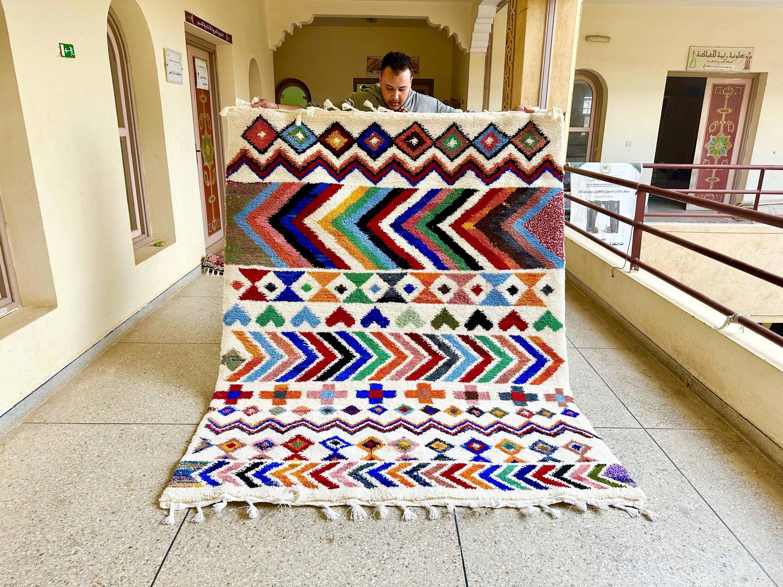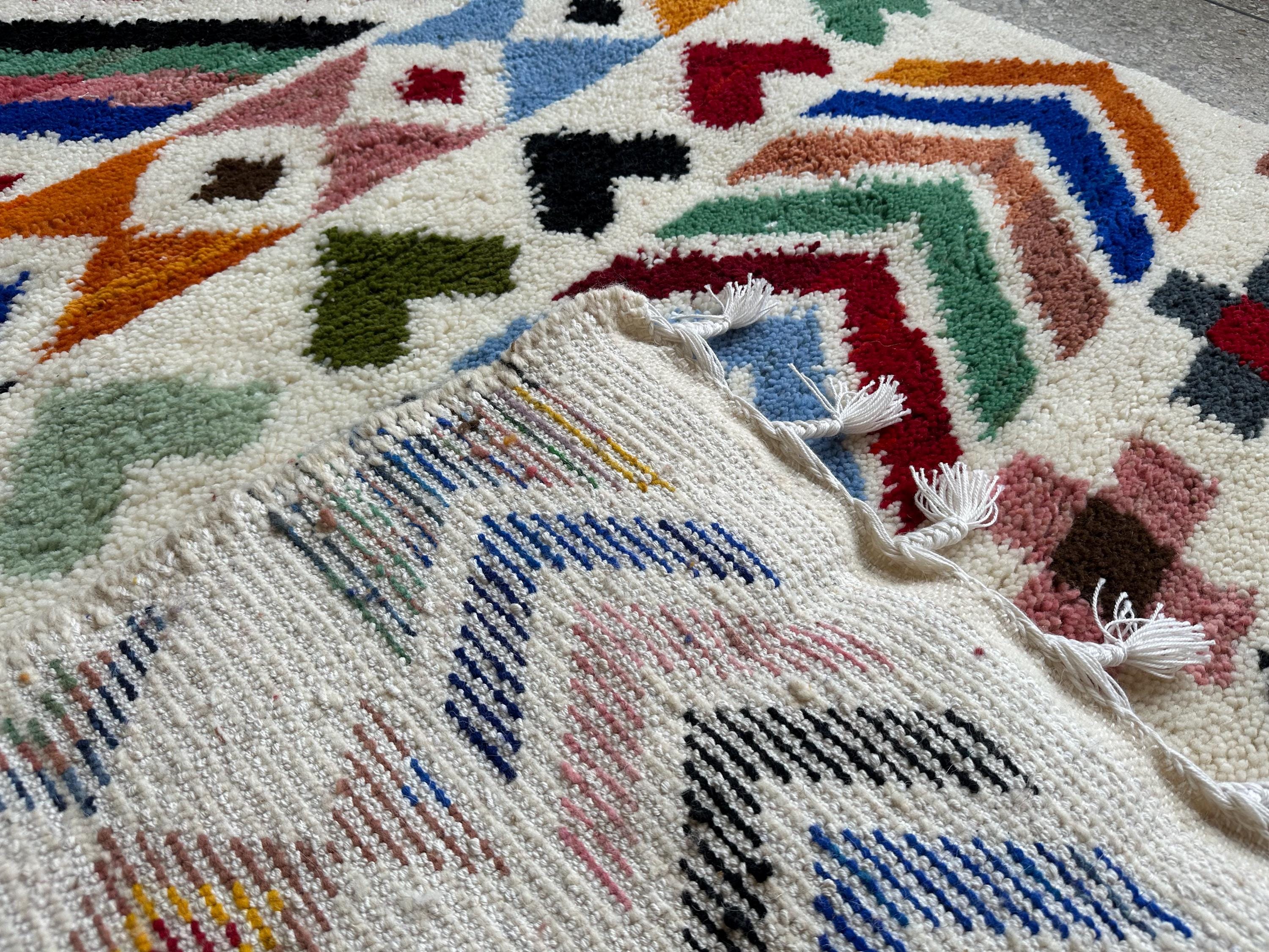 This handmade Bohemian Moroccan Rug is a stunning multicolor Beni Ourain wool rug, designed to bring warmth and personality to your space. With its abstract design and soft wool texture, this custom area rug is perfect for living rooms, bedrooms, or boho home decor. Elevate your space with a touch of authentic Moroccan craftsmanship and cozy elegance.