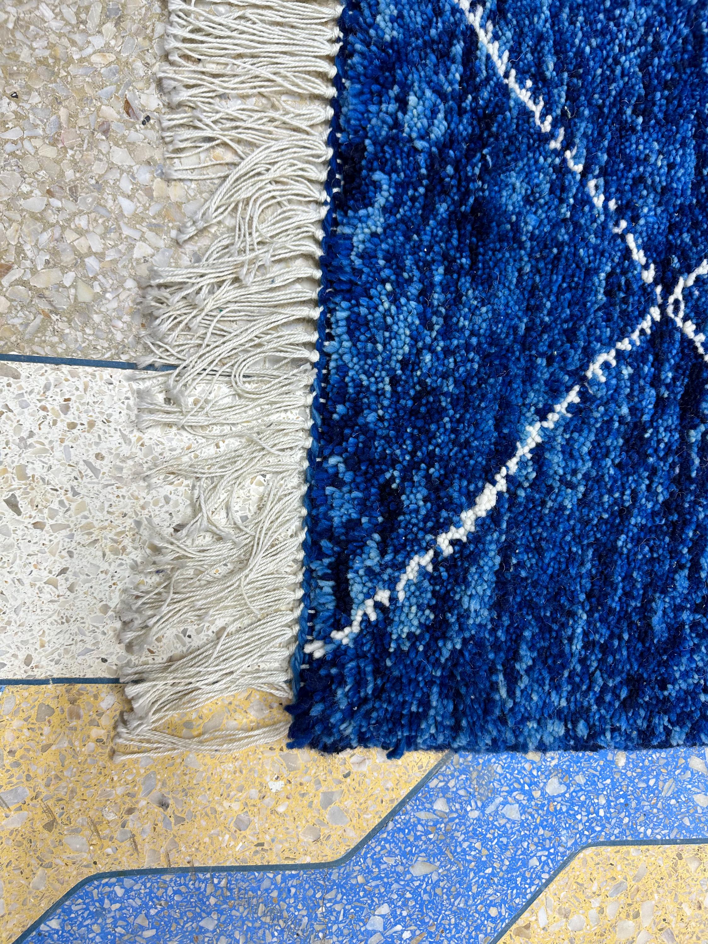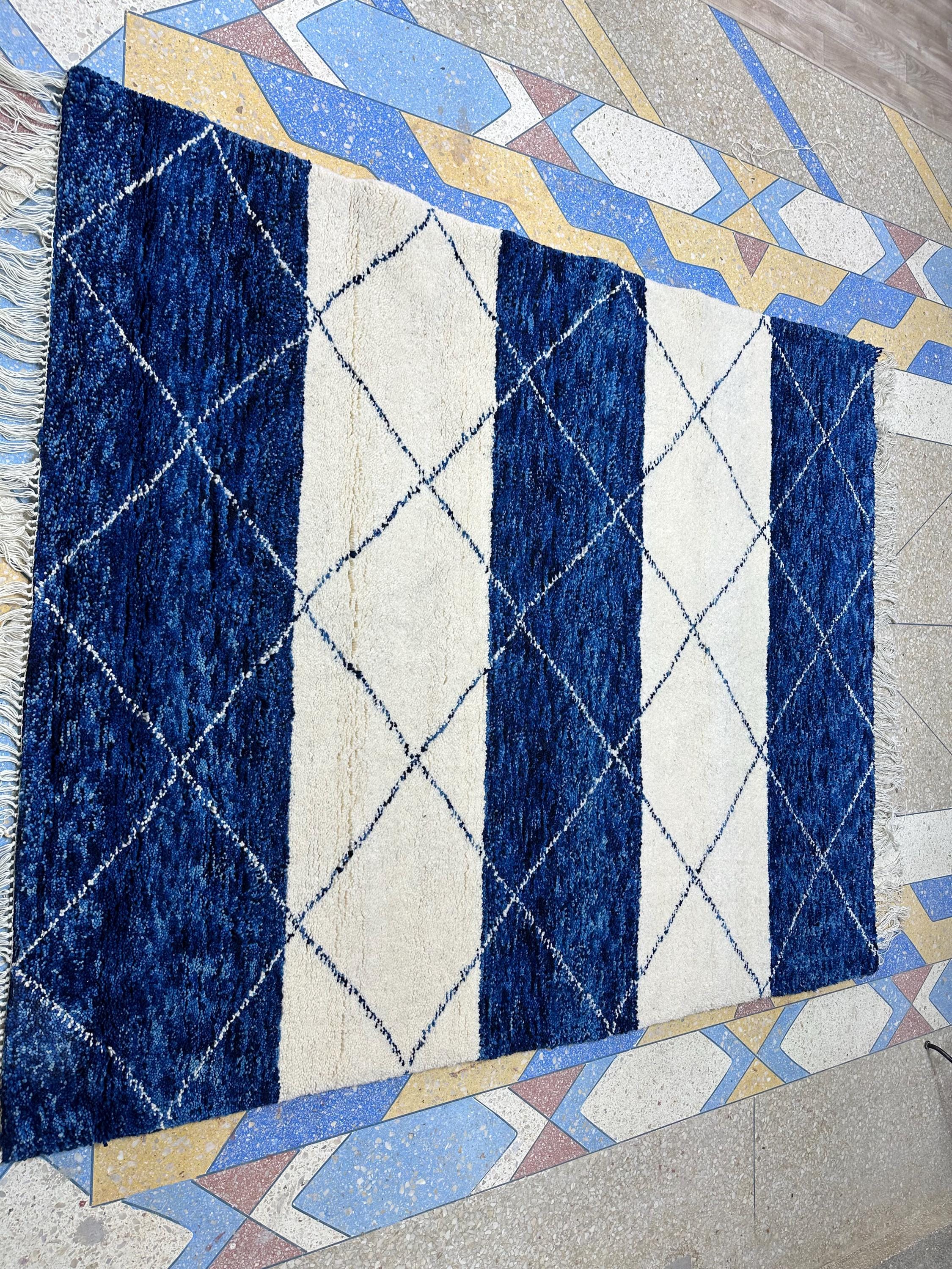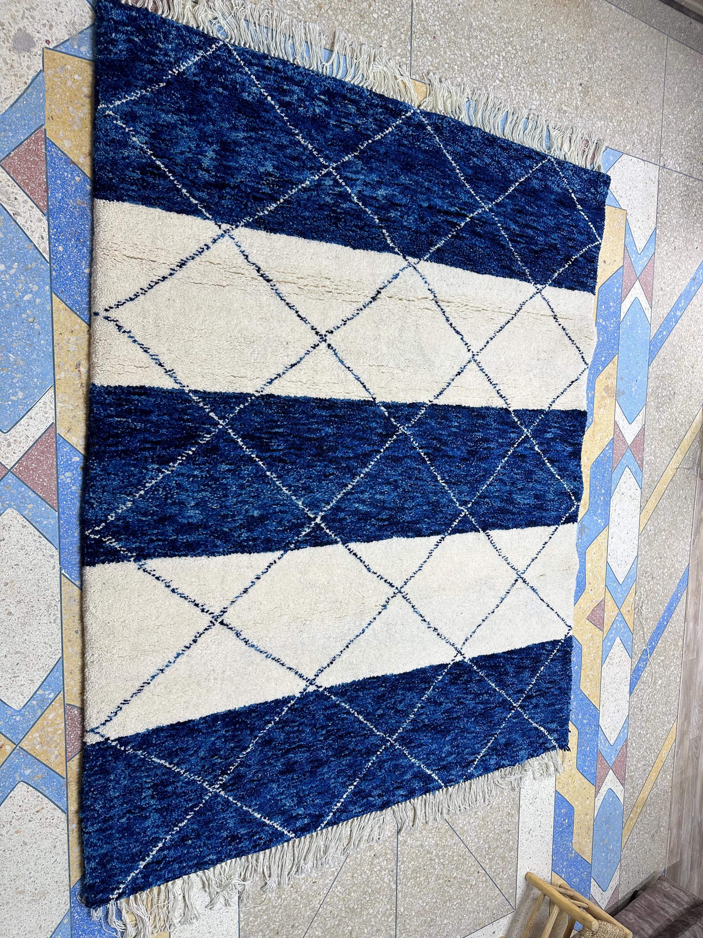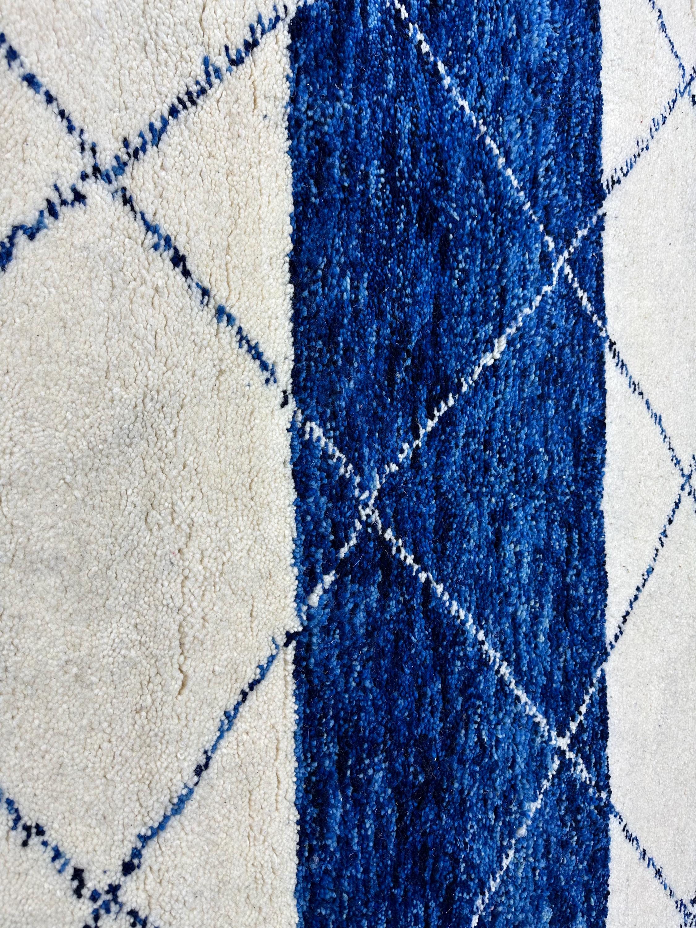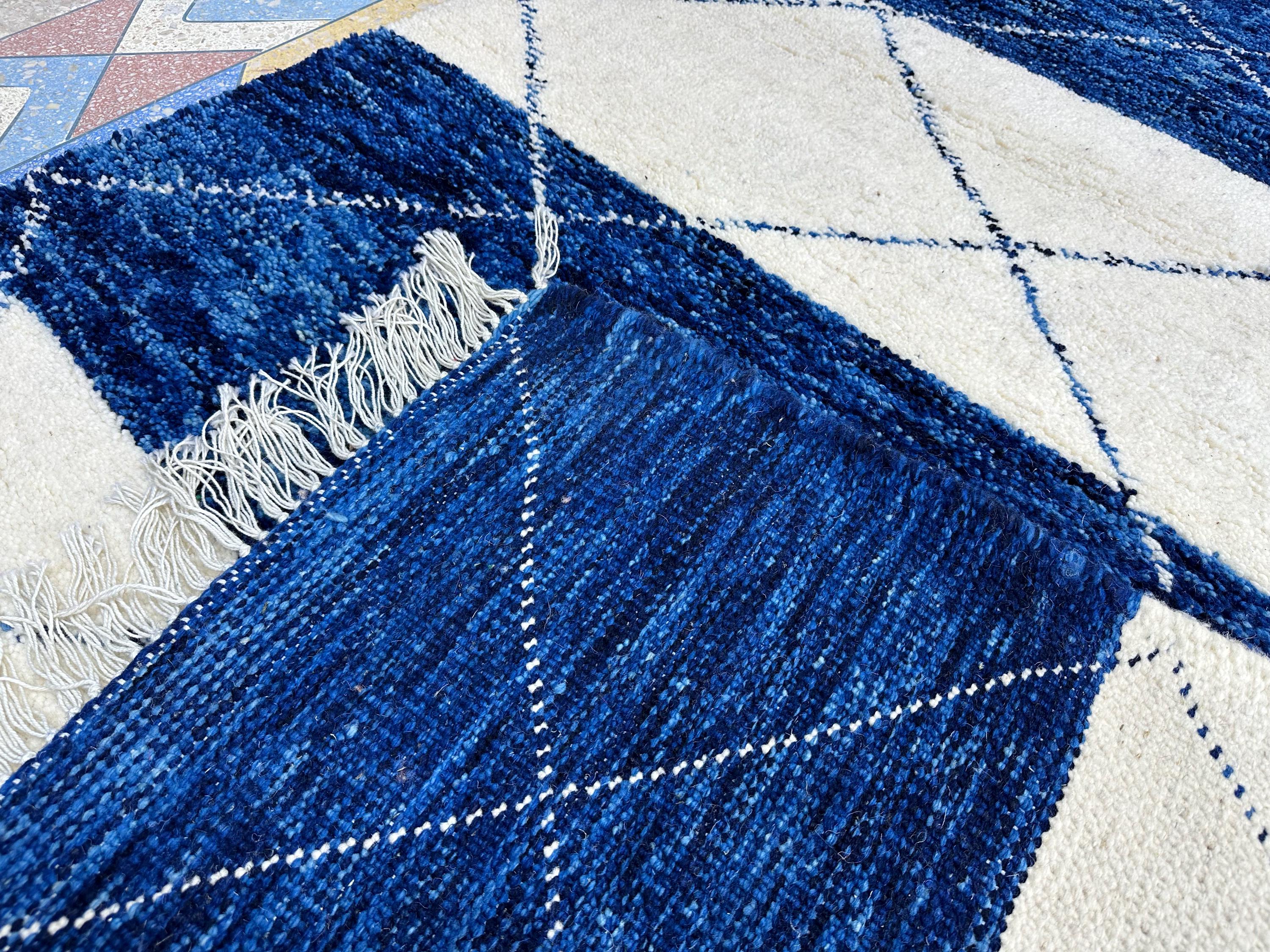 New Blue and White Beni ourain rug - 7.2x5.8FT Moroccan rug - Wool rug - Geometric Morocco rug - Genuine Lamb Wool - Handmade rug