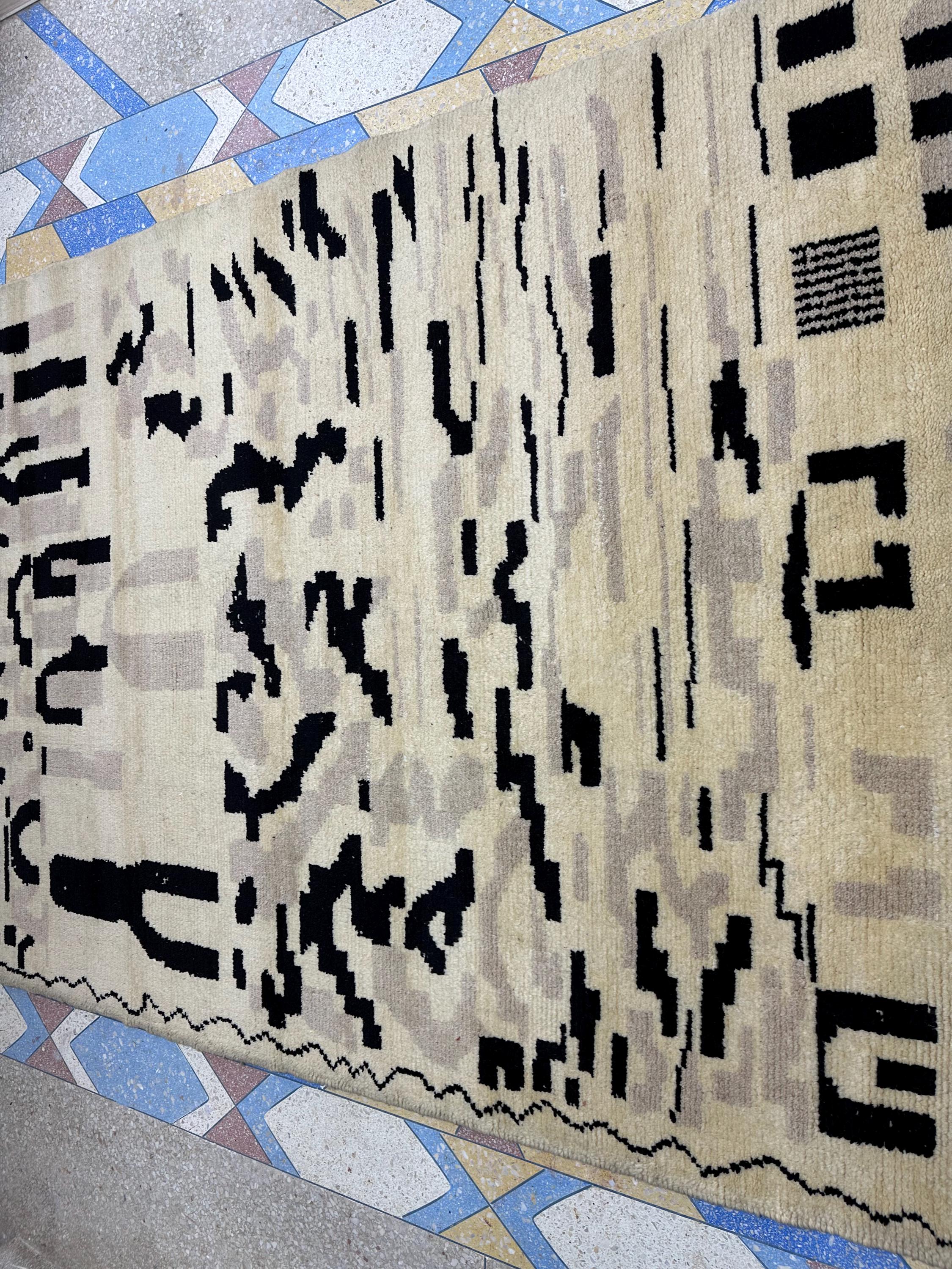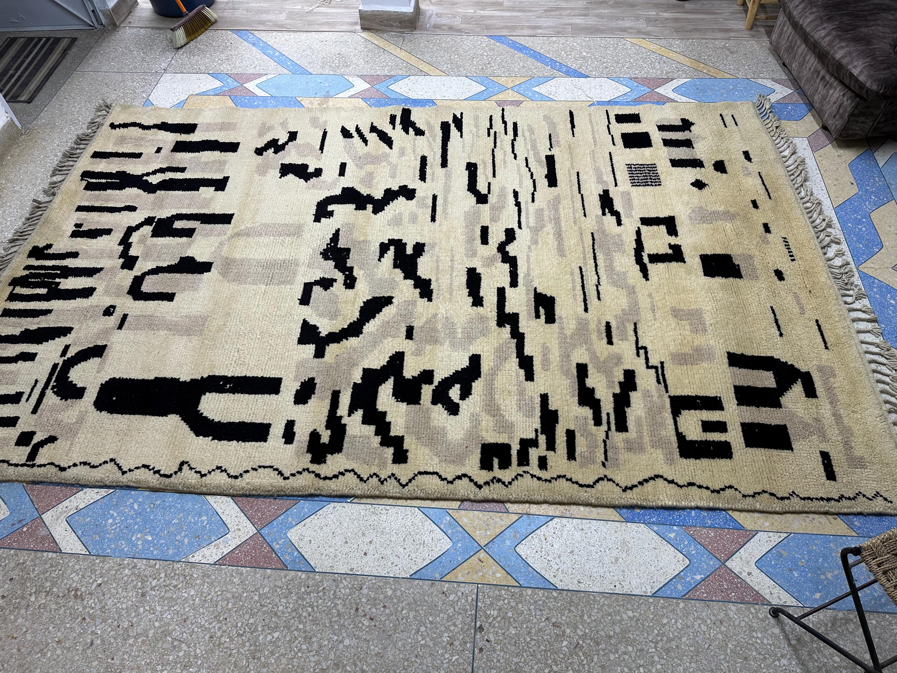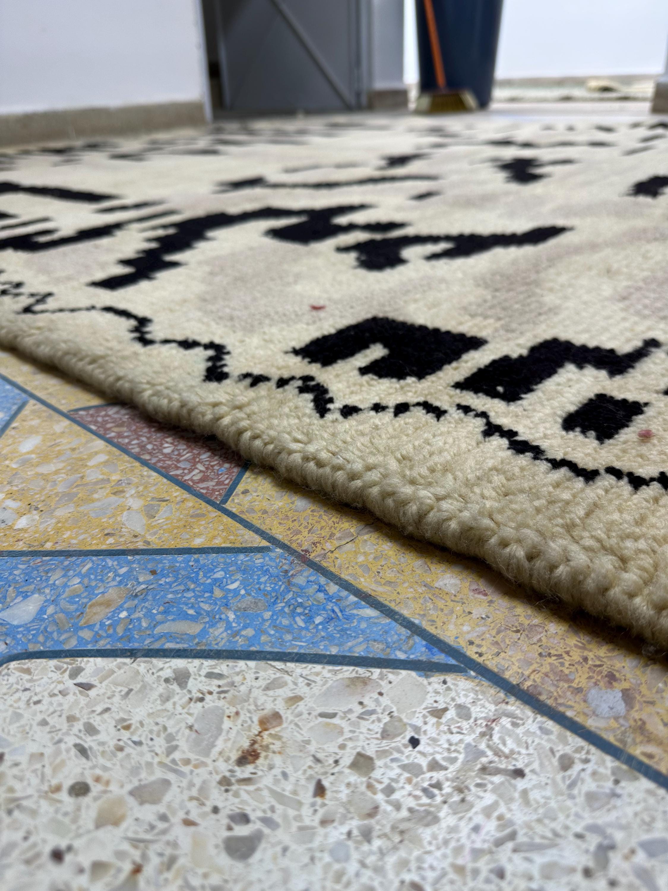 ARTISTIC MOROCCAN RUG, Off White And Black Rug, Beni Ourain Rug, Berber Wool Rug, Handwoven Abstract Rug, Azilal Carpet, Beniourain Wool Rug