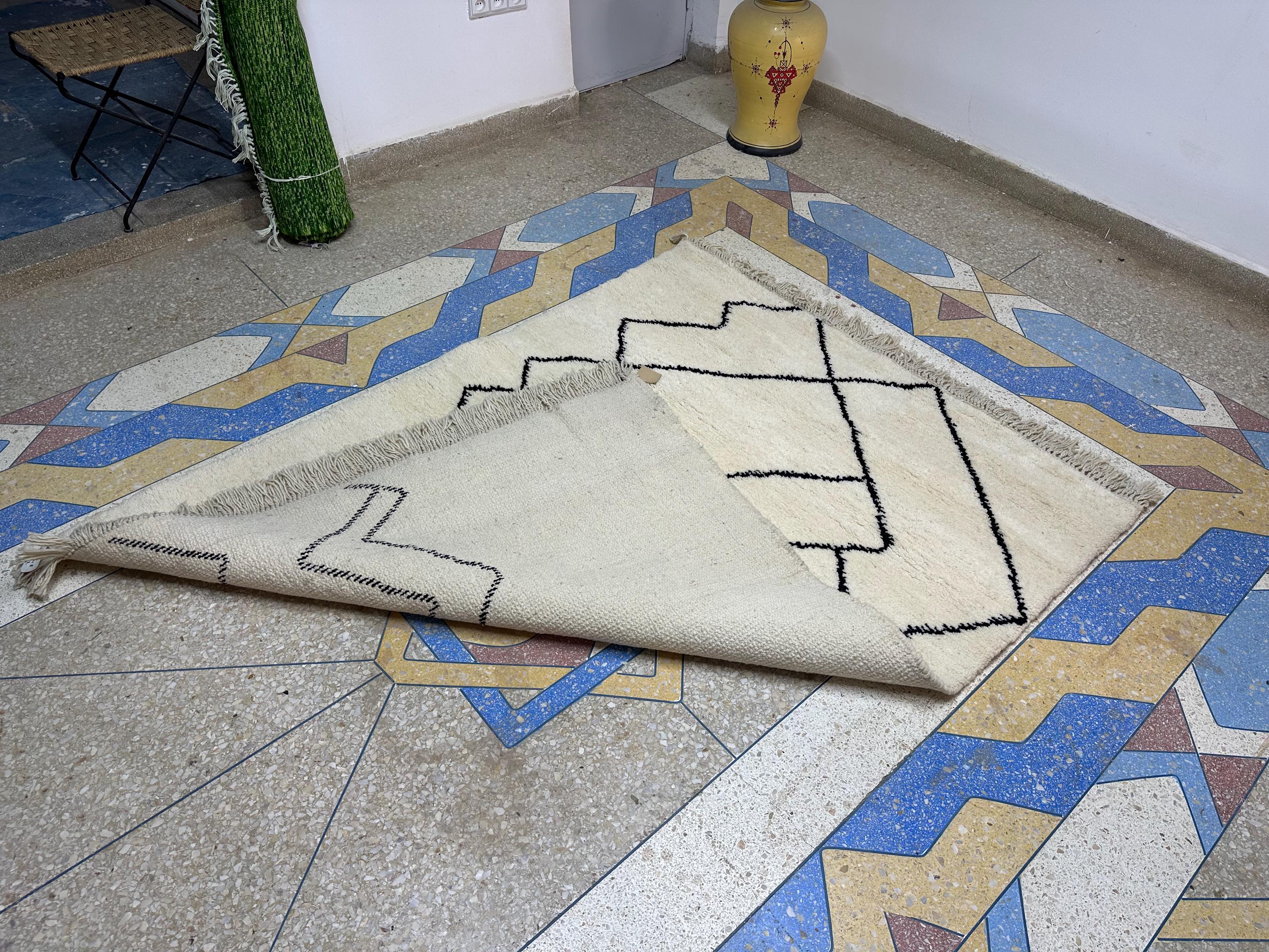 Black and White Moroccan rug - 6.8x4.8FT off white rug - Minimalist rug - Beni ourain rug - Custom rug - Handmade rug - Moroccan area rug