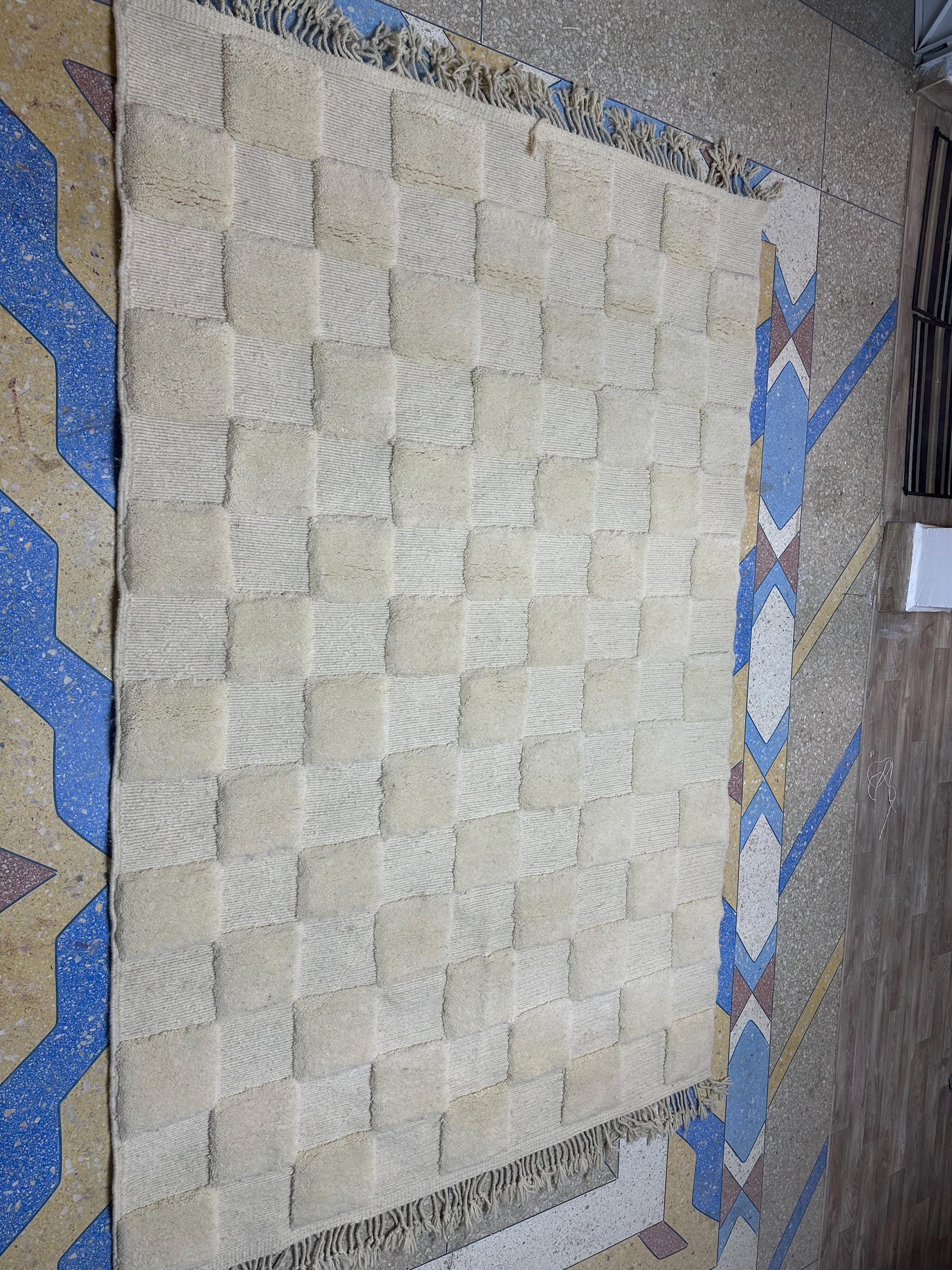 Elevate your home decor with our stunning WHITE CHECK RUG! This Handwoven Beni Ourain Rug showcases a solid checkered Moroccan design that adds a touch of elegance to any space. Made from soft, luxurious wool, this area rug is perfect for your living room, providing both comfort and style. Whether you're looking to enhance your Berber carpet collection or simply want a cozy spot to relax, this rug is the perfect choice. Experience the beauty of artisan craftsmanship today!