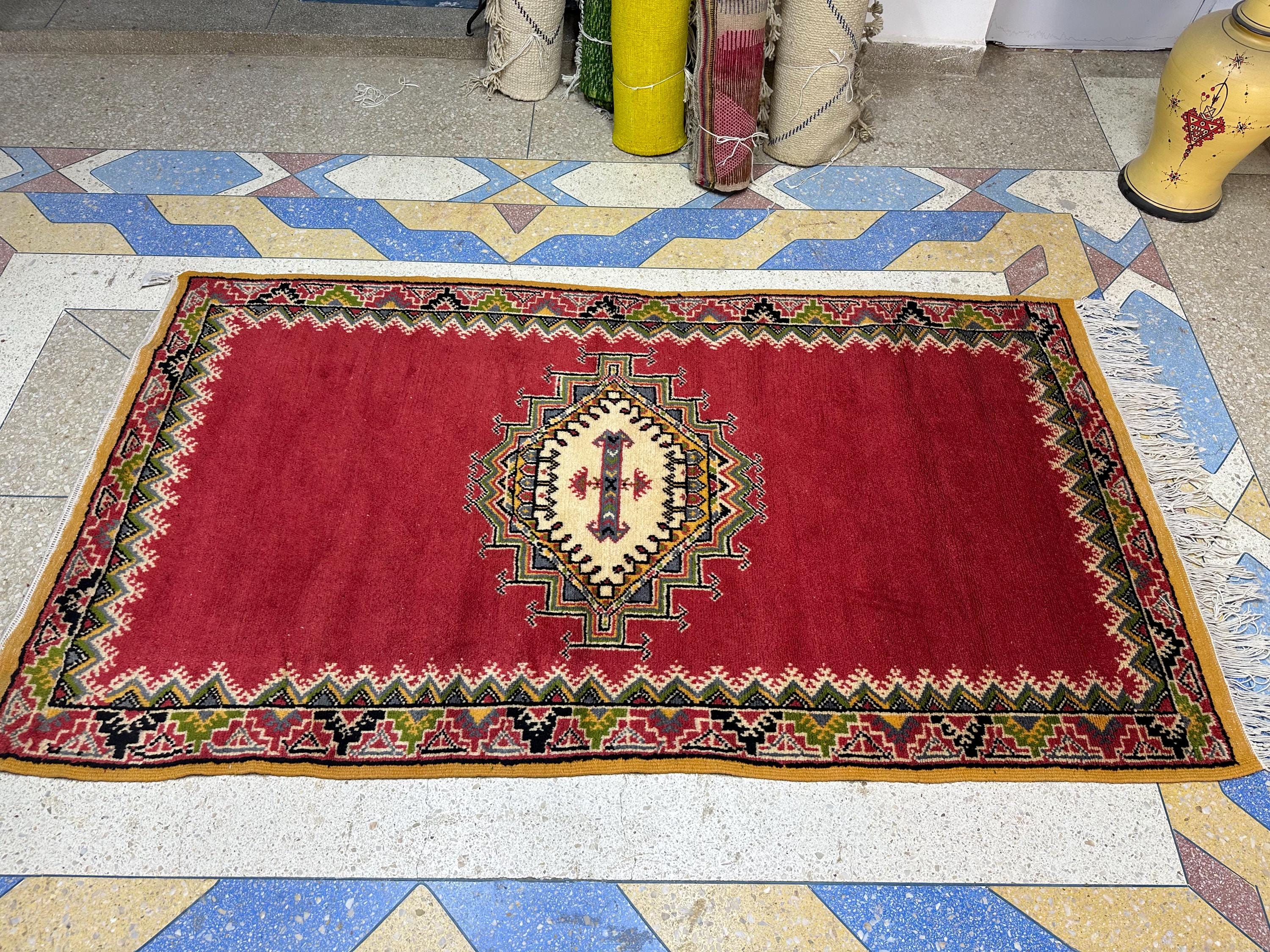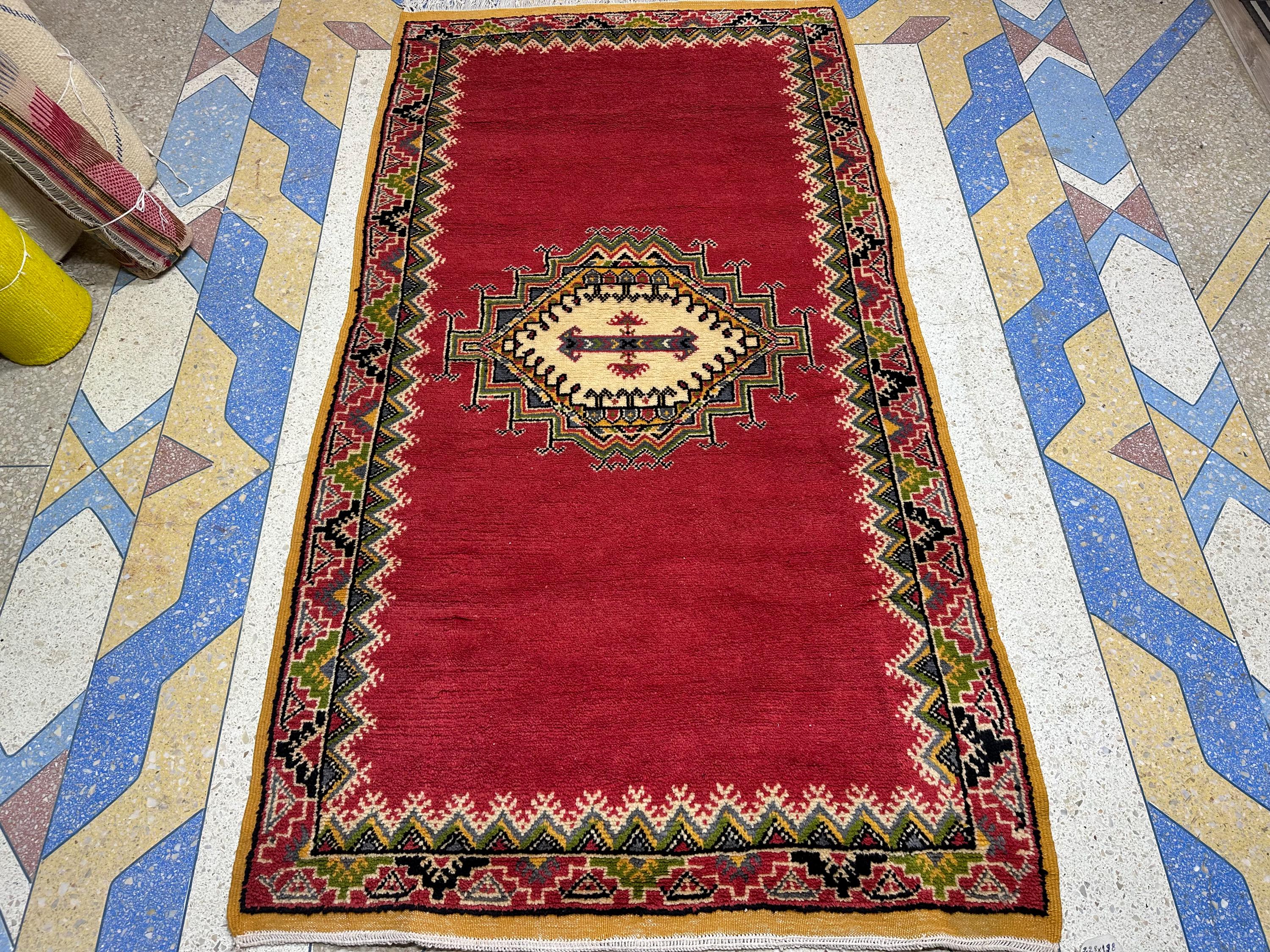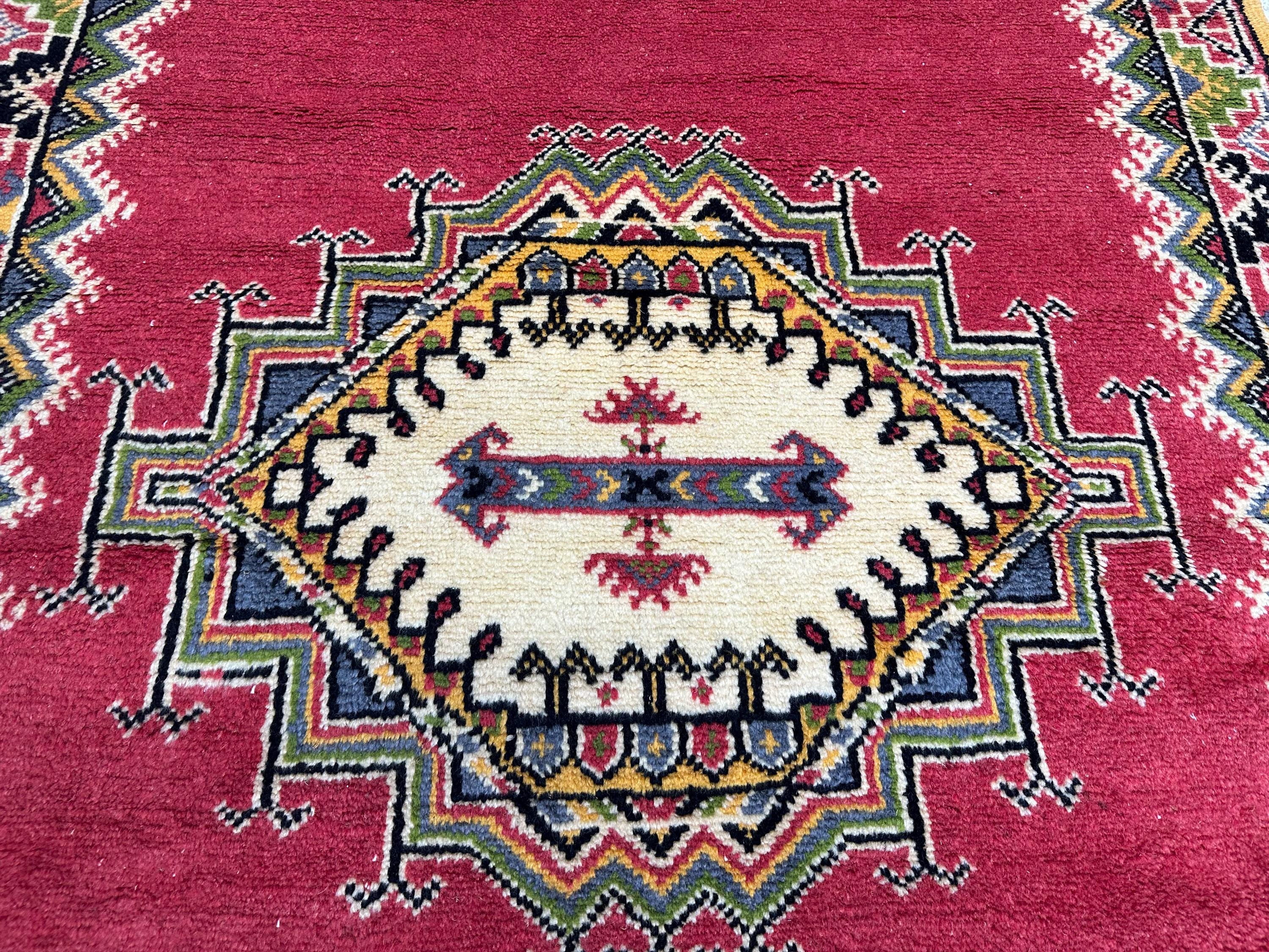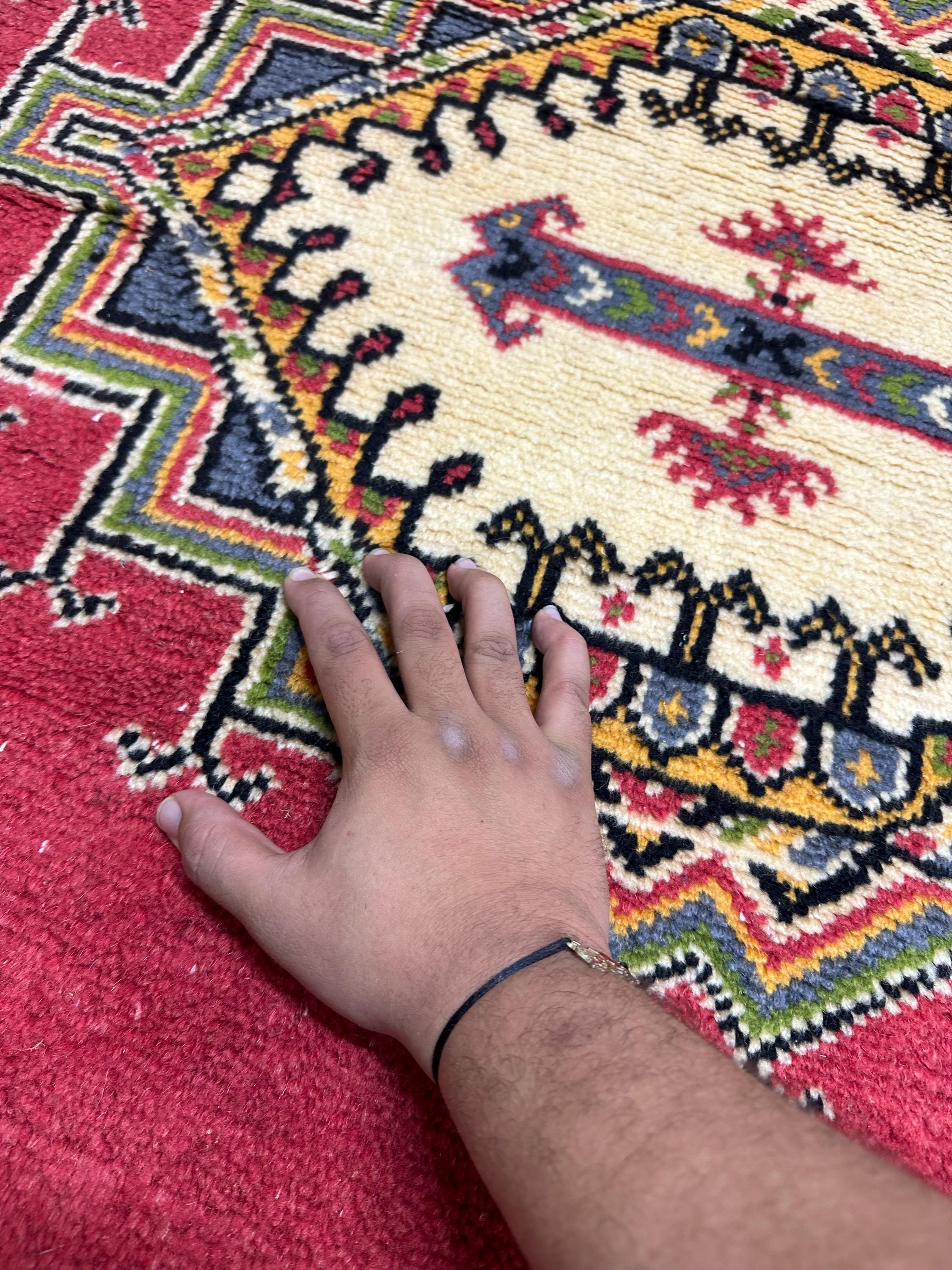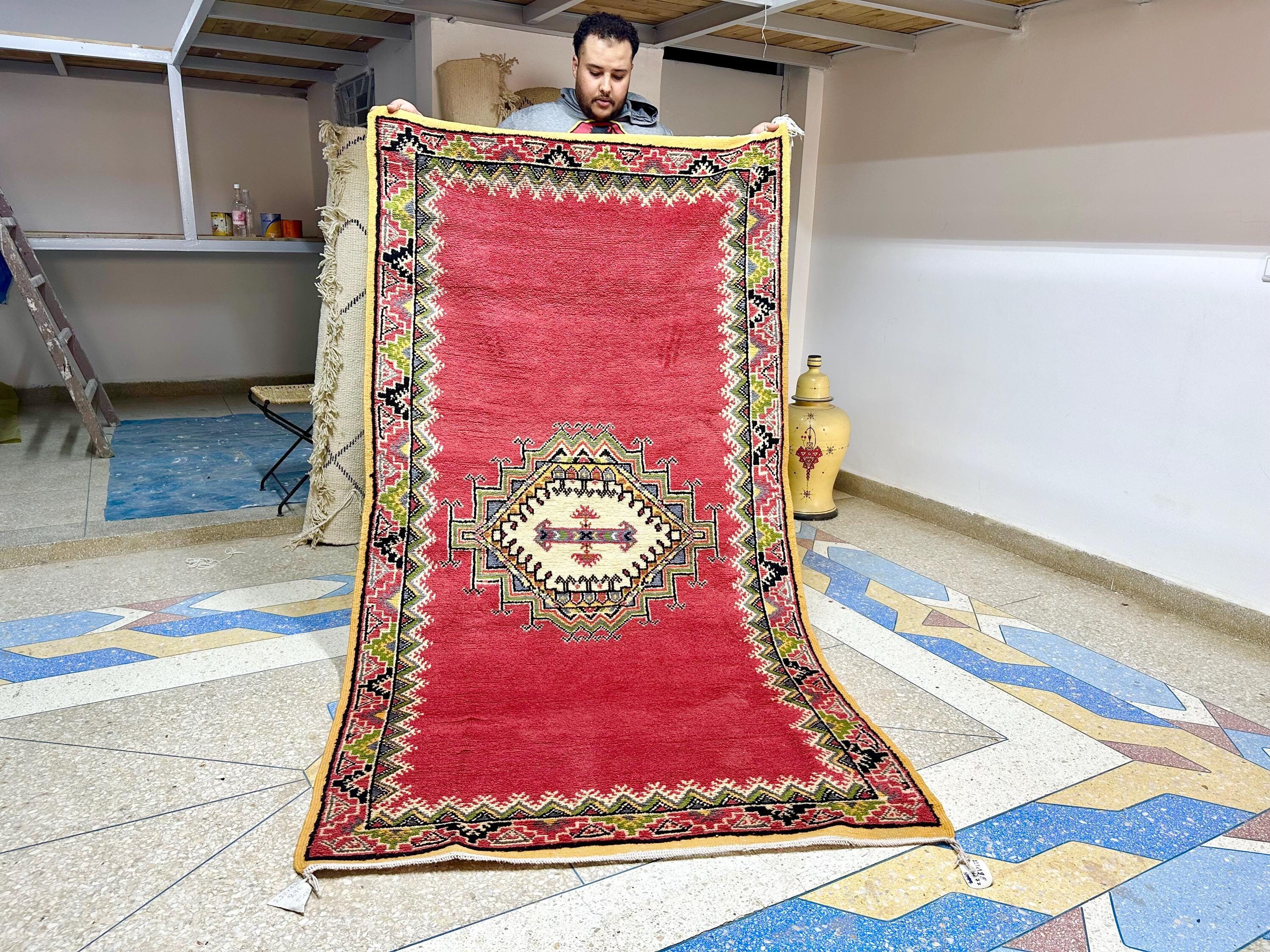 Authentic Moroccan Rug 7.4x4.1FT, Red Beni Ourain Rug, Moroccan Wool Rug, Vintage Beni Ourain rug, Berber rug, Area Rug 7x4