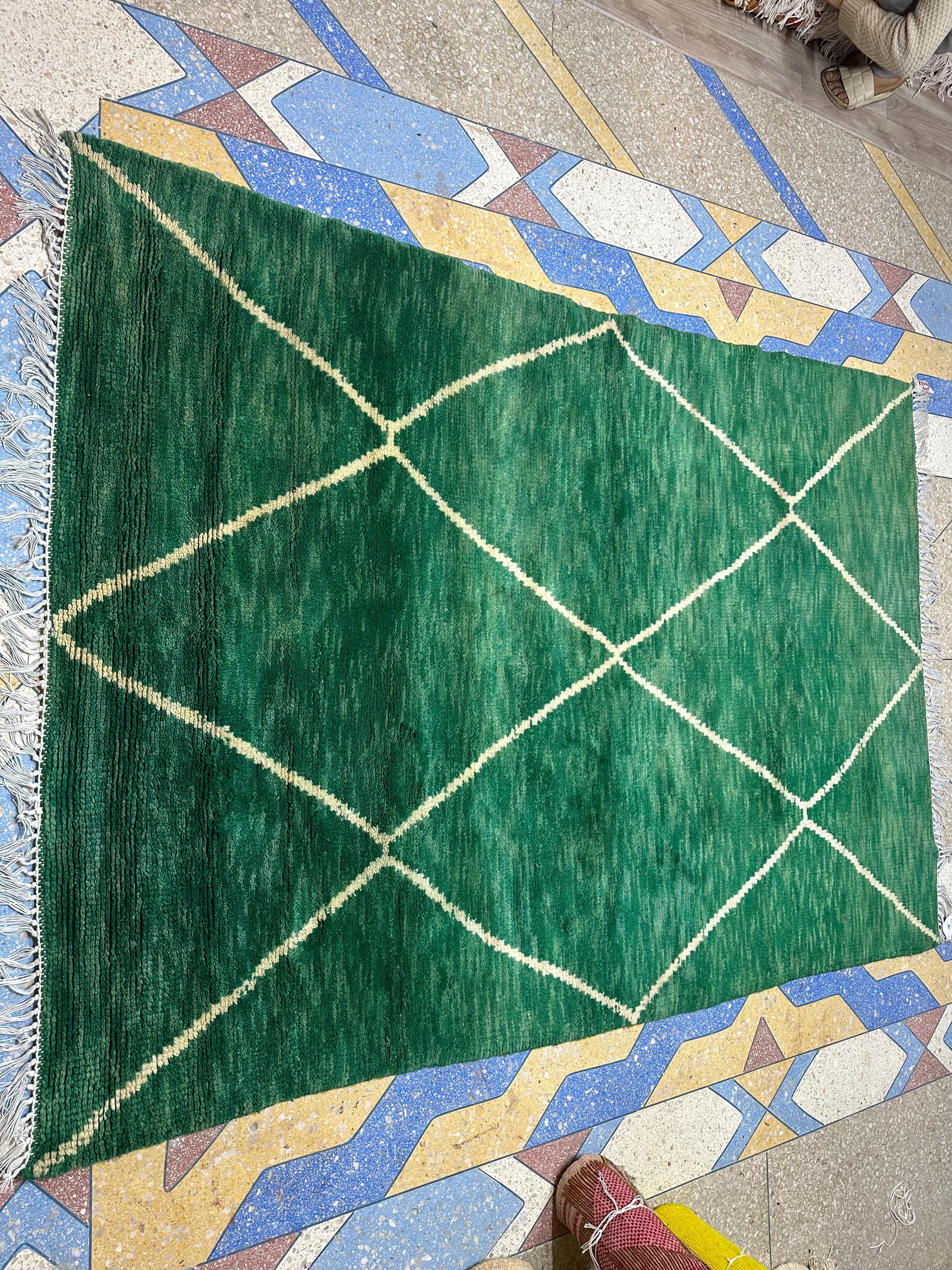 STUNNING MOROCCAN RUG - Green Handmade Berber Area Rug - 7.9x5.4FT Authentic Moroccan Rug - Berber Style Shag Area Rug