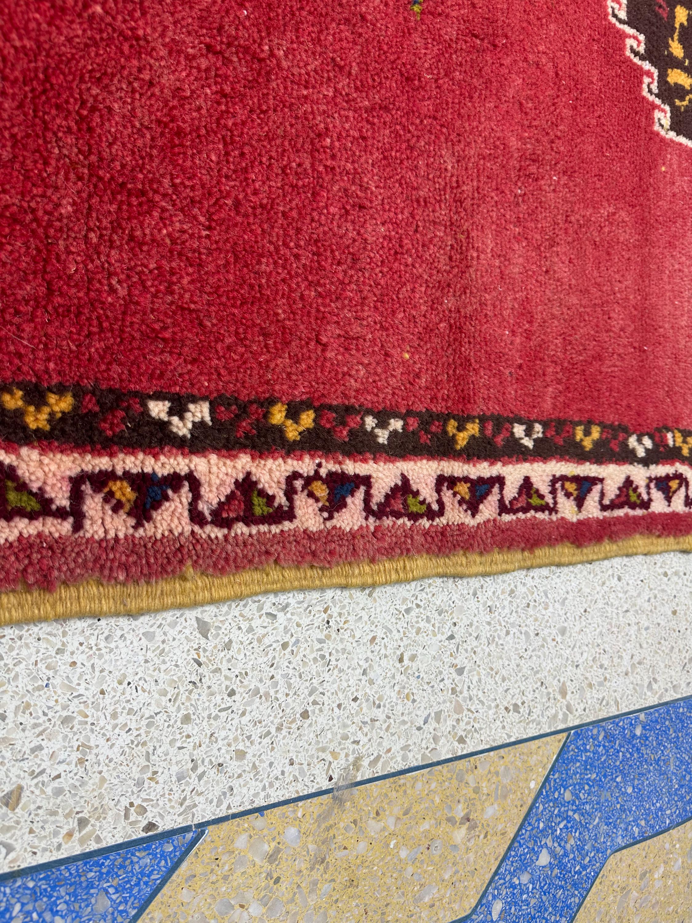 Handmade Moroccan Red Beni Ourain Rug | 6.1x3.7 FT Soft Shag Wool Berber Carpet | Bohemian-Style Wool Rug