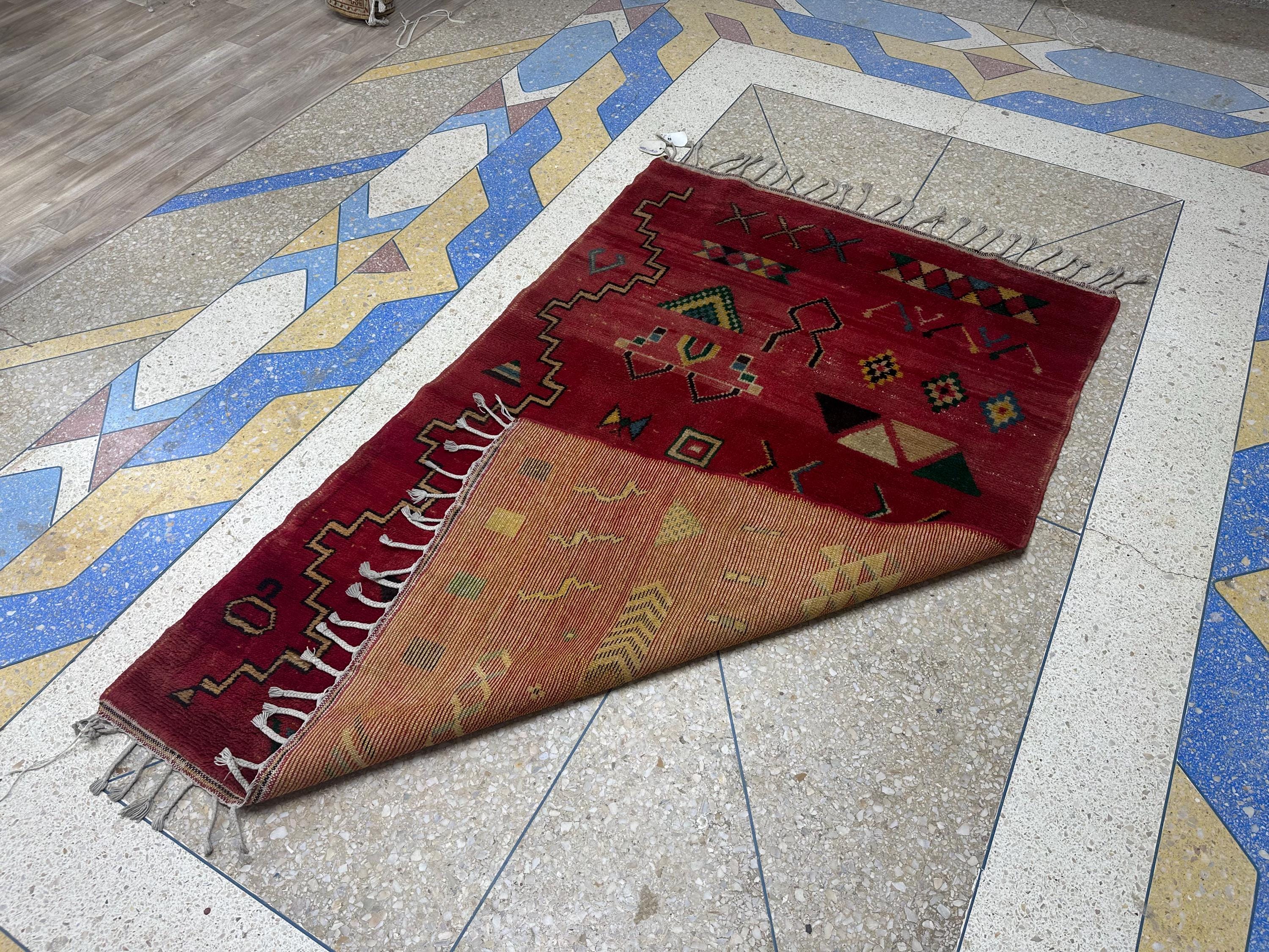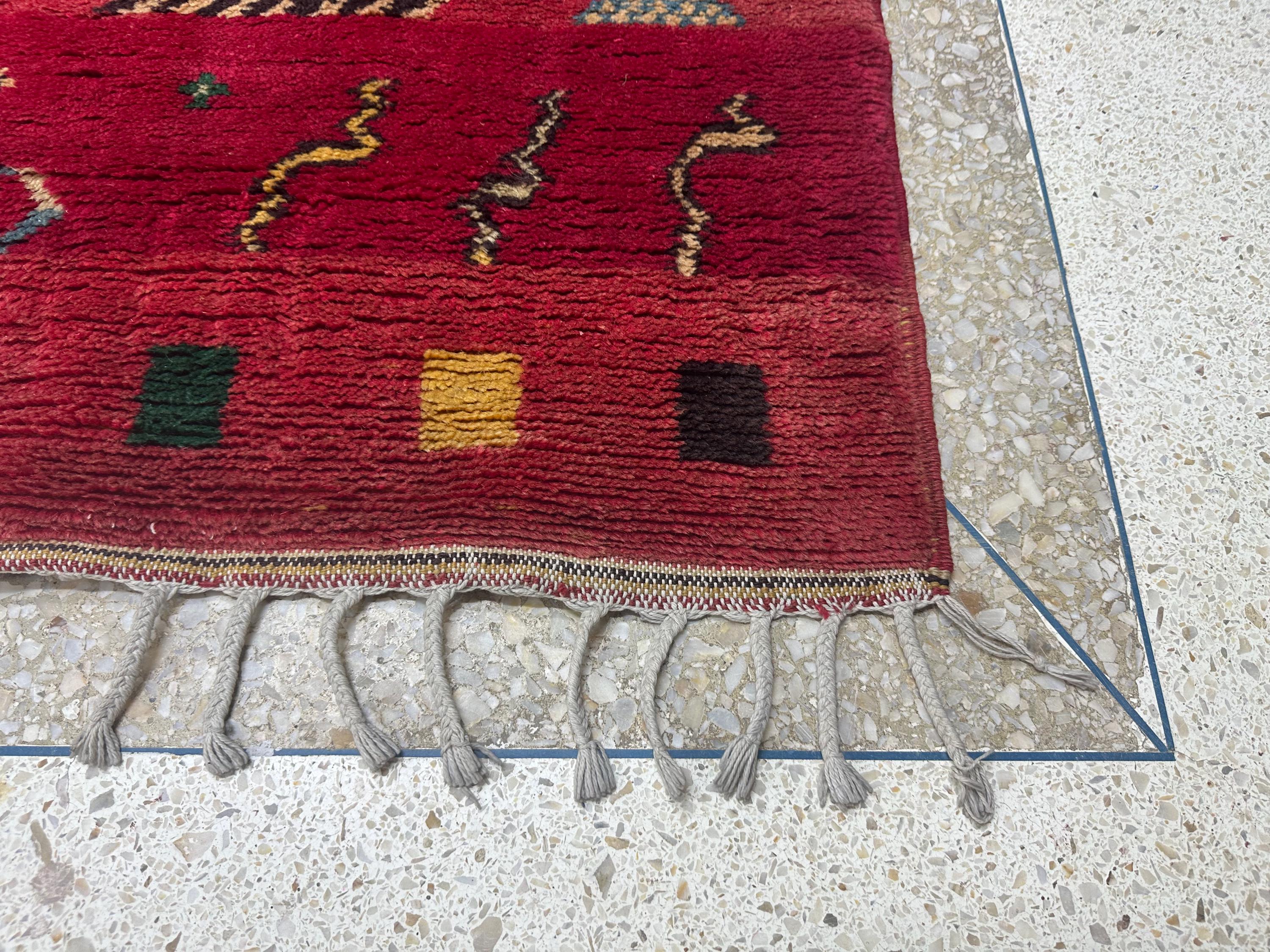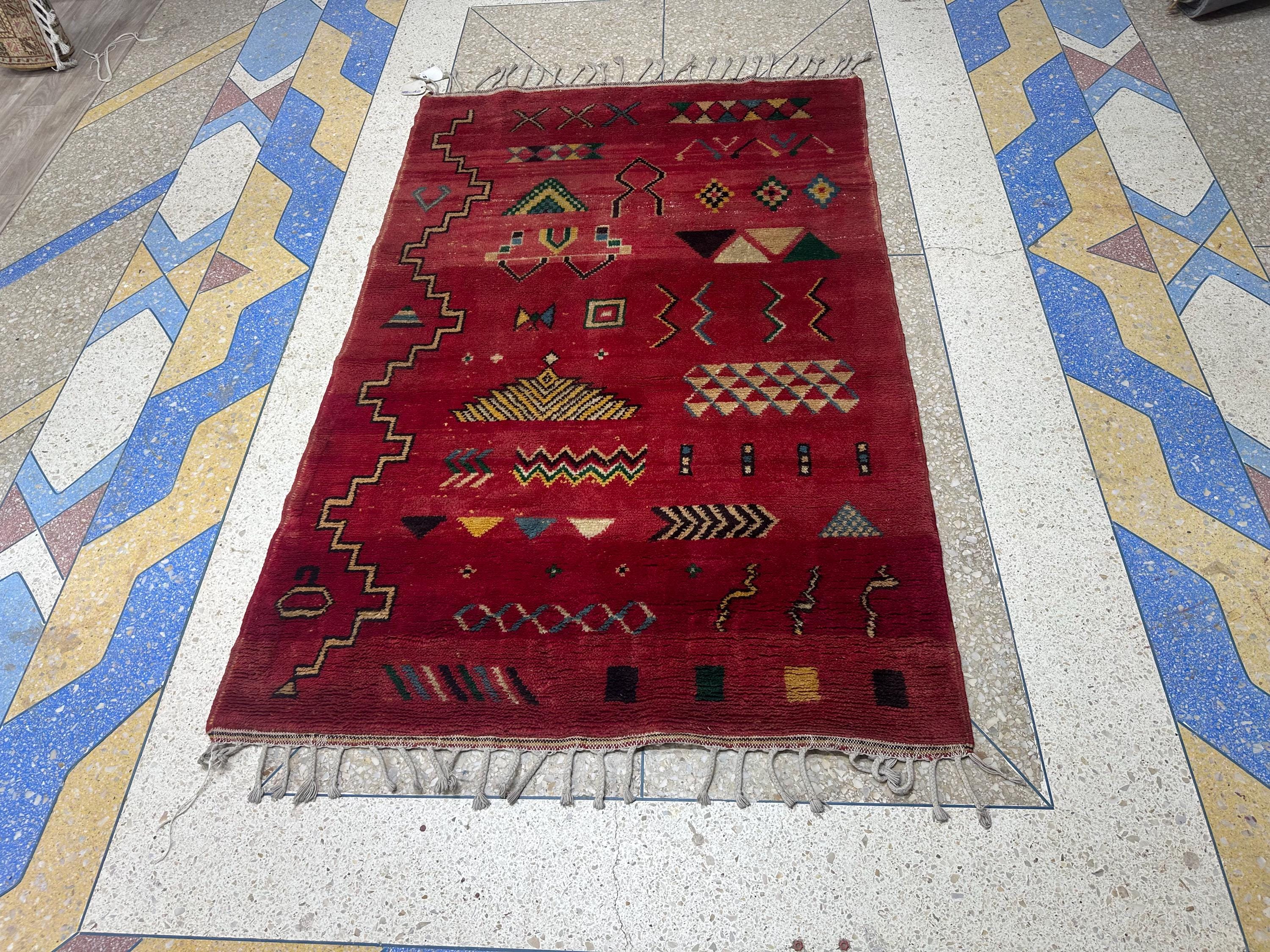 Authentic Moroccan Beni Ourain Rug - Handwoven Wool, 3.7x5.6FT Red Boho Area Rug for Modern Home Décor