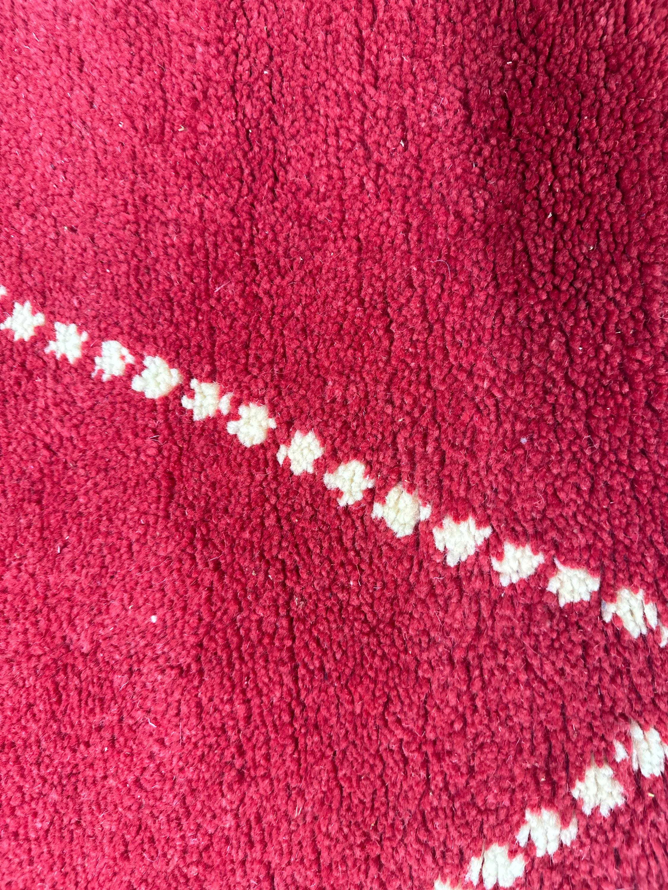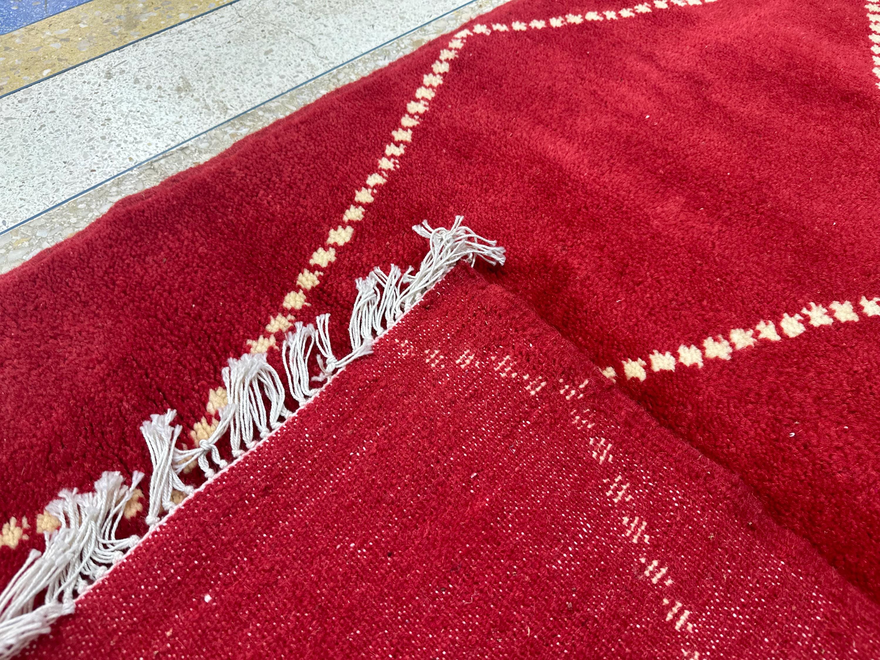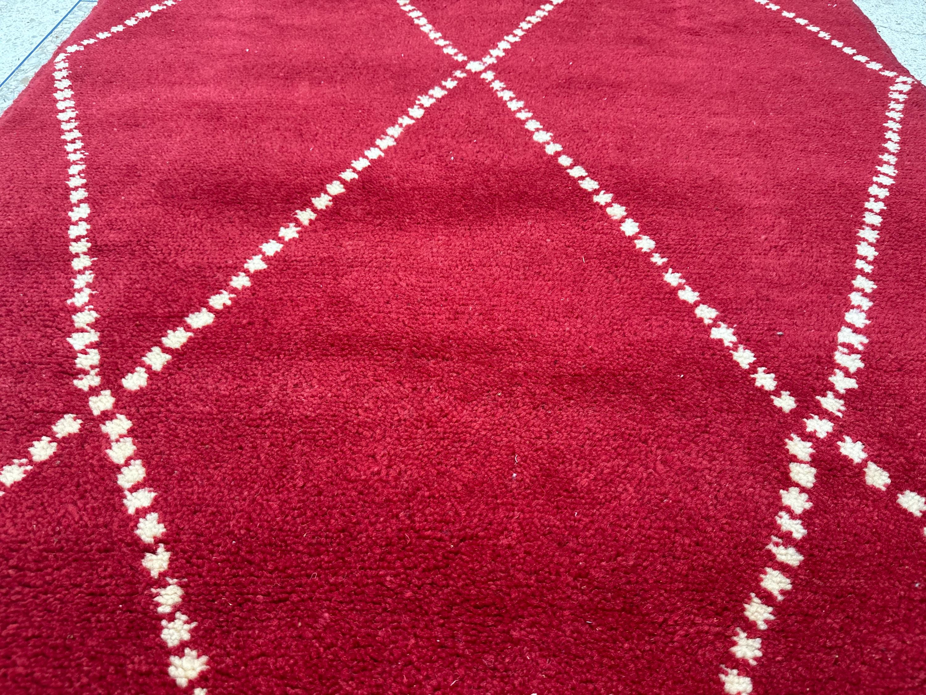 Artistic Moroccan Beni Ourain Rug – 6.1x3.6 ft Handwoven Geometric Area Rug, Red and White Berber Wool, Perfect for Living Room Décor